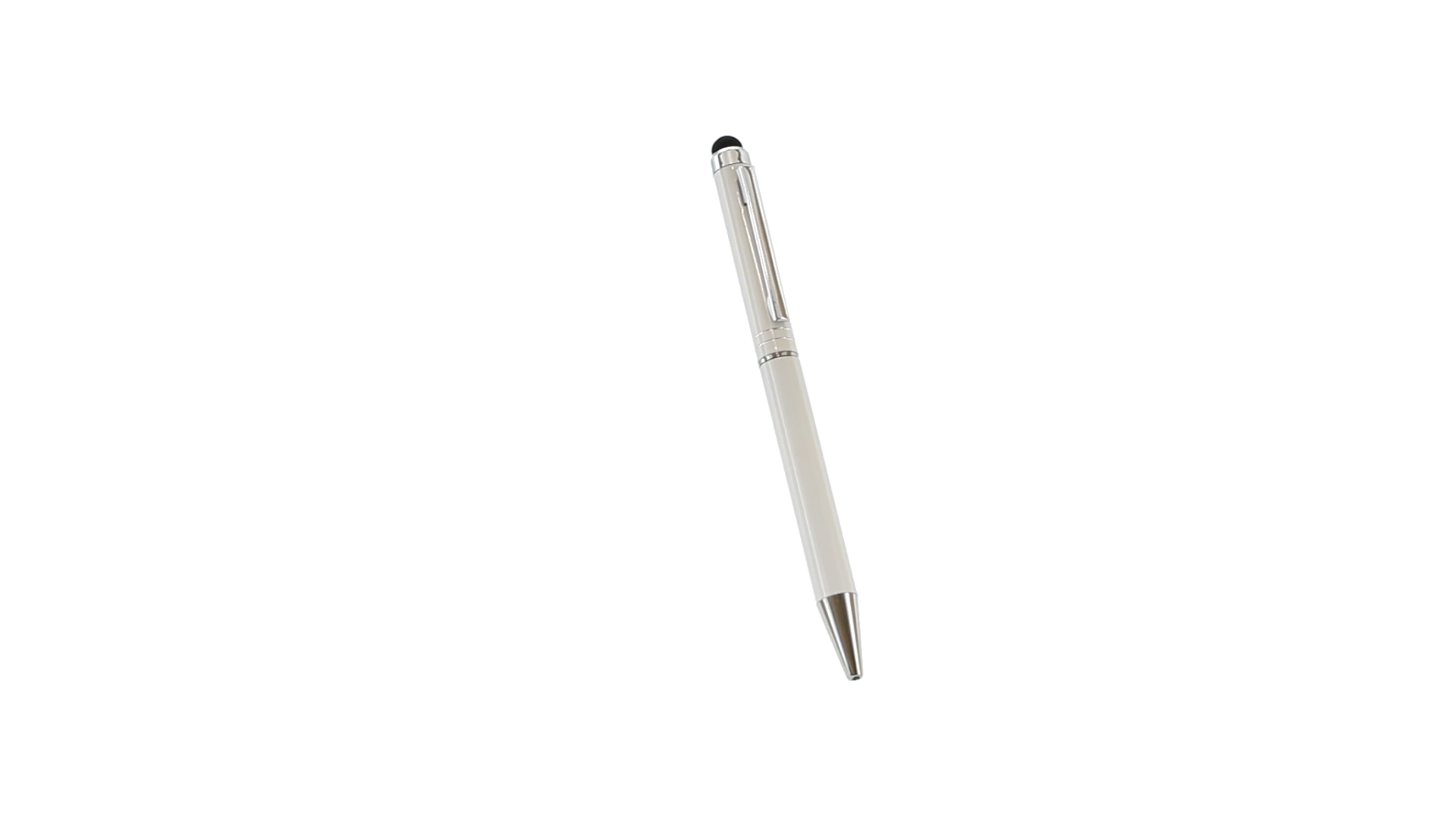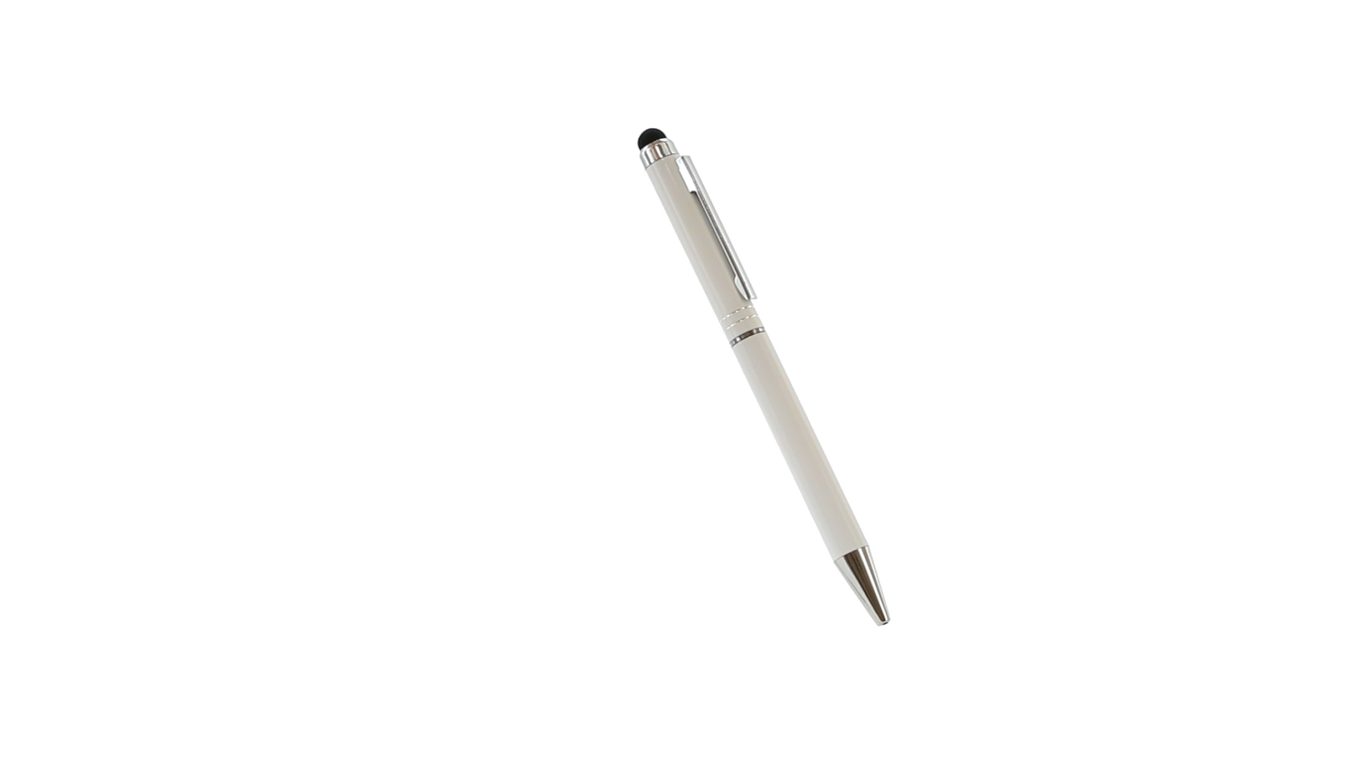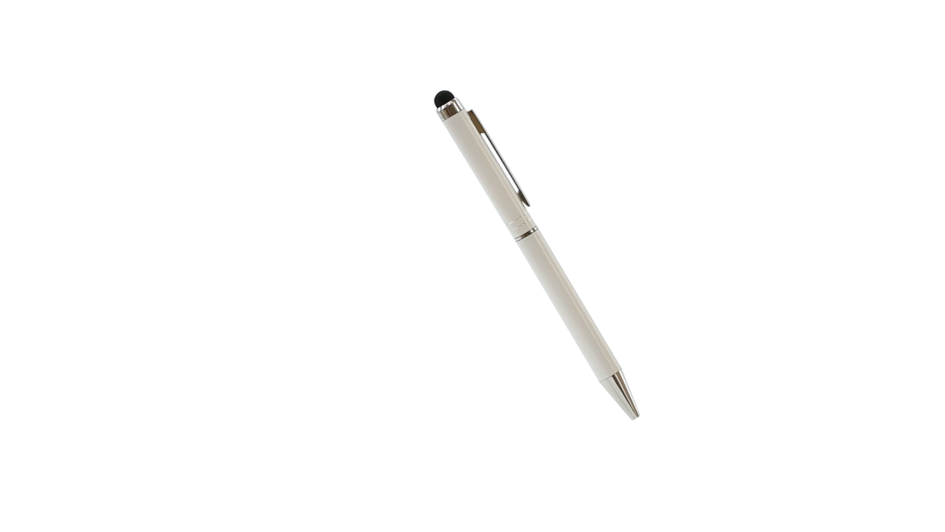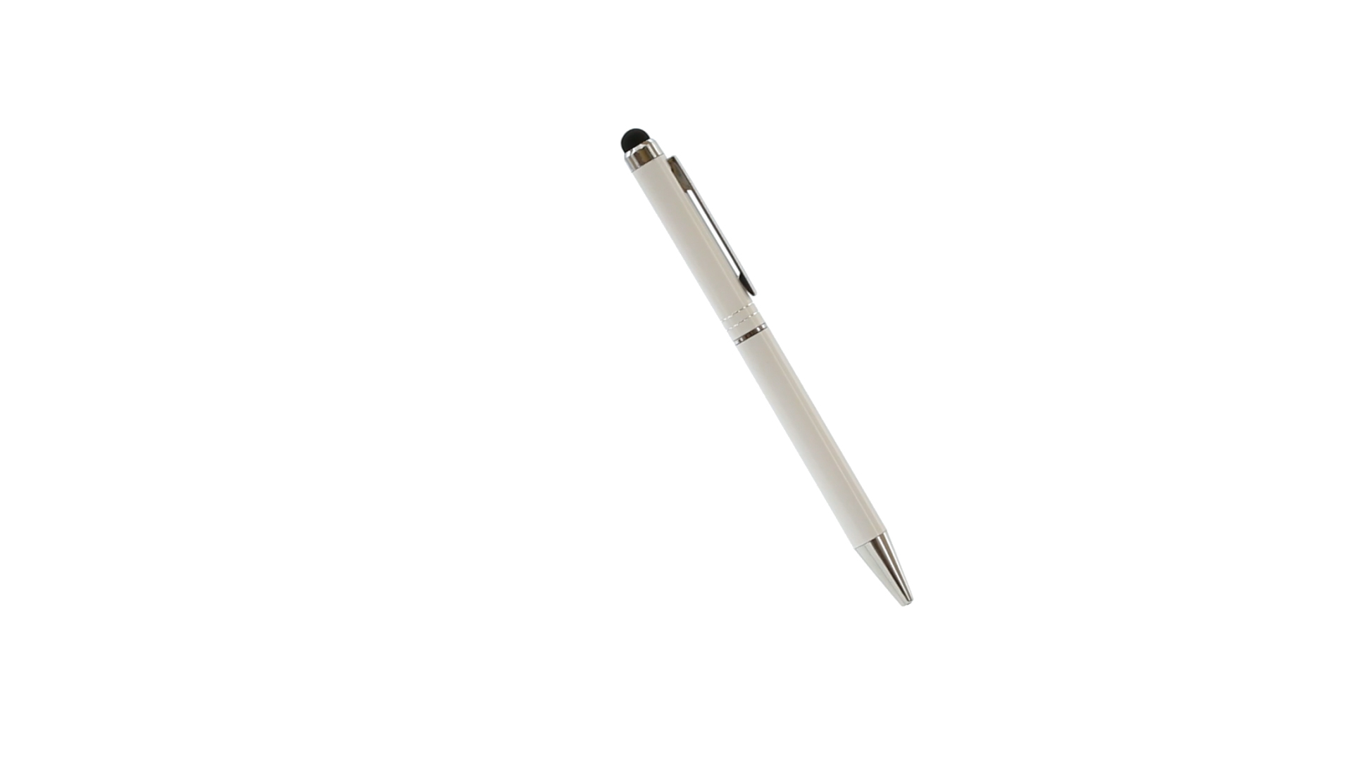 Dreh-Kugelschreiber mit Aluminiumgehäuse in weicher Metallic-Ausführung in verschiedenen Farben. Kontrastdetails und Ringe in Silber. Blaue Tinte.