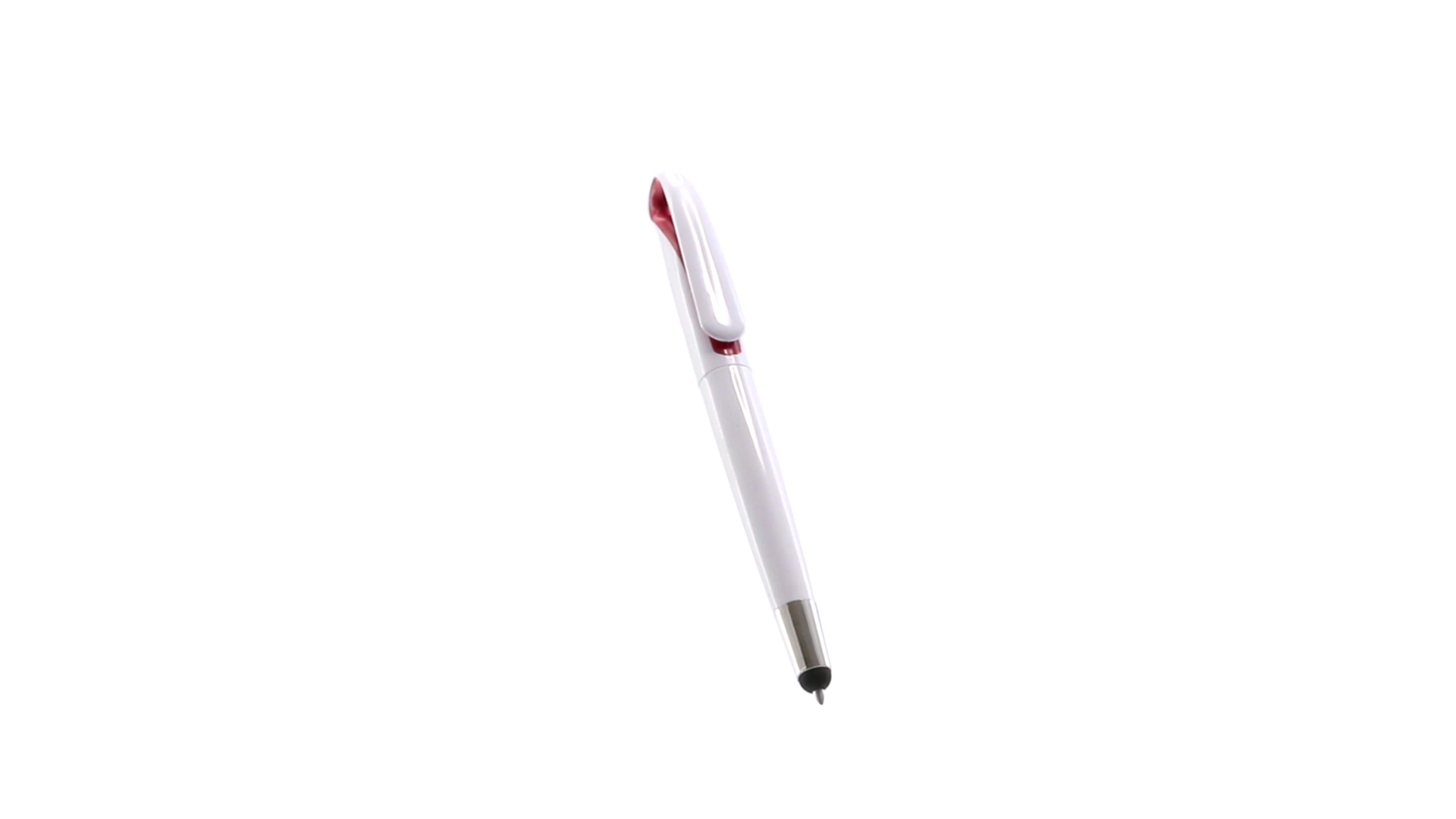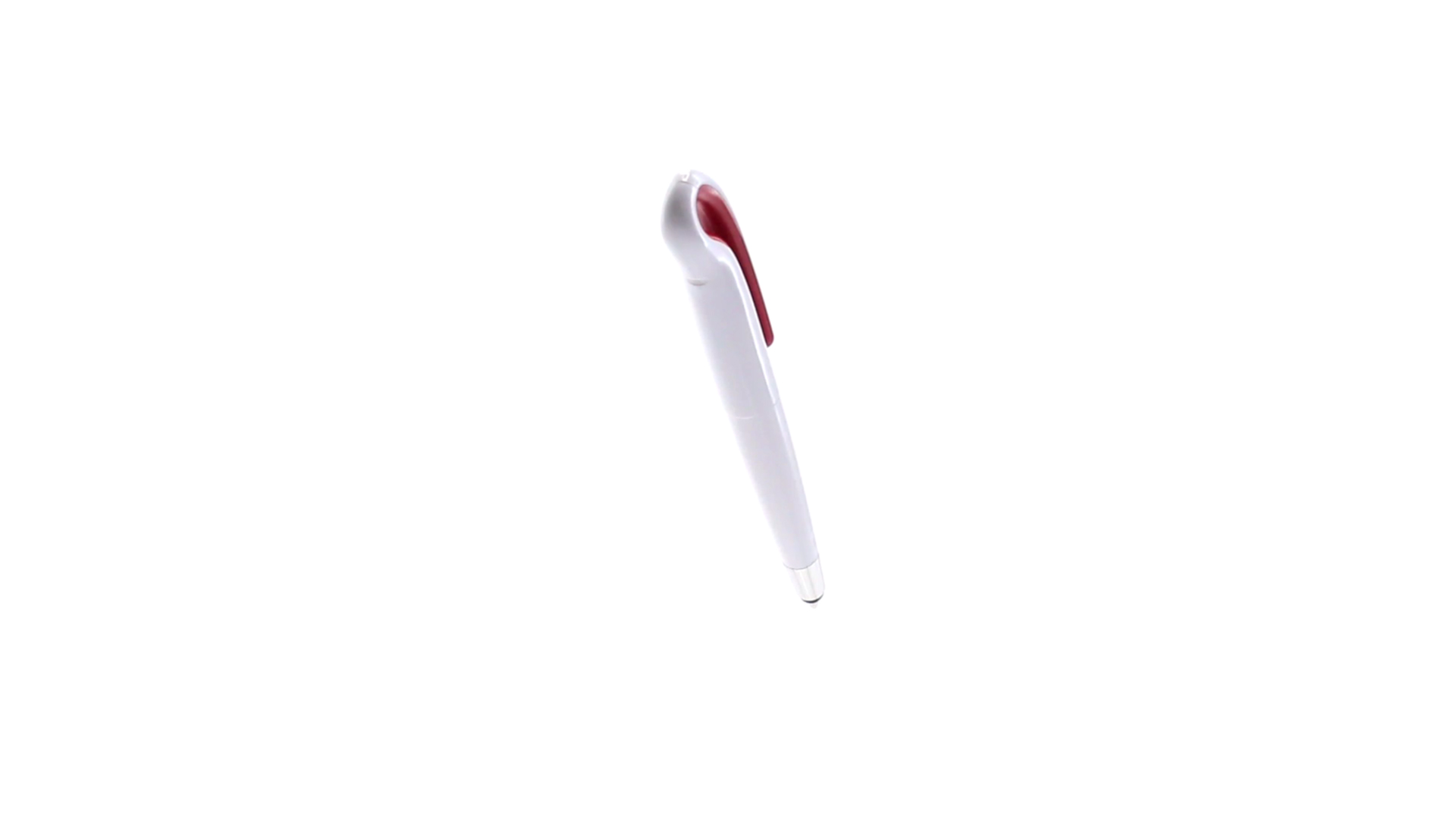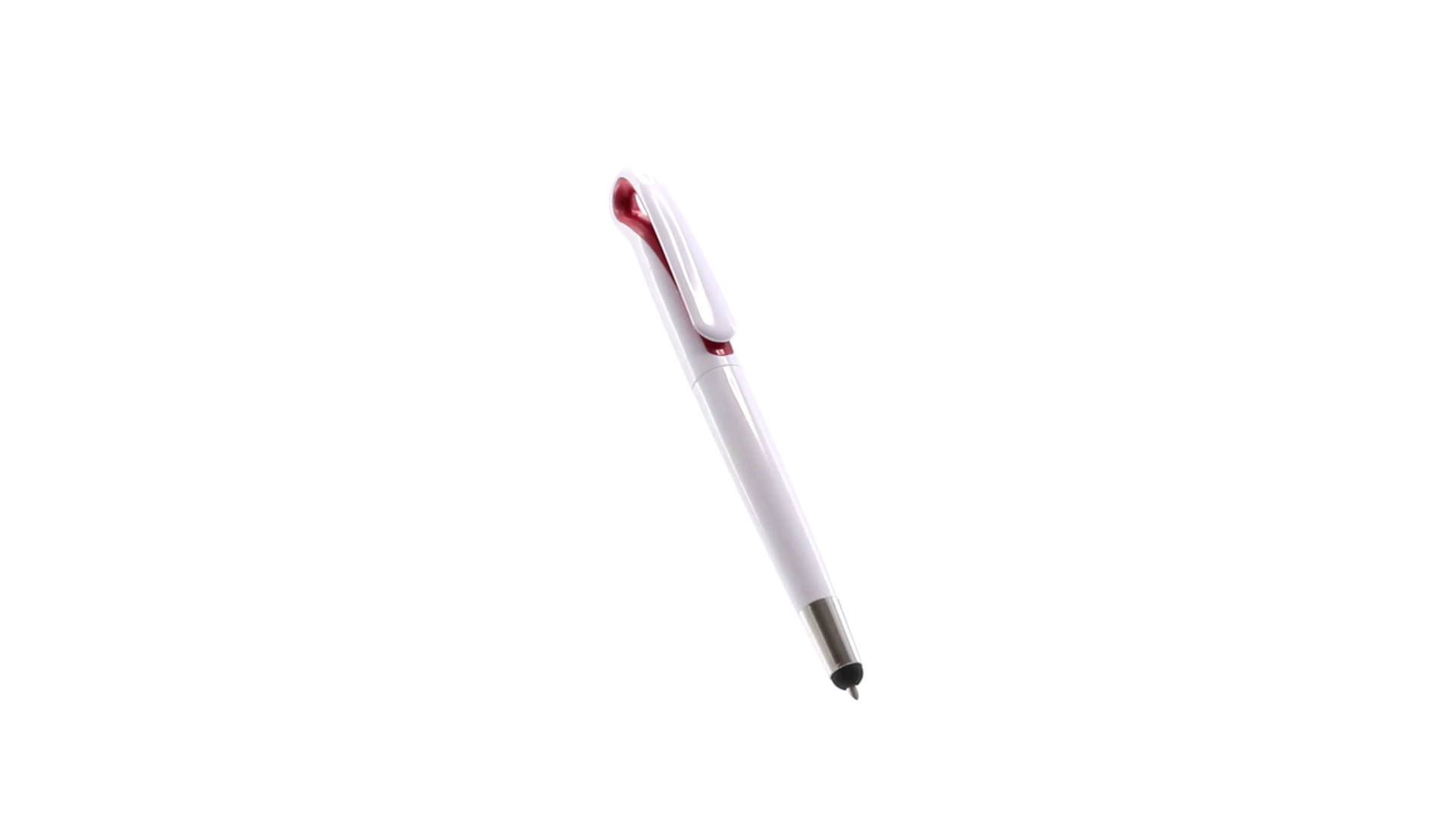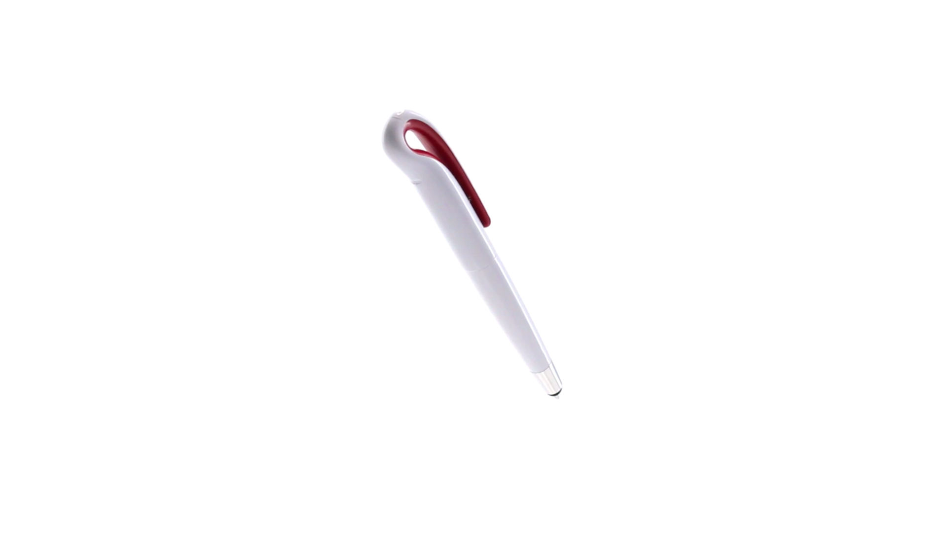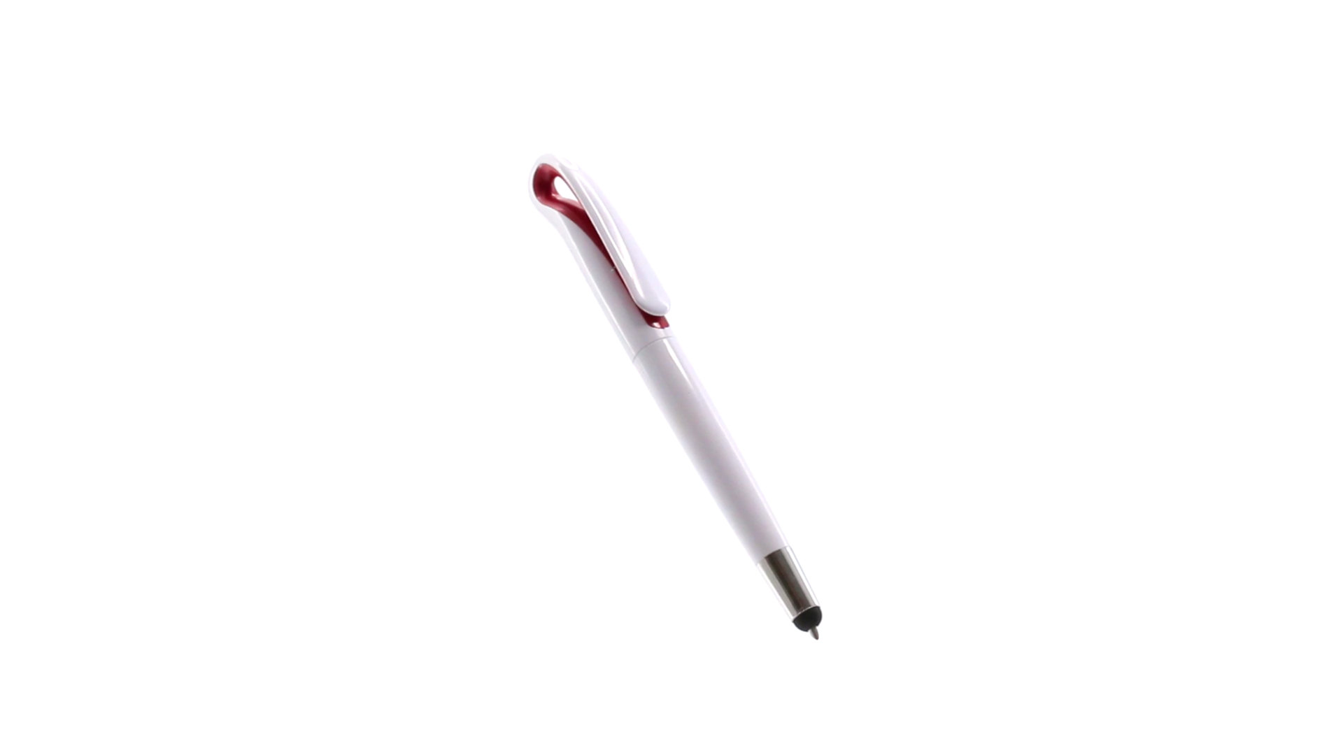 Dreh-Kugelschreiber mit Stylus und auffälligem, zweifarbigem Design. Mit Schaft in solidem, glänzendem Weiss mit Kontrastdetails in lebendigen Farben und originellem geschwungenem Clip in zwei Farben. Blaue Tinte.