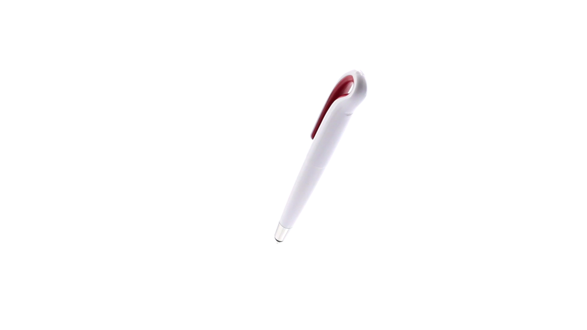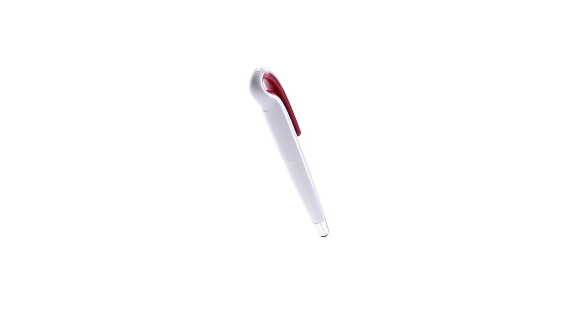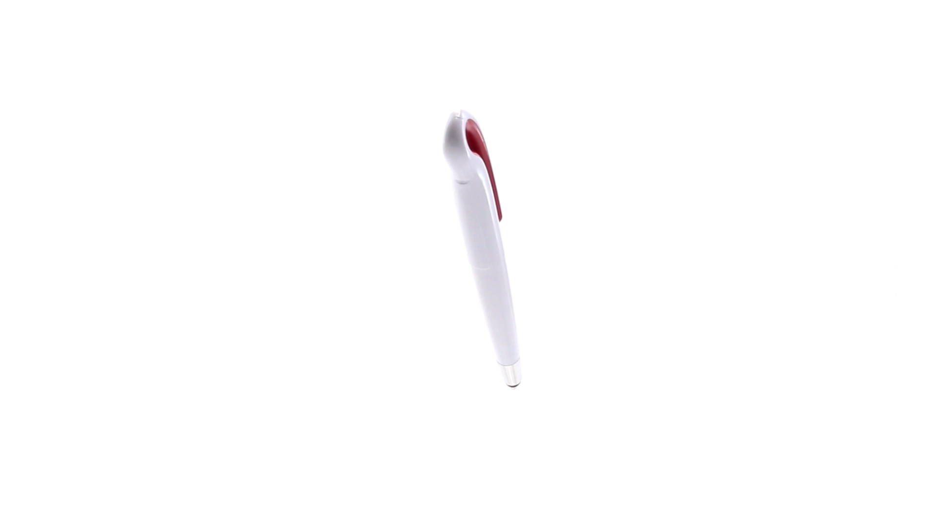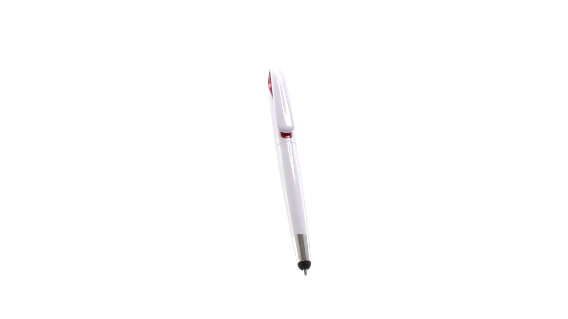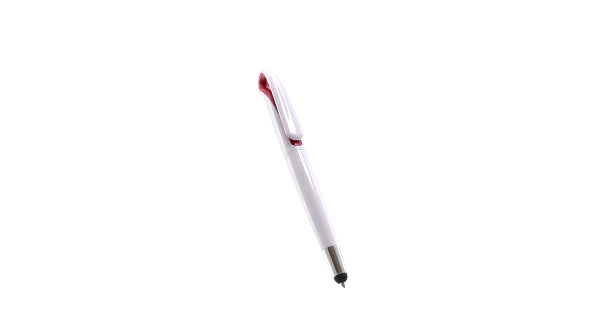 Dreh-Kugelschreiber mit Stylus und auffälligem, zweifarbigem Design. Mit Schaft in solidem, glänzendem Weiss mit Kontrastdetails in lebendigen Farben und originellem geschwungenem Clip in zwei Farben. Blaue Tinte.