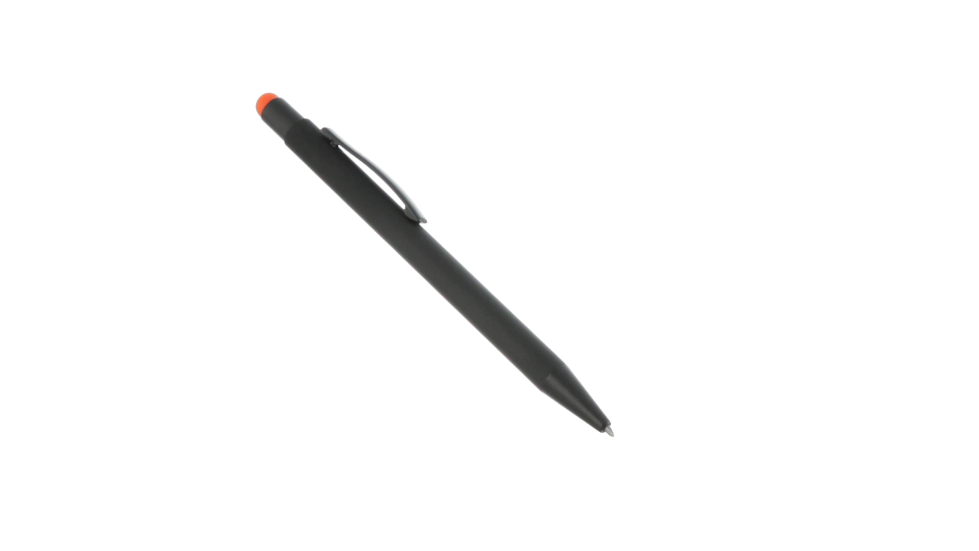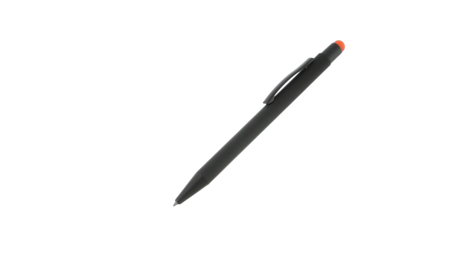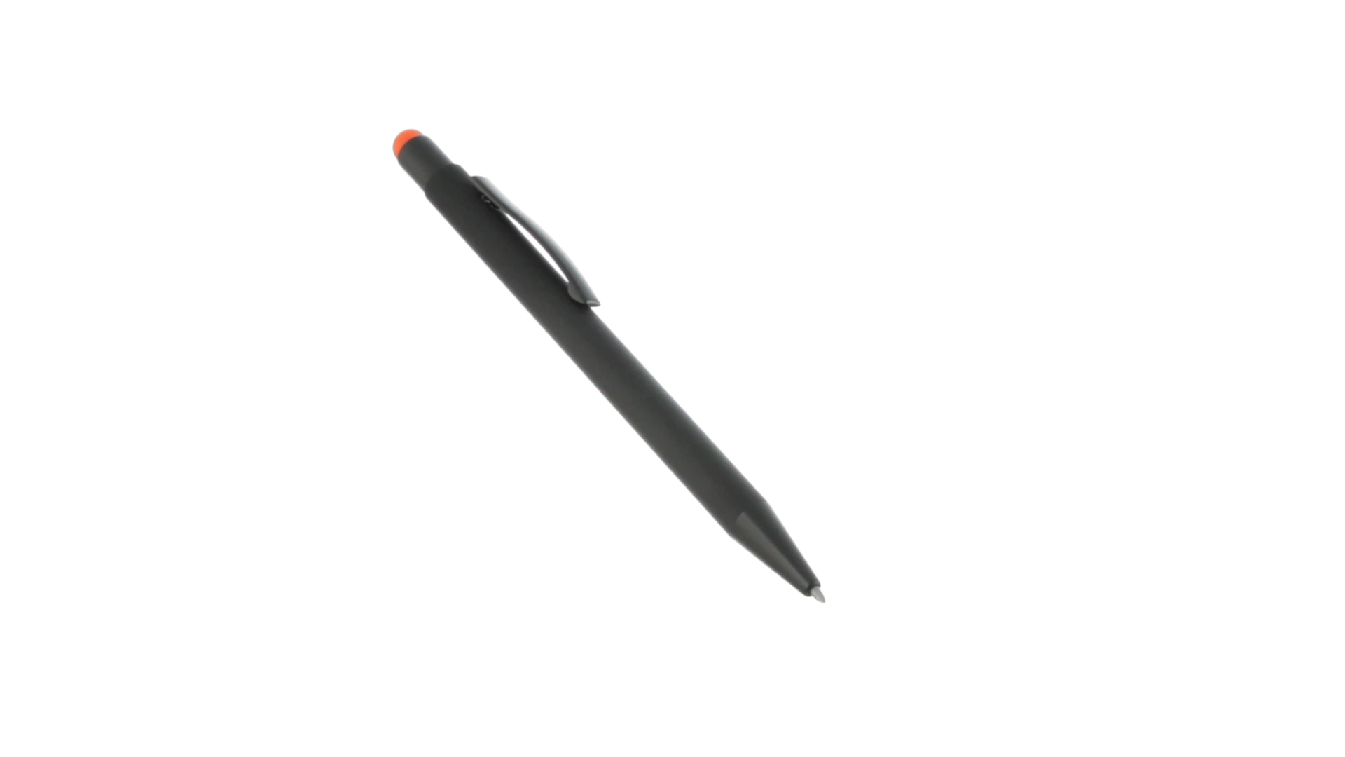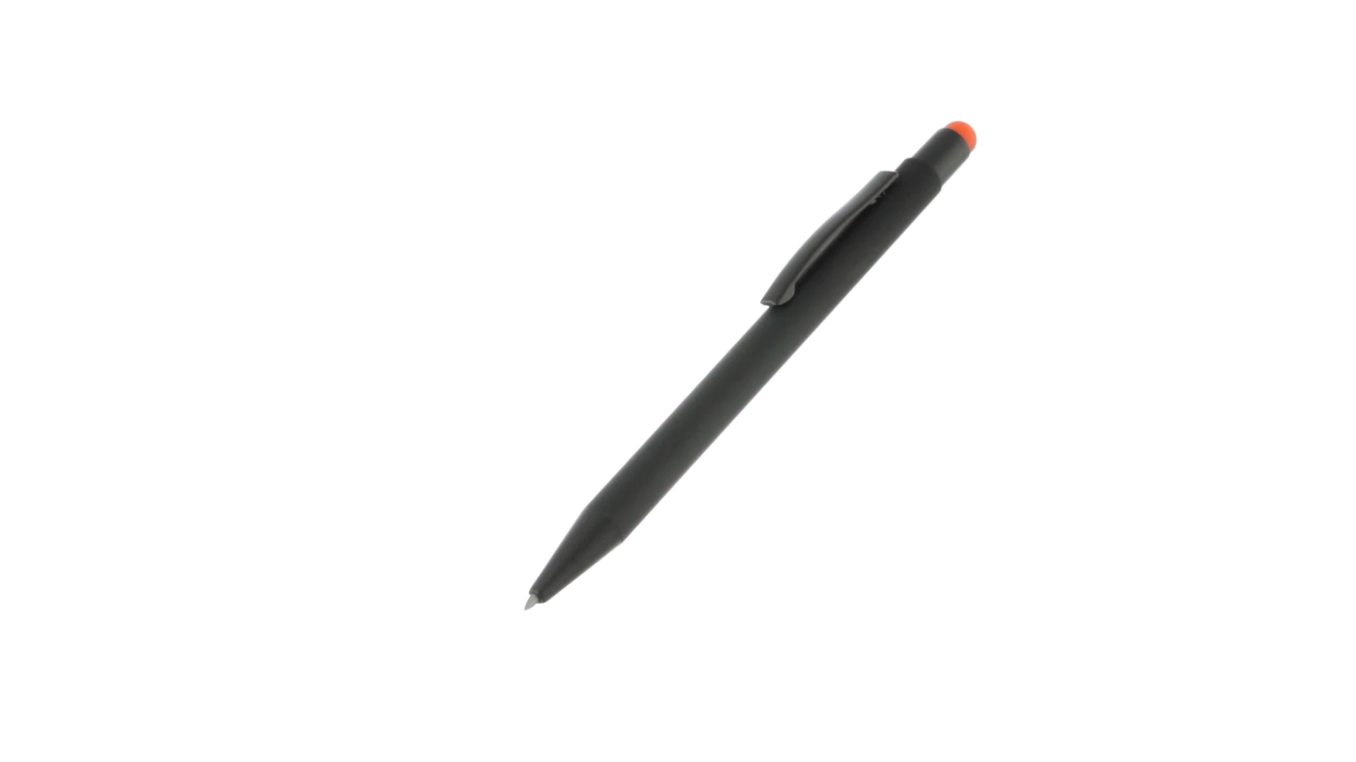Stylus-Stift mit Druckknopfmechanismus, Gehäuse aus massivem Schwarz und Druckknopf in verschiedenen Farben. Mit Metall-Clip in Schwarz. Speziell für den Laserdruck entworfen und mit einer speziellen Aussenbeschichtung versehen, durch die Ihr Logo perfekt graviert wird - passend zur Farbe des Druckknopfes. Jumbo-Patrone mit blauer Tinte.