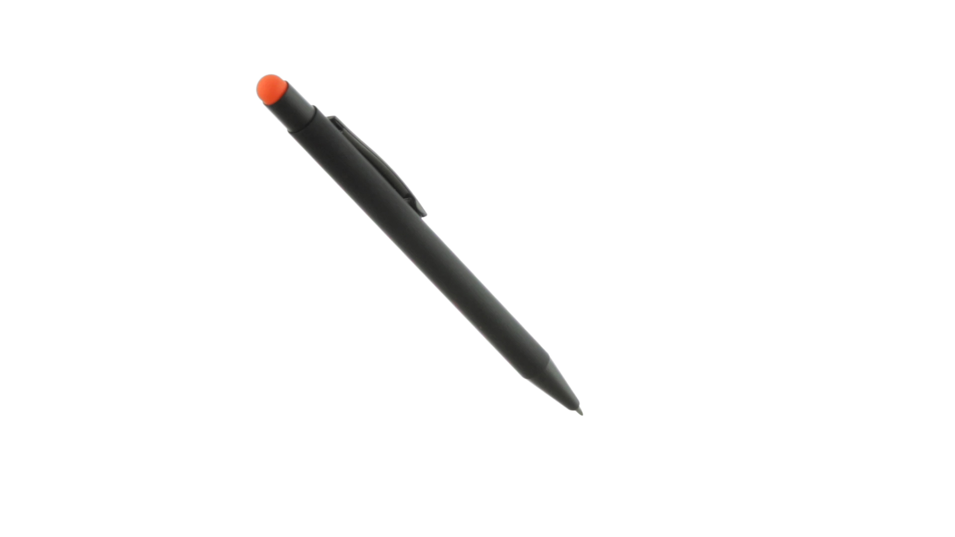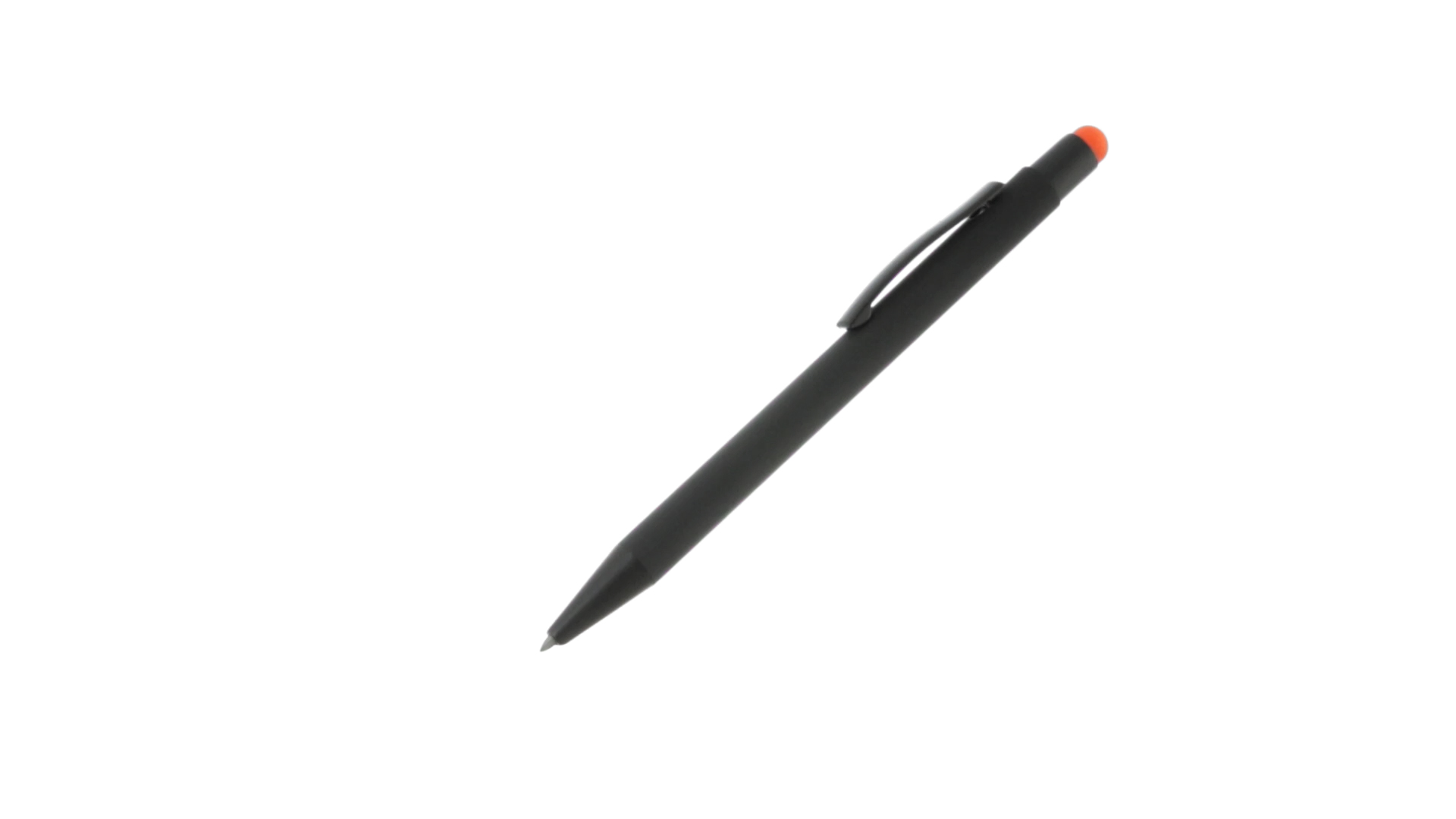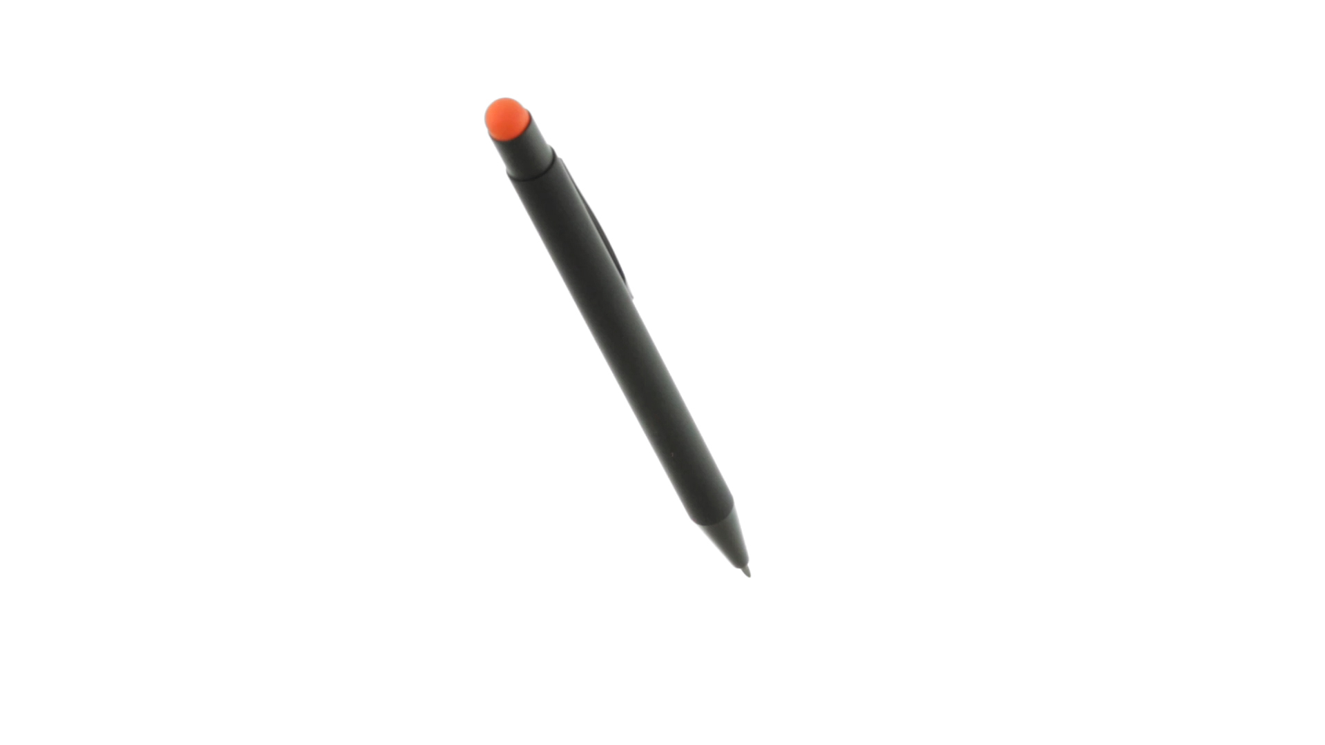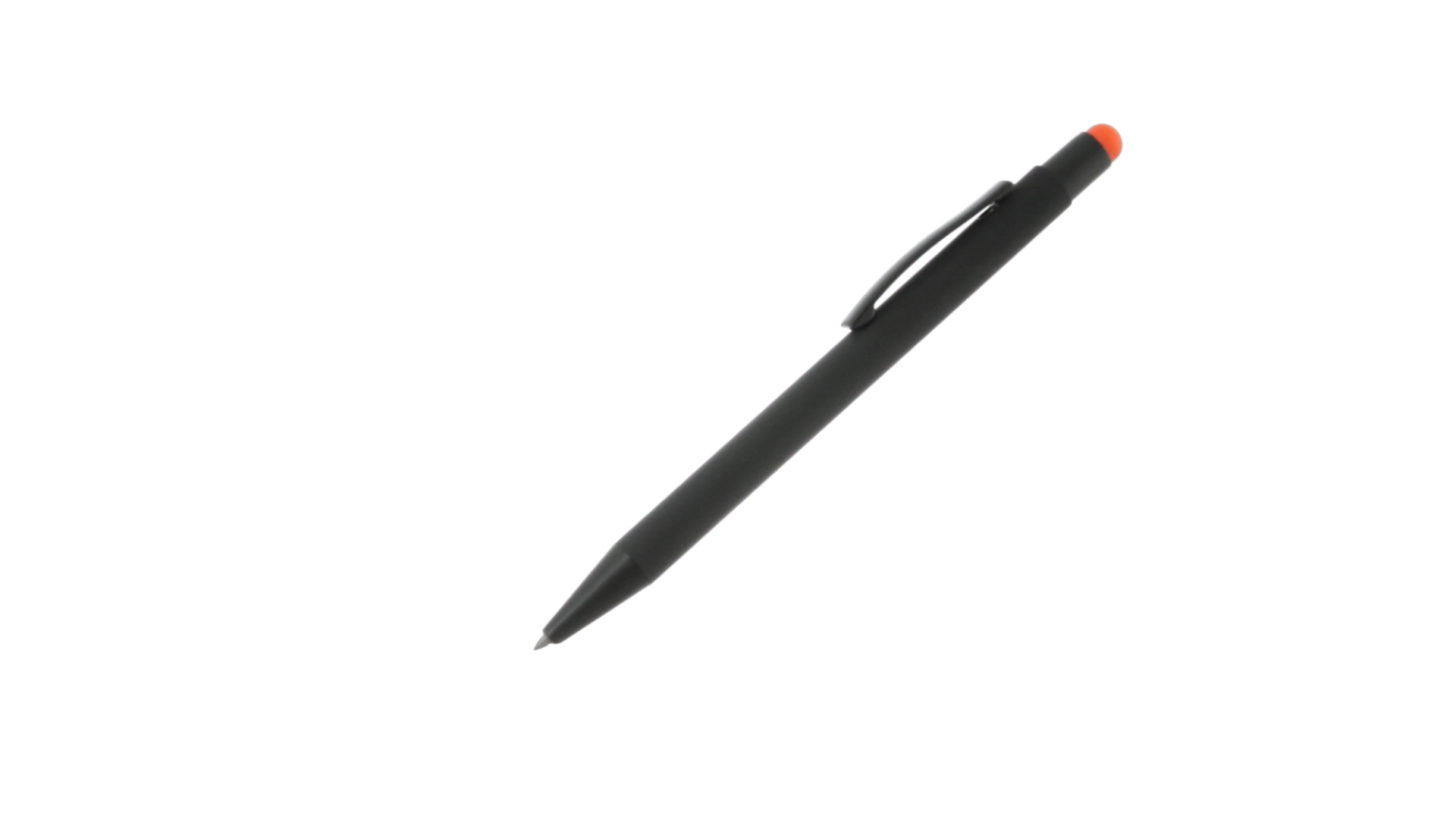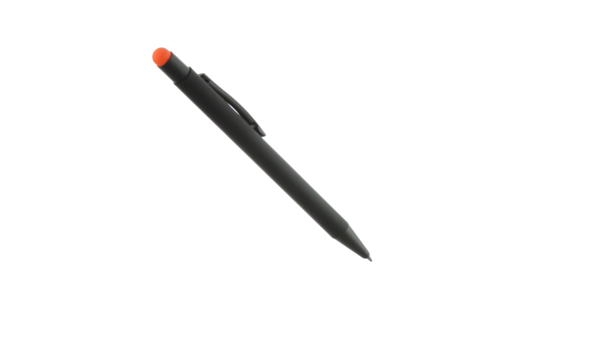 Stylus-Stift mit Druckknopfmechanismus, Gehäuse aus massivem Schwarz und Druckknopf in verschiedenen Farben. Mit Metall-Clip in Schwarz. Speziell für den Laserdruck entworfen und mit einer speziellen Aussenbeschichtung versehen, durch die Ihr Logo perfekt graviert wird - passend zur Farbe des Druckknopfes. Jumbo-Patrone mit blauer Tinte.