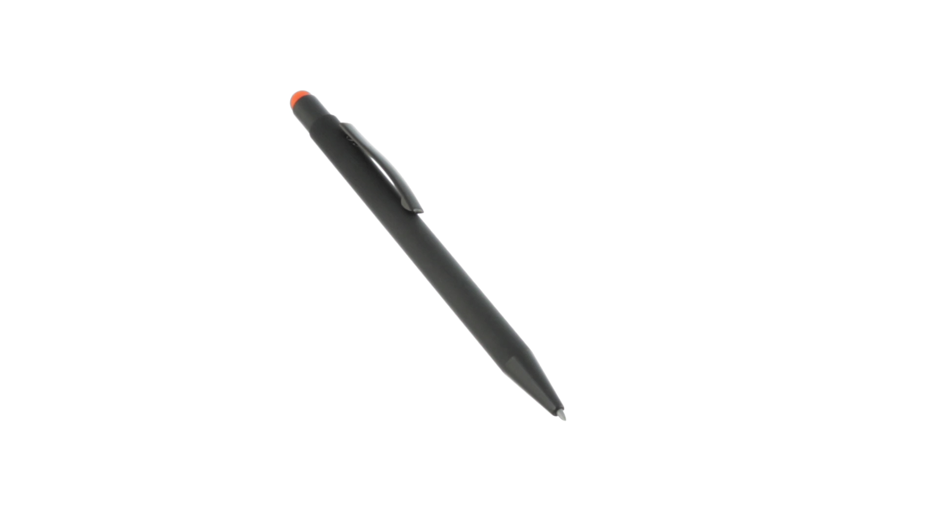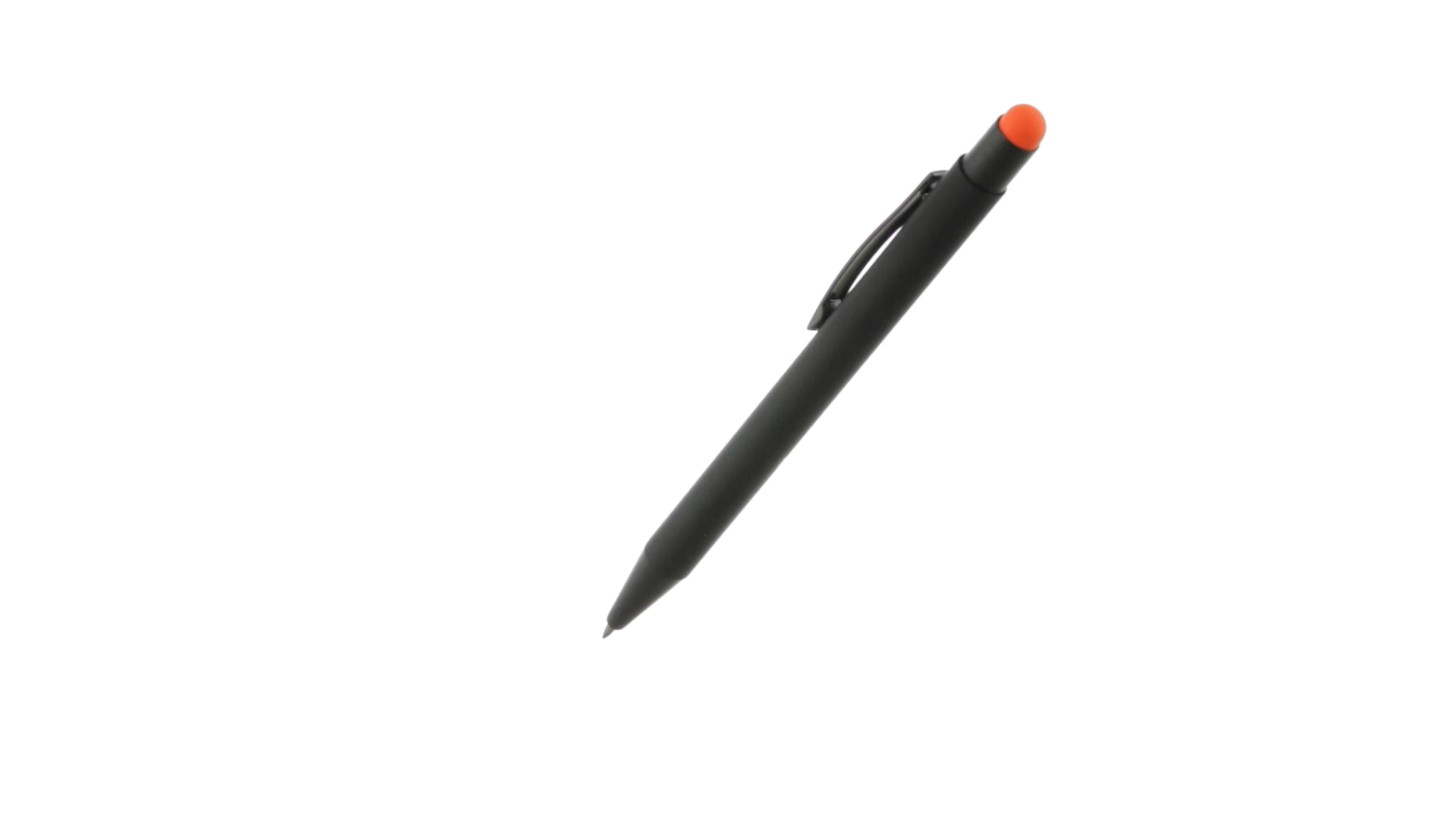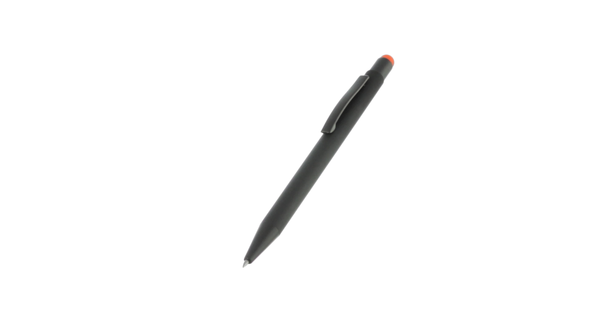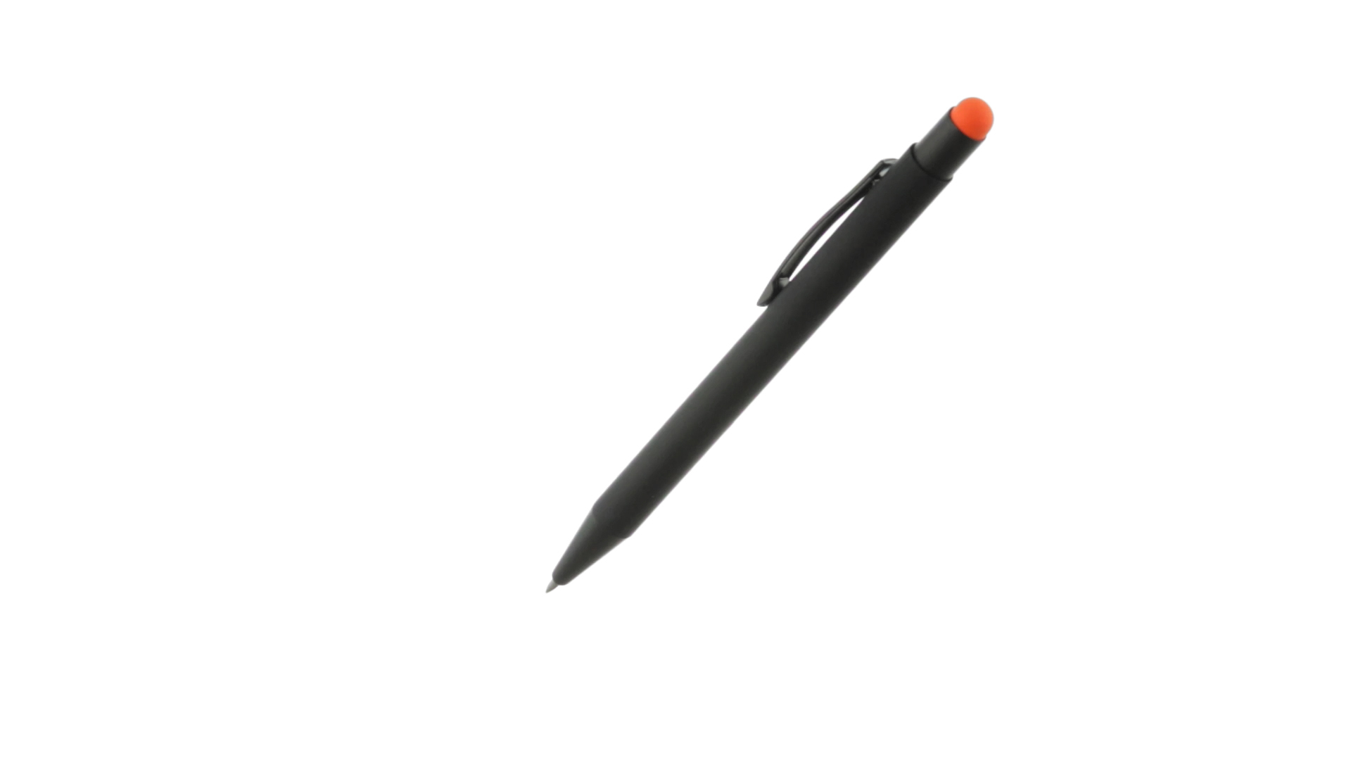 Stylus-Stift mit Druckknopfmechanismus, Gehäuse aus massivem Schwarz und Druckknopf in verschiedenen Farben. Mit Metall-Clip in Schwarz. Speziell für den Laserdruck entworfen und mit einer speziellen Aussenbeschichtung versehen, durch die Ihr Logo perfekt graviert wird - passend zur Farbe des Druckknopfes. Jumbo-Patrone mit blauer Tinte.