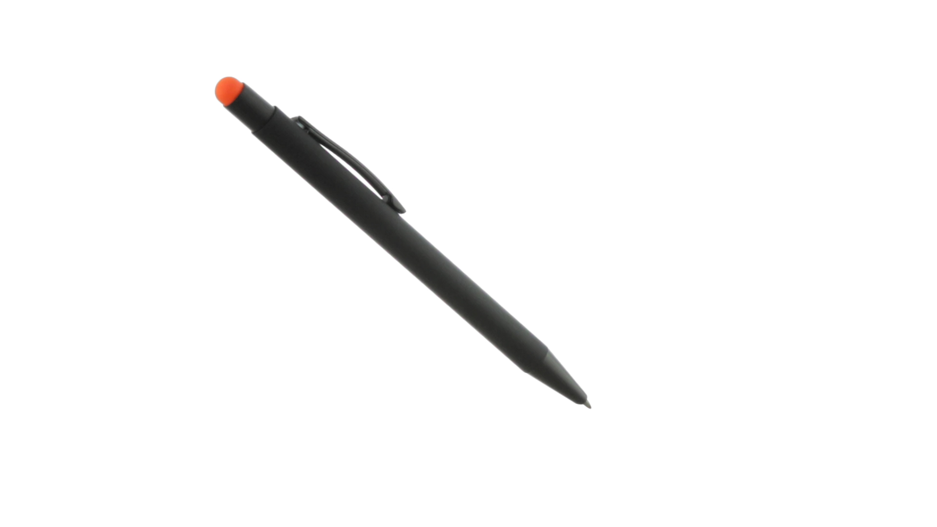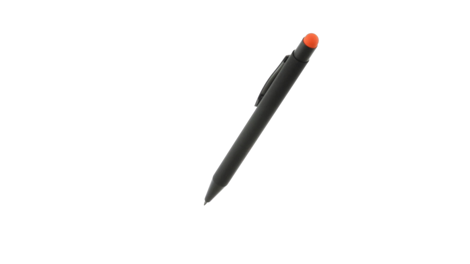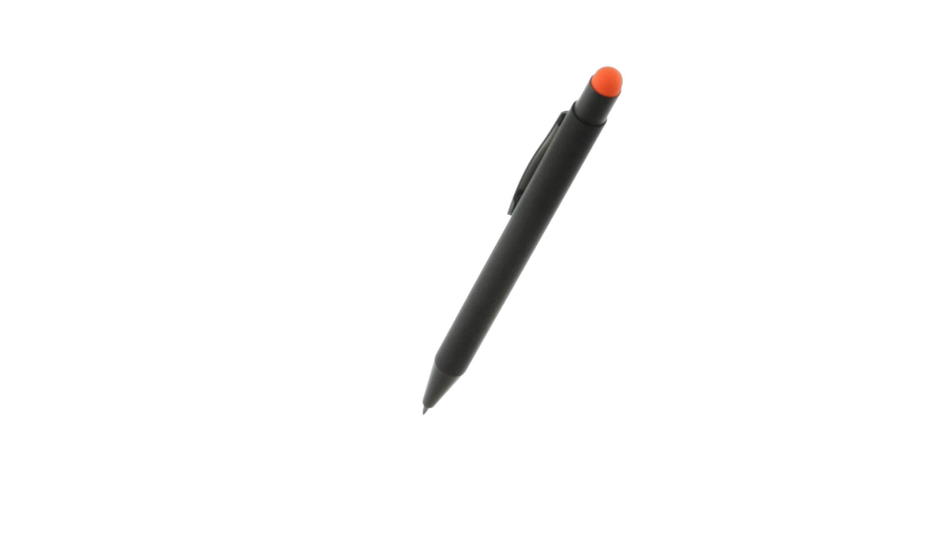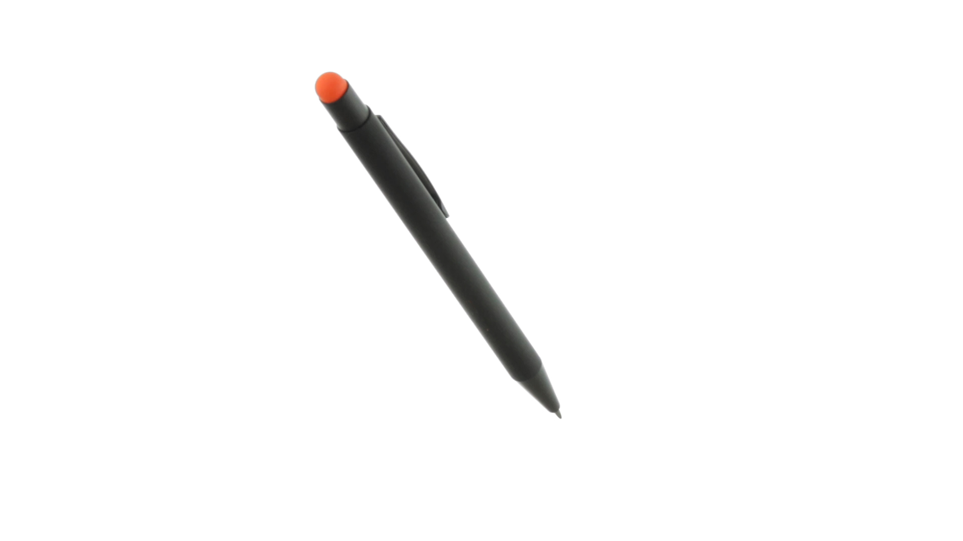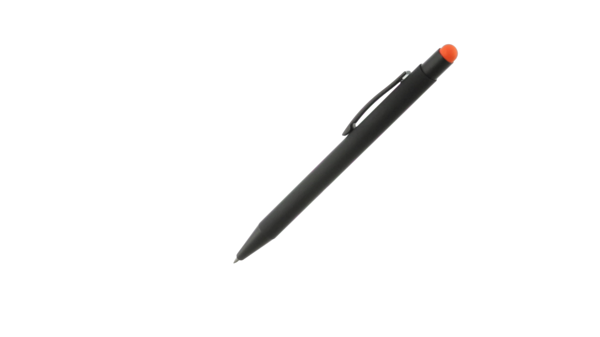 Stylus-Stift mit Druckknopfmechanismus, Gehäuse aus massivem Schwarz und Druckknopf in verschiedenen Farben. Mit Metall-Clip in Schwarz. Speziell für den Laserdruck entworfen und mit einer speziellen Aussenbeschichtung versehen, durch die Ihr Logo perfekt graviert wird - passend zur Farbe des Druckknopfes. Jumbo-Patrone mit blauer Tinte.