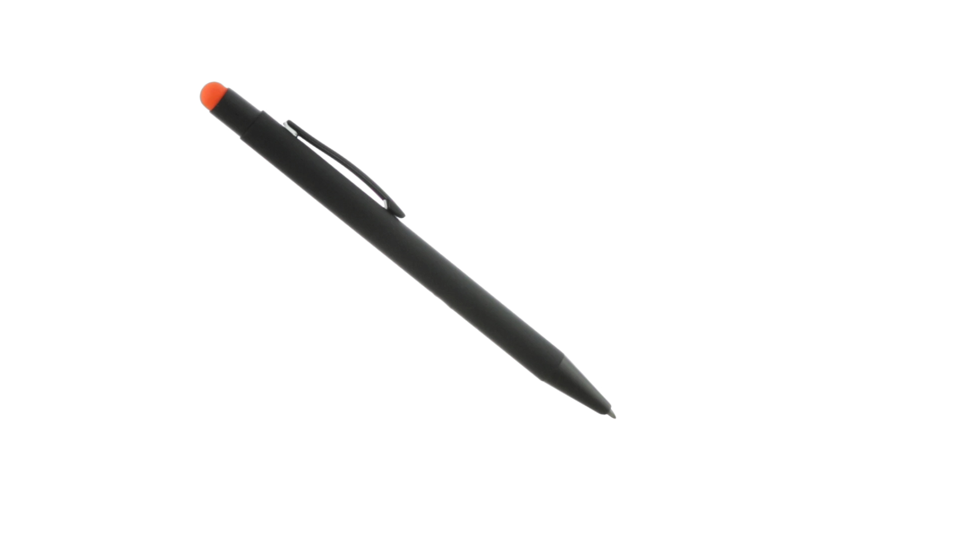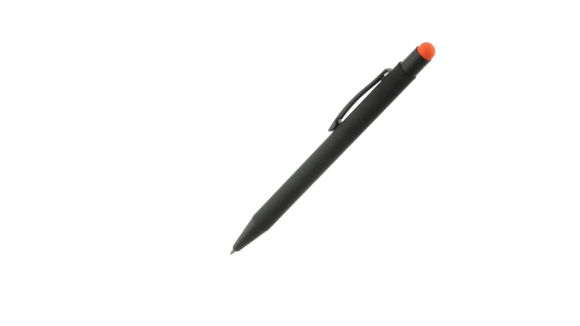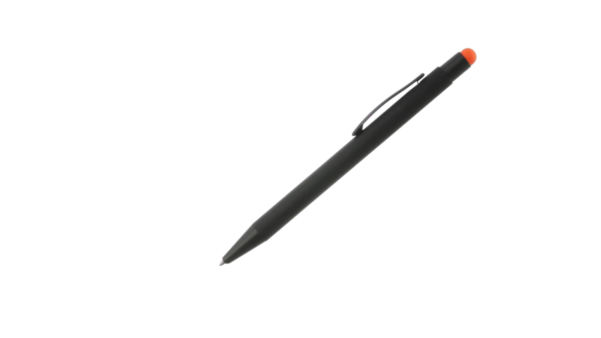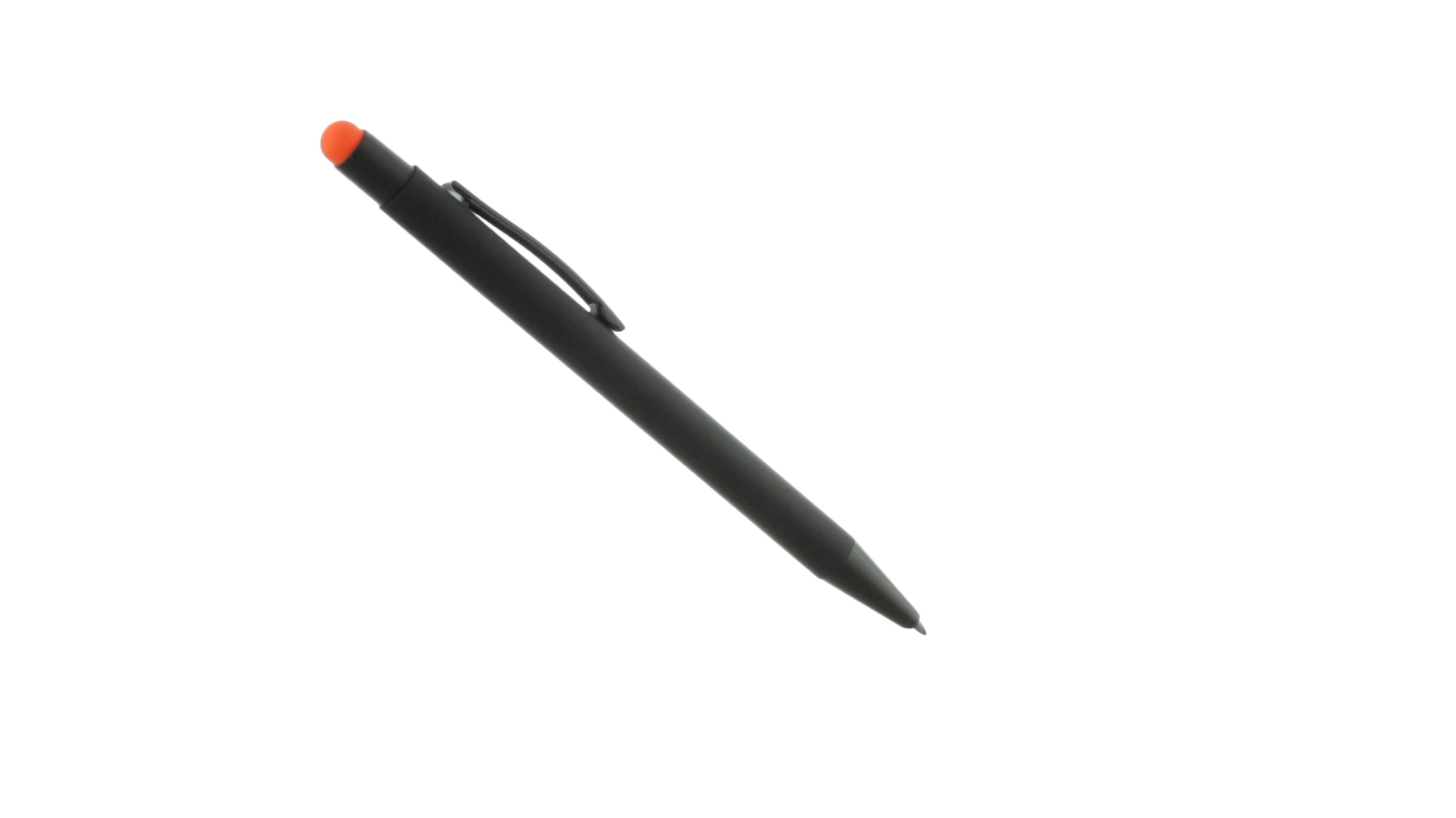 Stylus-Stift mit Druckknopfmechanismus, Gehäuse aus massivem Schwarz und Druckknopf in verschiedenen Farben. Mit Metall-Clip in Schwarz. Speziell für den Laserdruck entworfen und mit einer speziellen Aussenbeschichtung versehen, durch die Ihr Logo perfekt graviert wird - passend zur Farbe des Druckknopfes. Jumbo-Patrone mit blauer Tinte.