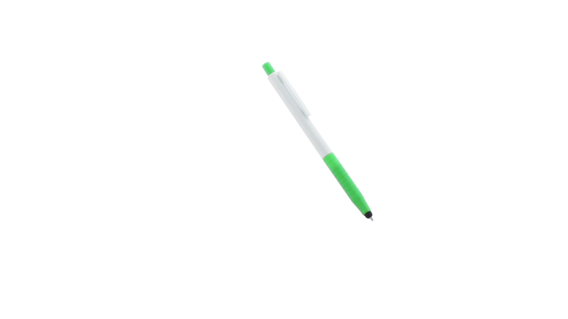 Druck-Kugelschreiber mit Stylus und coolem zweifarbigem Design mit weichem Griff und blauer Tinte. Mit glattem Schaft - speziell entwickelt für den Tampondruck.