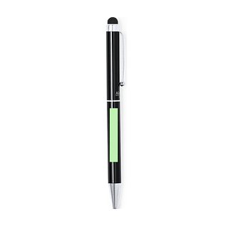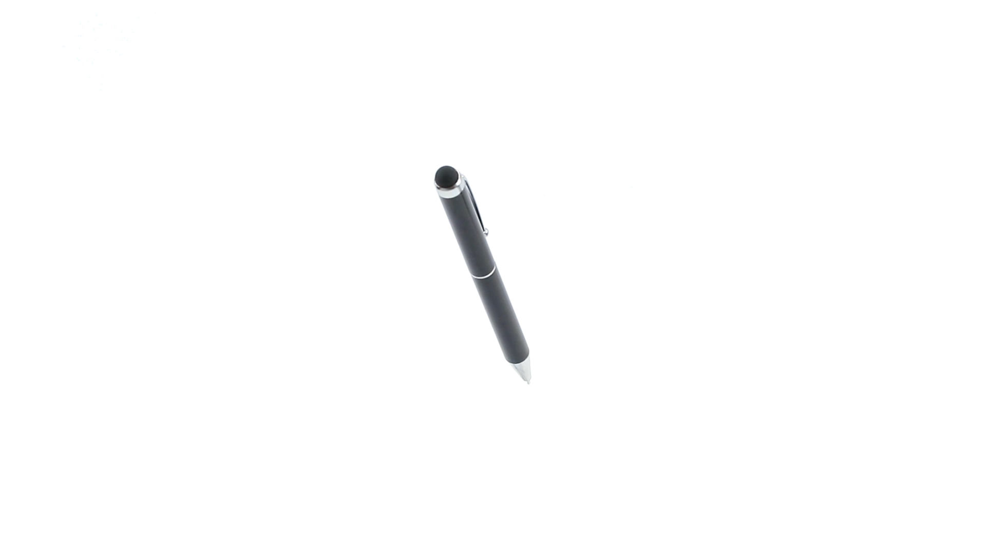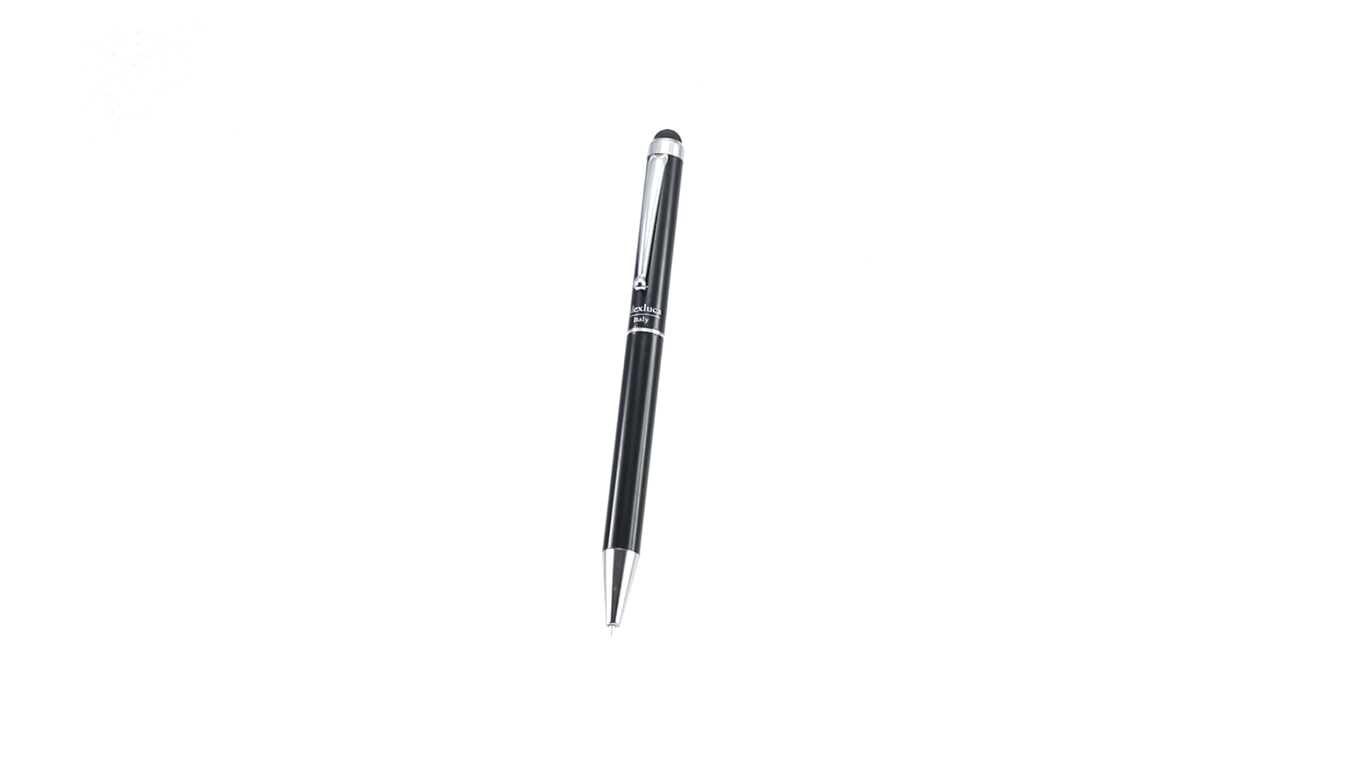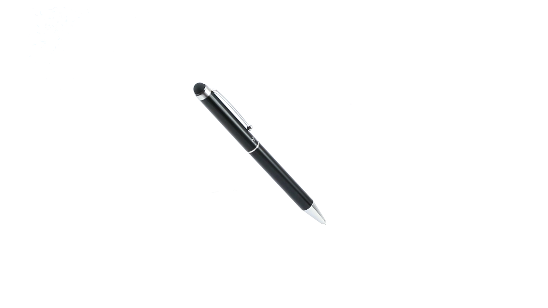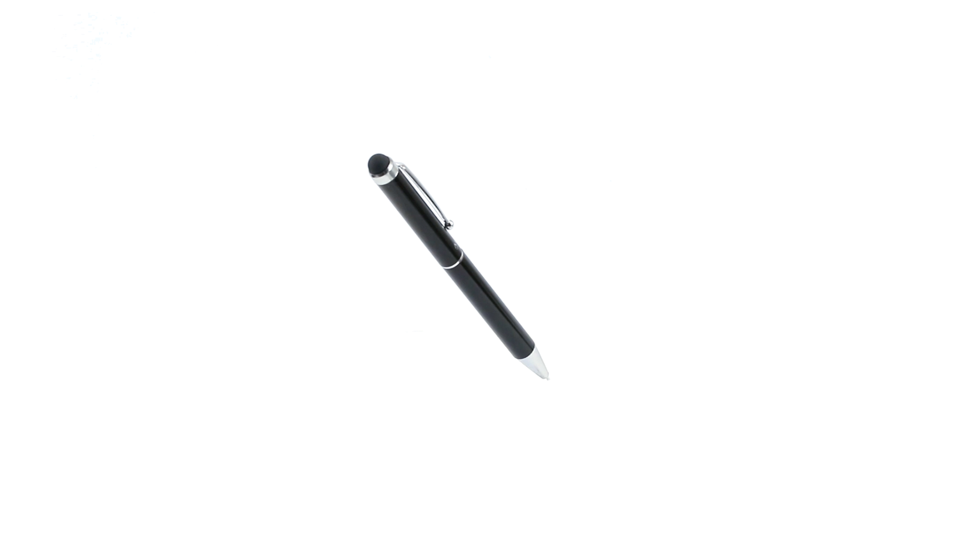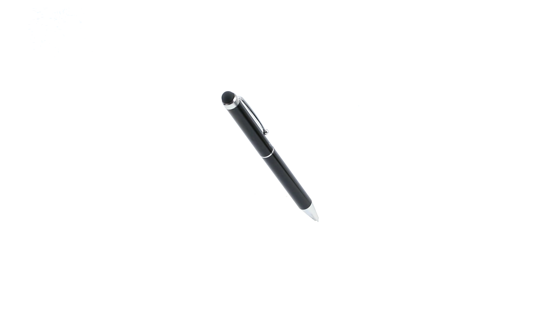 Dreh-Kugelschreiber mit Stylus von Alexluca. Mit angenehm weichem Metallschaft in elegantem Schwarz. Clip und Spitze in passender Farbe. Präsentiert in einem individuellen schwarzem Etui mit Markenlogo. Blaue Tinte.