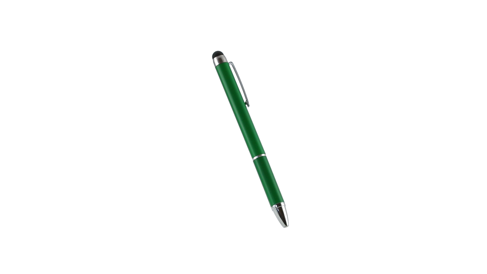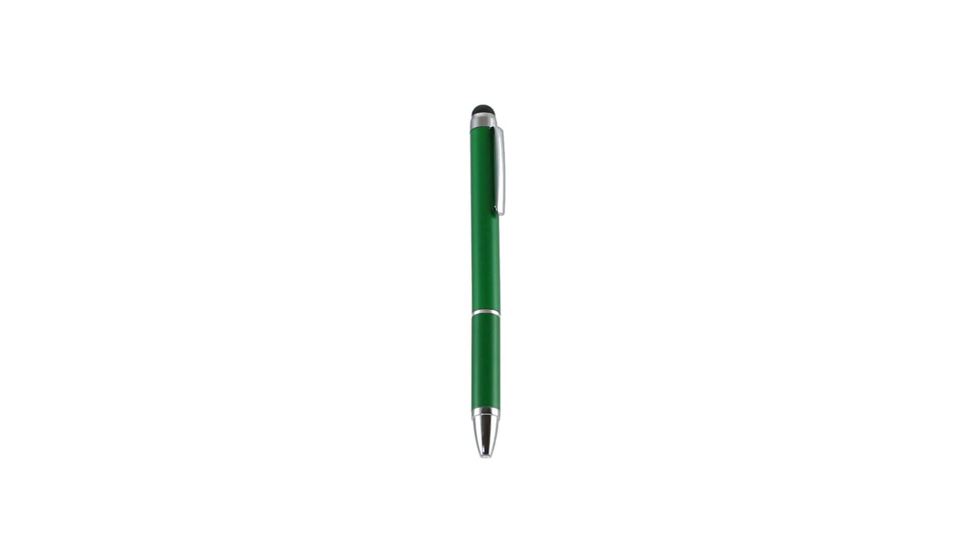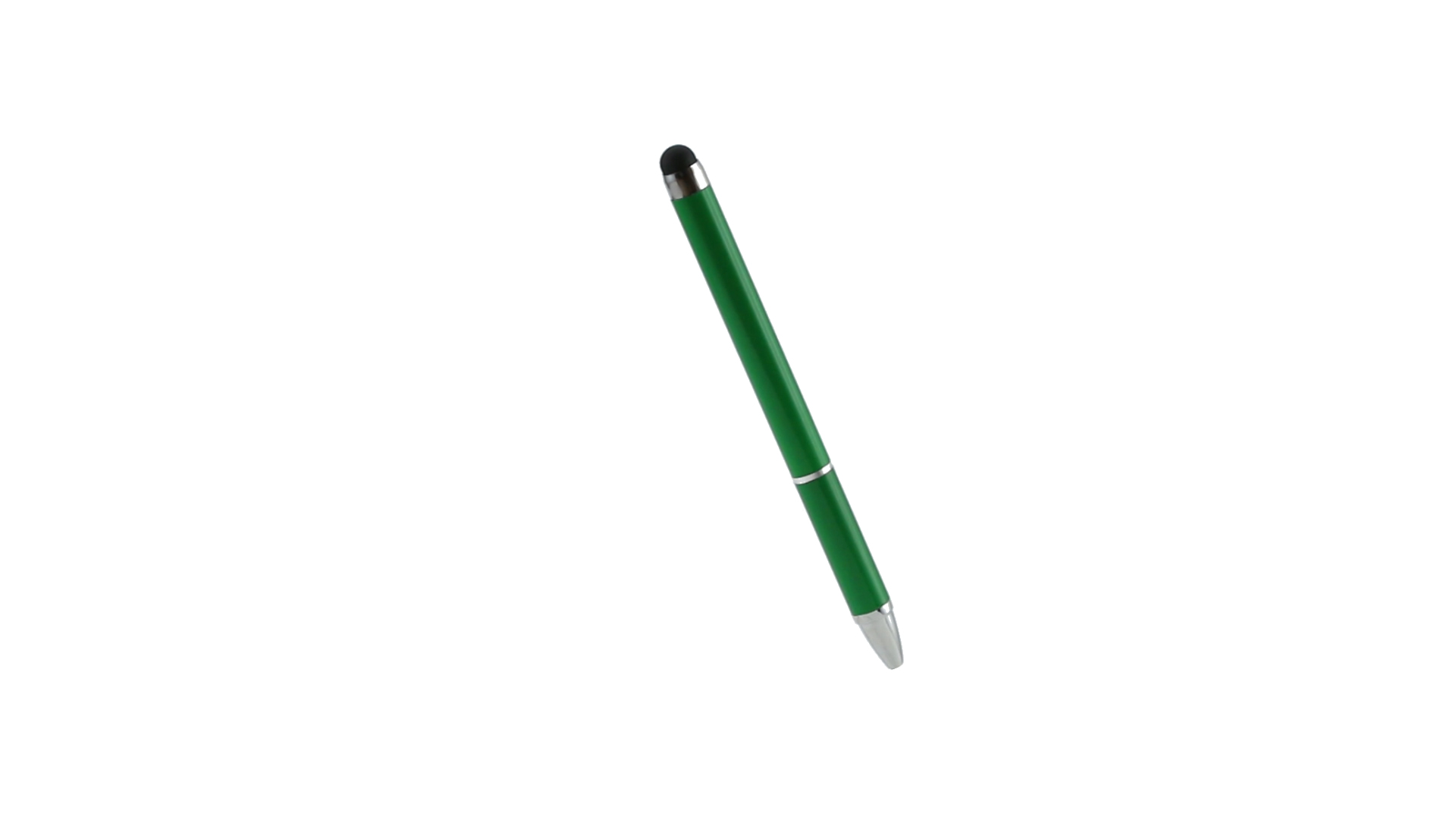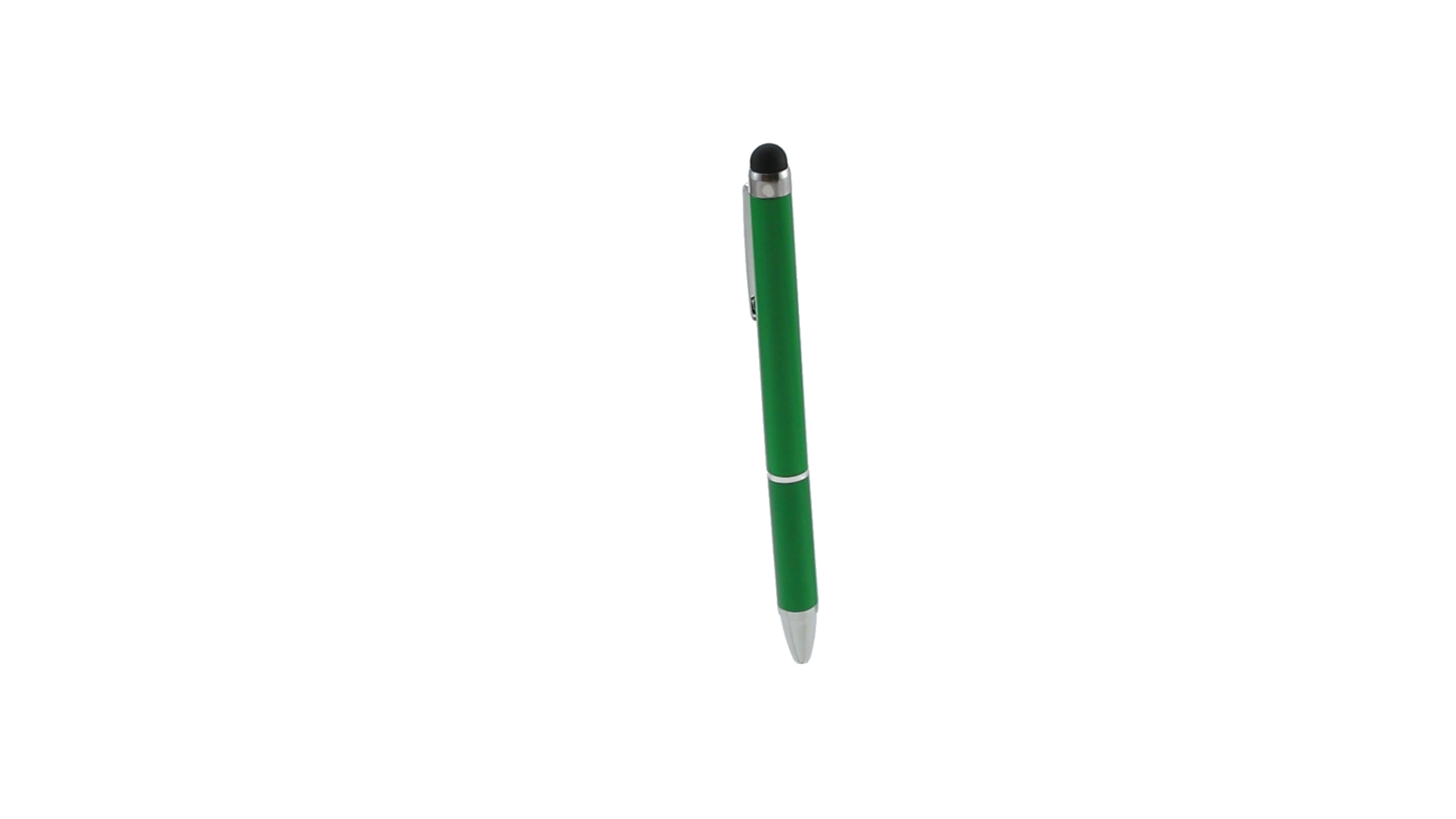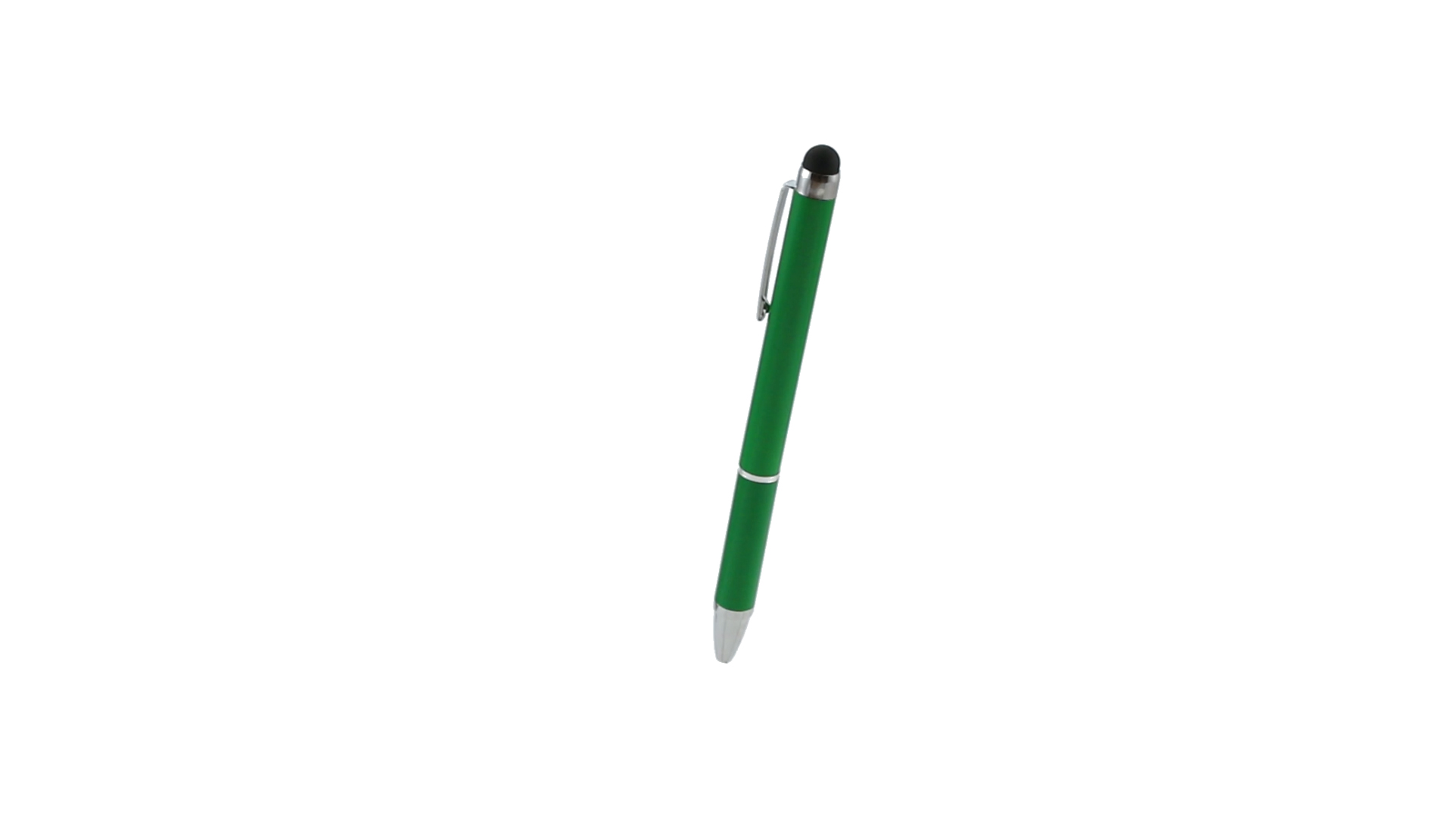 Dreh-Kugelschreiber mit Aluminiumgehäuse in Metallic-Ausführung und kräftigen Farben. Mit integriertem Stylus sowie Kontrastdetails und Ringen in Silber. Blaue Tinte.