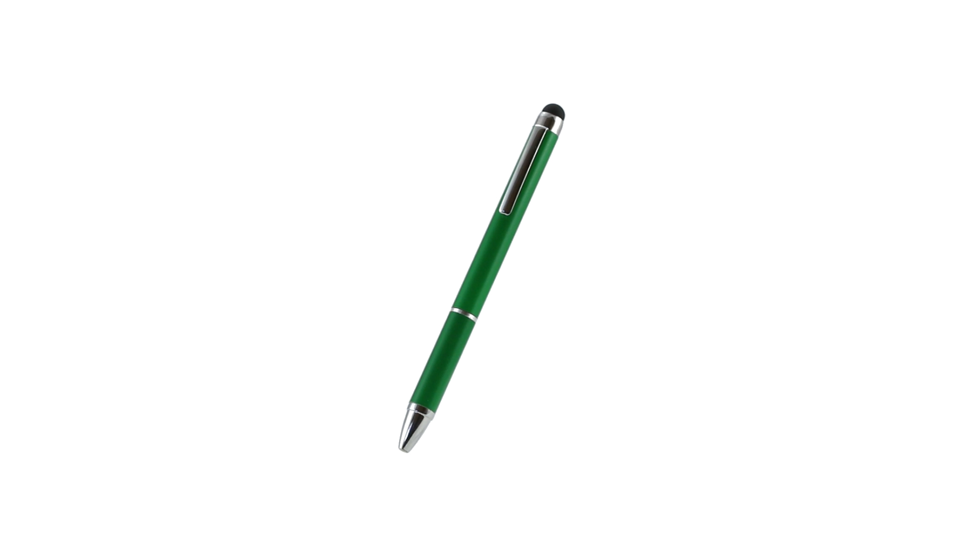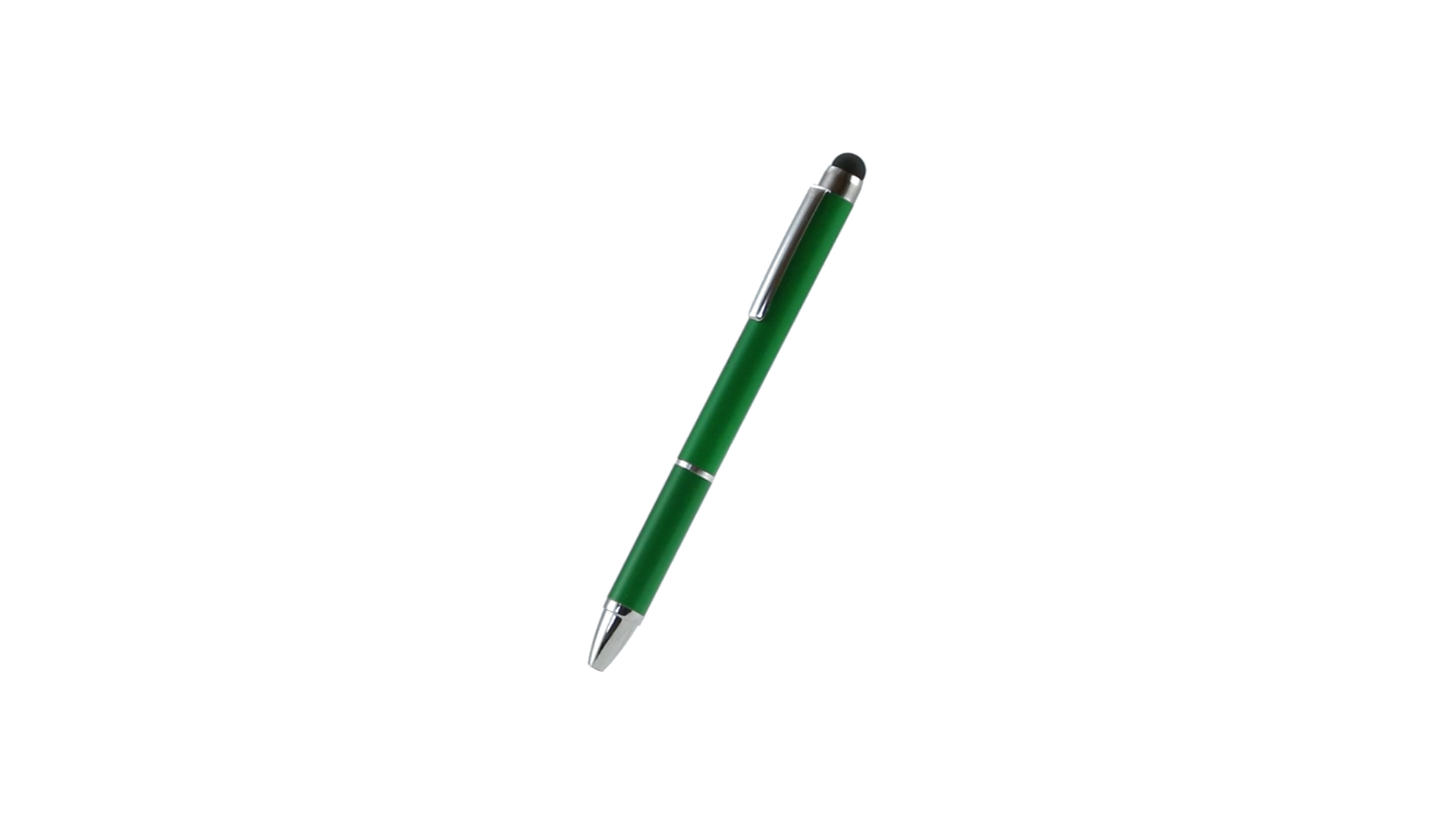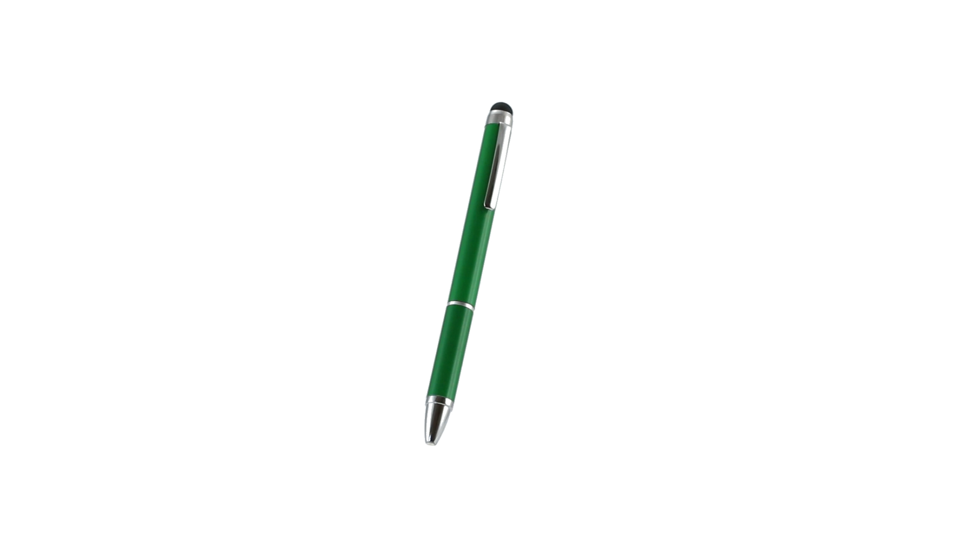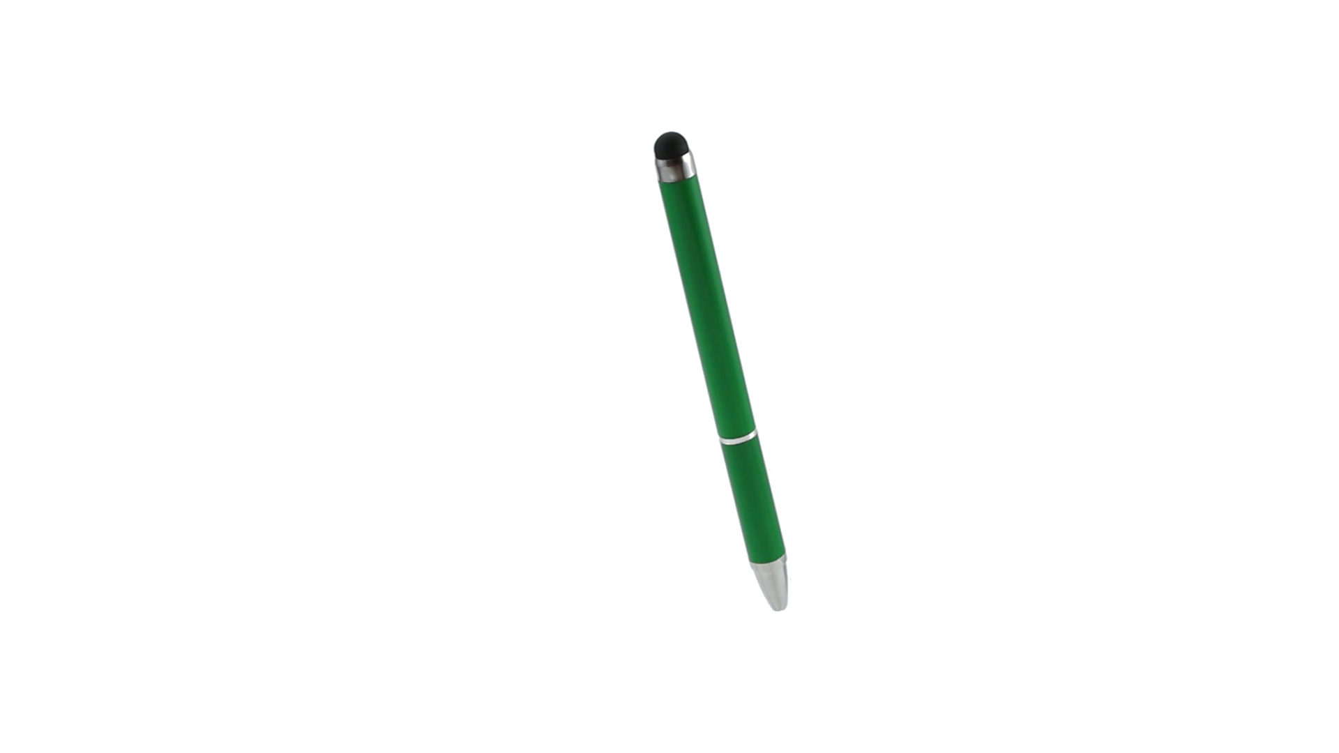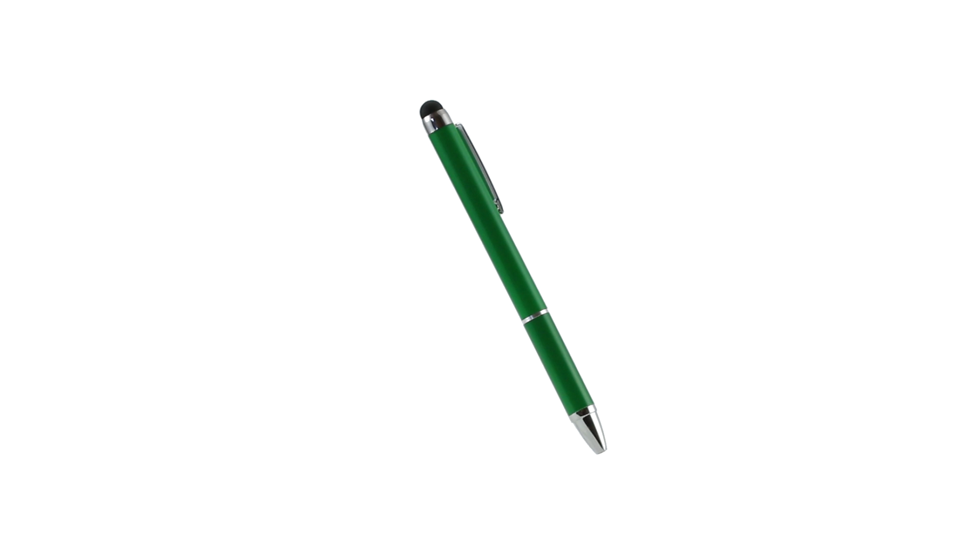 Dreh-Kugelschreiber mit Aluminiumgehäuse in Metallic-Ausführung und kräftigen Farben. Mit integriertem Stylus sowie Kontrastdetails und Ringen in Silber. Blaue Tinte.