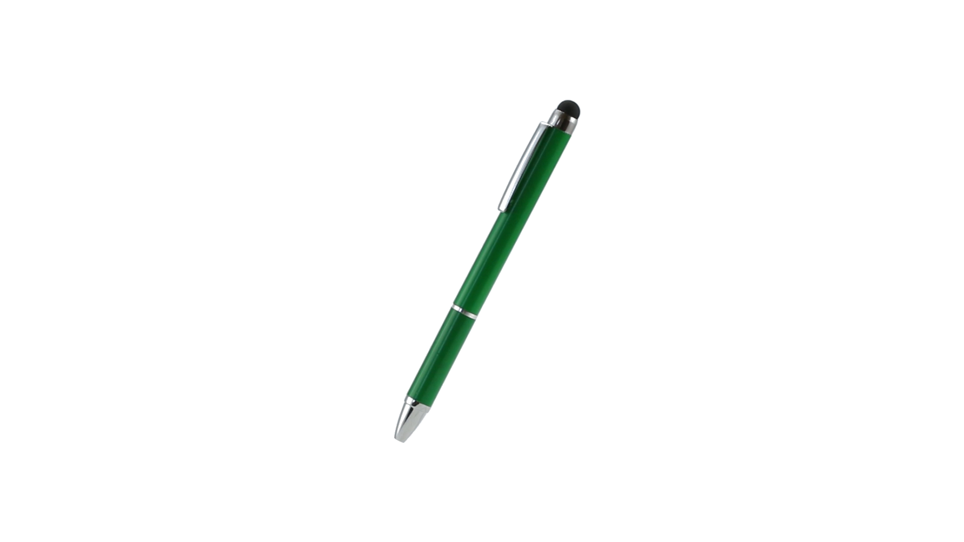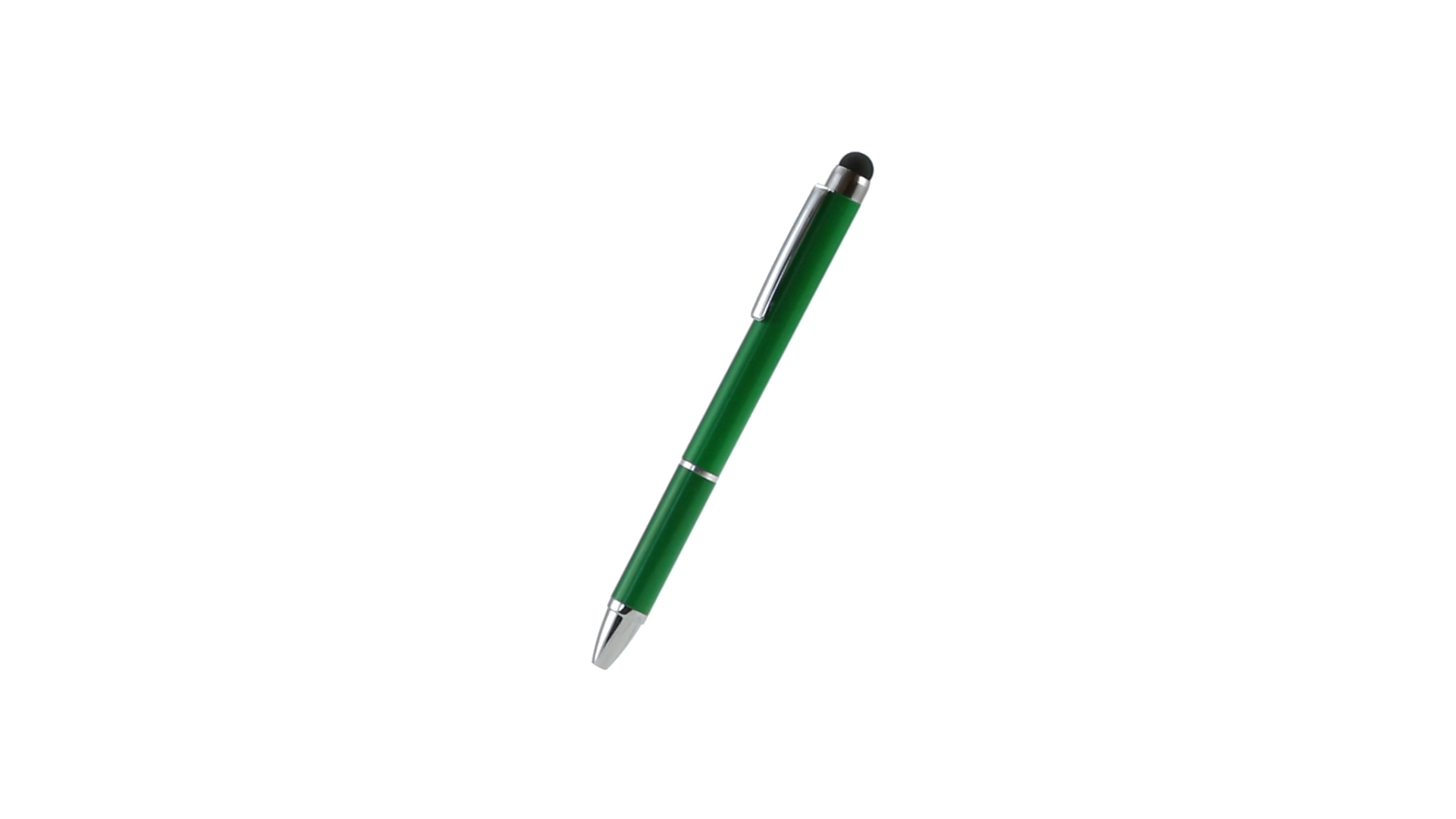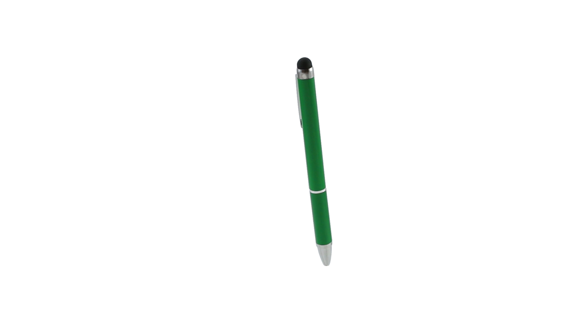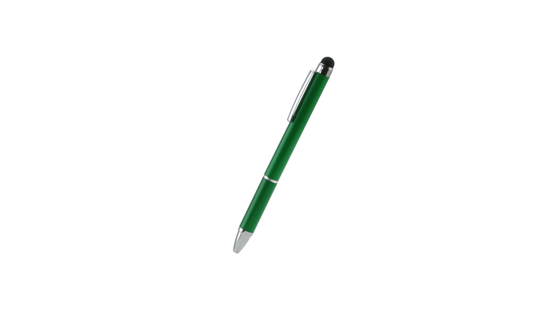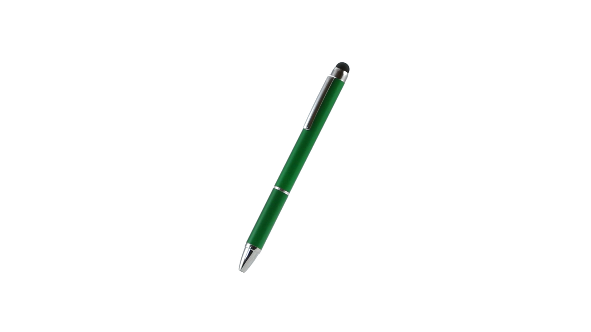 Dreh-Kugelschreiber mit Aluminiumgehäuse in Metallic-Ausführung und kräftigen Farben. Mit integriertem Stylus sowie Kontrastdetails und Ringen in Silber. Blaue Tinte.