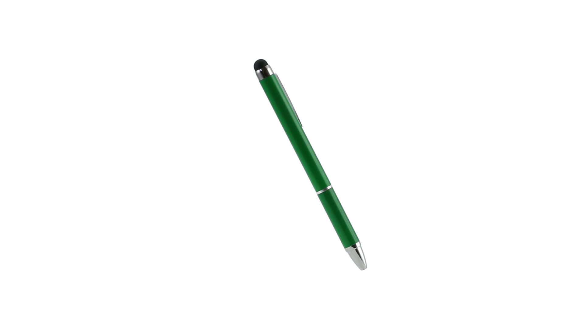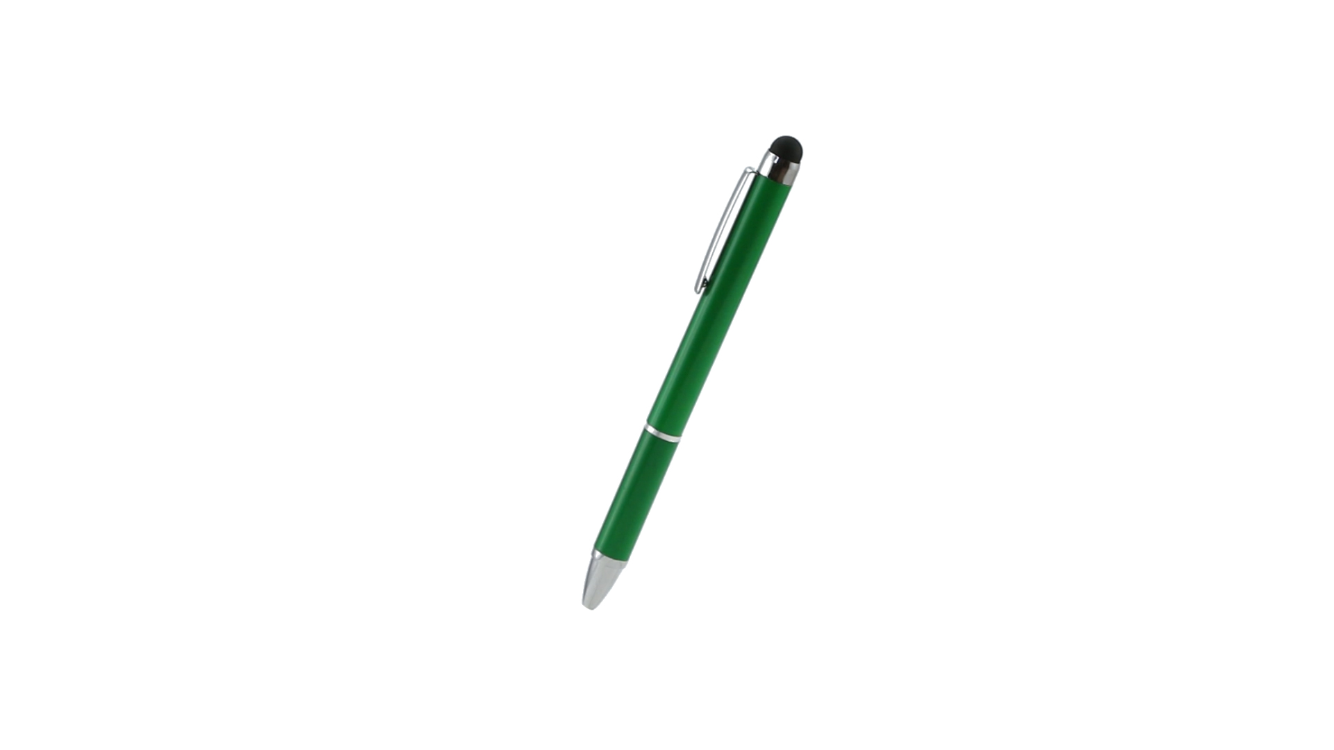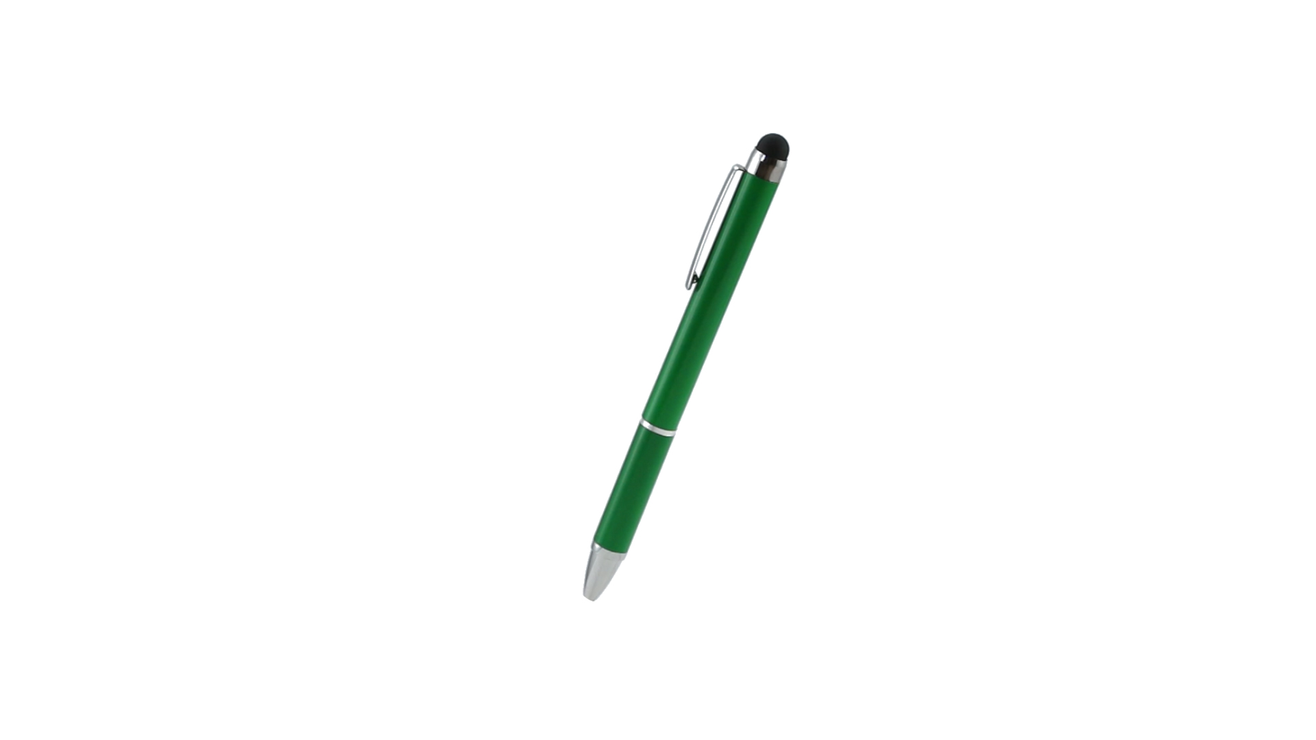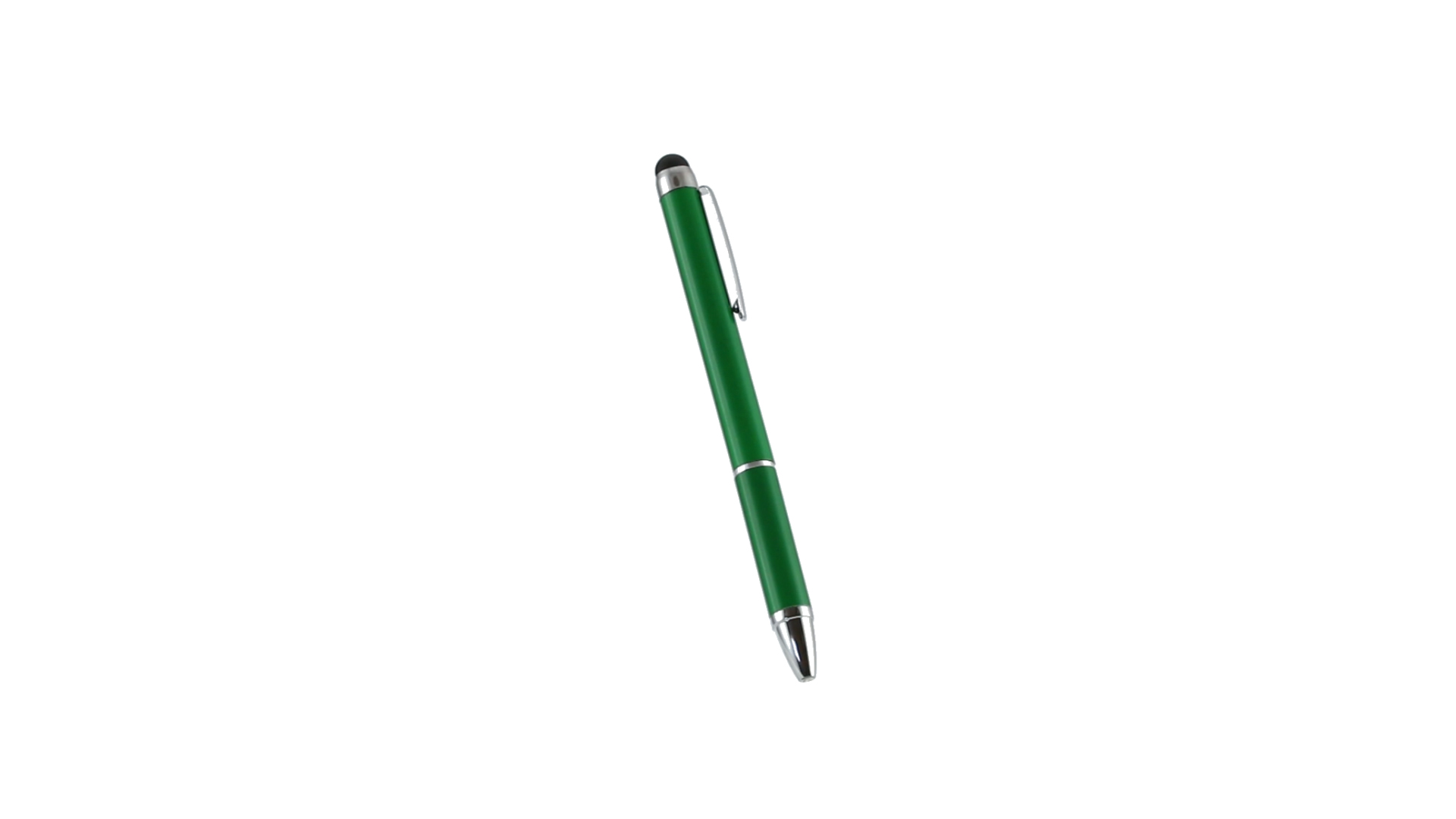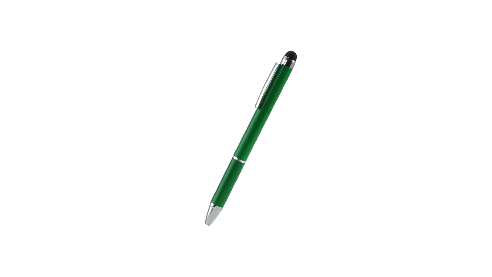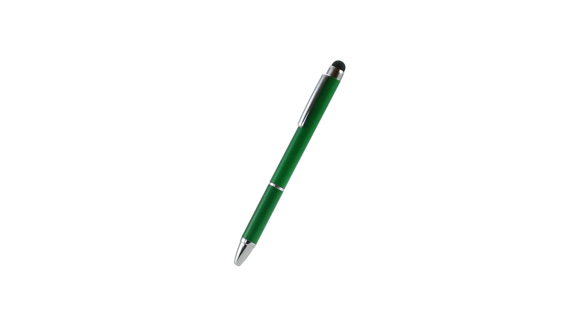 Dreh-Kugelschreiber mit Aluminiumgehäuse in Metallic-Ausführung und kräftigen Farben. Mit integriertem Stylus sowie Kontrastdetails und Ringen in Silber. Blaue Tinte.