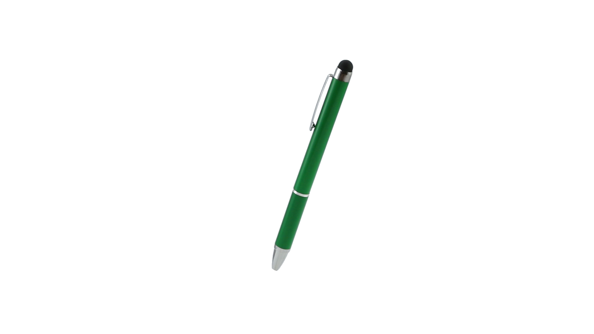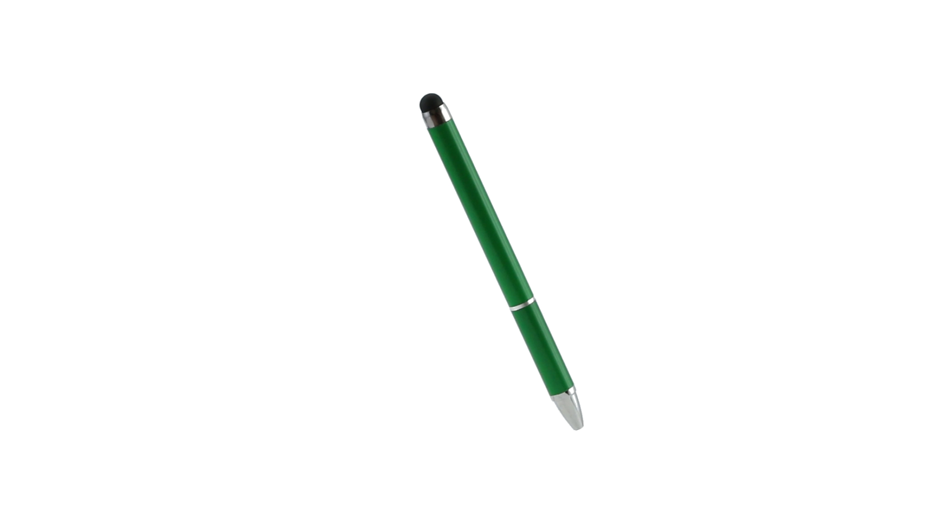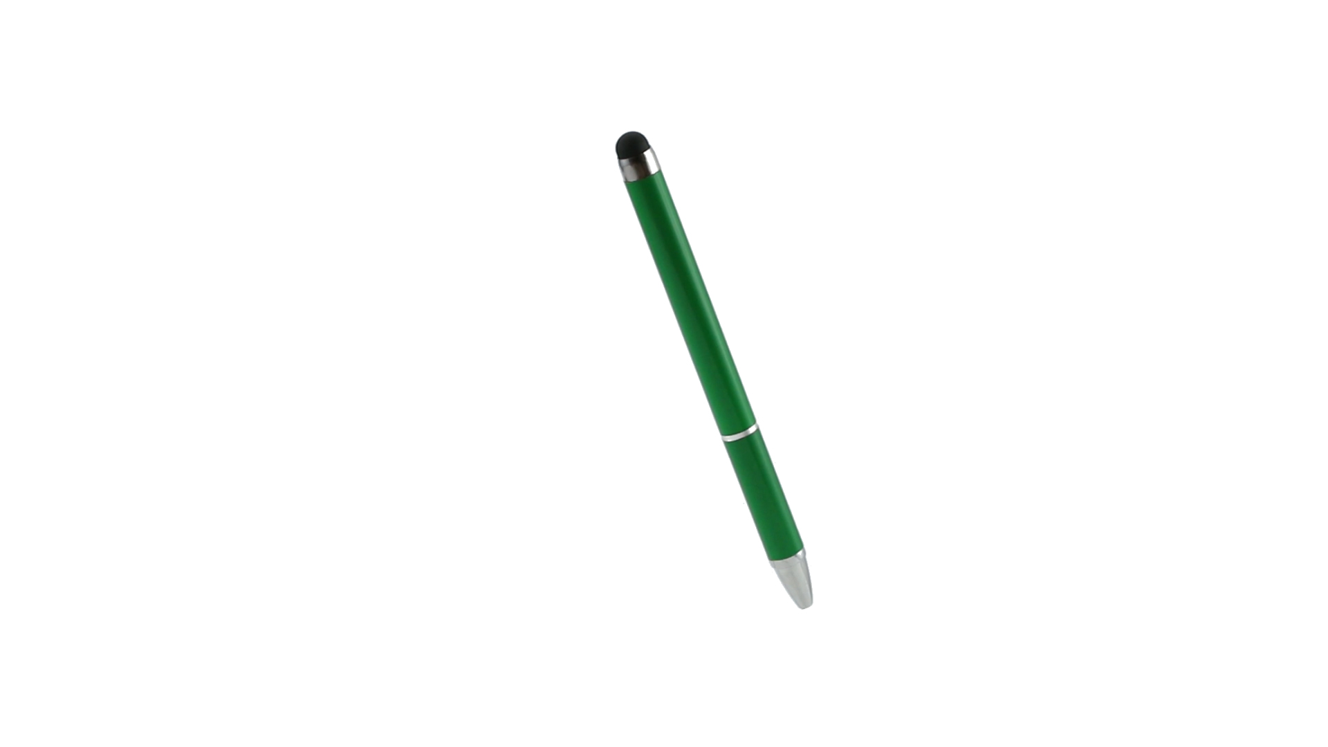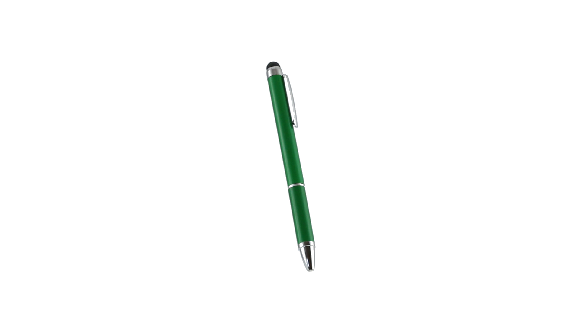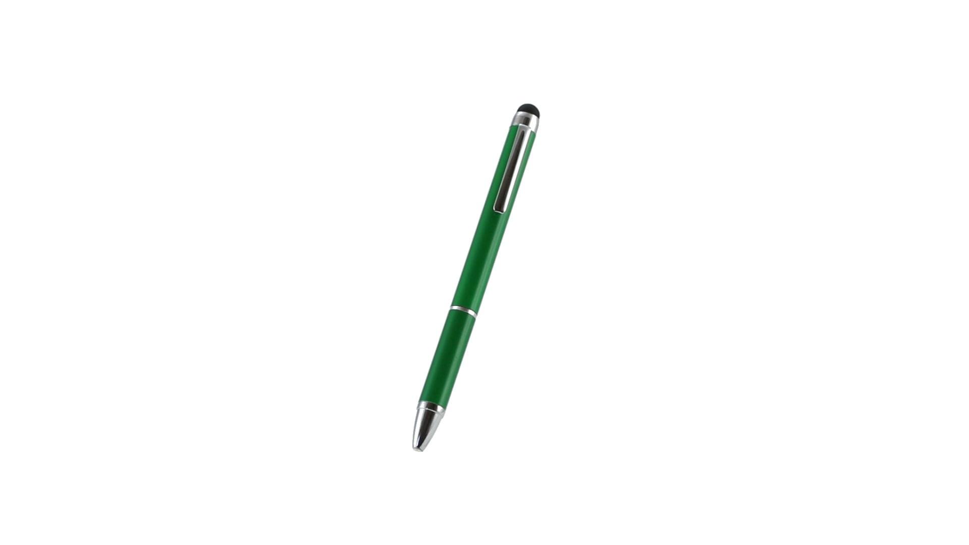 Dreh-Kugelschreiber mit Aluminiumgehäuse in Metallic-Ausführung und kräftigen Farben. Mit integriertem Stylus sowie Kontrastdetails und Ringen in Silber. Blaue Tinte.