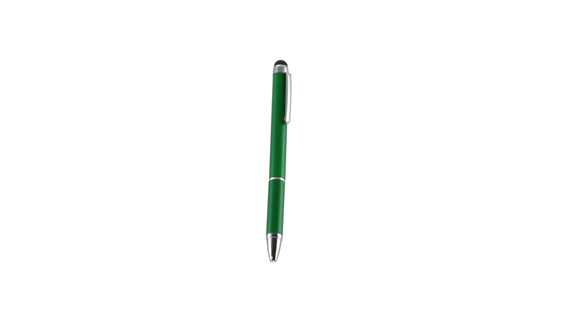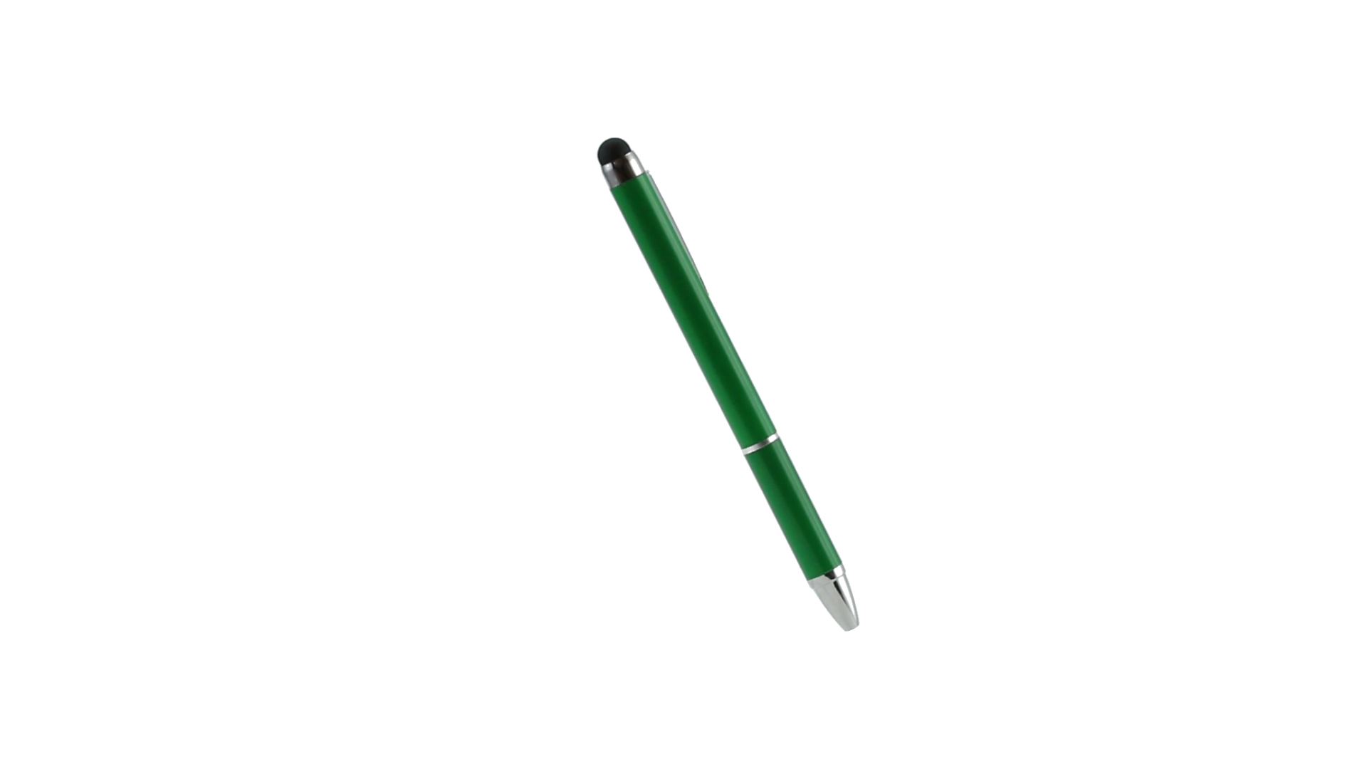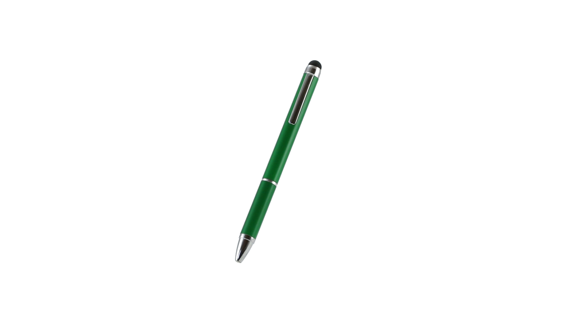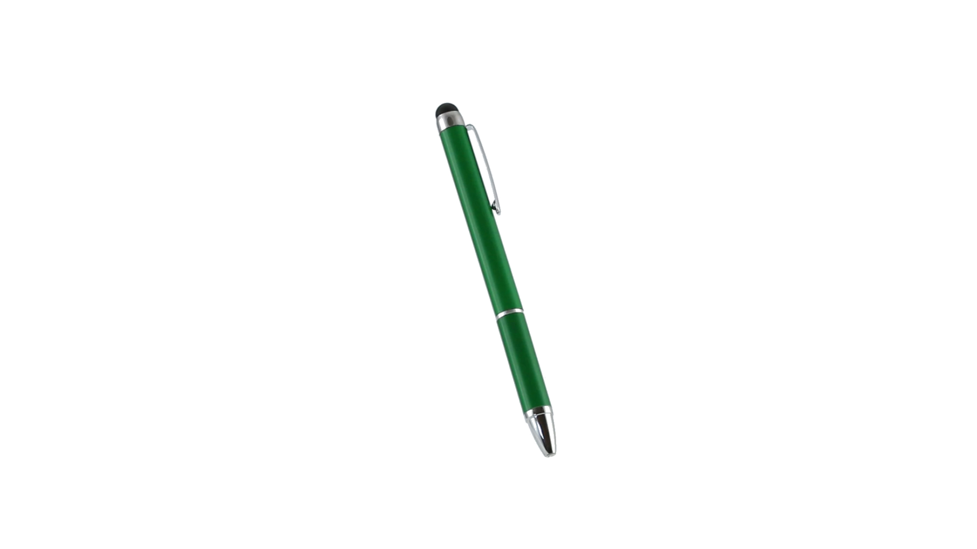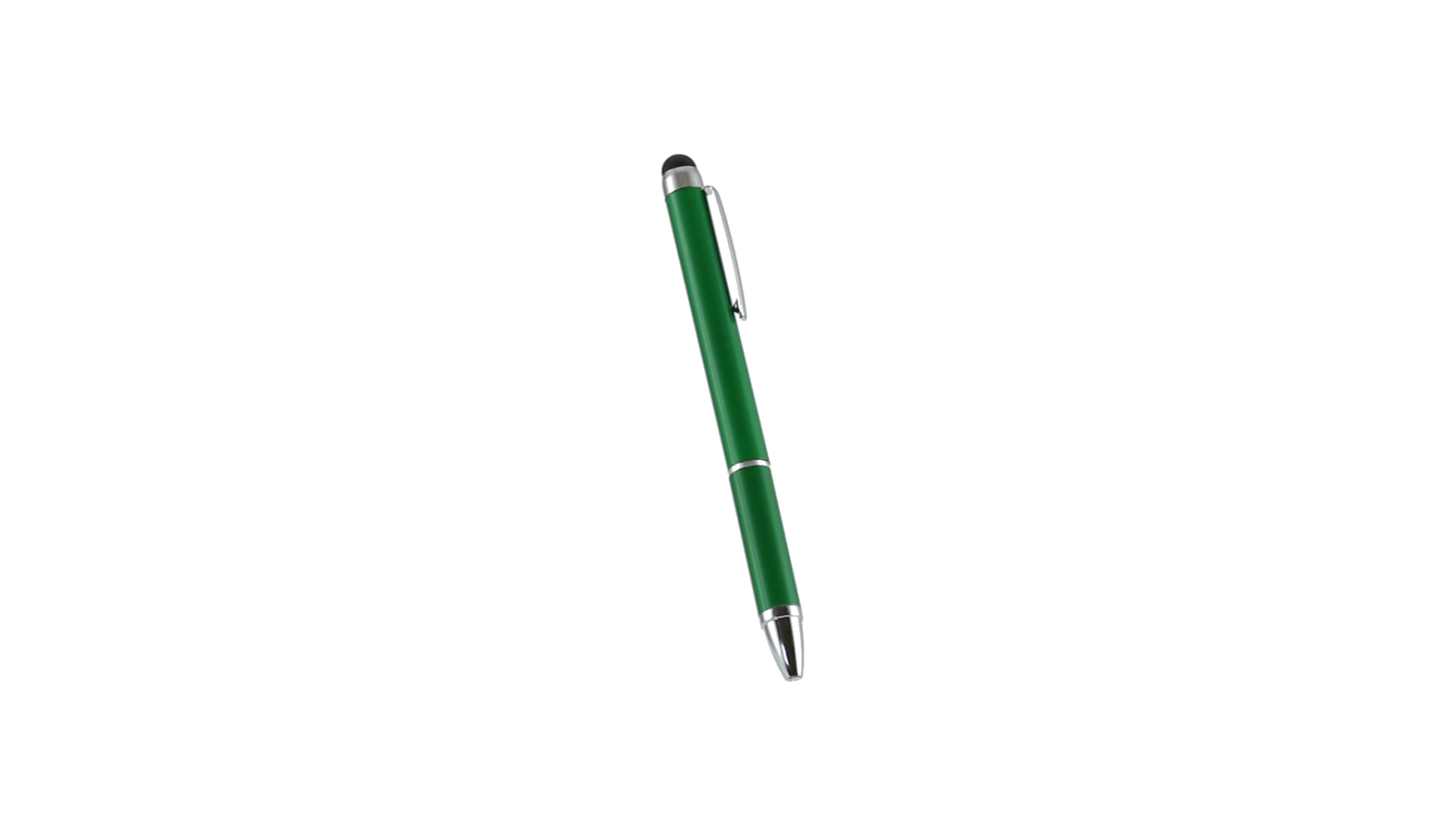 Dreh-Kugelschreiber mit Aluminiumgehäuse in Metallic-Ausführung und kräftigen Farben. Mit integriertem Stylus sowie Kontrastdetails und Ringen in Silber. Blaue Tinte.