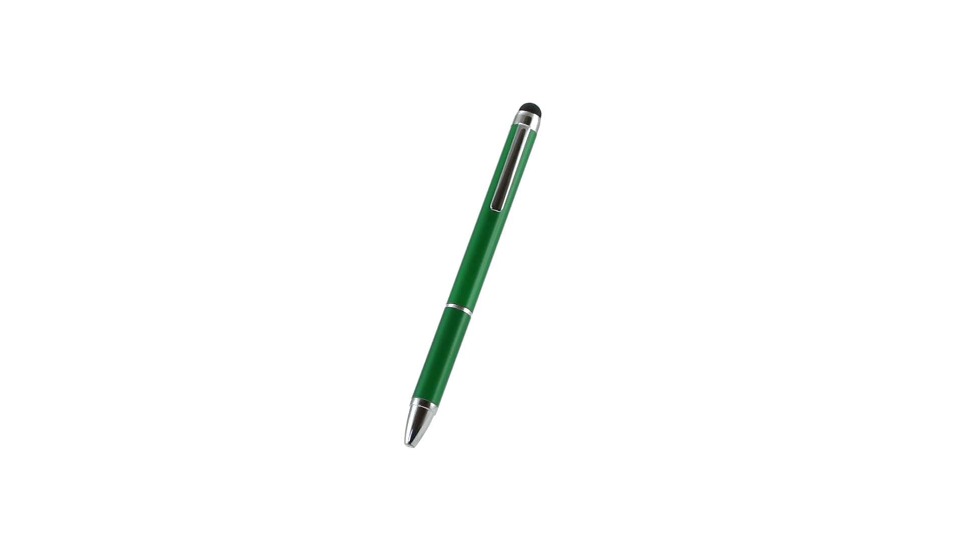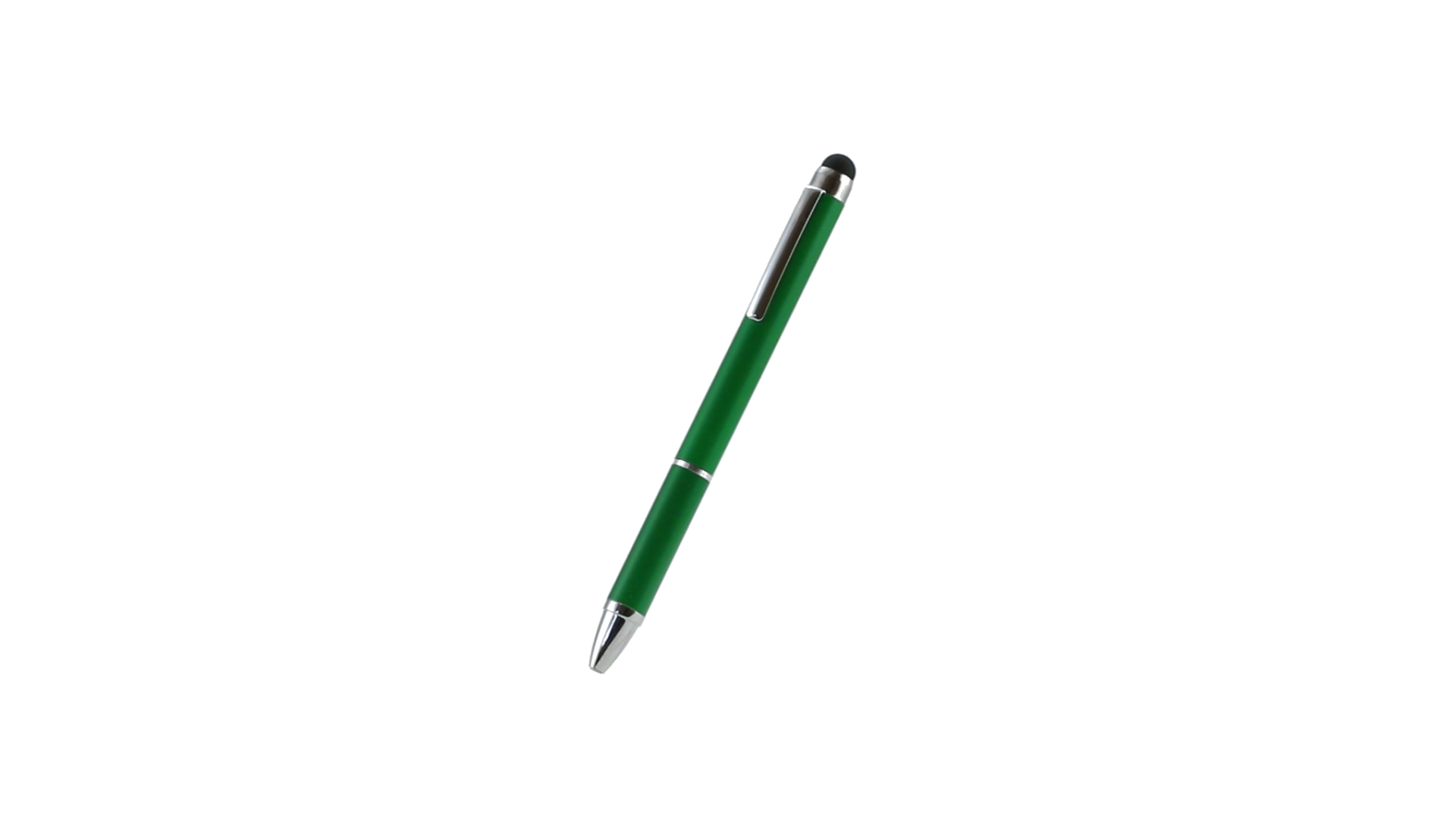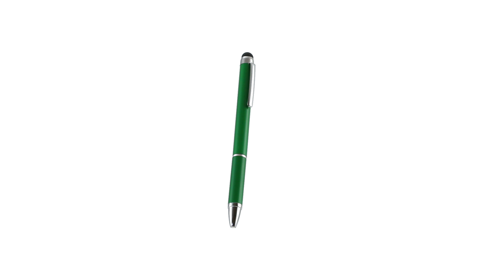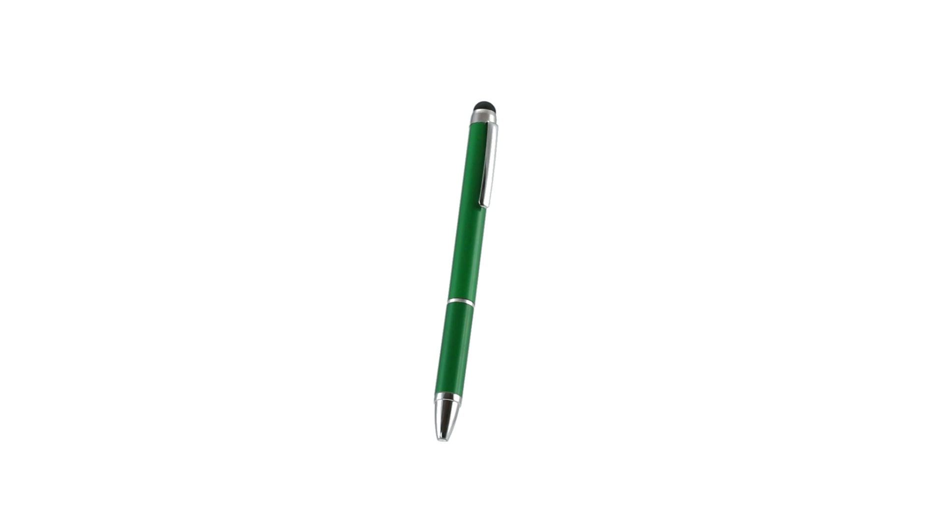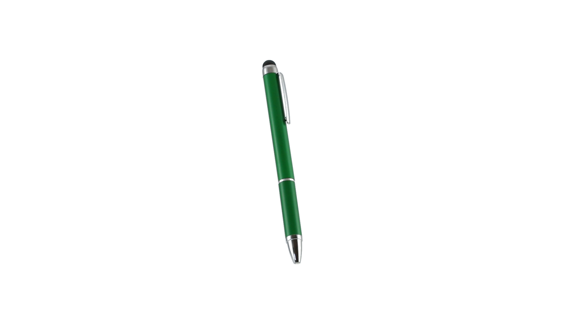 Dreh-Kugelschreiber mit Aluminiumgehäuse in Metallic-Ausführung und kräftigen Farben. Mit integriertem Stylus sowie Kontrastdetails und Ringen in Silber. Blaue Tinte.