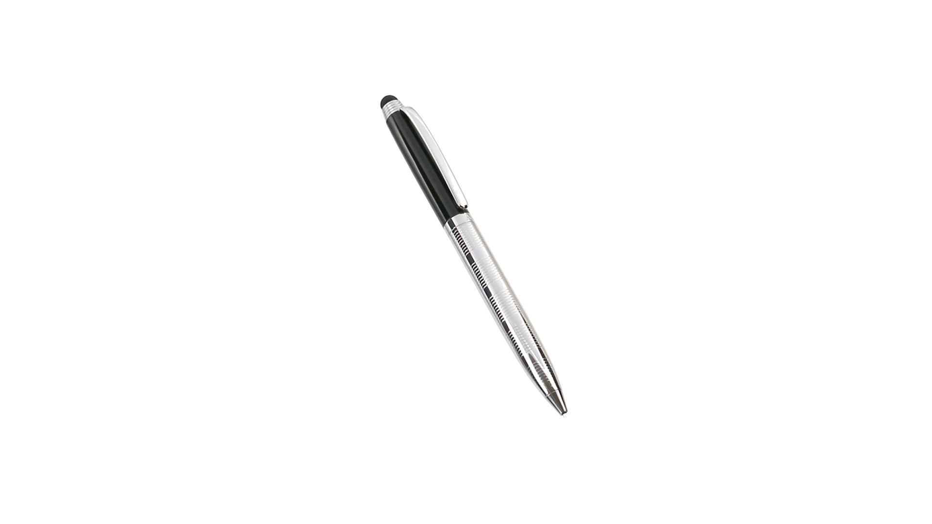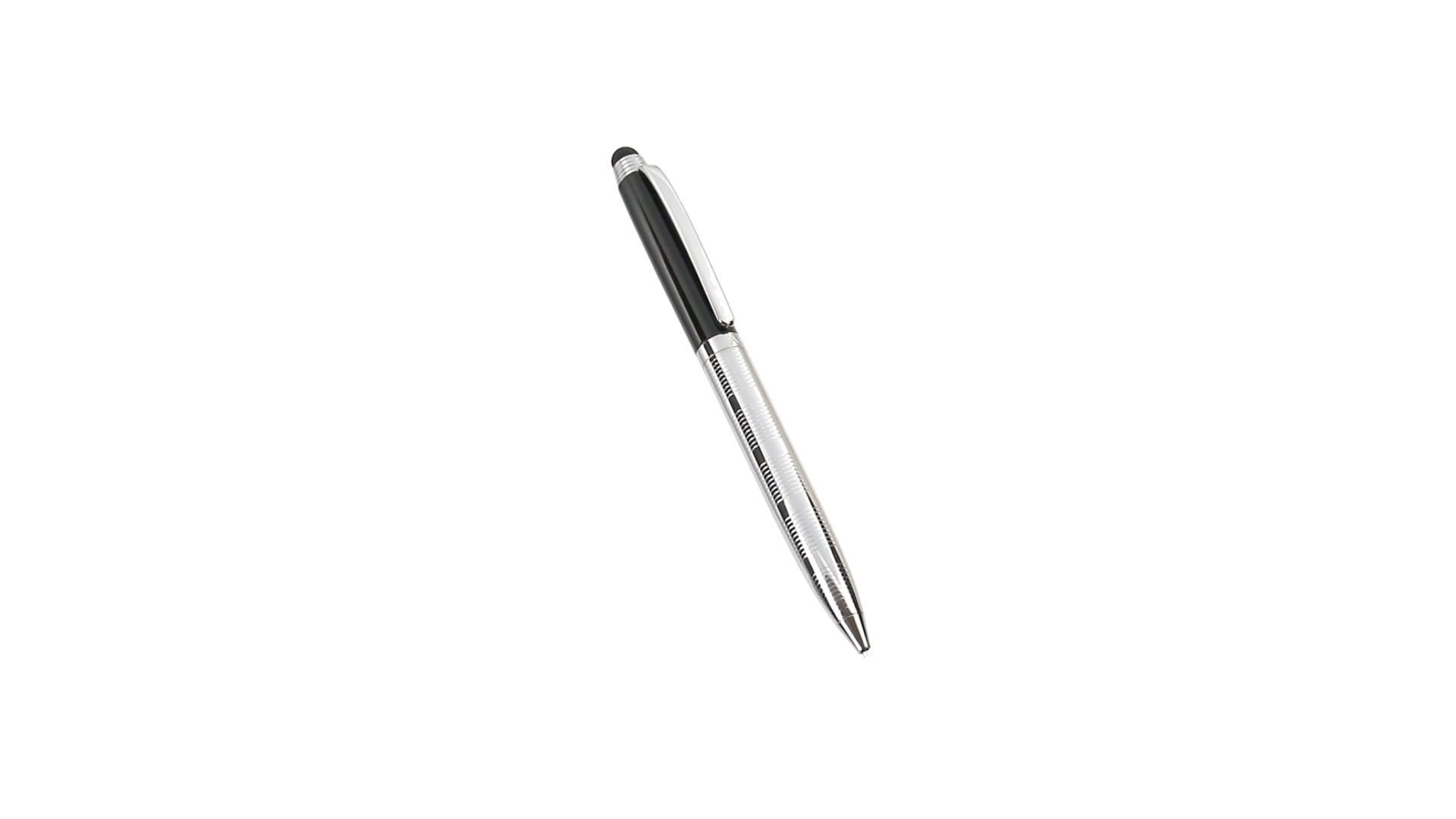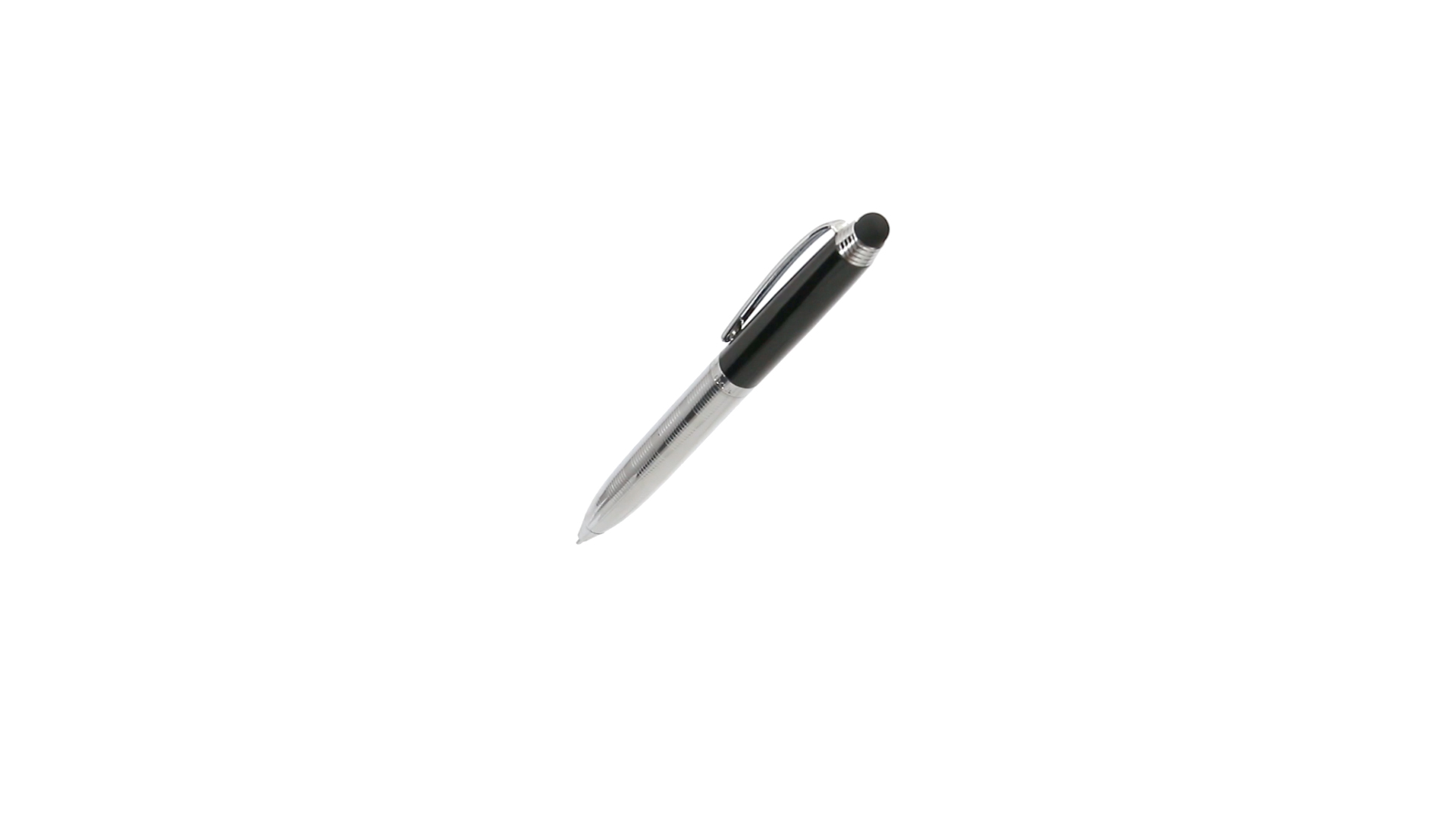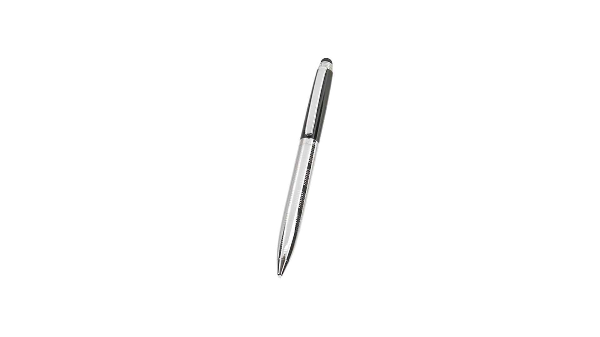 Dreh-Kugelschreiber mit Stylus von Alexluca. Mit angenehm weichem Metallschaft in einer Kombination aus elegantem Schwarz mit Silber. Clip und Griff in passender Farbe. Präsentiert in einem individuellen schwarzem Etui mit Markenlogo. Blaue Tinte.