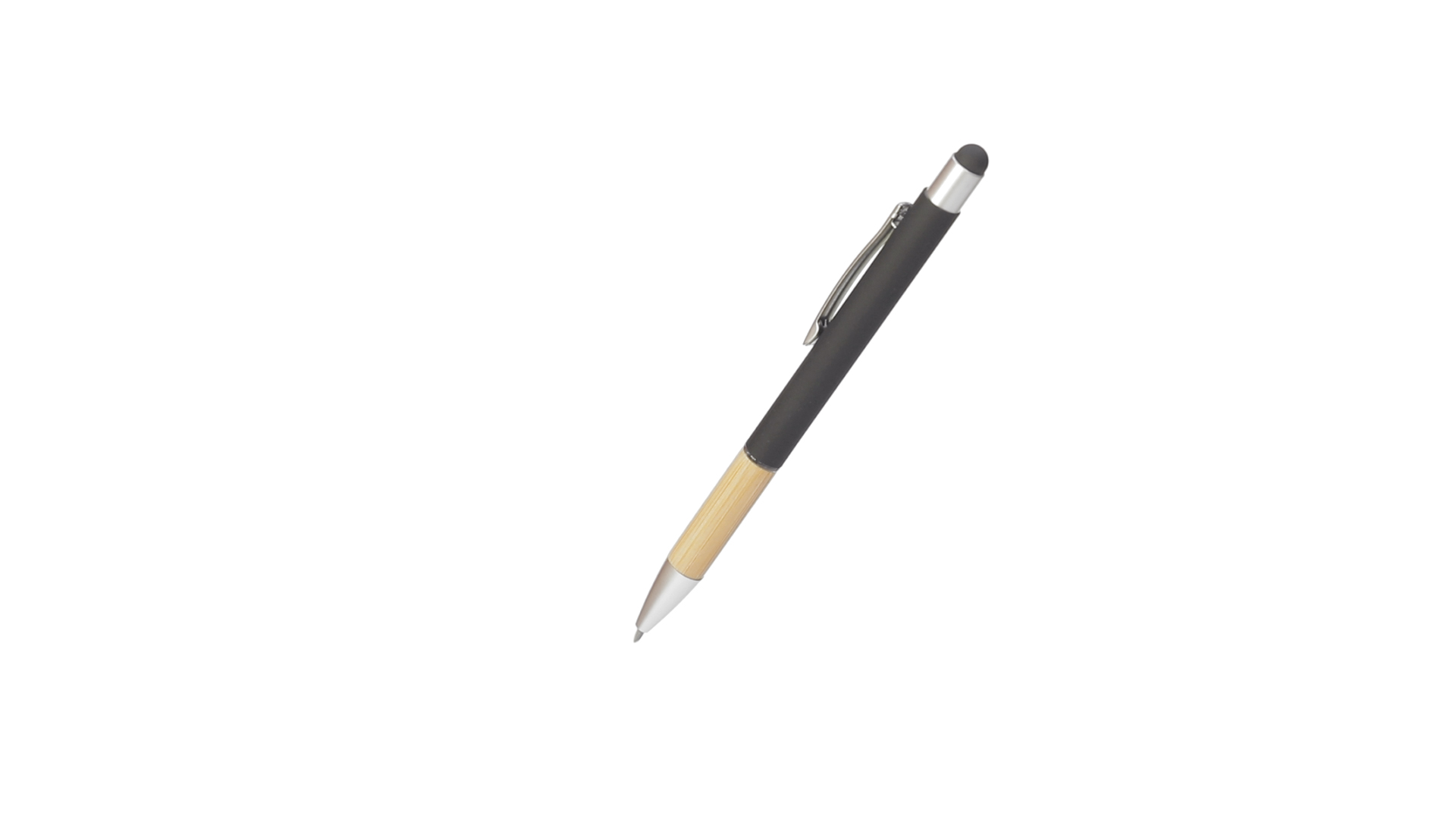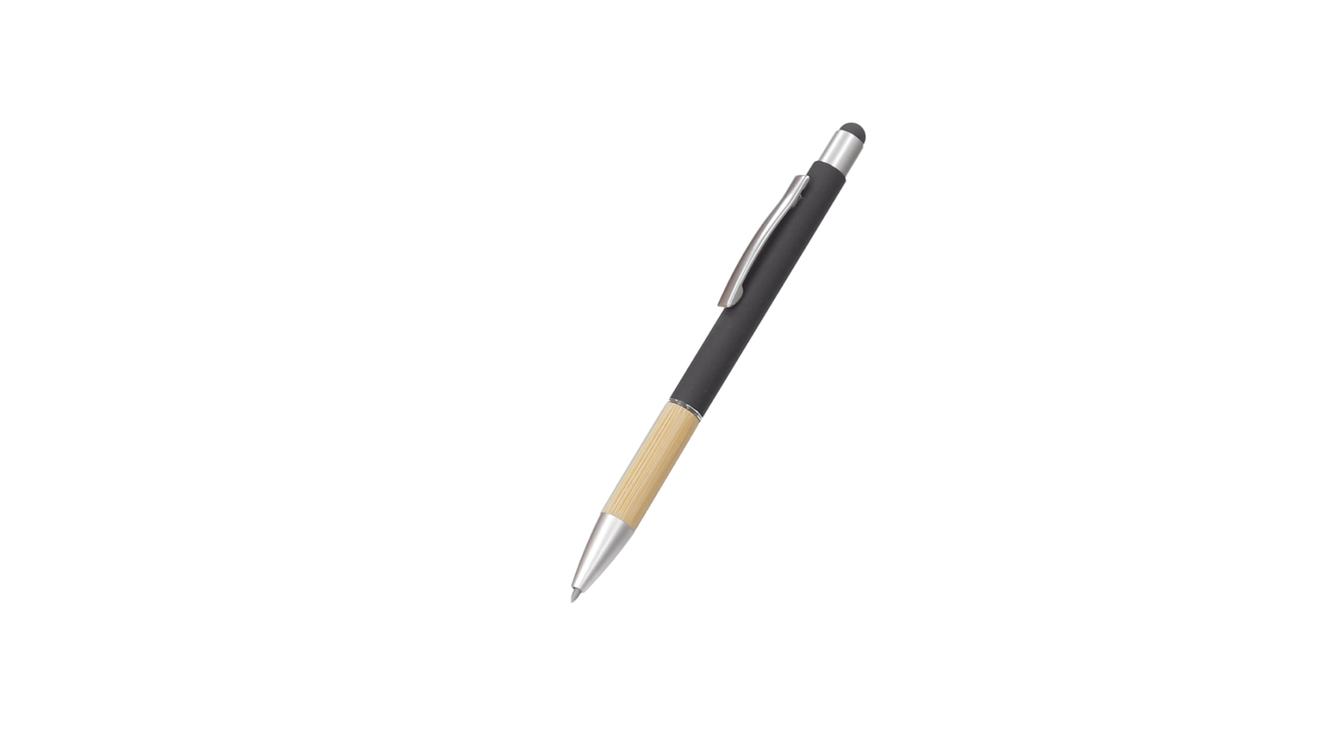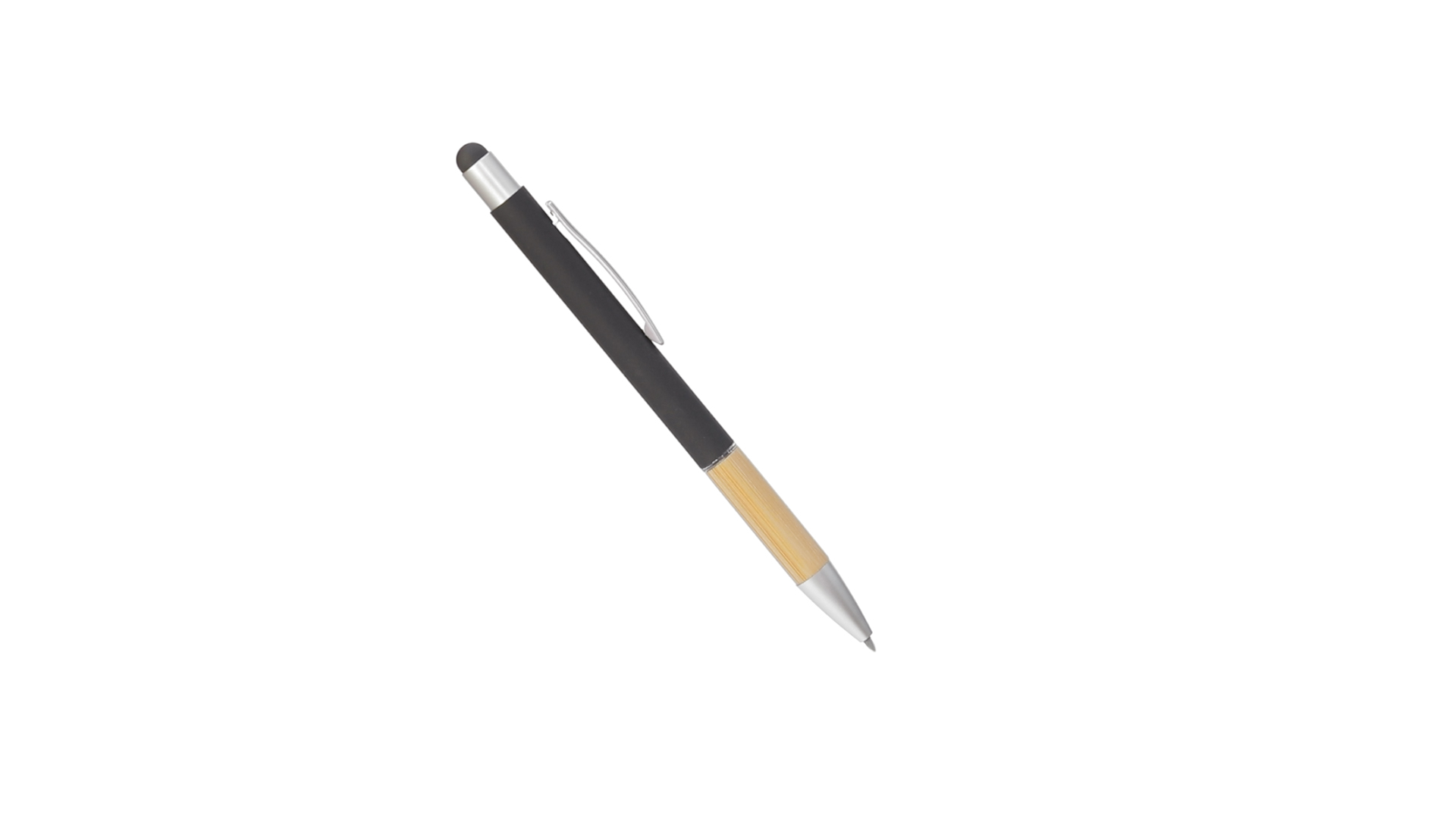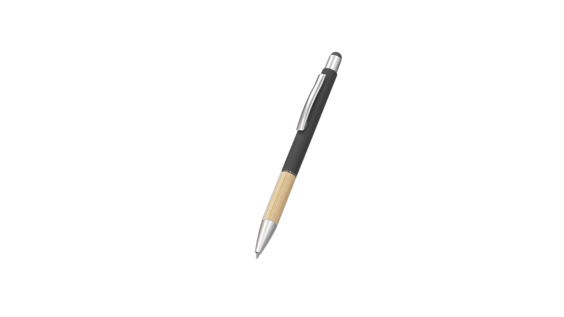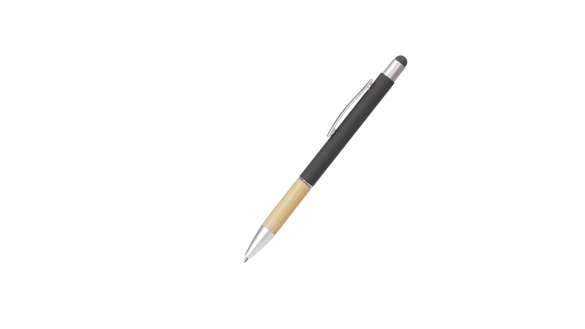 Kugelschreiber der Nature Line mit Druckknopfmechanismus. Elegantes Design mit mattiertem Aluminiumschaft und Bambusgriff, mit mattierten Beschlägen. Metallclip und transparenter Ring, blaue Tinte. Erhältlich in einer breiten Palette von Farben.