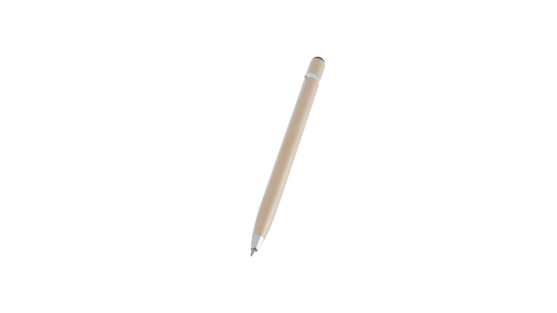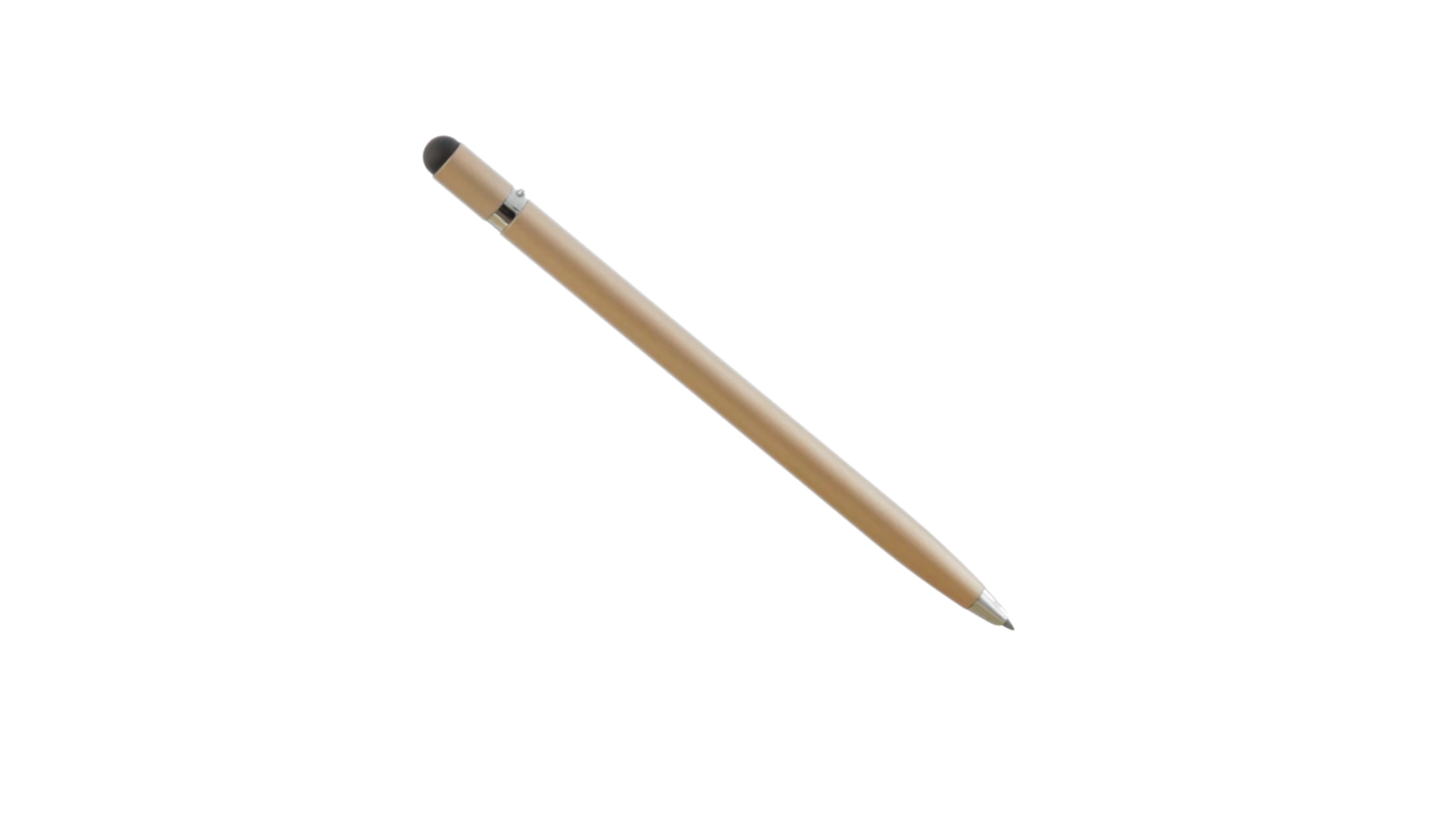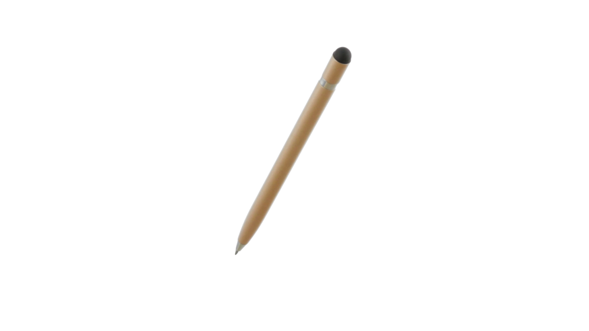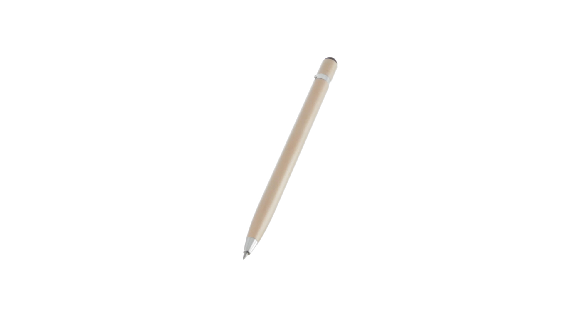 Dreh-Kugelschreiber mit Stylus aus Aluminium mit geschmeidigem Metallic-Finish und verchromtem Ring. Erhältlich in Gold, Rosa und Silber in glänzender Ausführung sowie Weiss in matter Ausführung. Blaue Tinte.