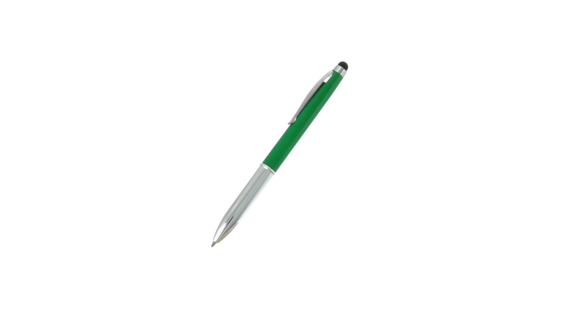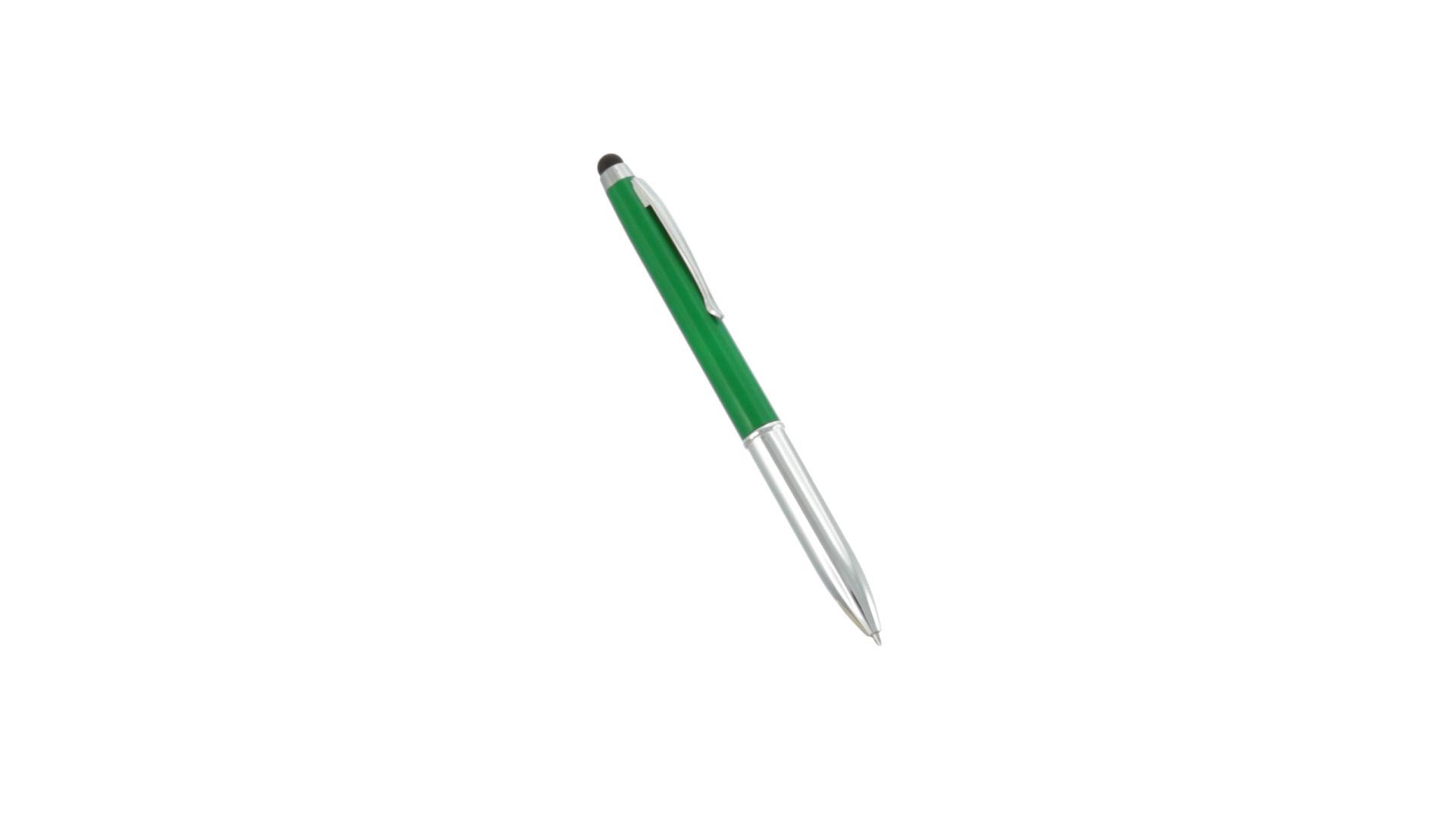 Trendiger zweifarbiger Dreh-Kugelschreiber mit Stylus und geschmeidigem Gehäuse in kräftigen Metallic-Farben mit Kontrastdetails in Silber. Mit Metallclip und solidem Griff mit originellem Ring-Design. Stylus in Schwarz und blaue Tinte.