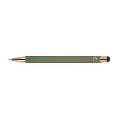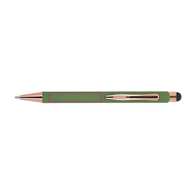 Stilvoller Kugelschreiber aus recyceltem Aluminium mit Metallclip. Die Farbe Rosa findet sich sowohl in den Akzenten des Kugelschreibers als auch in der Farbe der Lasergravur wieder. Der Kugelschreiber wird mit einer blauen Jumbo-Mine geliefert.
