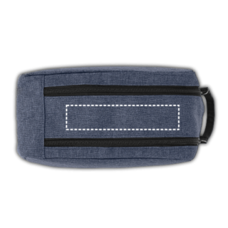 Kulturbeutel aus 600D HD mit einem Träger, der zur Öffnung des Doppelreissverschlusses dient und zum gefüttertem Innenbereich führt. 220 x 110 x 110 mm