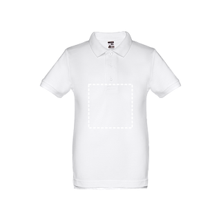 Kinder Poloshirt aus Piqué Stoff 100% Baumwolle (195g/m²), unisex, mit geripptem Kragen und Ärmel, Verstärkungsband am Kragen und verstärkte Knopfleiste mit 3 farblich abgestimmten Knöpfen. Unten mit seitlichen Öffnungen. Ersatzknopf an der Innennaht. Grössen: 2, 4, 6, 8, 10, 12 Grössen: 2, 4, 6, 8, 10, 12