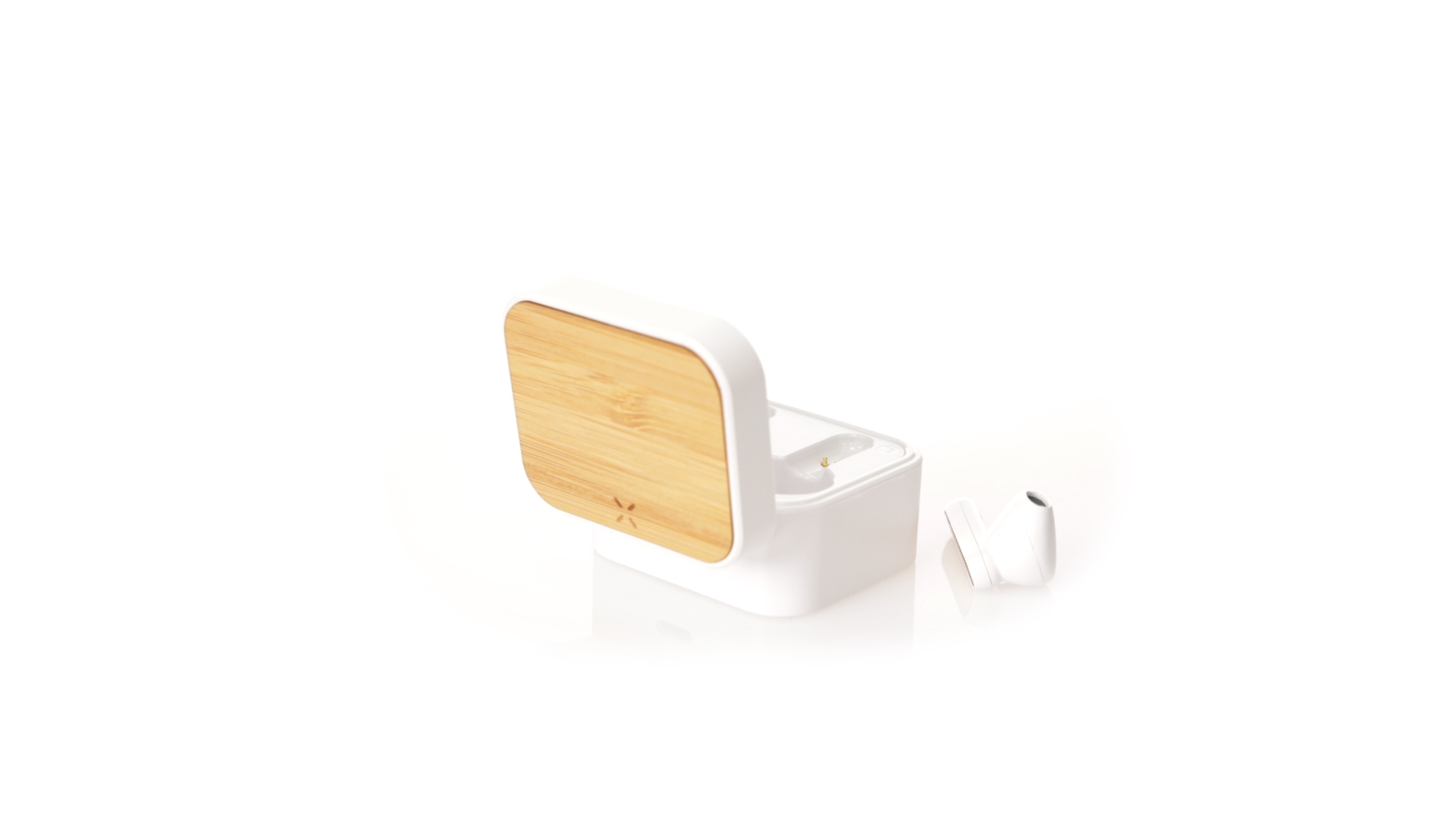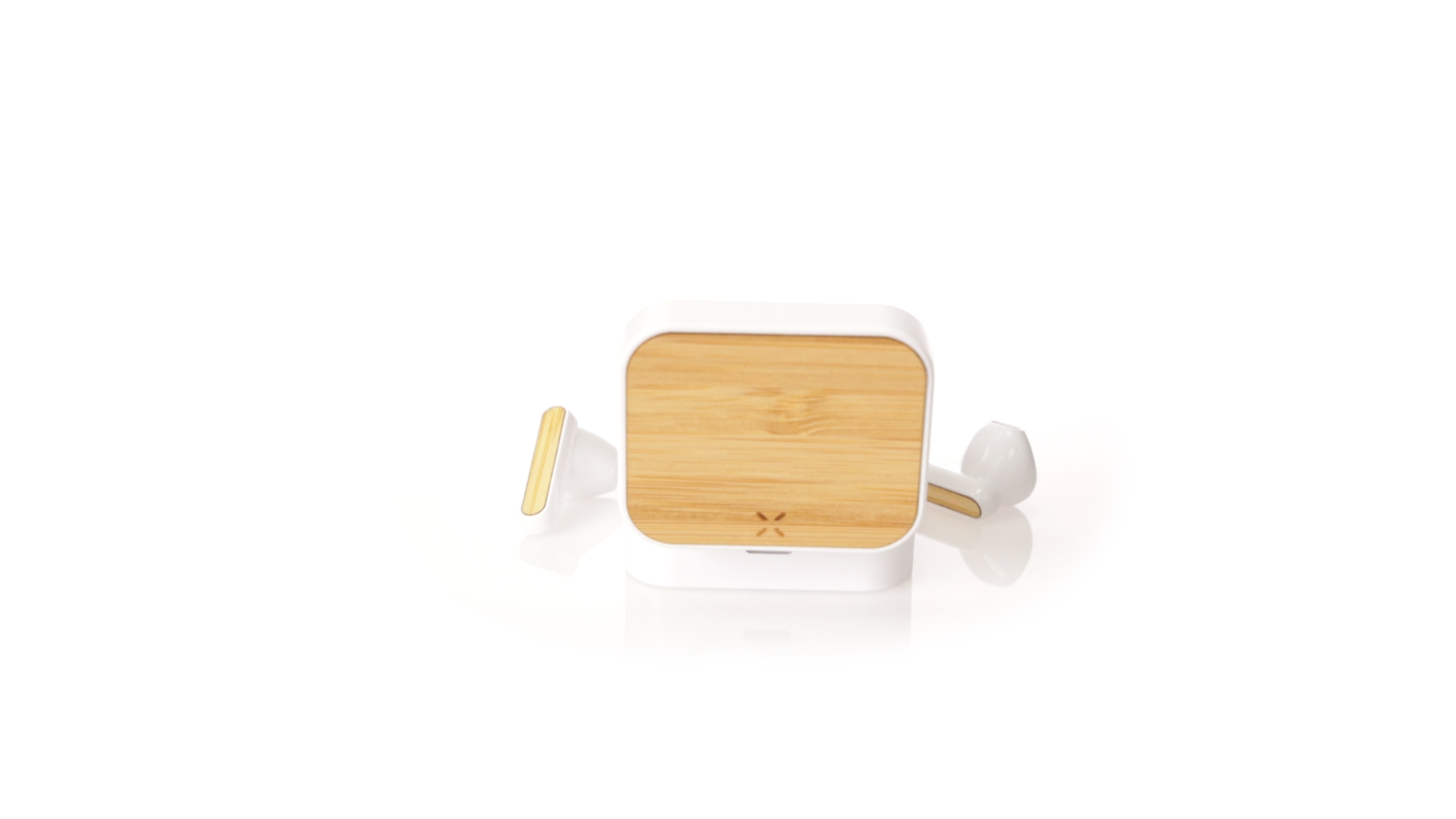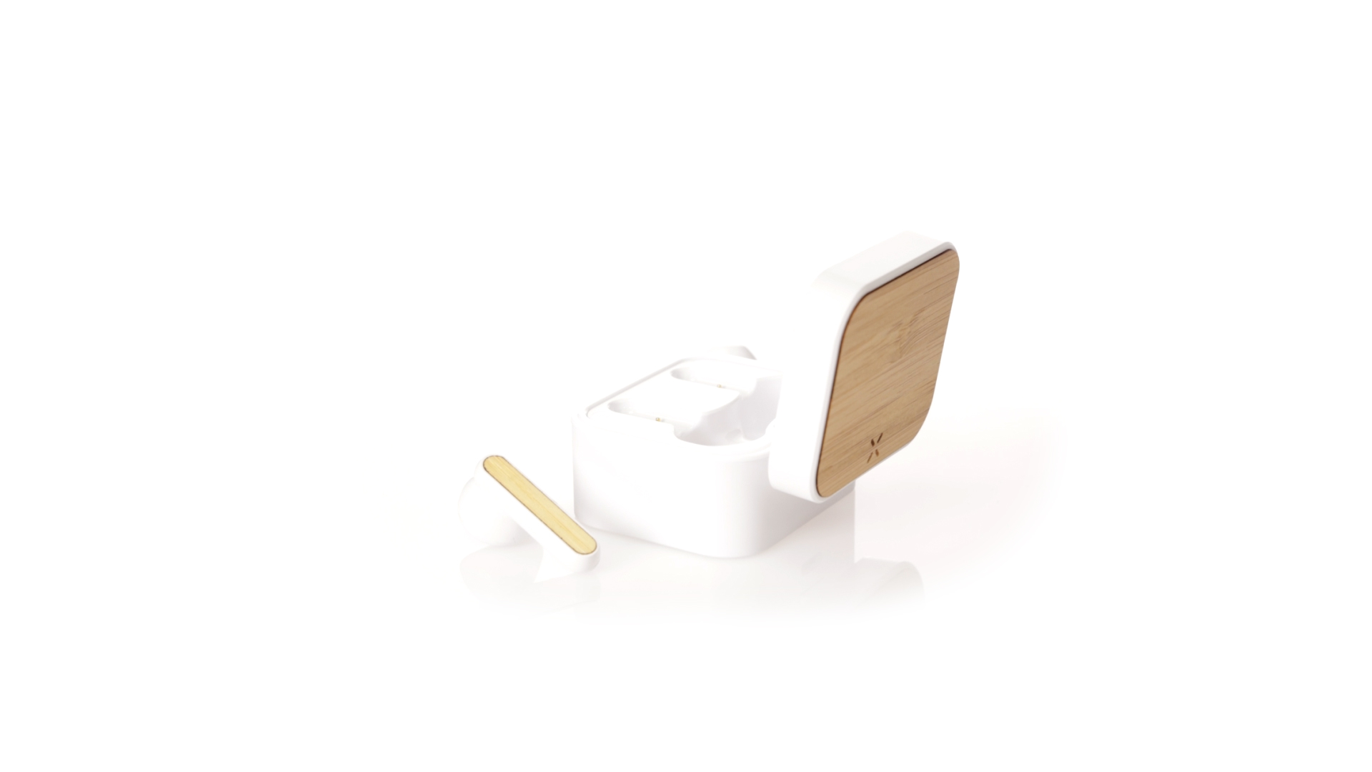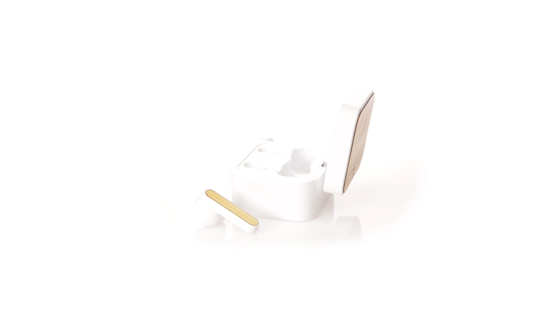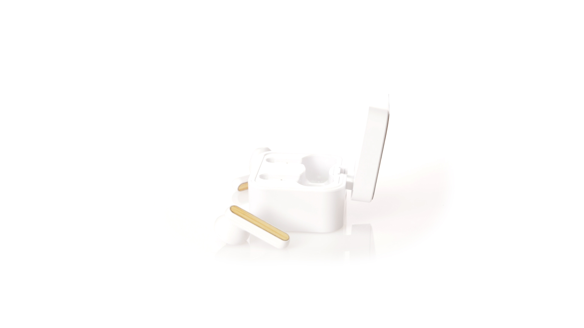 Ohrhörer der Linie Natur. Hergestellt aus widerstandsfähigem ABS mit Bambusdetails in Ohrhörern und Basis. Bluetooth® 5.0-Verbindung und Freisprechfunktion, mit Touch-Control-Taste am Ohrhörer. Kabelloses 10-W-Ladegerät im Bambusdeckel der Basis integriert und über USB wiederaufladbar, mit Typ-C-Kabel im Lieferumfang. Präsentiert in einer individuellen Ökodesign-Box aus Kraftkarton.