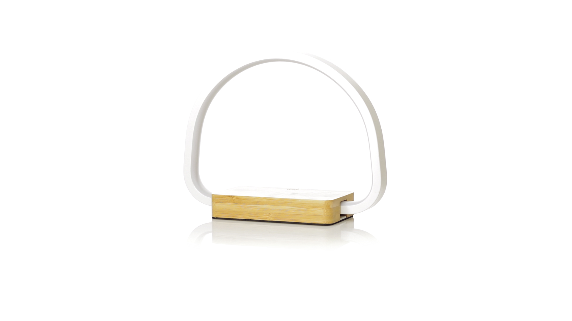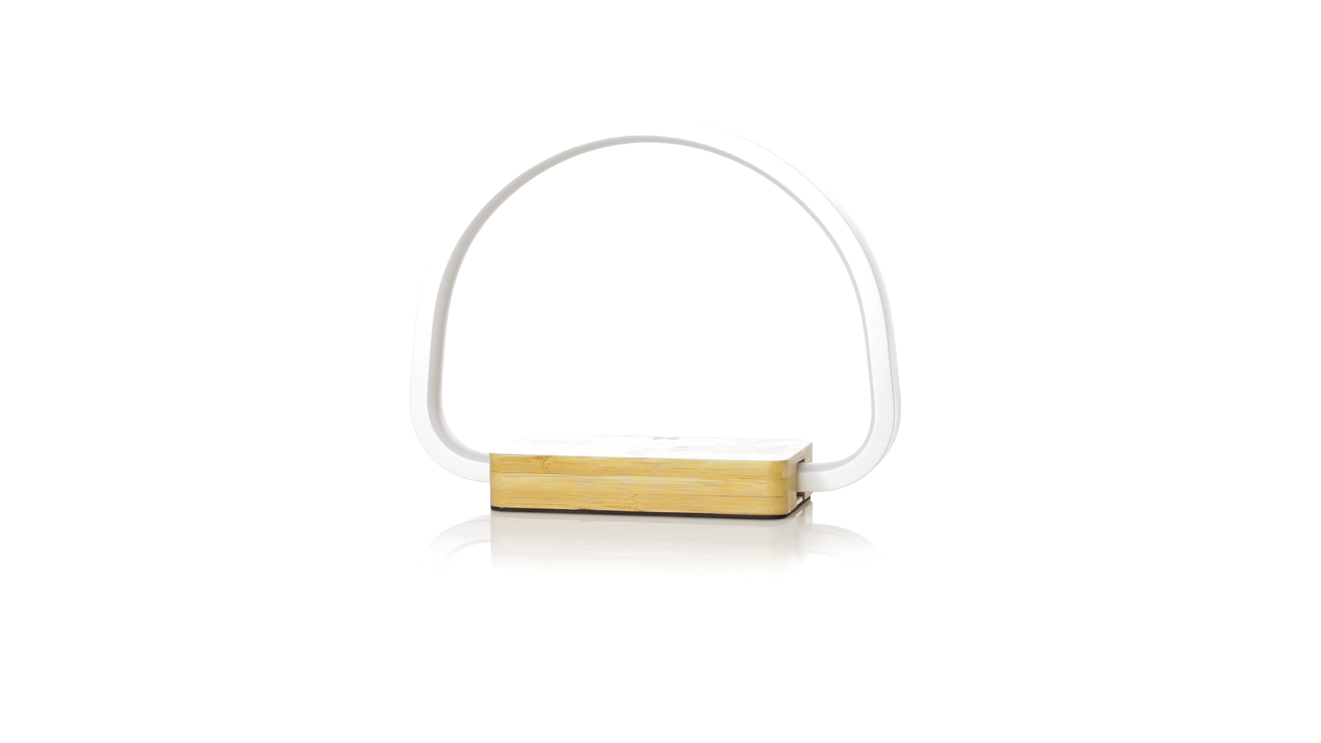 Öko-Design Ladelampe. Hergestellt aus Bambus aus natürlichen Stecklingen und mit rutschfestem Fuss. Integriertes kabelloses 10W-Ladegerät. Enthält 52 LEDs und 3 Leuchtstufen (warm, kalt und mittel) mit einstellbarer Lichtintensität. Kompatibel mit mobilen Geräten mit kabellosem Ladegerät und USB-Anschluss. Inklusive Typ-C-Ladekabel und in attraktiver Öko-Design-Verpackung. Gebrauchsanweisung in Spanisch und Englisch erhältlich.
