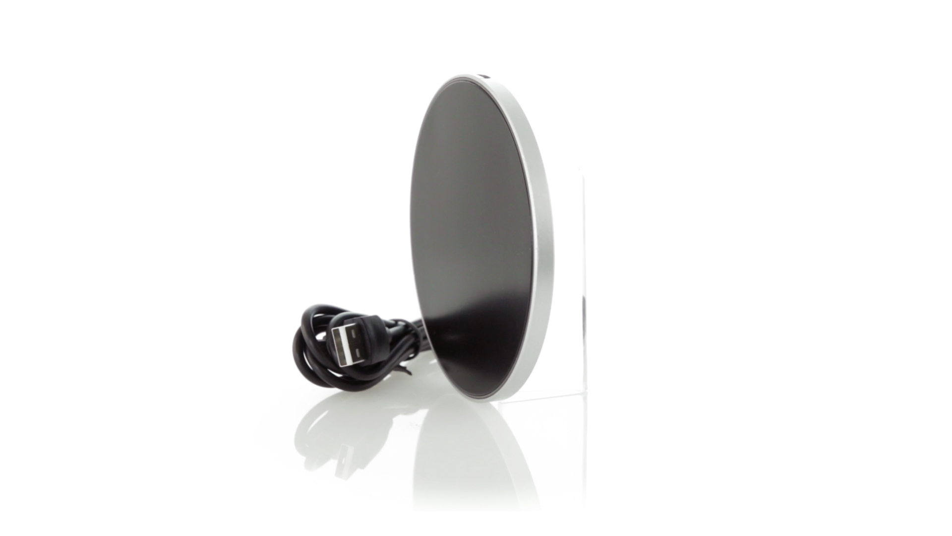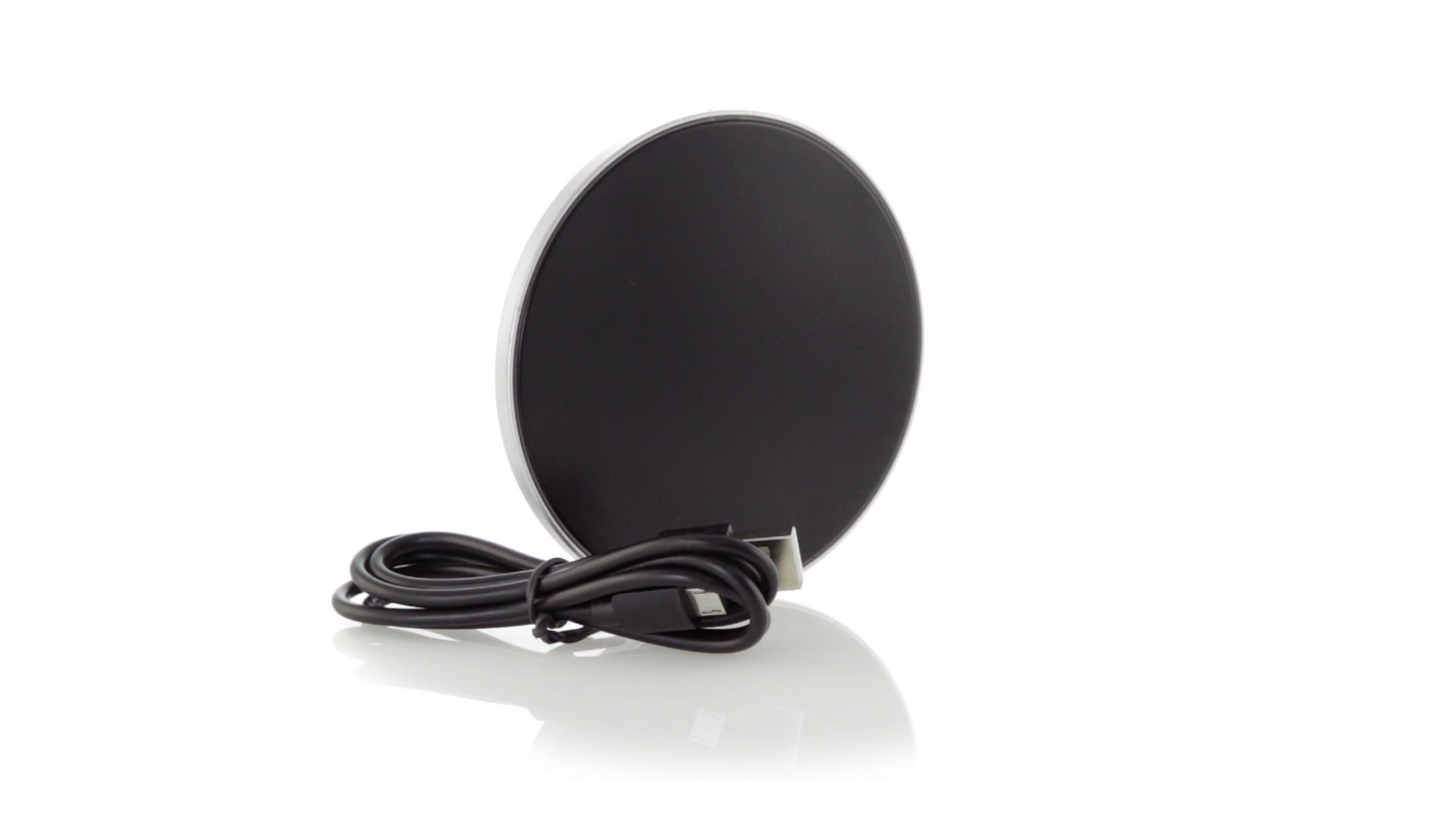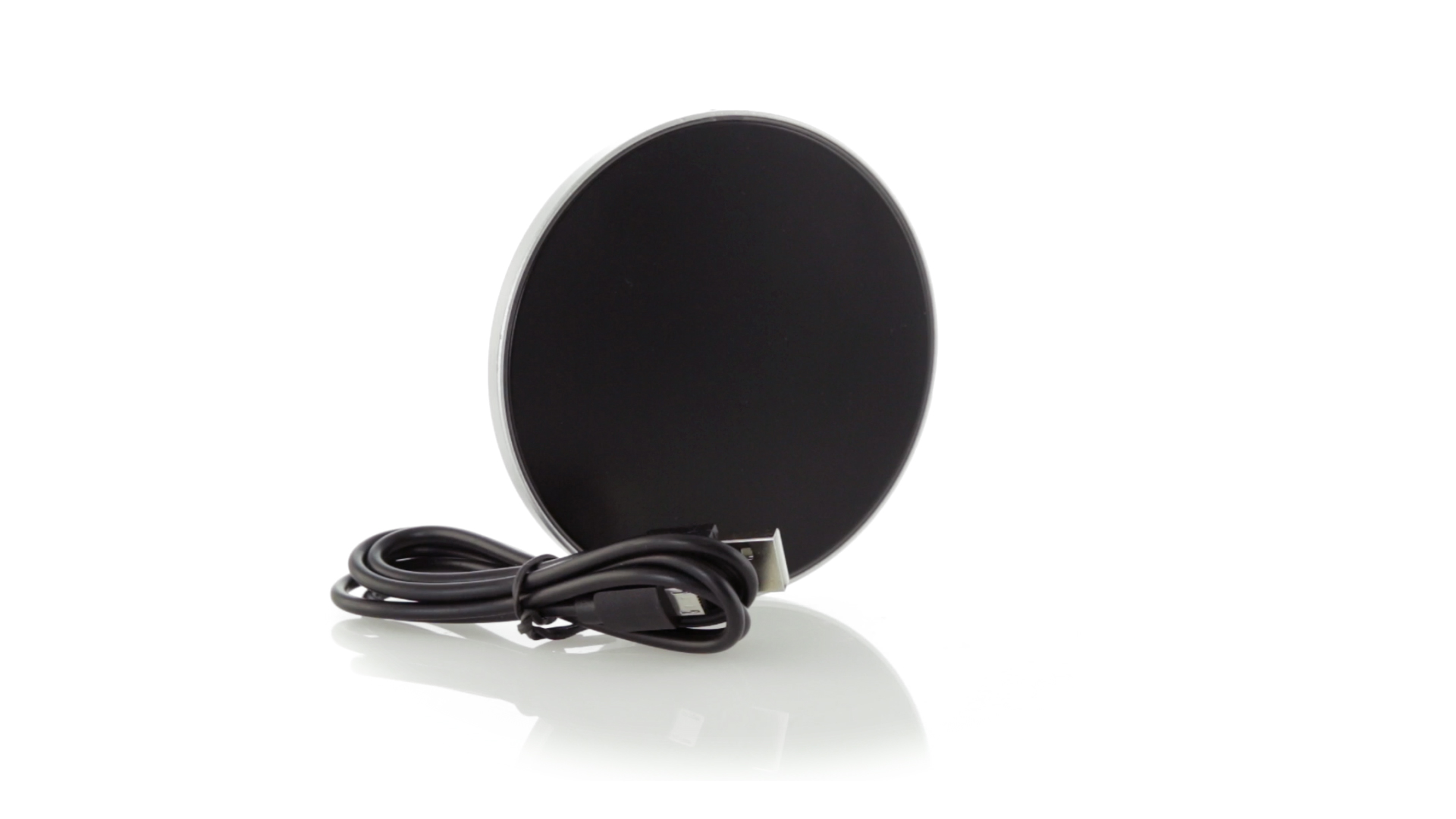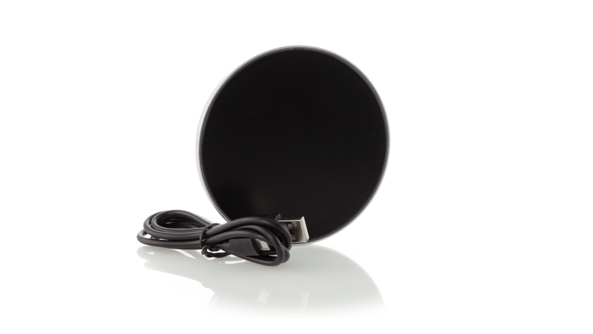 Rundes Design, kabelloses Ladegerät. Innenliegendes LED-Licht und Gehäuse speziell für den Laserdruck zur Beleuchtung des Logos. Mit rutschfester Unterseite, kompatibel mit Geräten mit kabelloser Ladetechnologie und präsentiert in einer attraktiven Designbox. USB-Kabel im Lieferumfang enthalten.