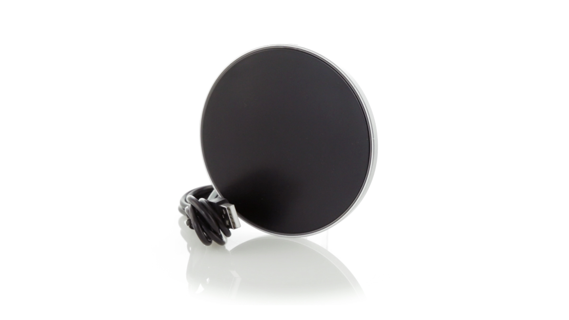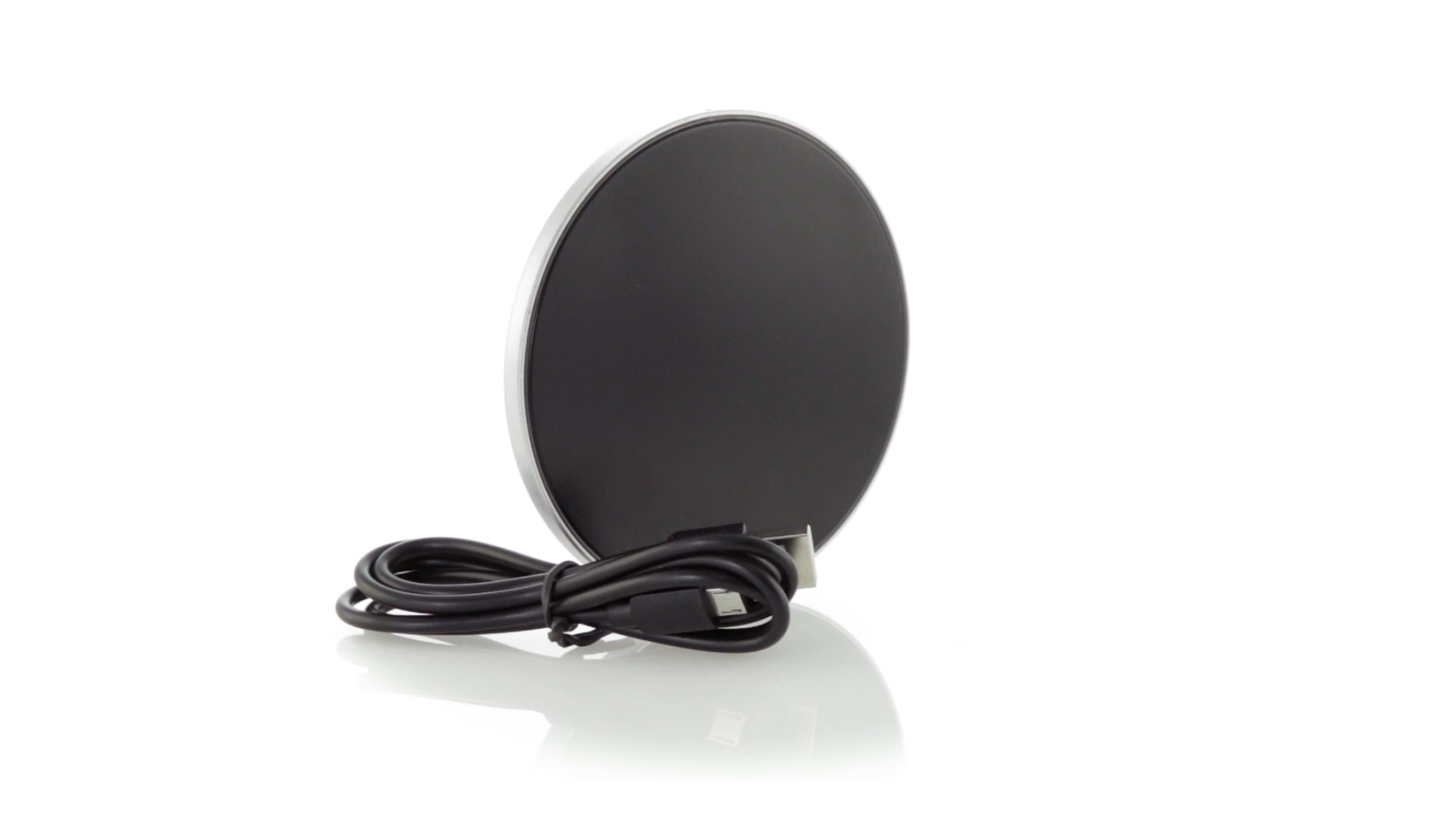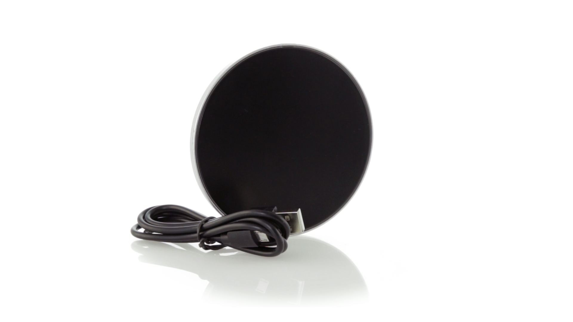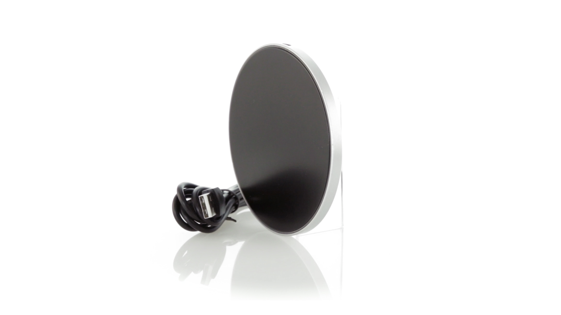 Rundes Design, kabelloses Ladegerät. Innenliegendes LED-Licht und Gehäuse speziell für den Laserdruck zur Beleuchtung des Logos. Mit rutschfester Unterseite, kompatibel mit Geräten mit kabelloser Ladetechnologie und präsentiert in einer attraktiven Designbox. USB-Kabel im Lieferumfang enthalten.