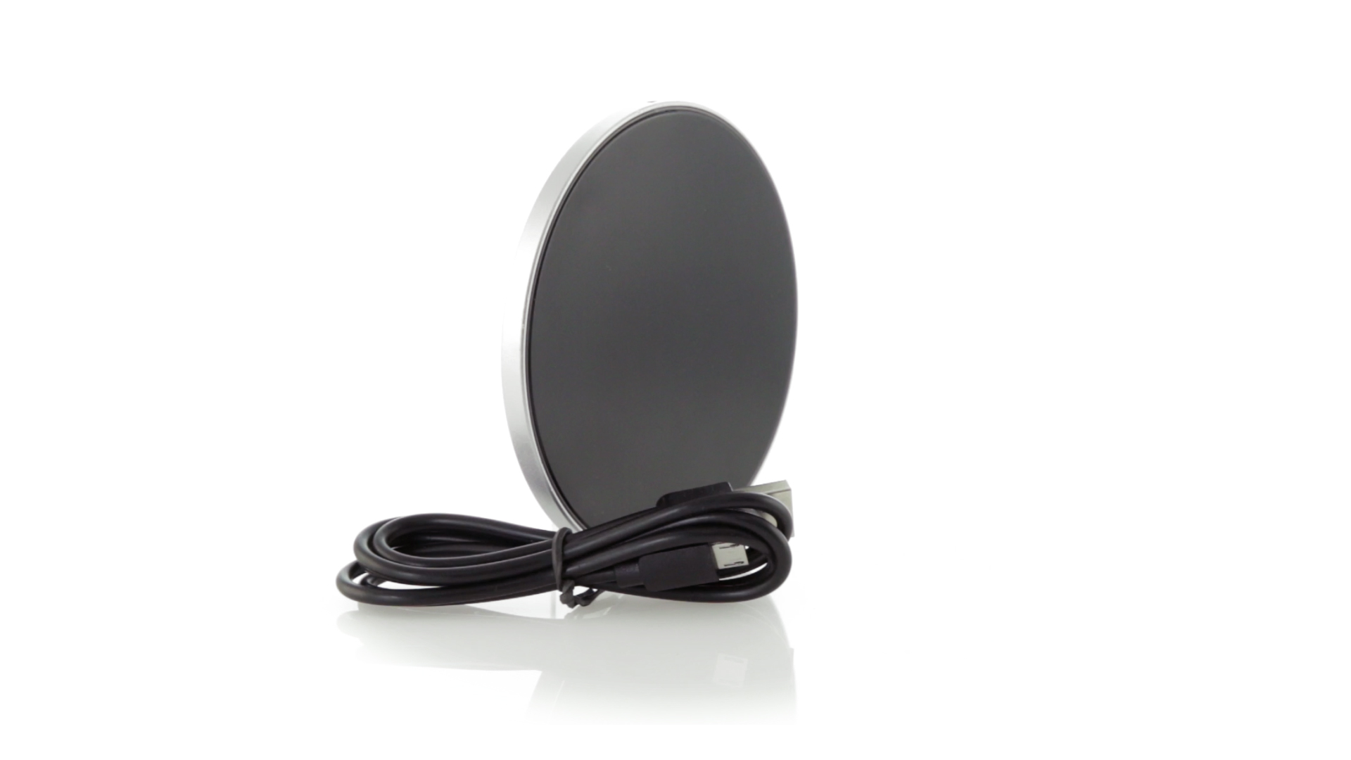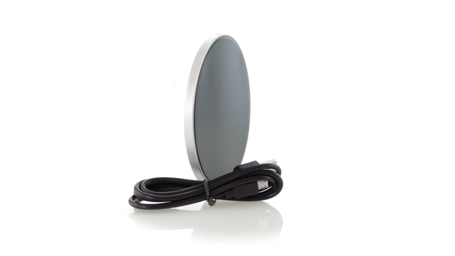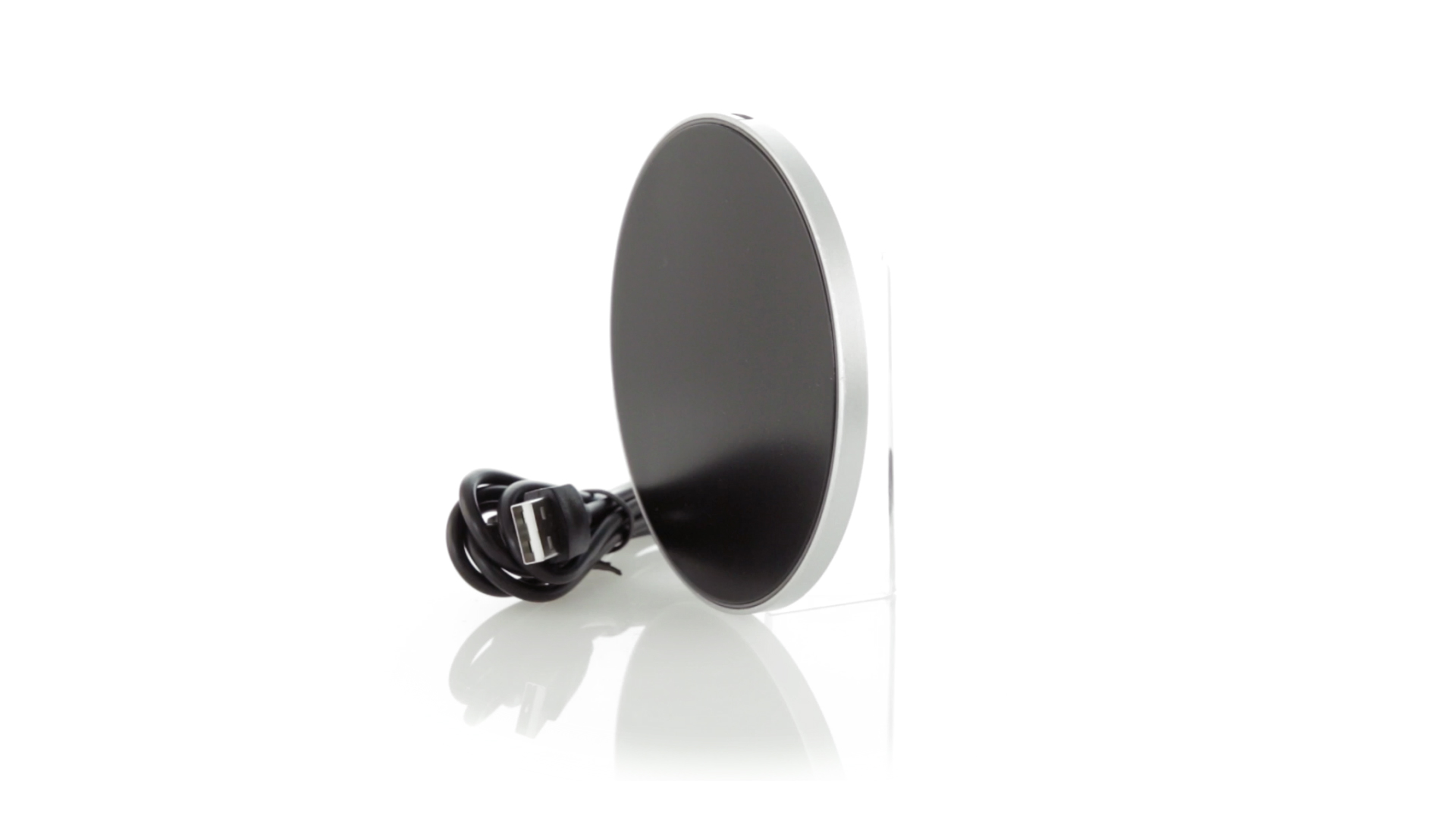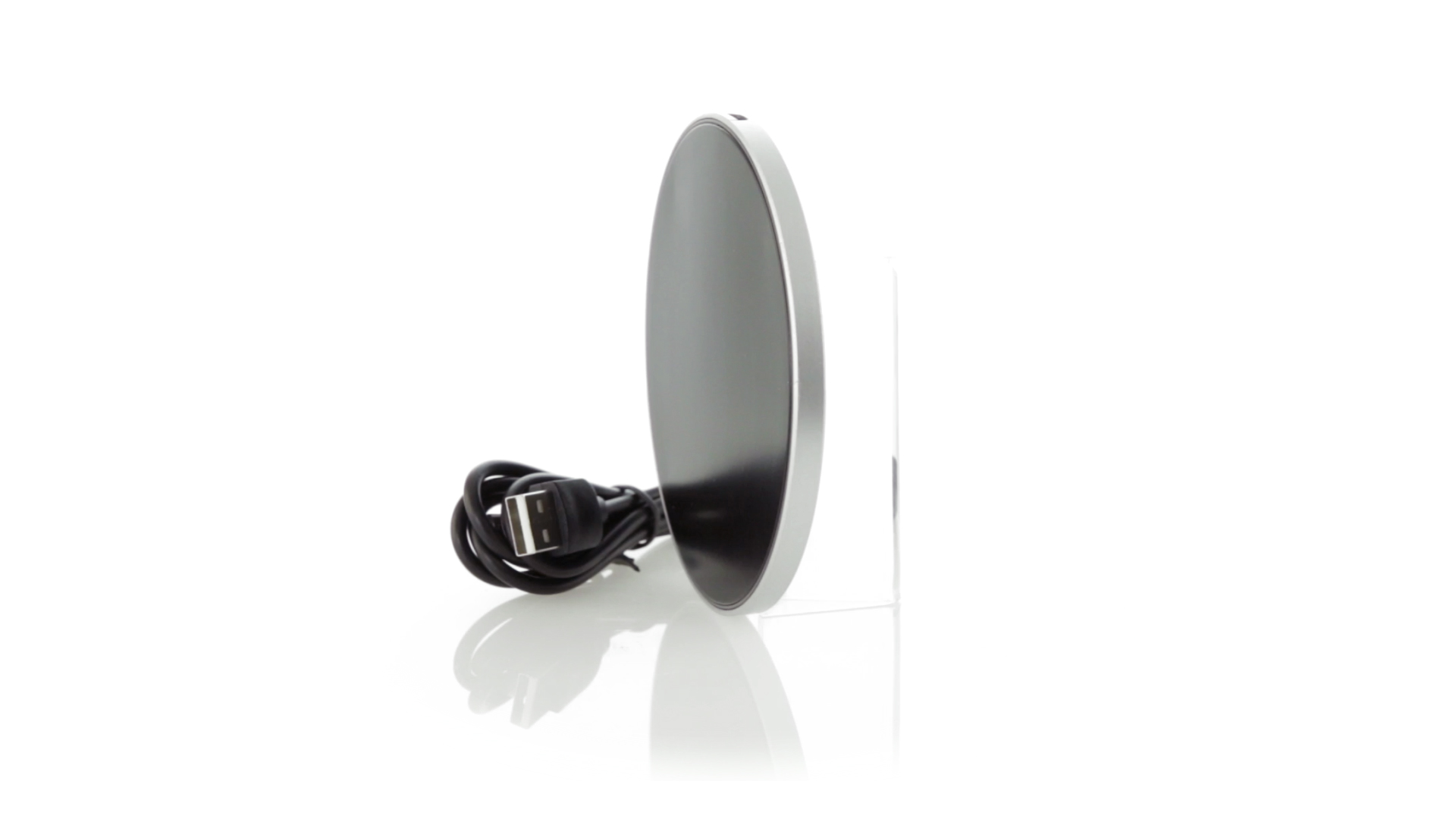 Rundes Design, kabelloses Ladegerät. Innenliegendes LED-Licht und Gehäuse speziell für den Laserdruck zur Beleuchtung des Logos. Mit rutschfester Unterseite, kompatibel mit Geräten mit kabelloser Ladetechnologie und präsentiert in einer attraktiven Designbox. USB-Kabel im Lieferumfang enthalten.