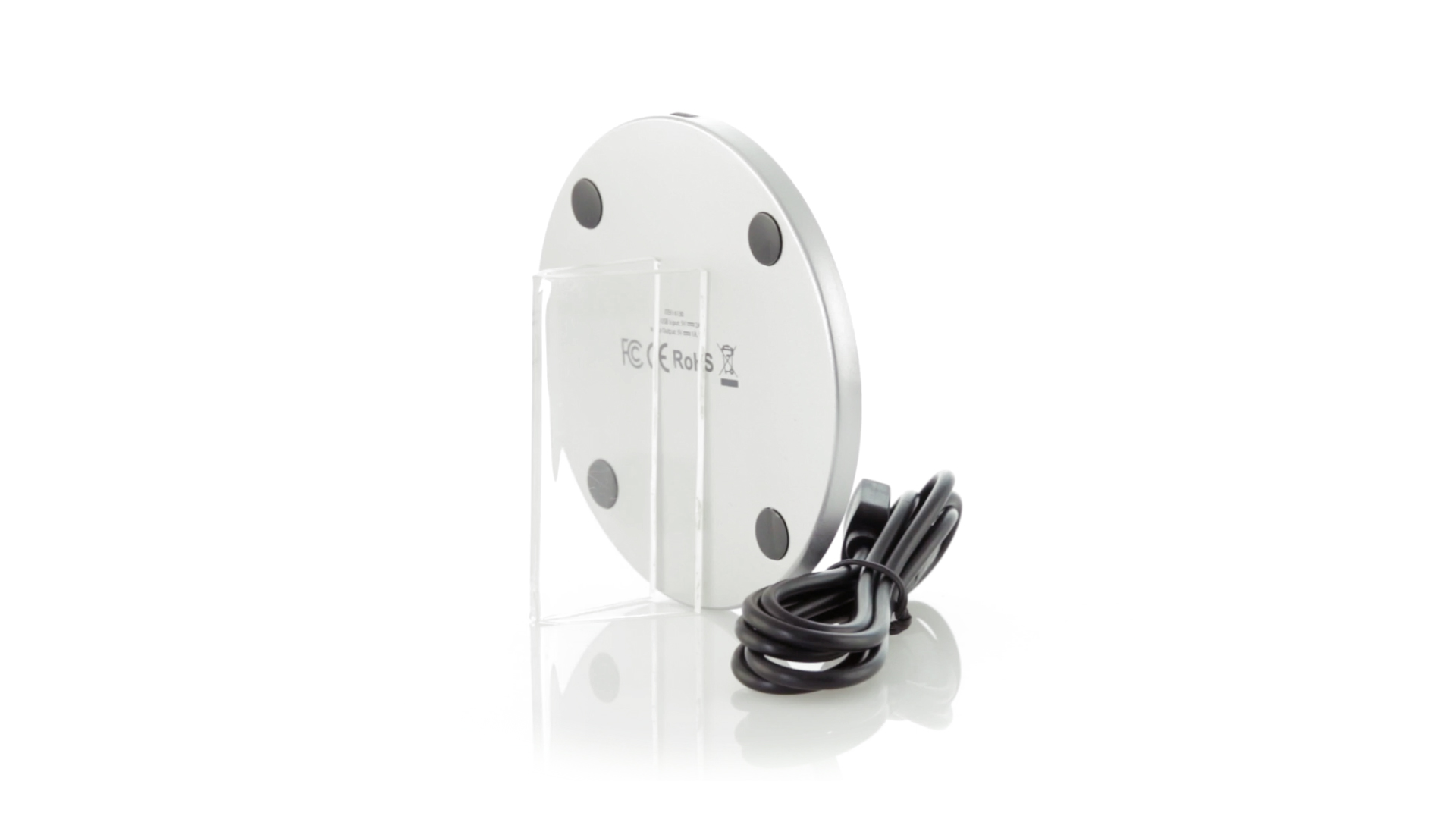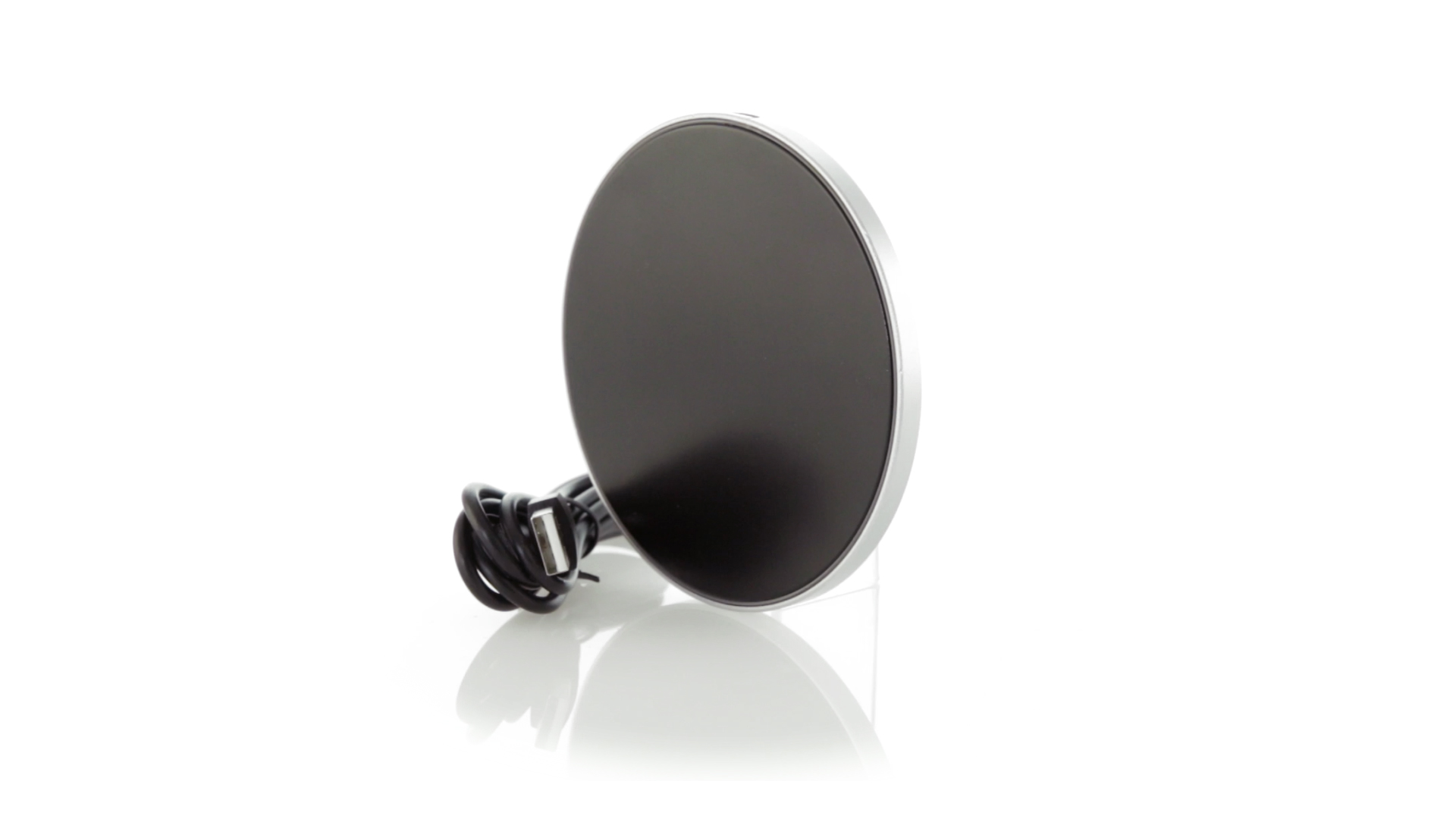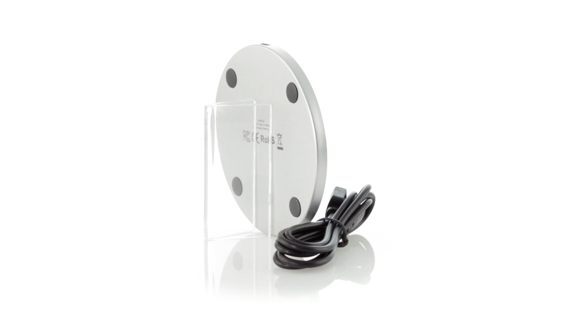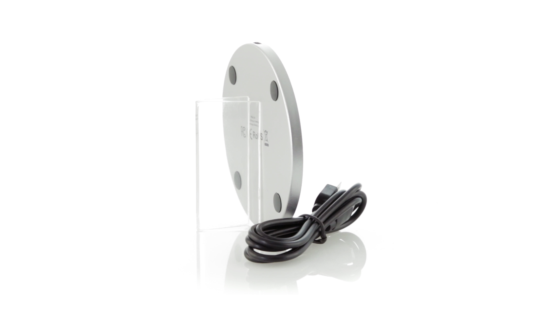 Rundes Design, kabelloses Ladegerät. Innenliegendes LED-Licht und Gehäuse speziell für den Laserdruck zur Beleuchtung des Logos. Mit rutschfester Unterseite, kompatibel mit Geräten mit kabelloser Ladetechnologie und präsentiert in einer attraktiven Designbox. USB-Kabel im Lieferumfang enthalten.