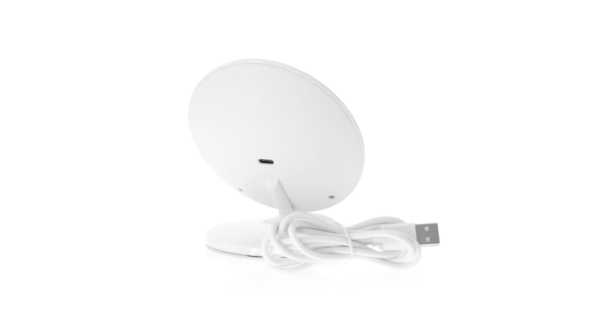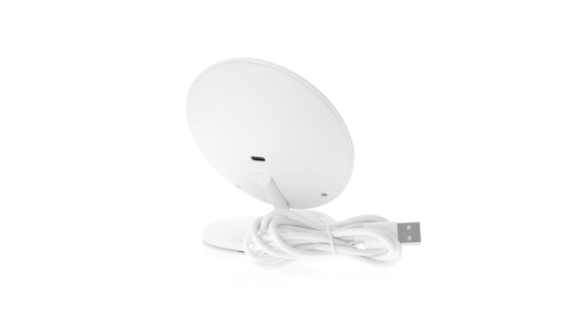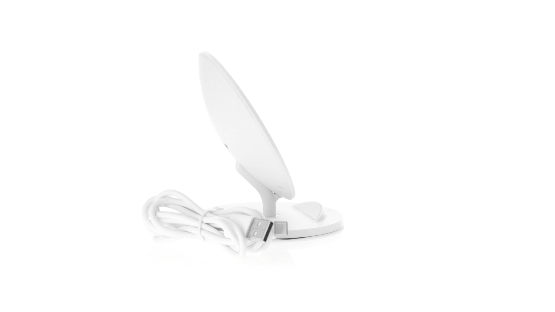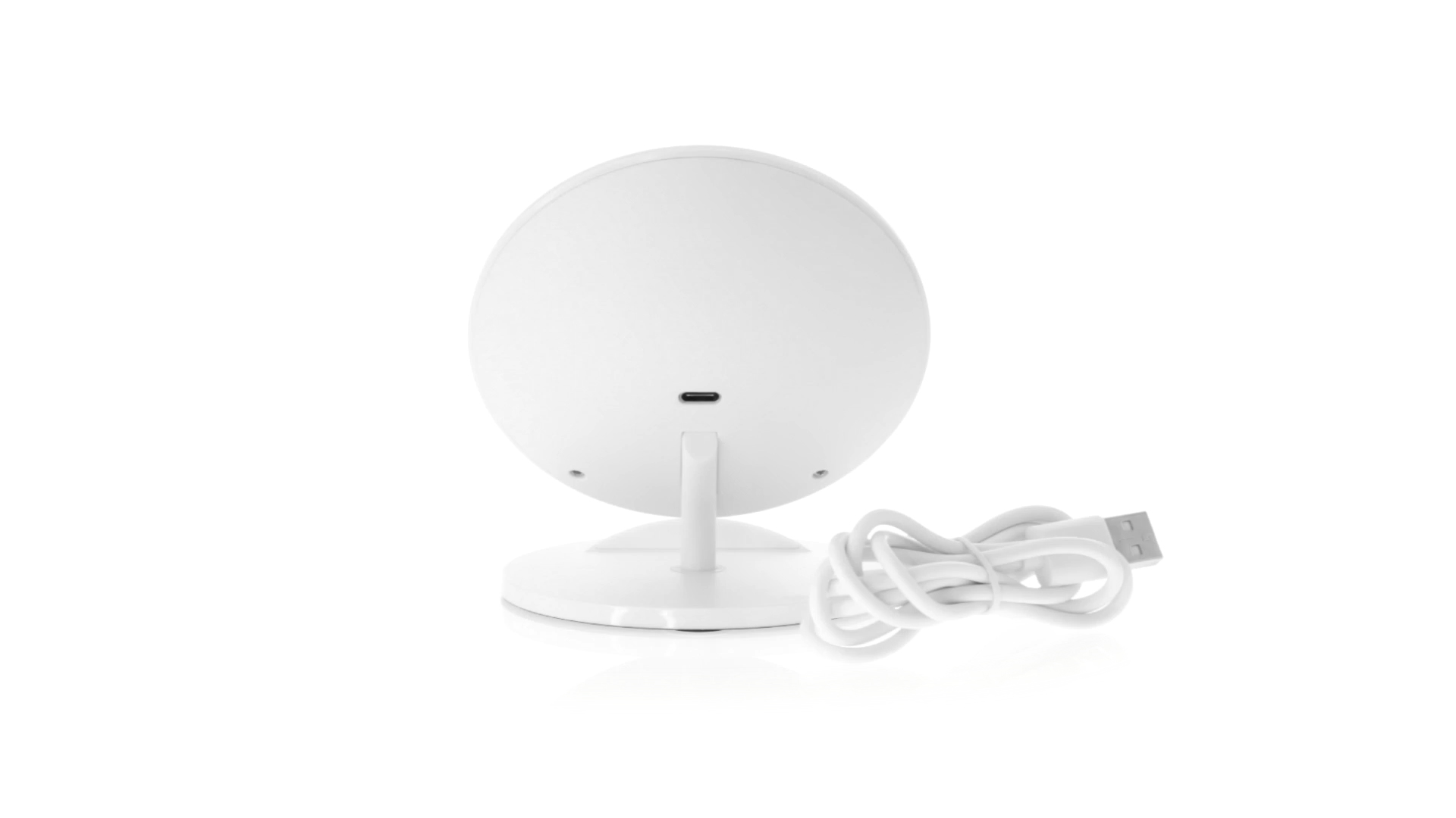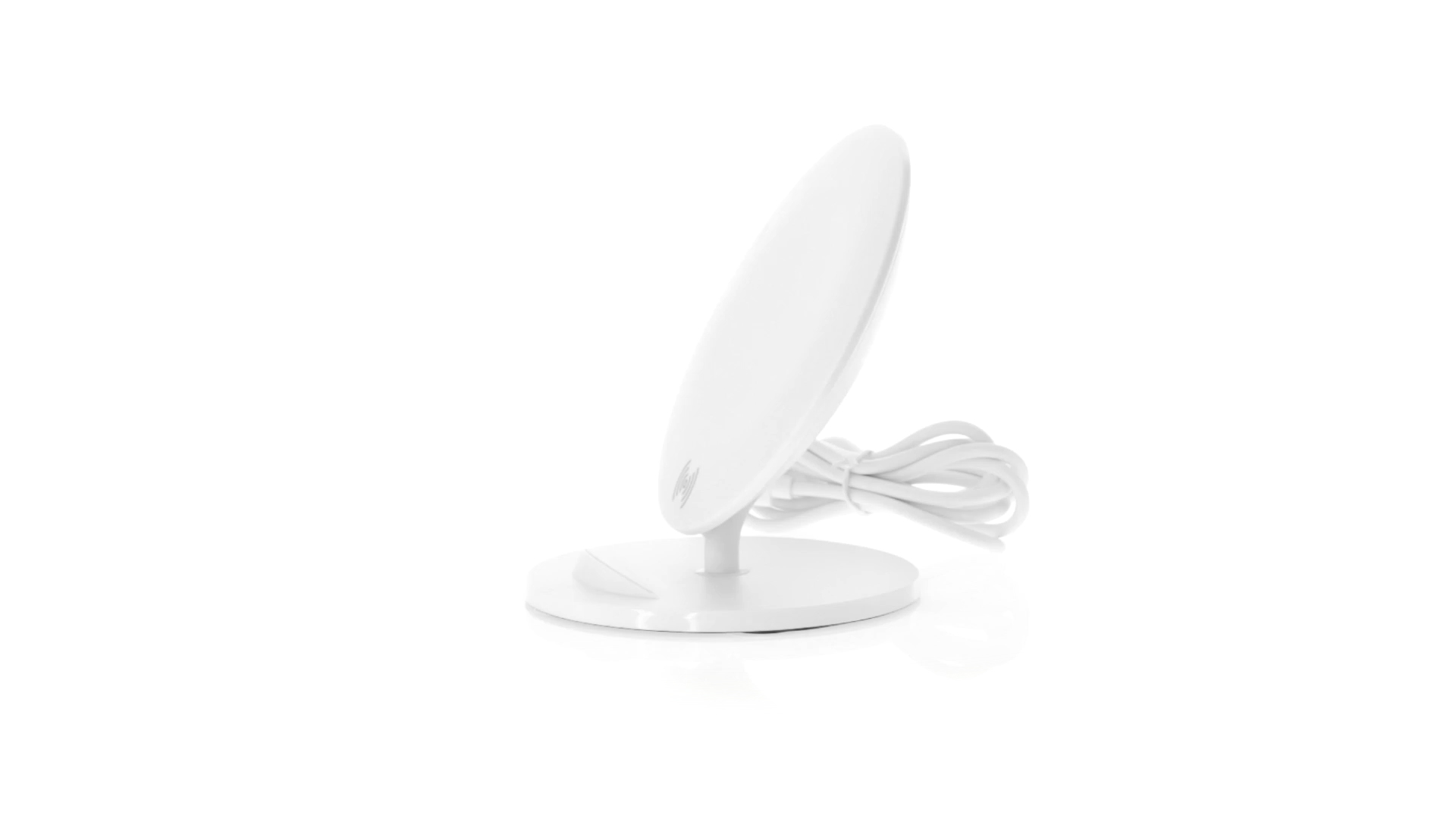 Kabelloses Ladegerät in Weiss mit QI-Technologie (induktive Energieübertragung). Mit integriertem Ständer für Mobilgerät und rutschfester Unterseite. Kompatibel mit Geräten, die mit kabelloser Ladetechnik ausgestattet sind. Präsentiert in einer attraktiven Designbox.
