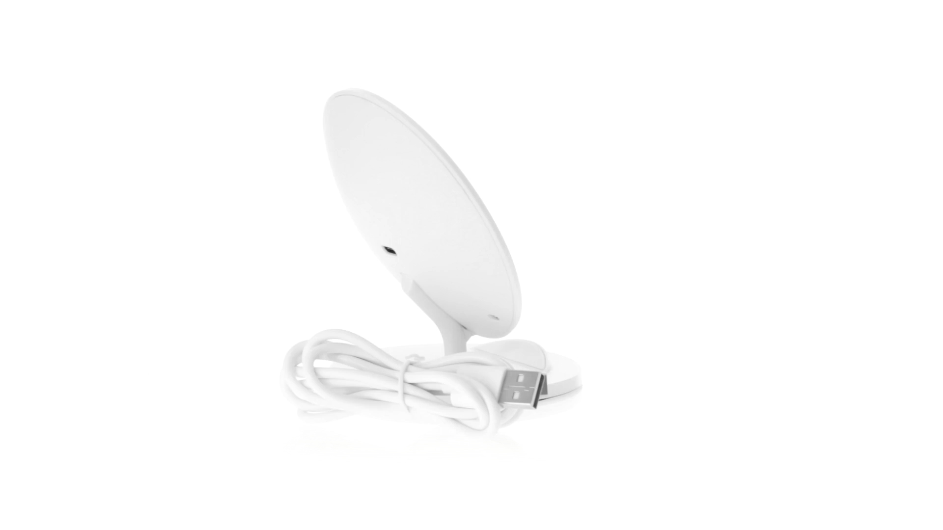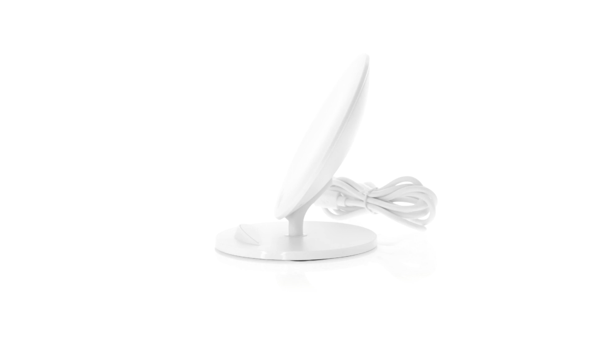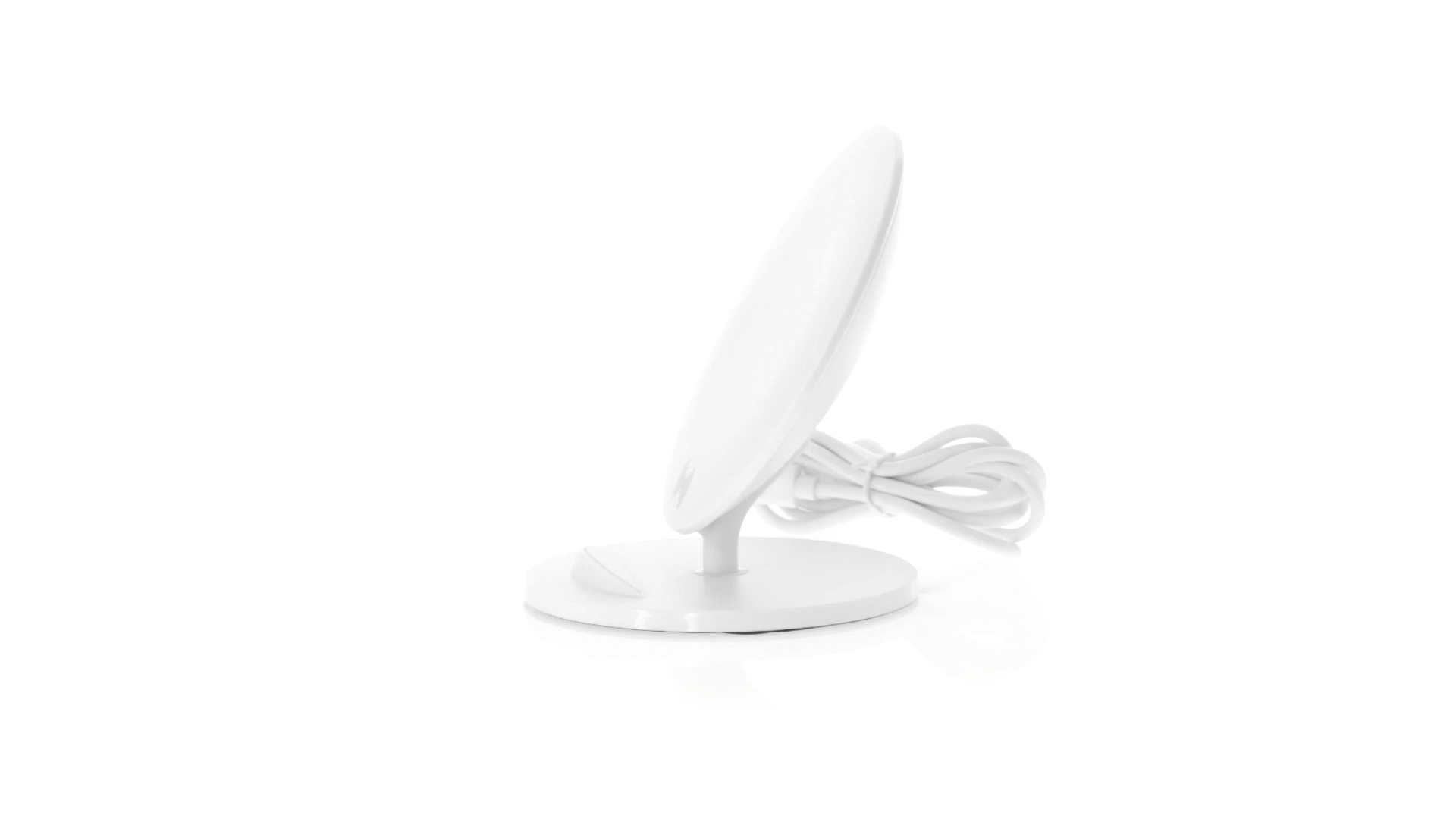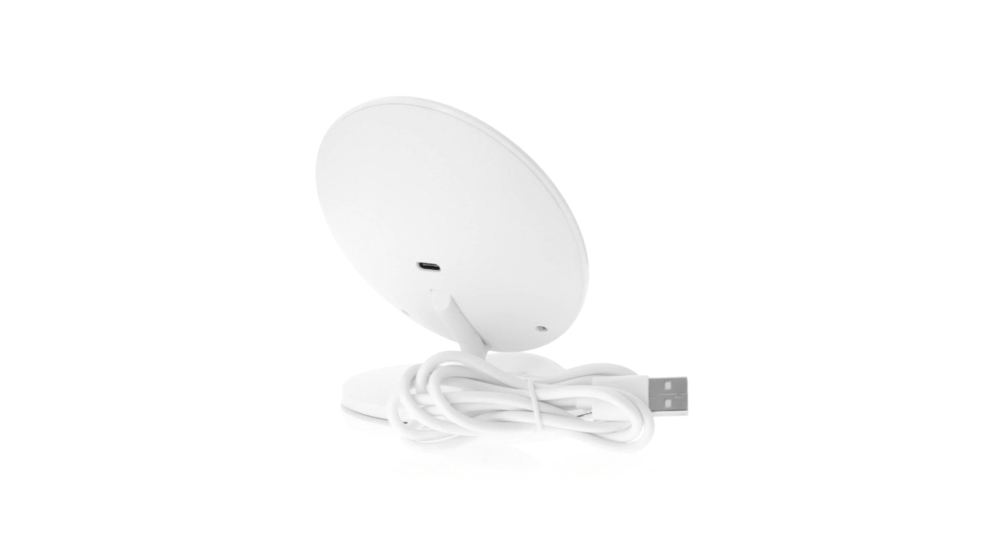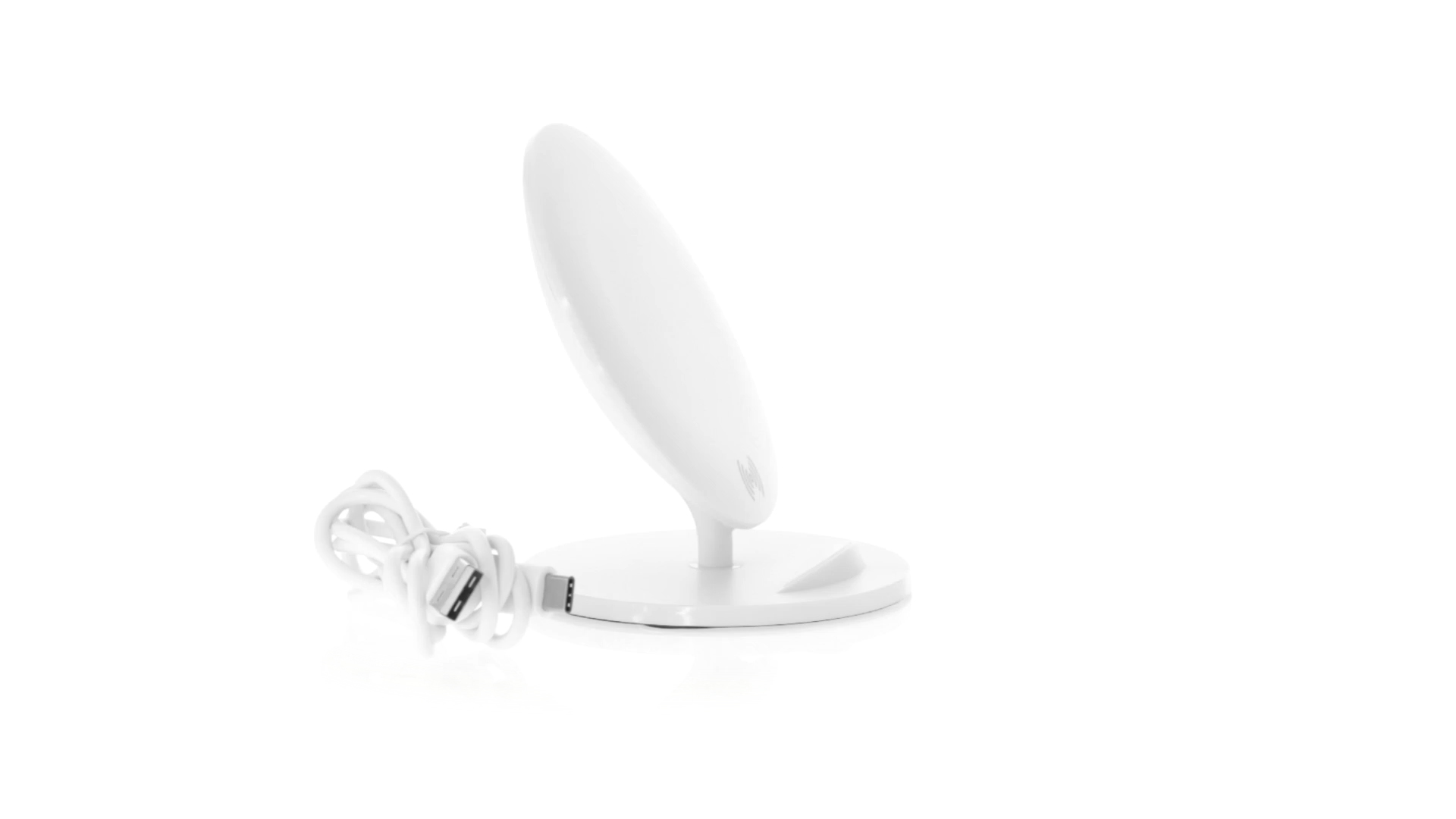 Kabelloses Ladegerät in Weiss mit QI-Technologie (induktive Energieübertragung). Mit integriertem Ständer für Mobilgerät und rutschfester Unterseite. Kompatibel mit Geräten, die mit kabelloser Ladetechnik ausgestattet sind. Präsentiert in einer attraktiven Designbox.