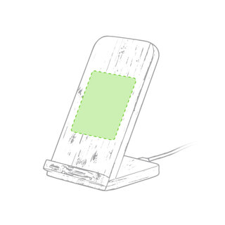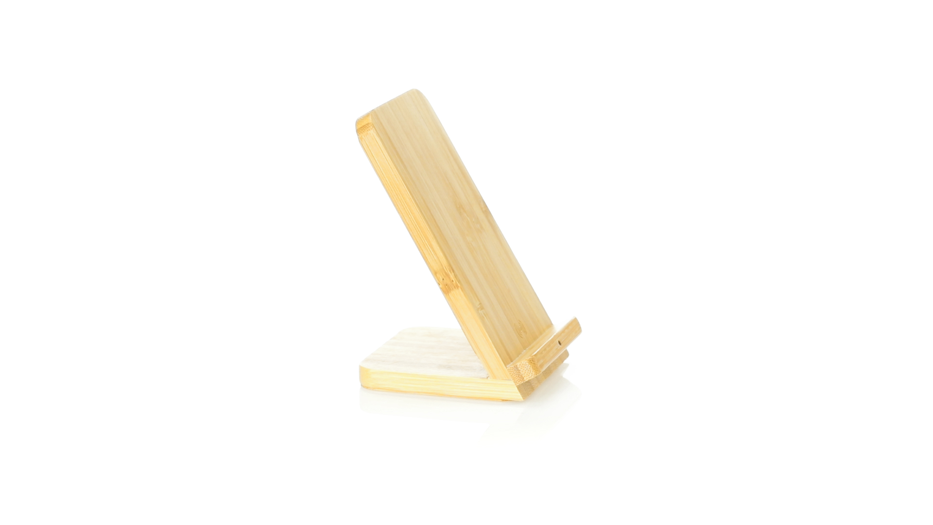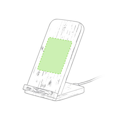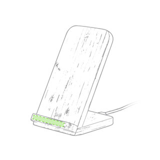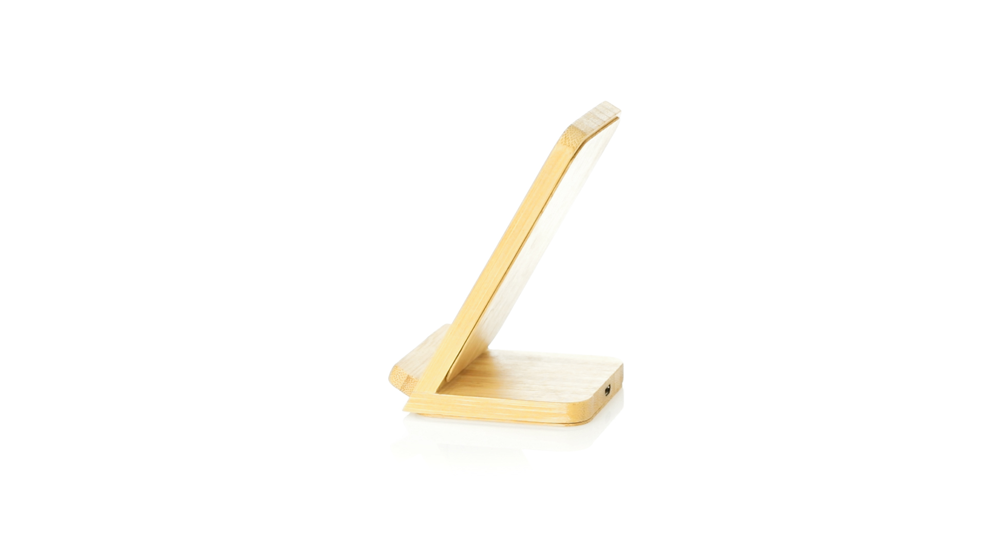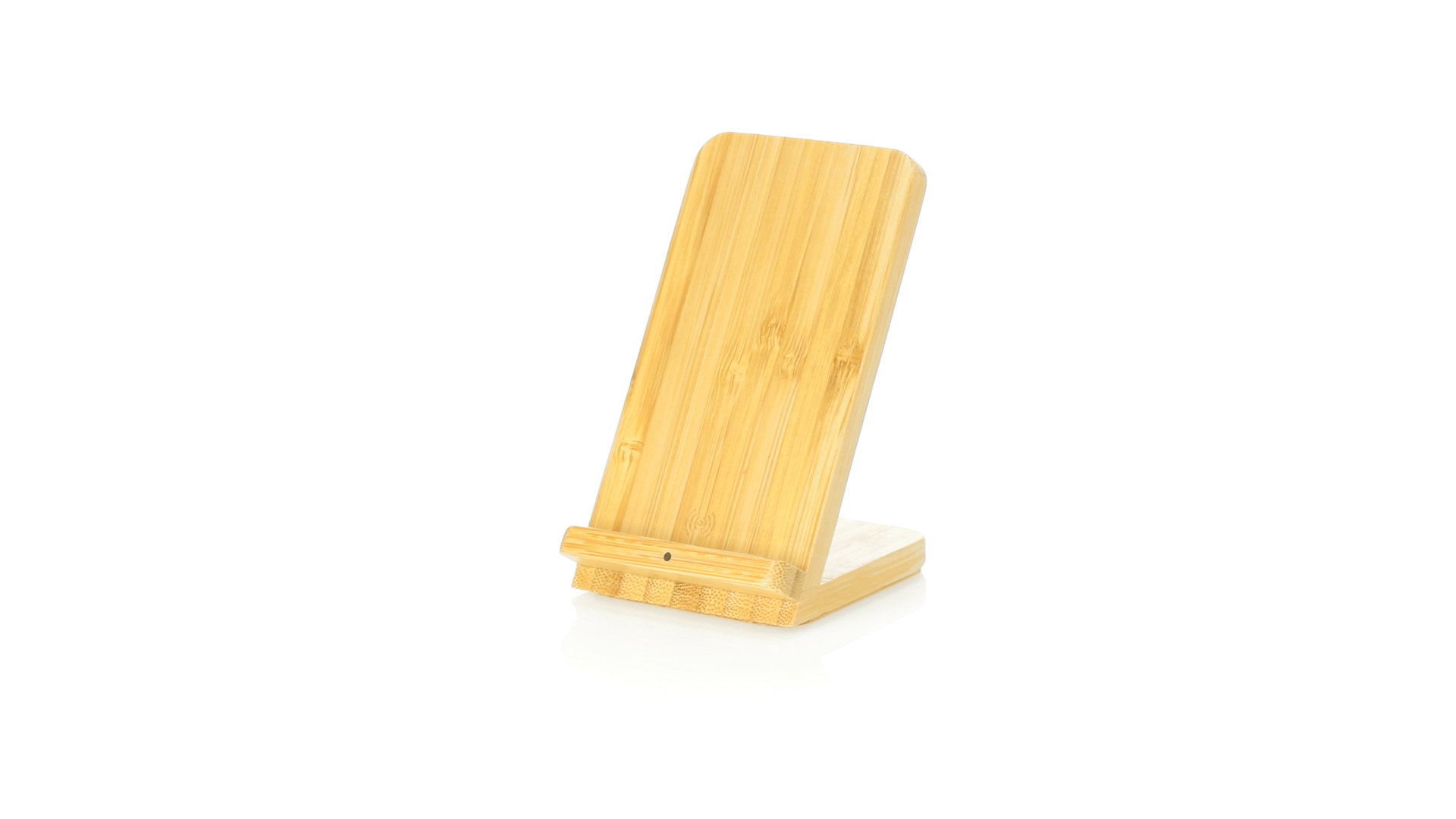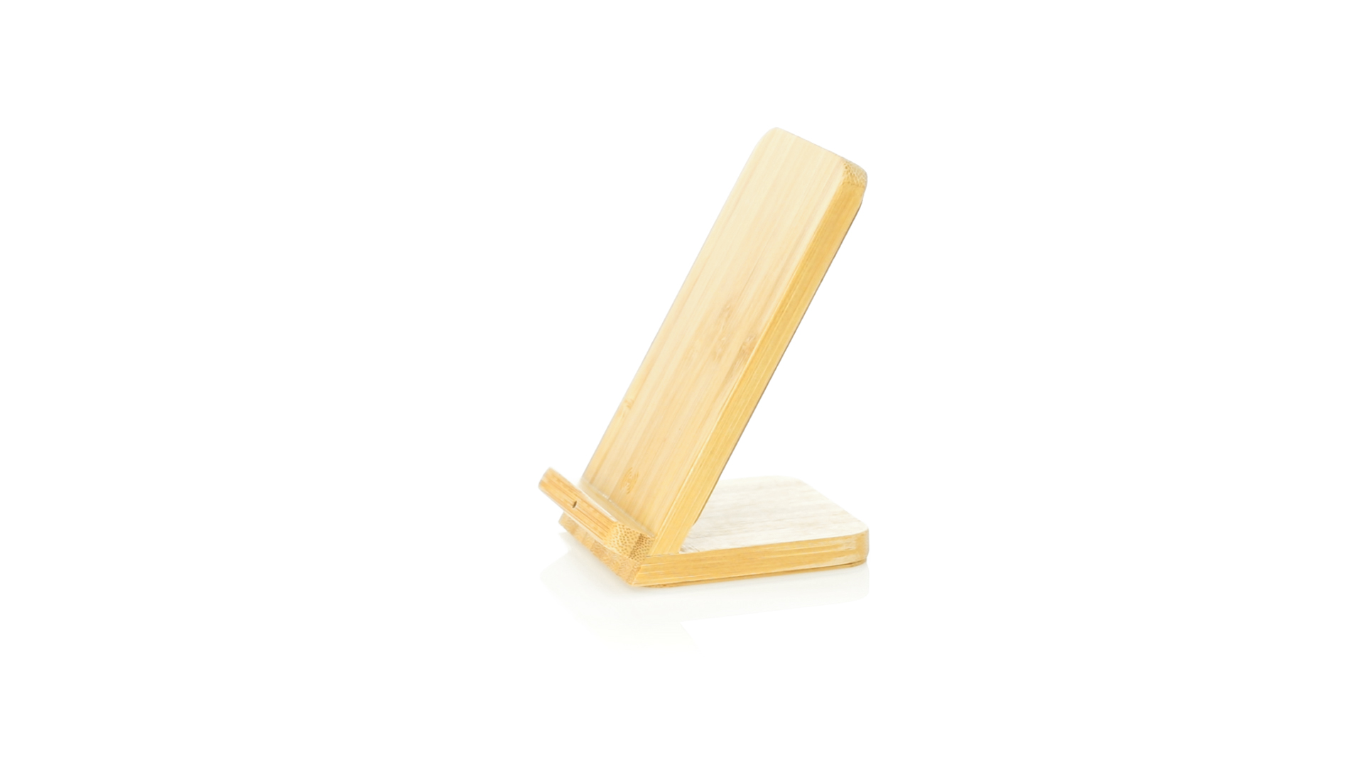 Naturlinie, kabelloses Ladegerät mit Smartphone-Halterungsfunktionalität. Hergestellt aus Bambus, aus natürlich geschnittenen Bambusstücken. Ladeanzeige und kompatibel mit Geräten, die mit drahtloser Ladetechnologie ausgestattet sind. Grosser Druckbereich und präsentiert in einer attraktiven, individuellen Öko-Design-Box.
