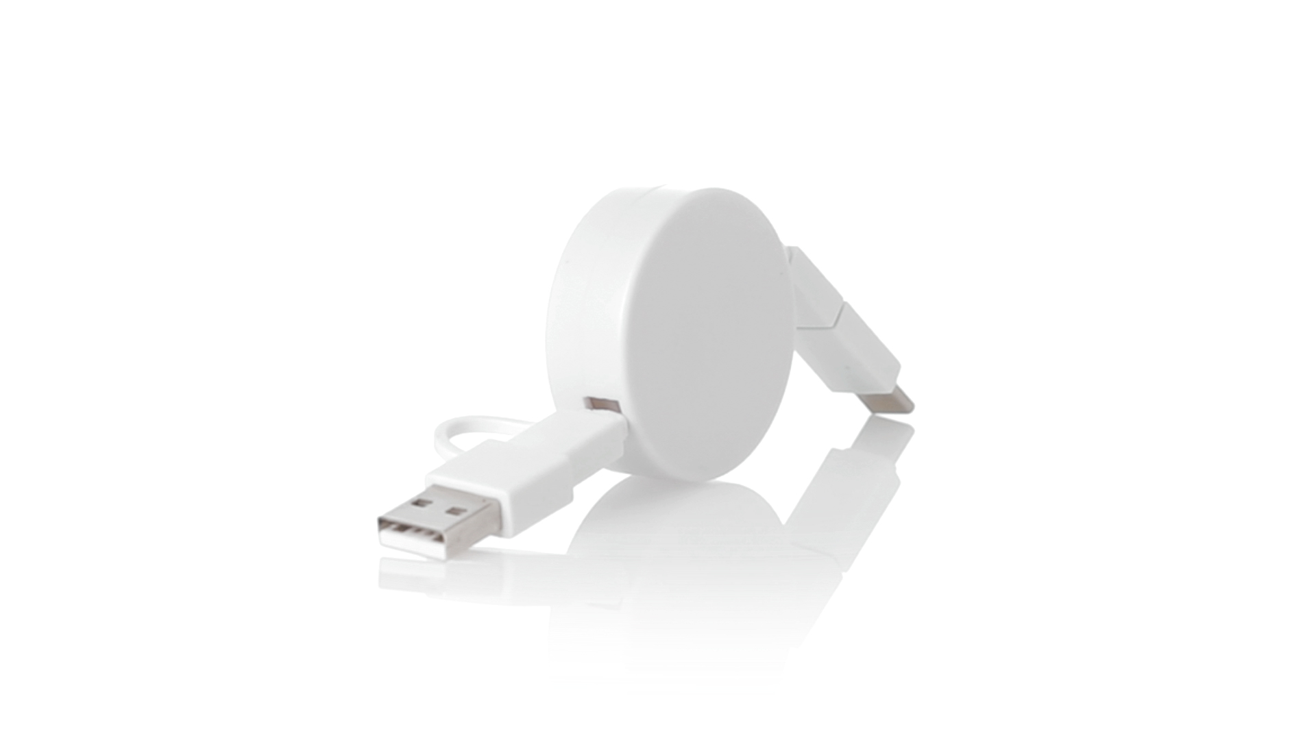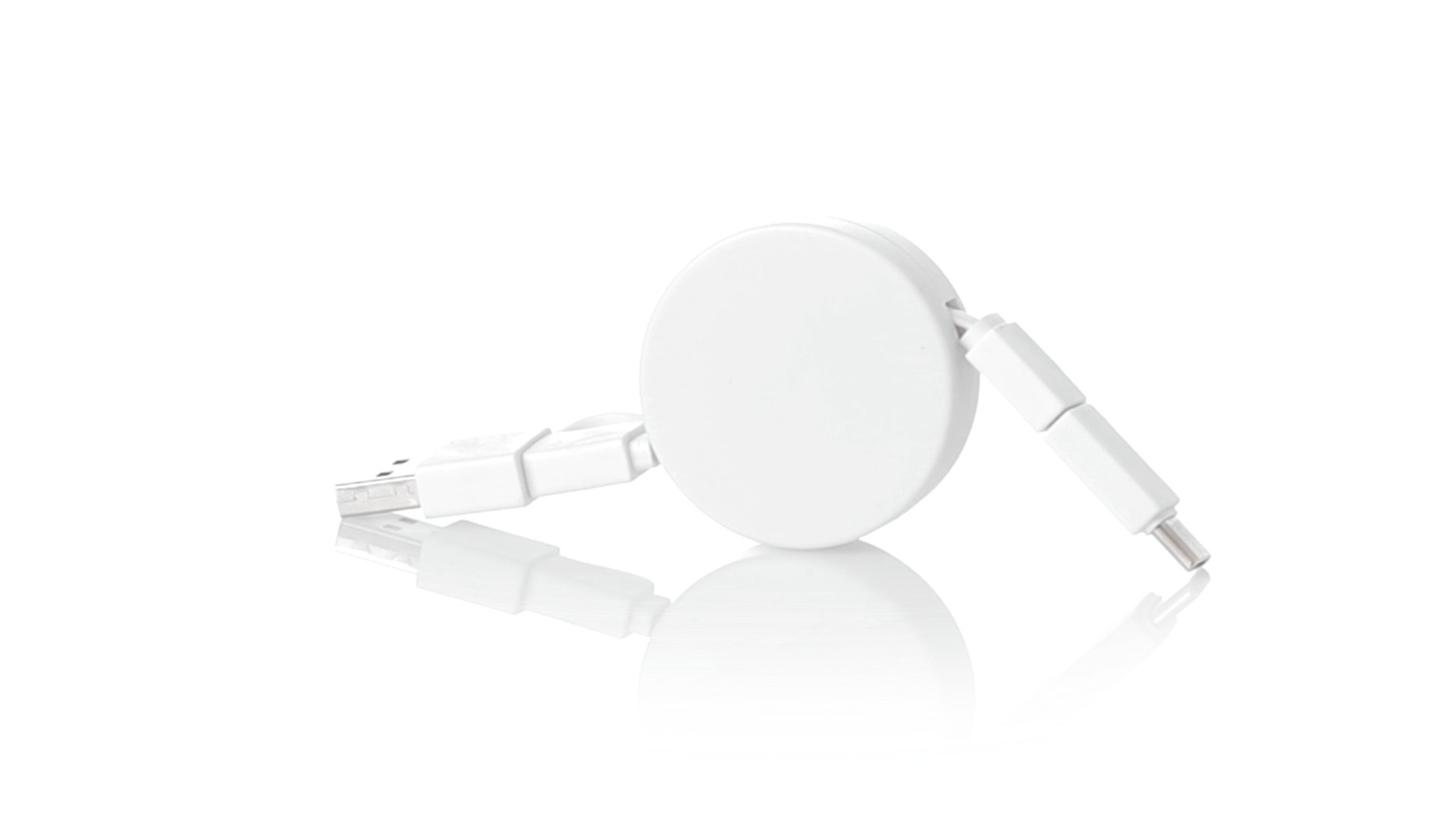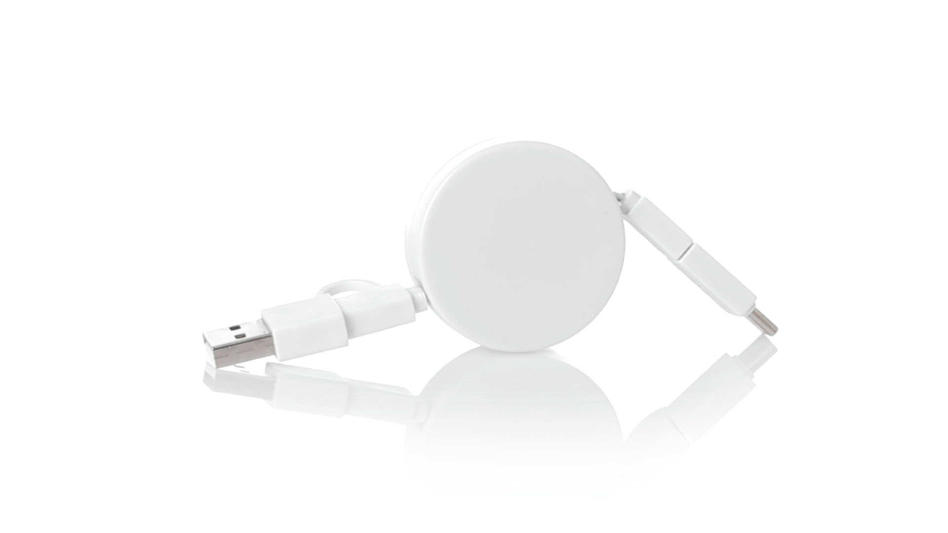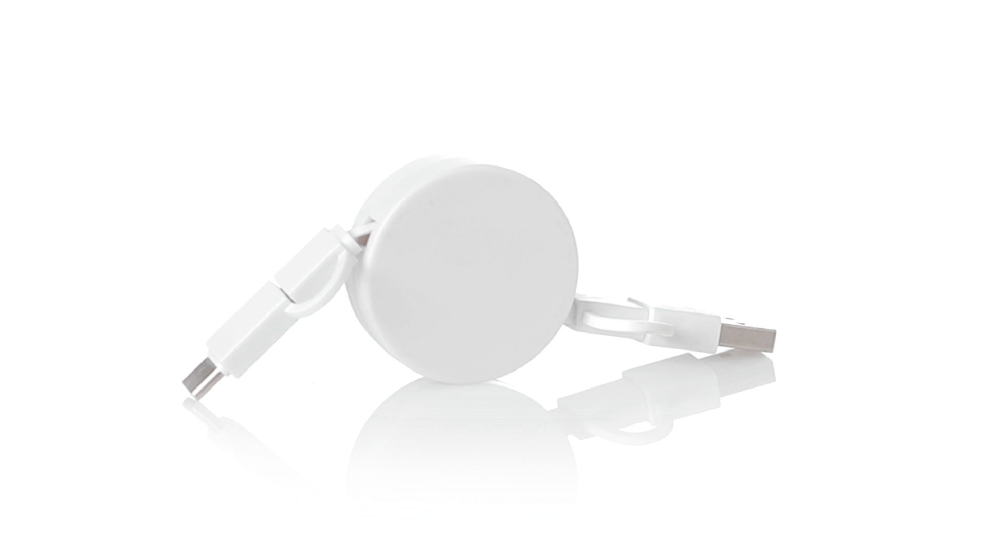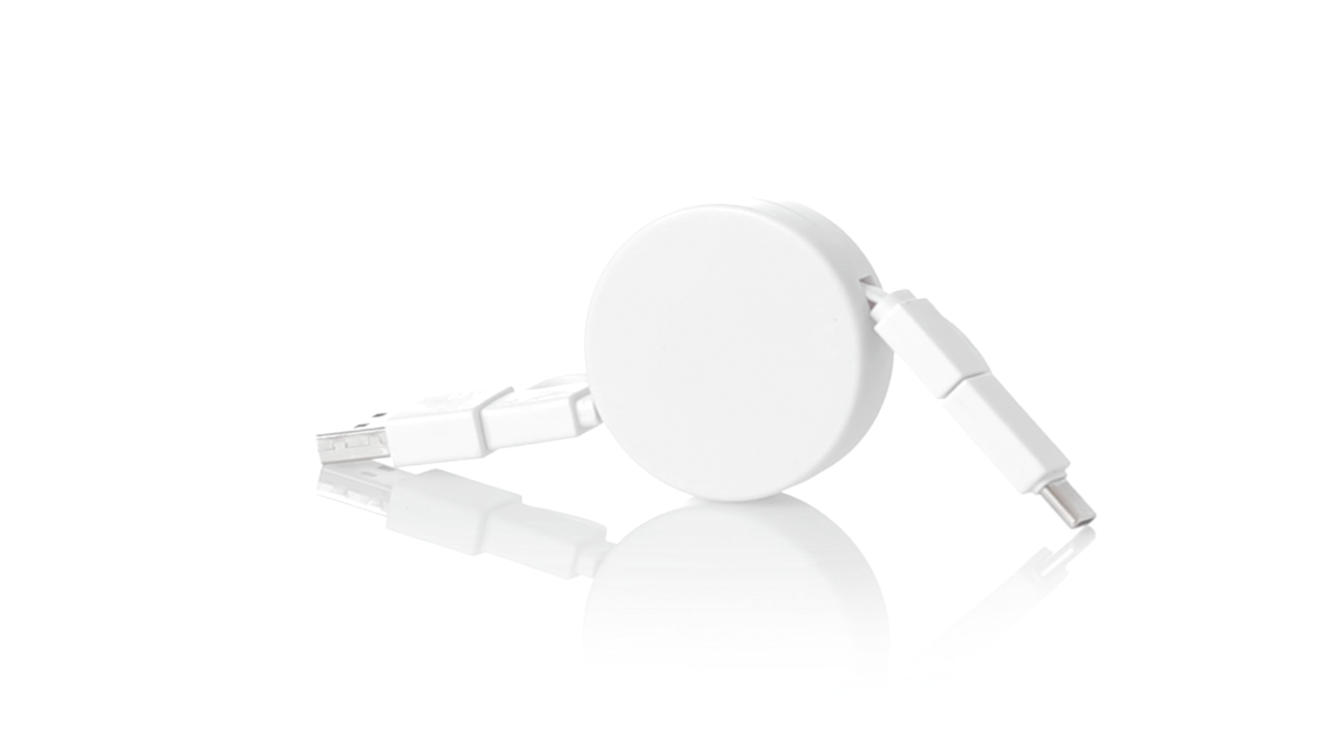 Ultrakompaktes Design, ausziehbares Ladegerät. Anschlüsse Typ C (Eingang und Ausgang) und Dual Micro USB/Lightning. Auflade- und Datenübertragungsfunktion. Breite Brandingfläche und präsentiert in einer individuellen Tasche.