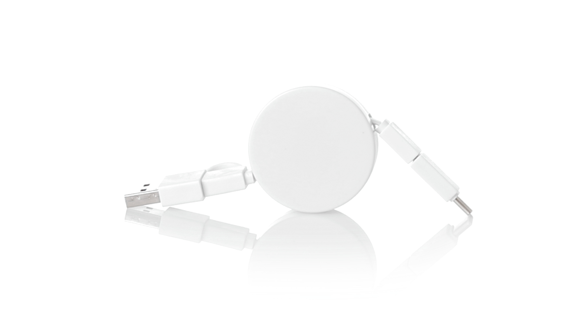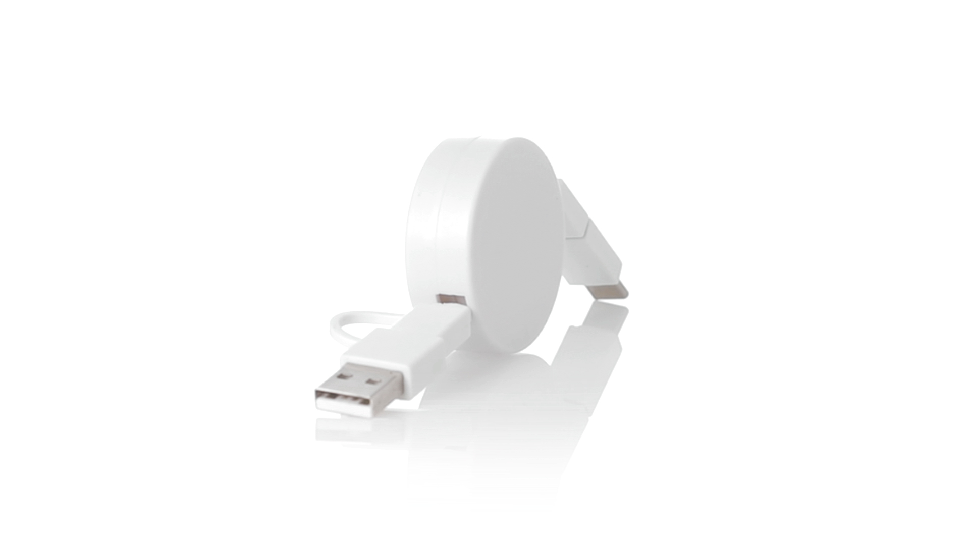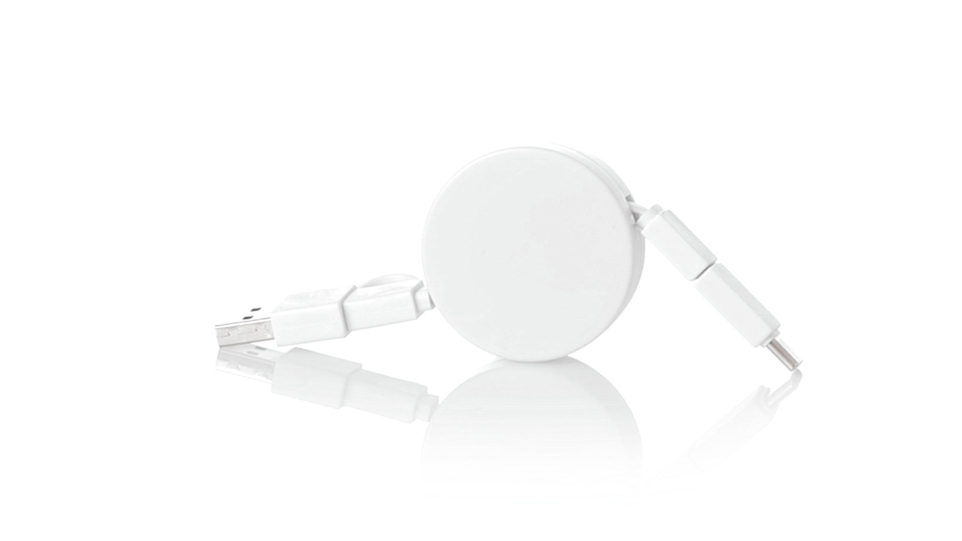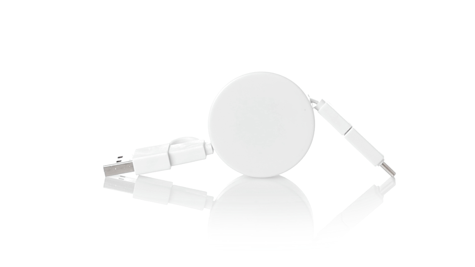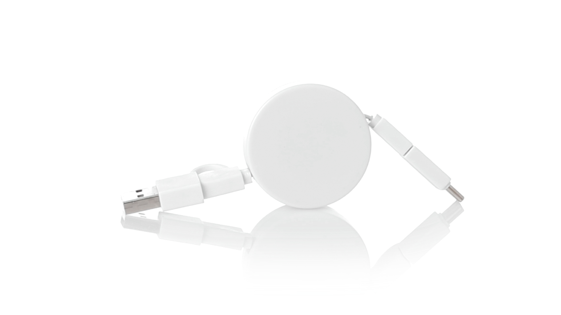 Ultrakompaktes Design, ausziehbares Ladegerät. Anschlüsse Typ C (Eingang und Ausgang) und Dual Micro USB/Lightning. Auflade- und Datenübertragungsfunktion. Breite Brandingfläche und präsentiert in einer individuellen Tasche.