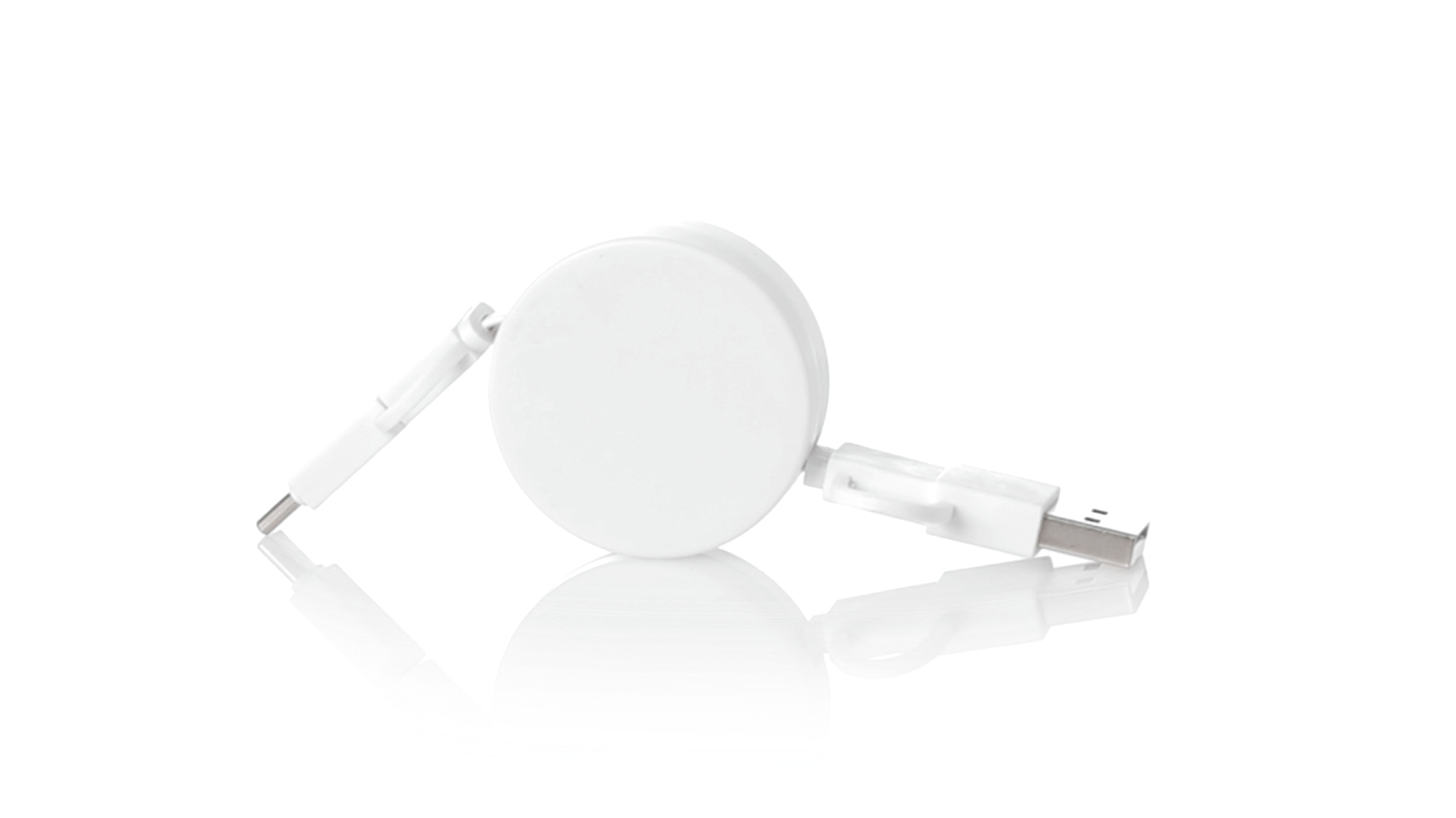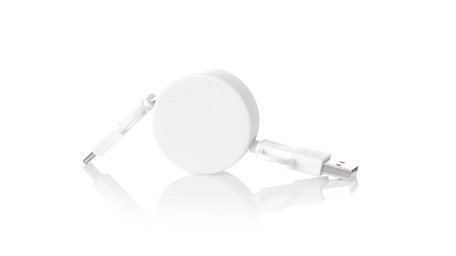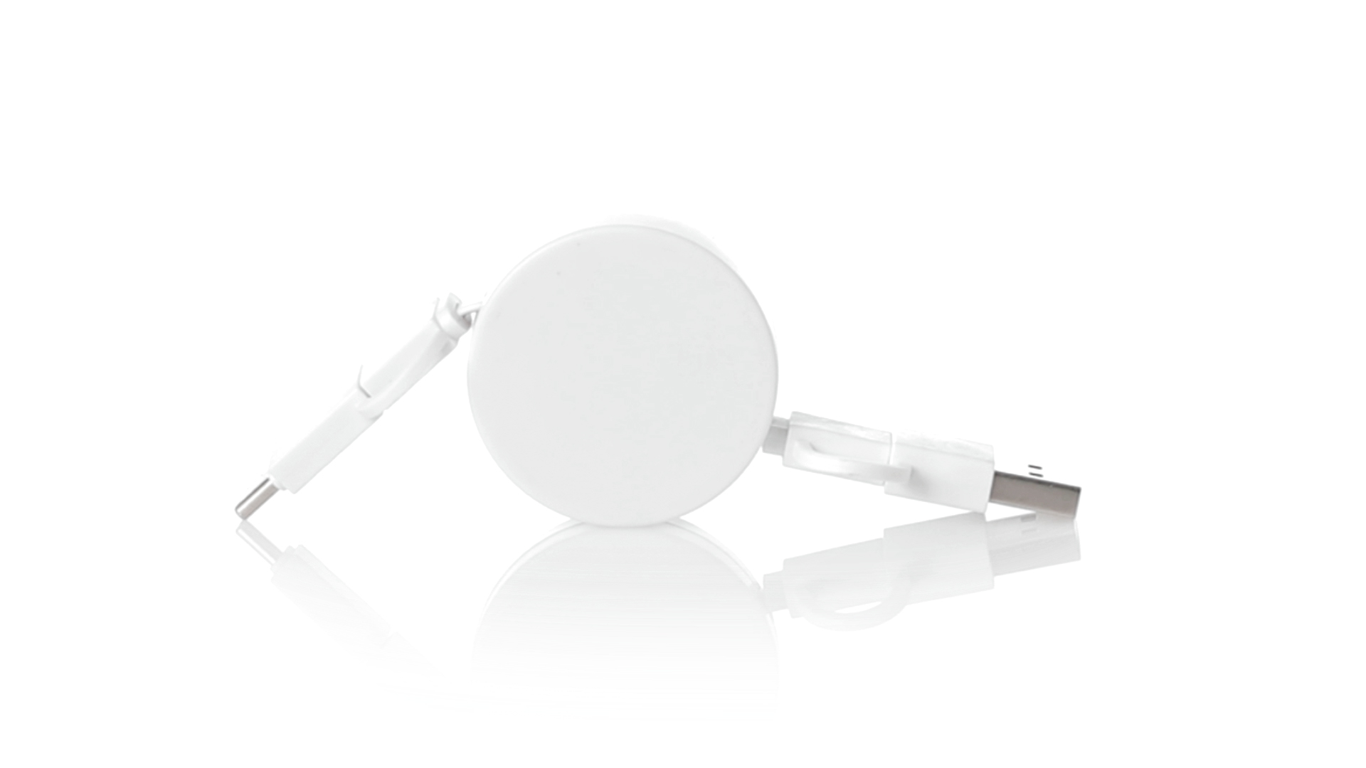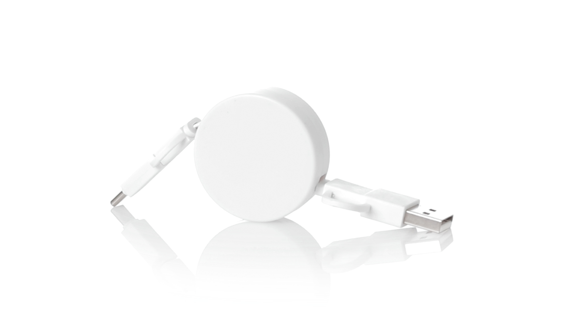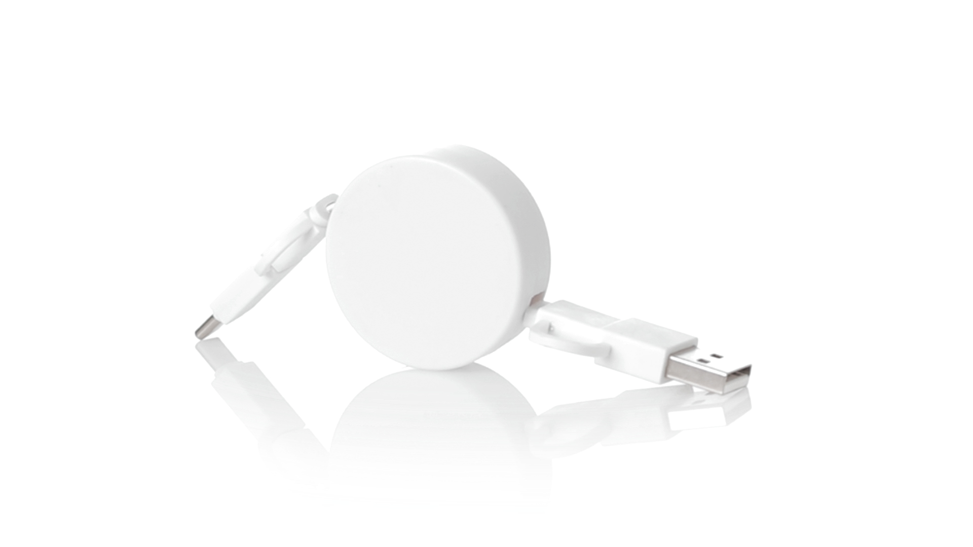 Ultrakompaktes Design, ausziehbares Ladegerät. Anschlüsse Typ C (Eingang und Ausgang) und Dual Micro USB/Lightning. Auflade- und Datenübertragungsfunktion. Breite Brandingfläche und präsentiert in einer individuellen Tasche.