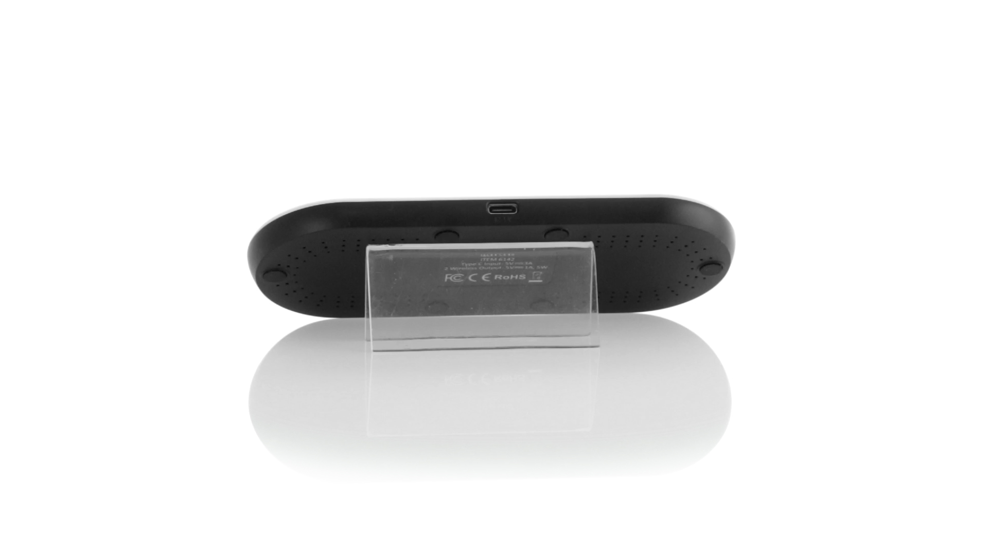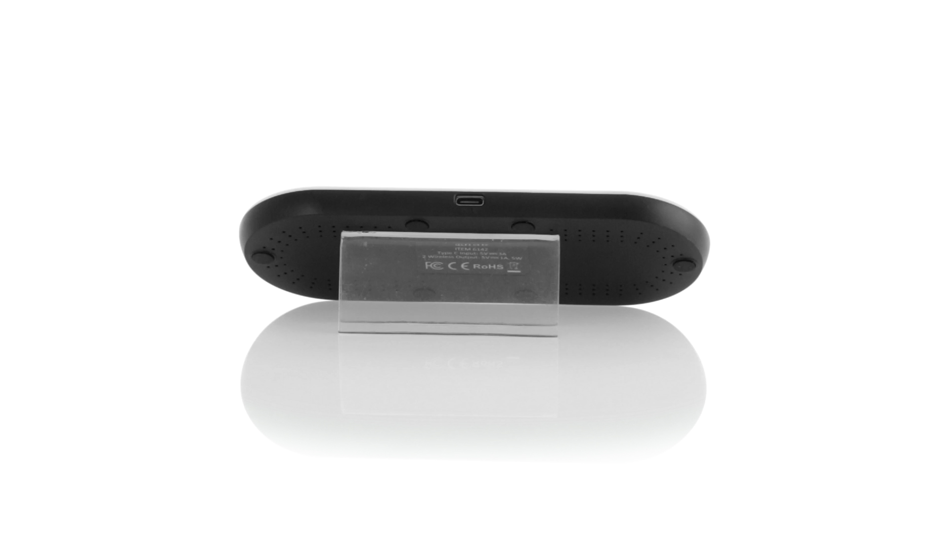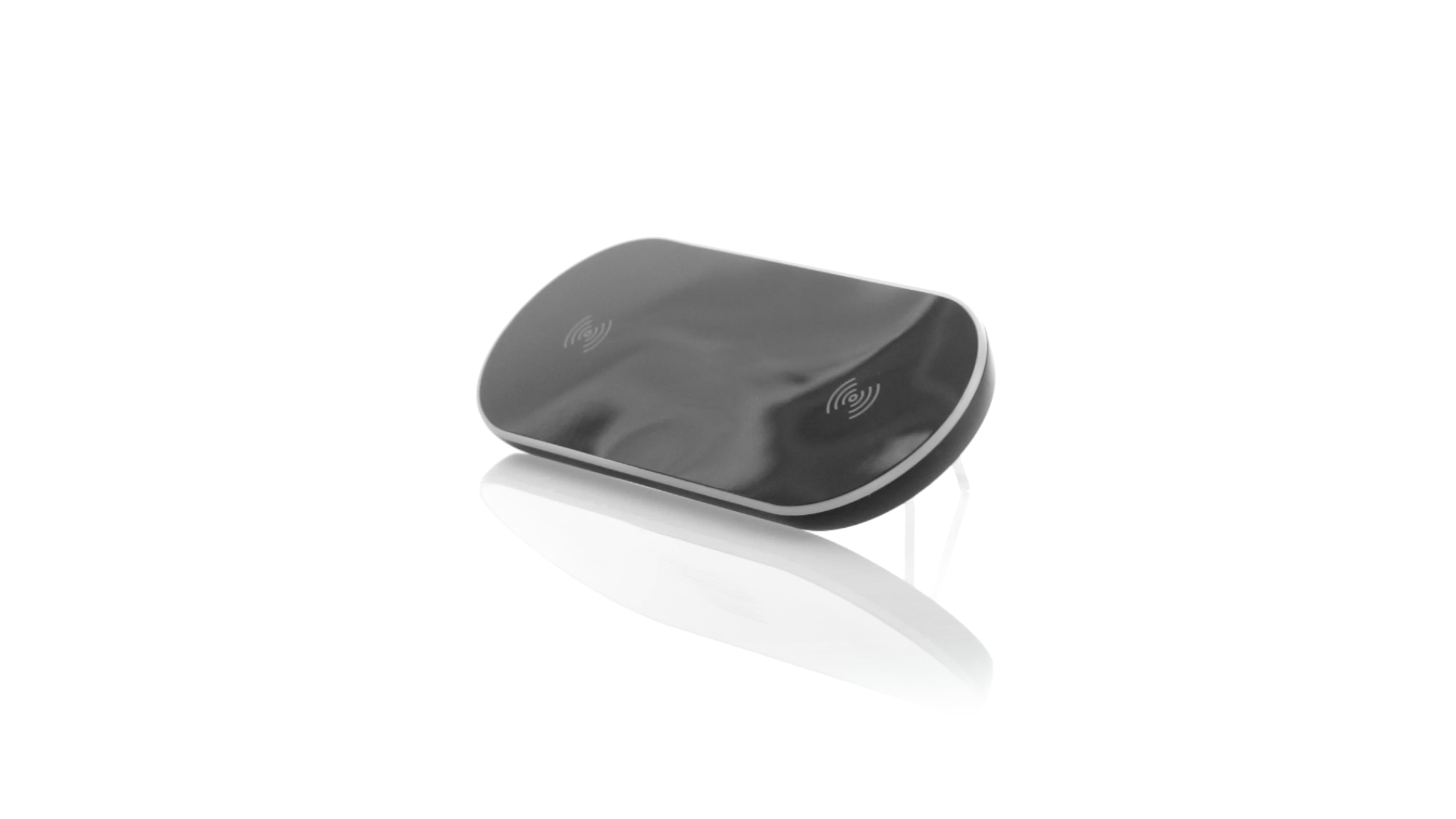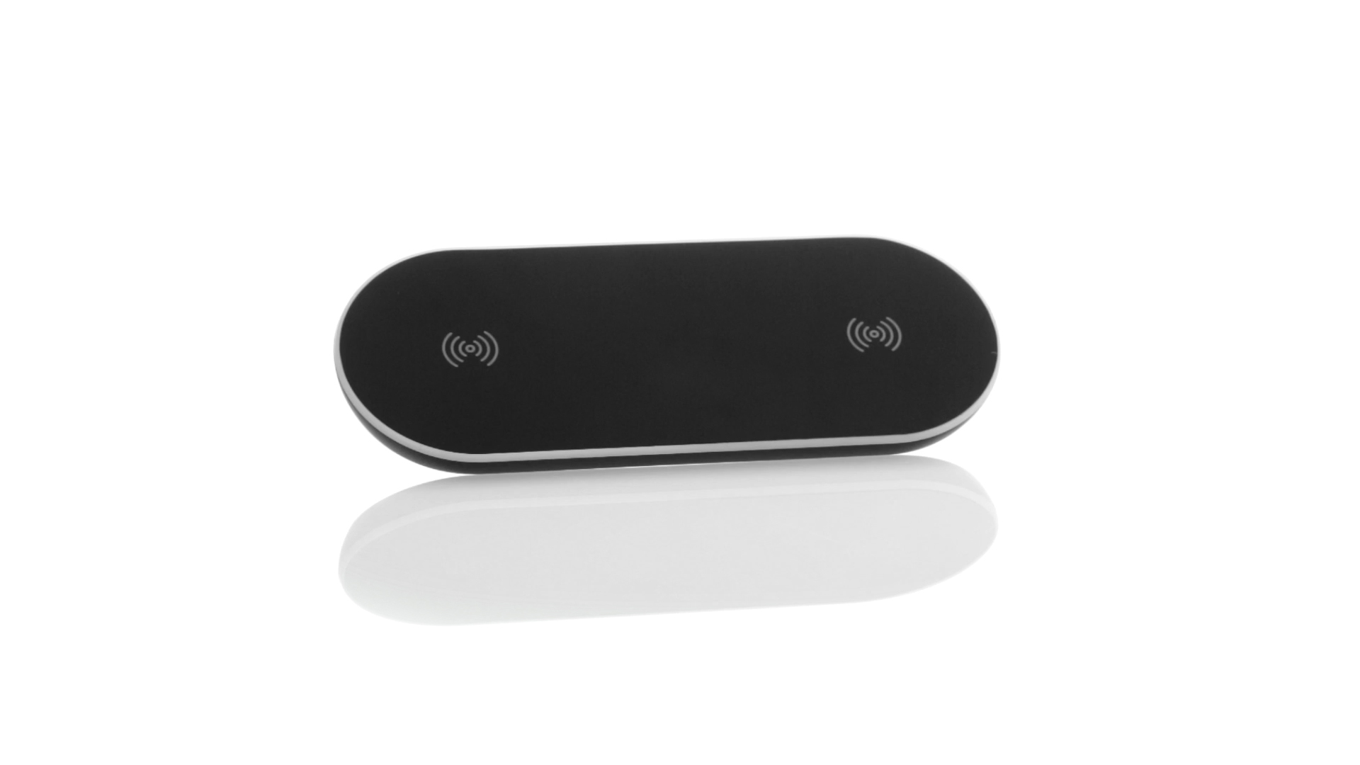 Cargador inalámbrico para carga simultánea de hasta 2 dispositivos. En elegante color negro, con luz led interior y un recubrimiento exterior especialmente diseñado para marcaje en láser, con el que conseguirá que su publicidad o marca quede iluminada con luz blanca. Base antideslizante y compatible con dispositivos equipados con tecnología de carga inalámbrica. Presentado en atractiva caja de diseño. Cable USB incluido.