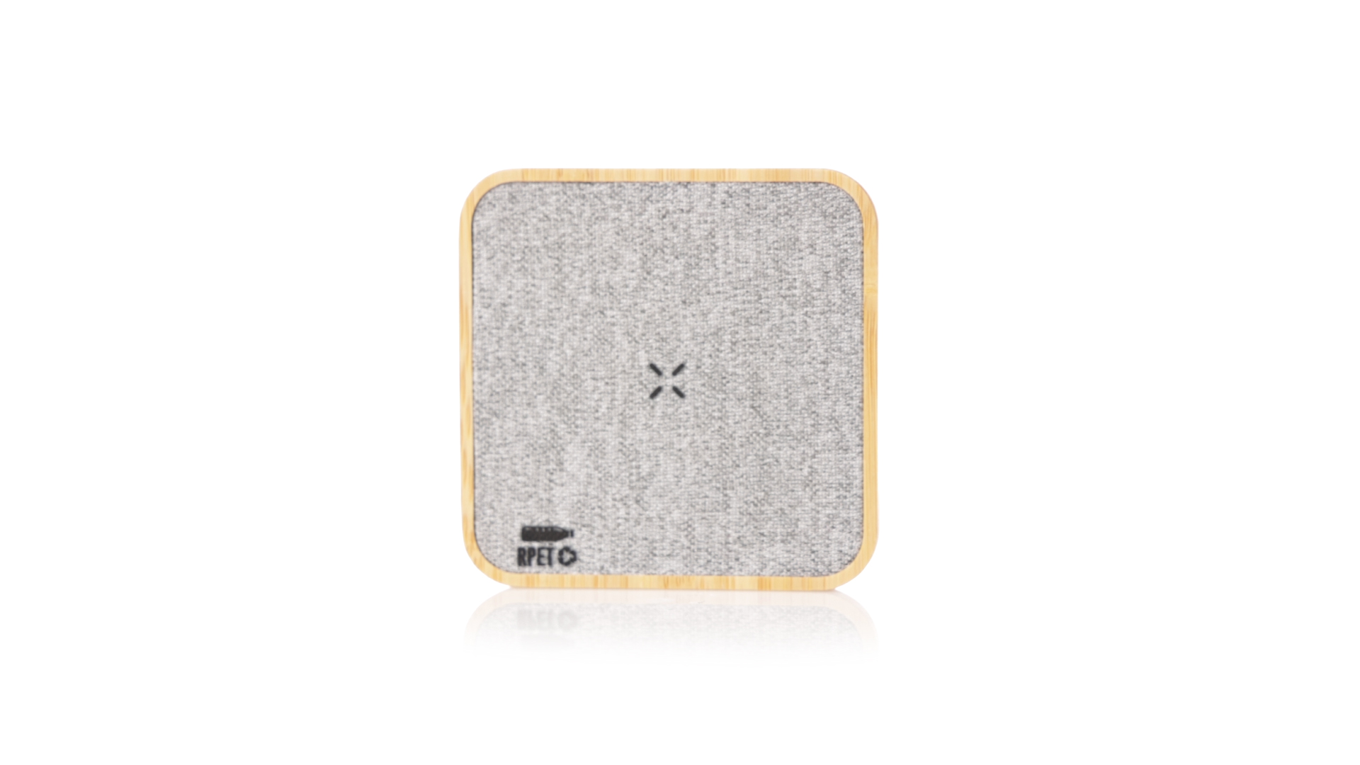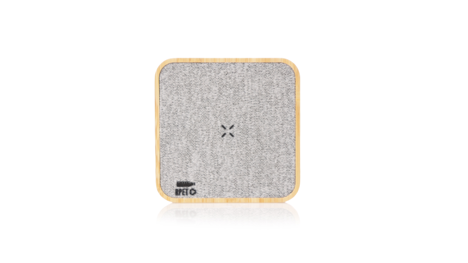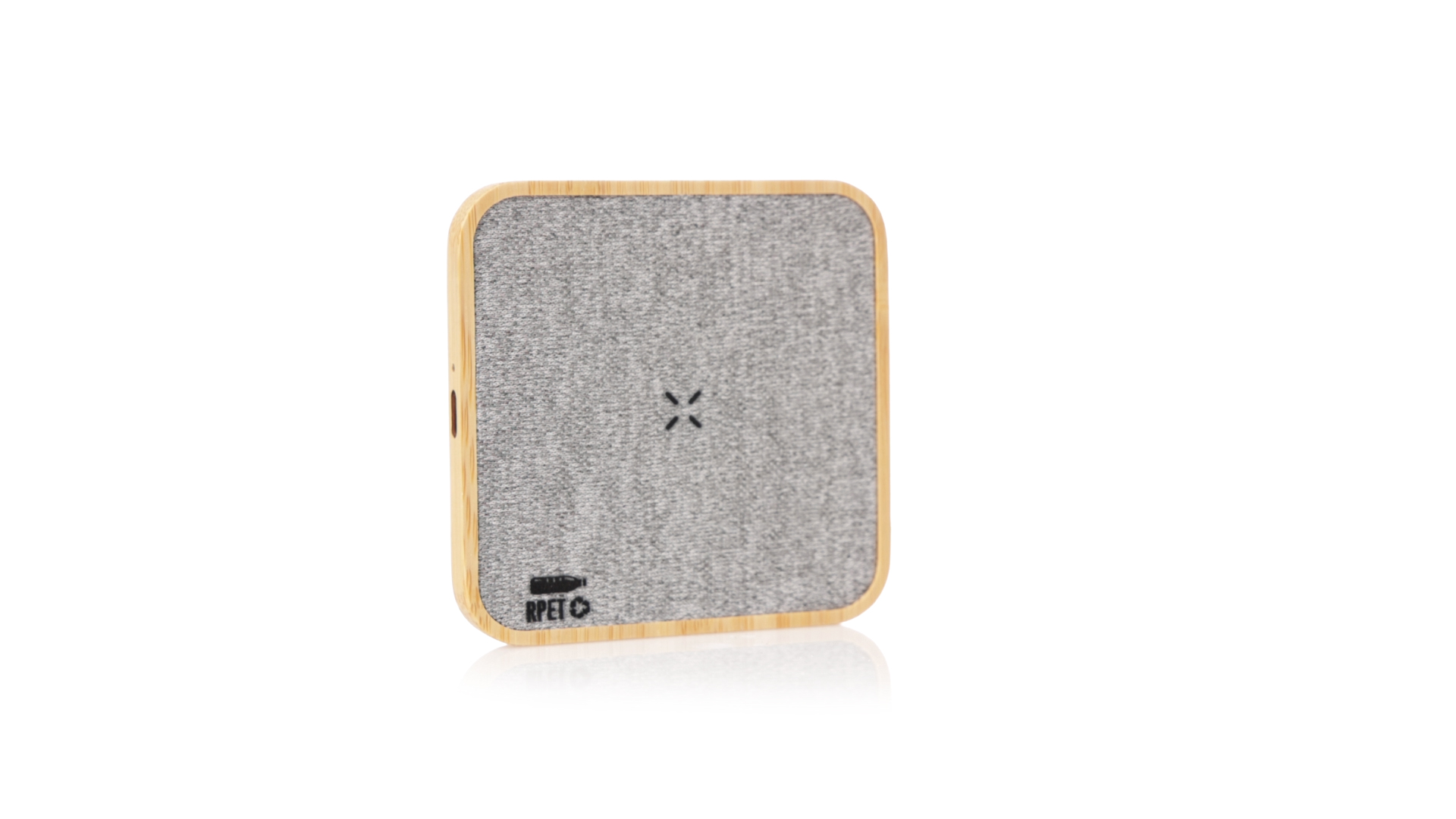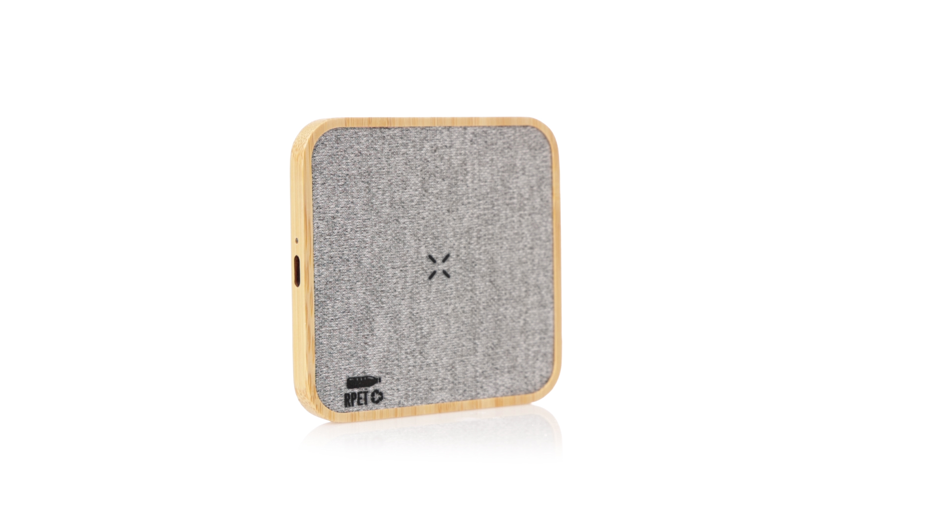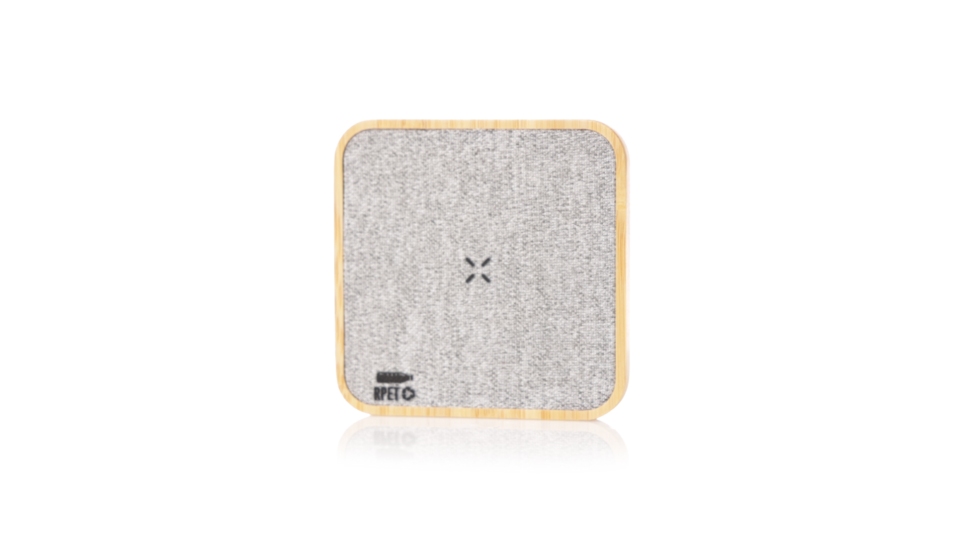 15-W-Wireless-Ladegerät mit quadratischem Design. Hergestellt aus Bambus und RPET-Material, hergestellt aus recyceltem Kunststoff, um die Wiederverwendung von Kunststoffabfällen zu fördern und zur Nachhaltigkeit des Planeten beizutragen. Kompatibel mit Geräten, die mit der kabellosen Qi-Ladetechnologie ausgestattet sind. Inklusive Typ-C-Ladekabel und Bedienungsanleitung in Englisch und Spanisch. Mit RPET-Logo und präsentiert in einer individuellen Kraft-Designbox. Hergestellt nach RoHS-Standards und unter Einhaltung der folgenden Sicherheitsanforderungen: Überhitzungsschutzsystem. Überladeschutzsystem. Blockiersystem zur Vermeidung von Kurzschlüssen.