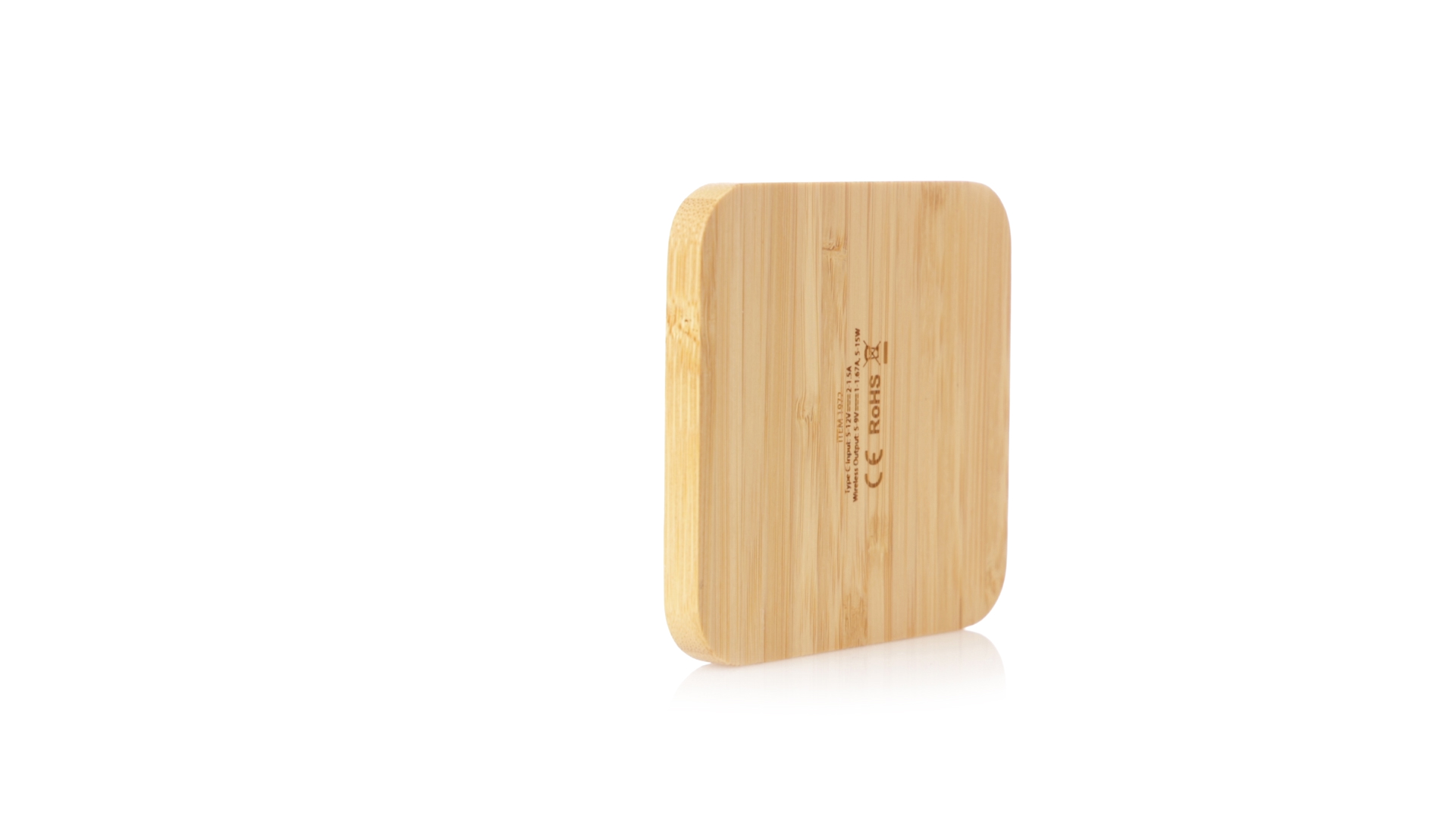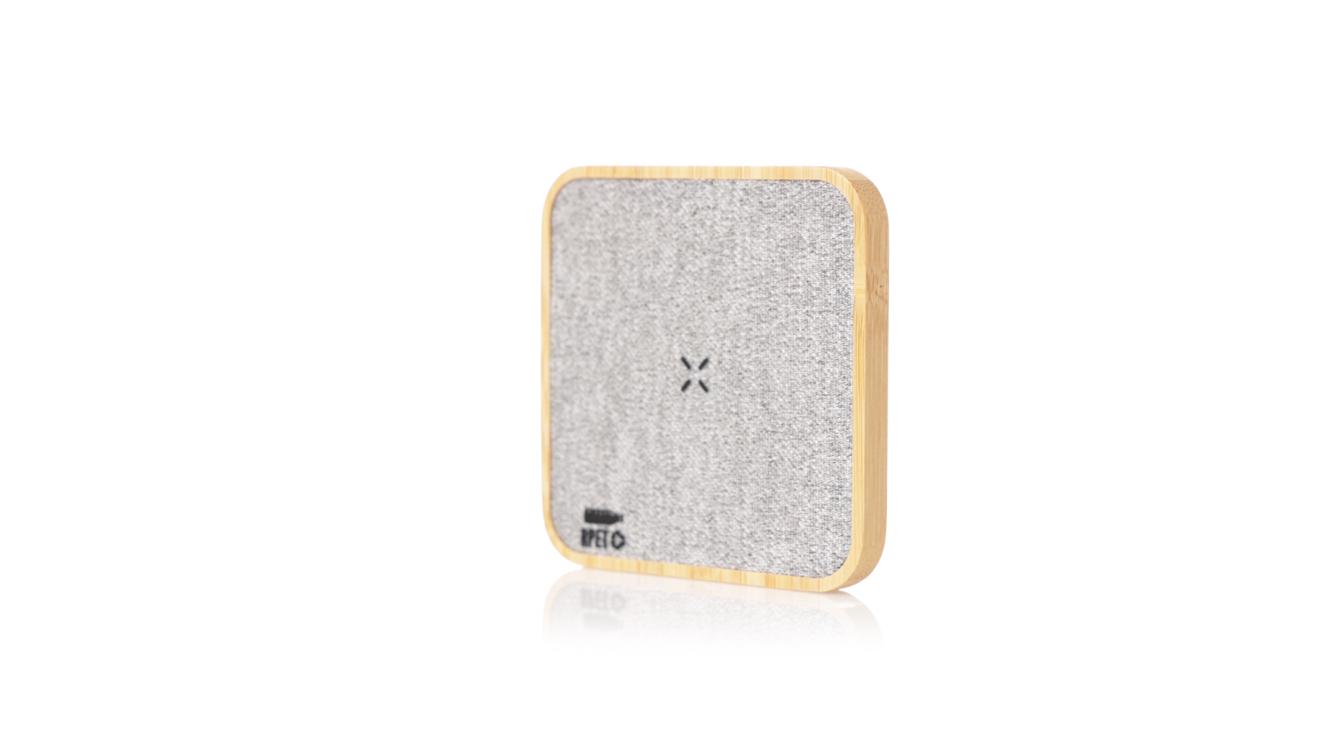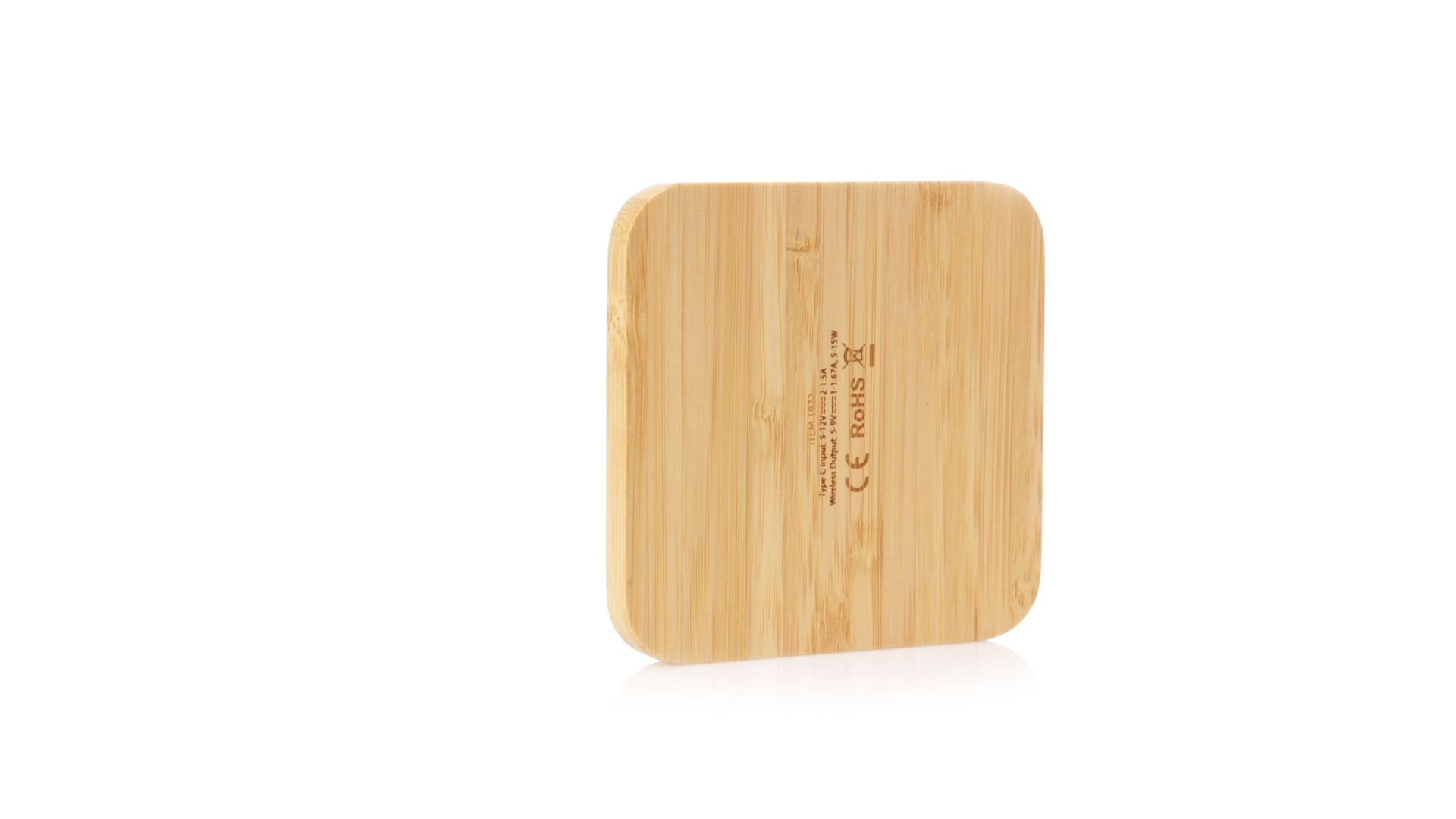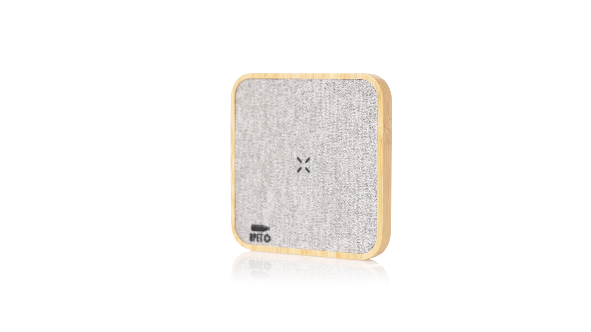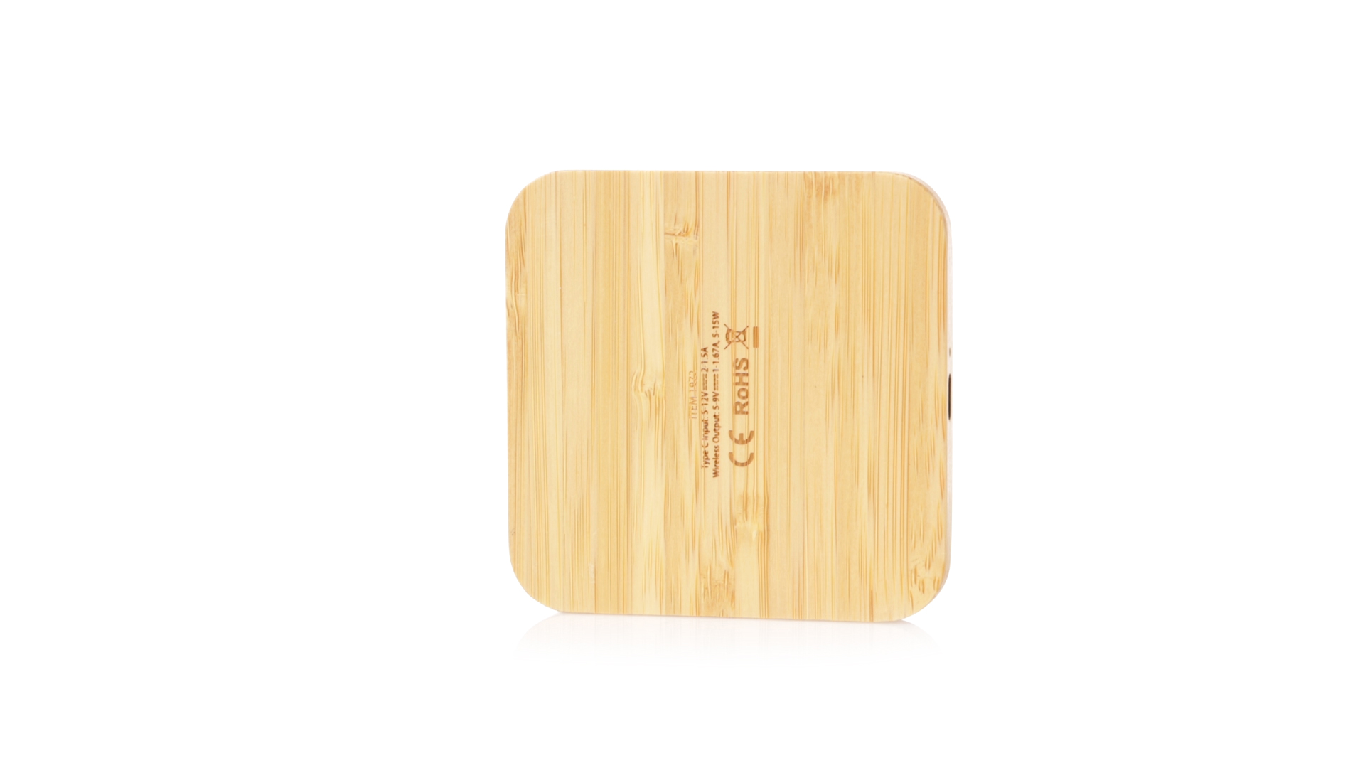 15-W-Wireless-Ladegerät mit quadratischem Design. Hergestellt aus Bambus und RPET-Material, hergestellt aus recyceltem Kunststoff, um die Wiederverwendung von Kunststoffabfällen zu fördern und zur Nachhaltigkeit des Planeten beizutragen. Kompatibel mit Geräten, die mit der kabellosen Qi-Ladetechnologie ausgestattet sind. Inklusive Typ-C-Ladekabel und Bedienungsanleitung in Englisch und Spanisch. Mit RPET-Logo und präsentiert in einer individuellen Kraft-Designbox. Hergestellt nach RoHS-Standards und unter Einhaltung der folgenden Sicherheitsanforderungen: Überhitzungsschutzsystem. Überladeschutzsystem. Blockiersystem zur Vermeidung von Kurzschlüssen.