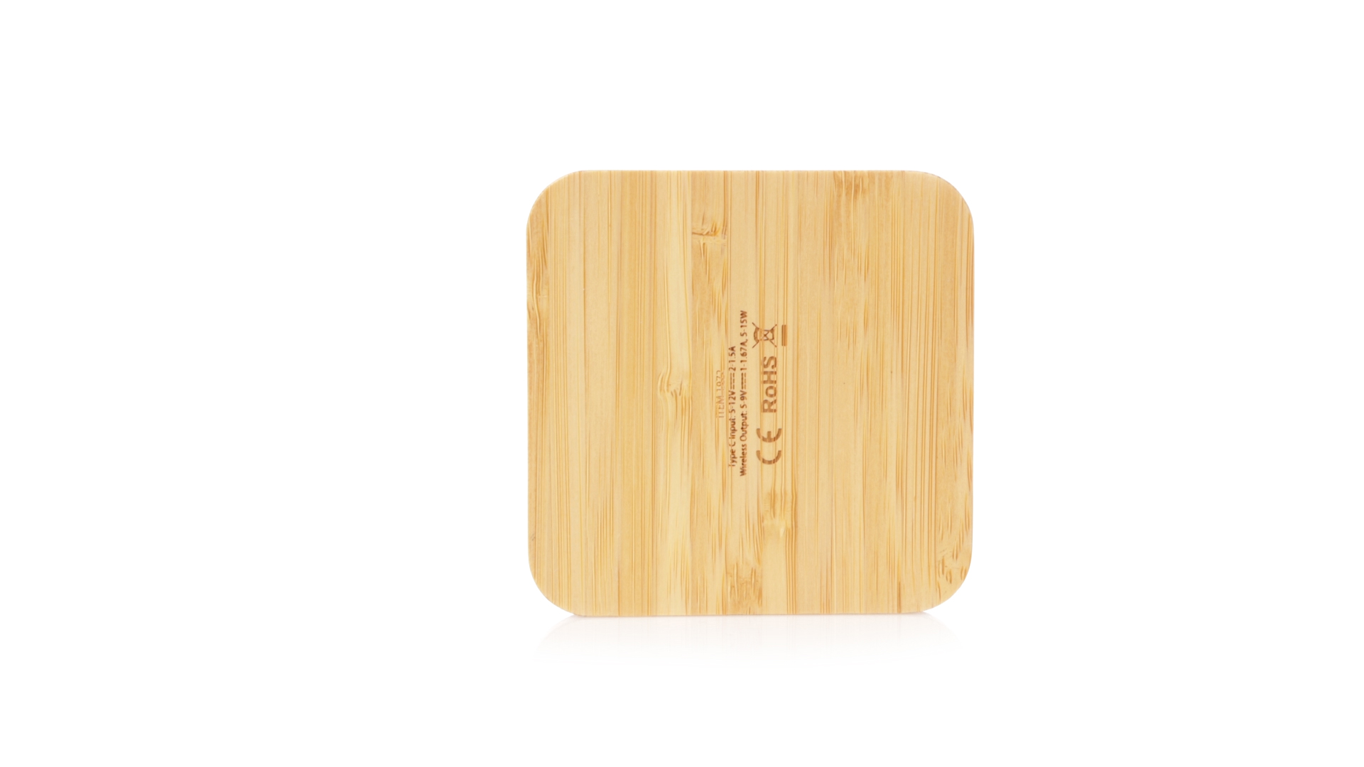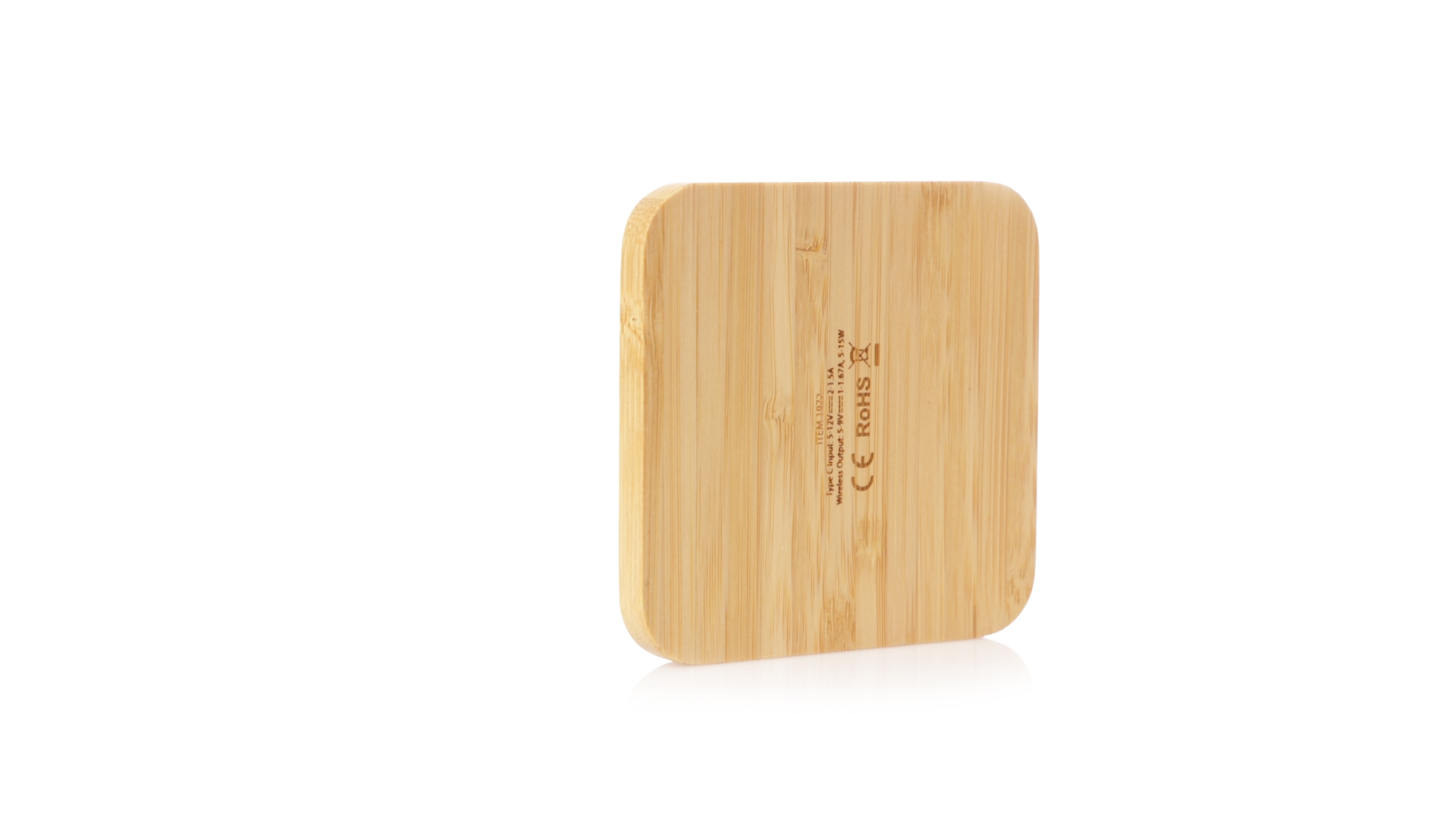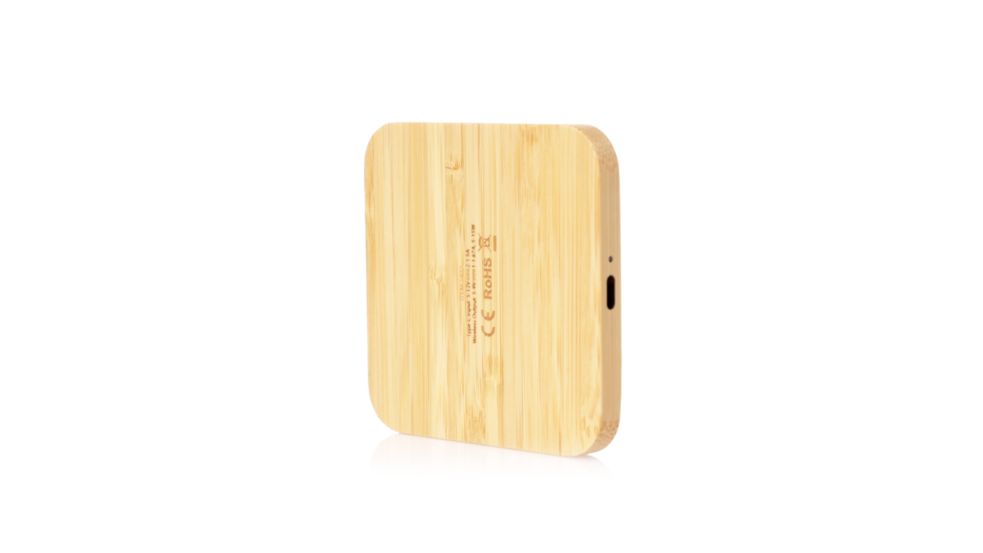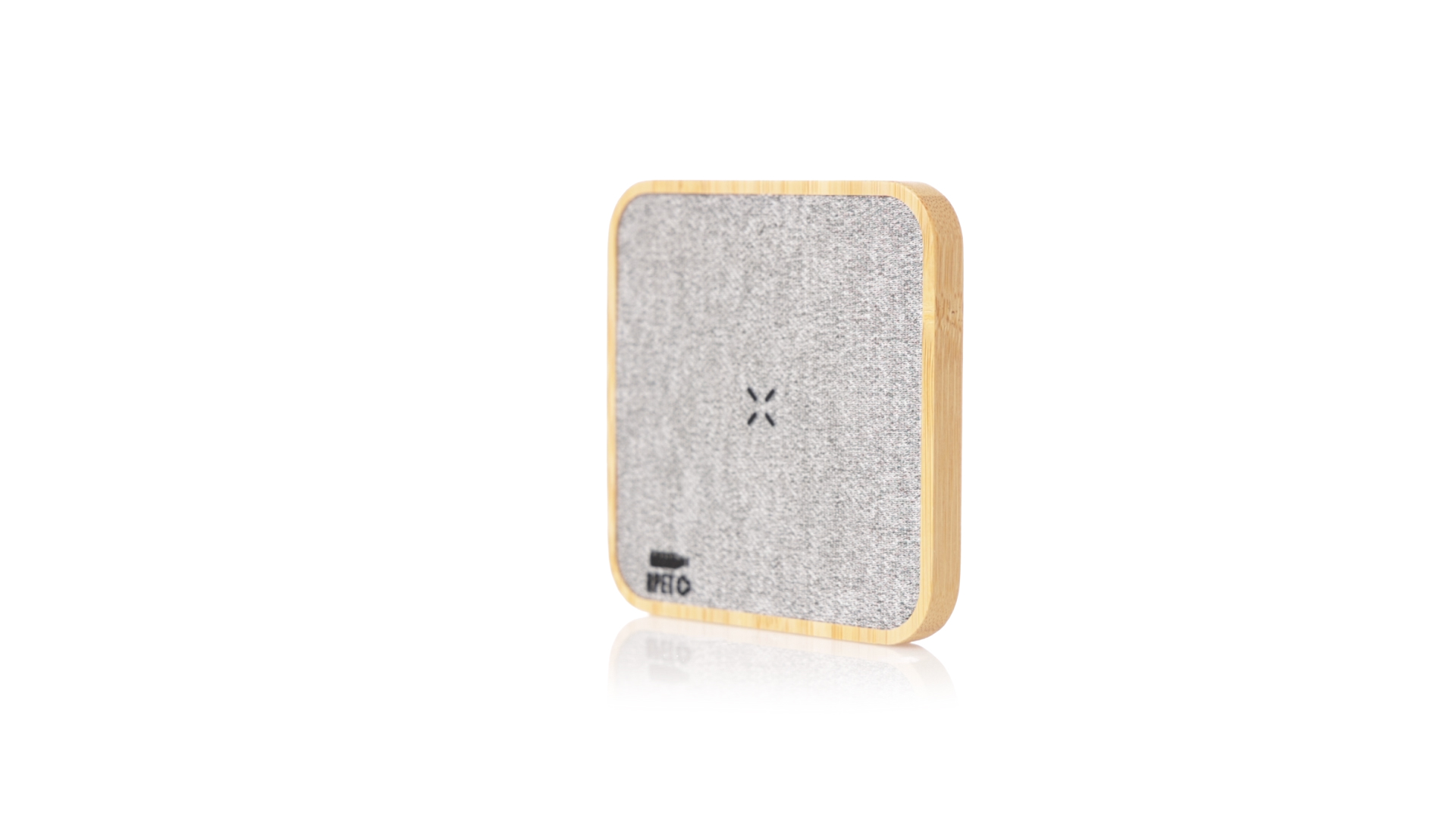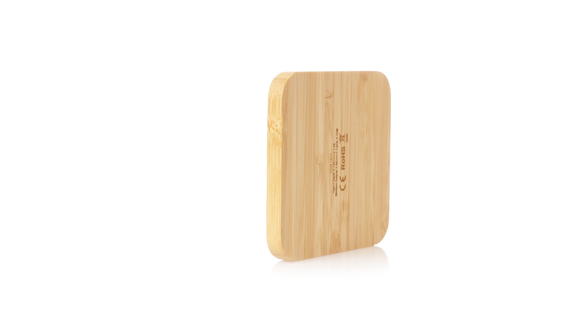 15-W-Wireless-Ladegerät mit quadratischem Design. Hergestellt aus Bambus und RPET-Material, hergestellt aus recyceltem Kunststoff, um die Wiederverwendung von Kunststoffabfällen zu fördern und zur Nachhaltigkeit des Planeten beizutragen. Kompatibel mit Geräten, die mit der kabellosen Qi-Ladetechnologie ausgestattet sind. Inklusive Typ-C-Ladekabel und Bedienungsanleitung in Englisch und Spanisch. Mit RPET-Logo und präsentiert in einer individuellen Kraft-Designbox. Hergestellt nach RoHS-Standards und unter Einhaltung der folgenden Sicherheitsanforderungen: Überhitzungsschutzsystem. Überladeschutzsystem. Blockiersystem zur Vermeidung von Kurzschlüssen.