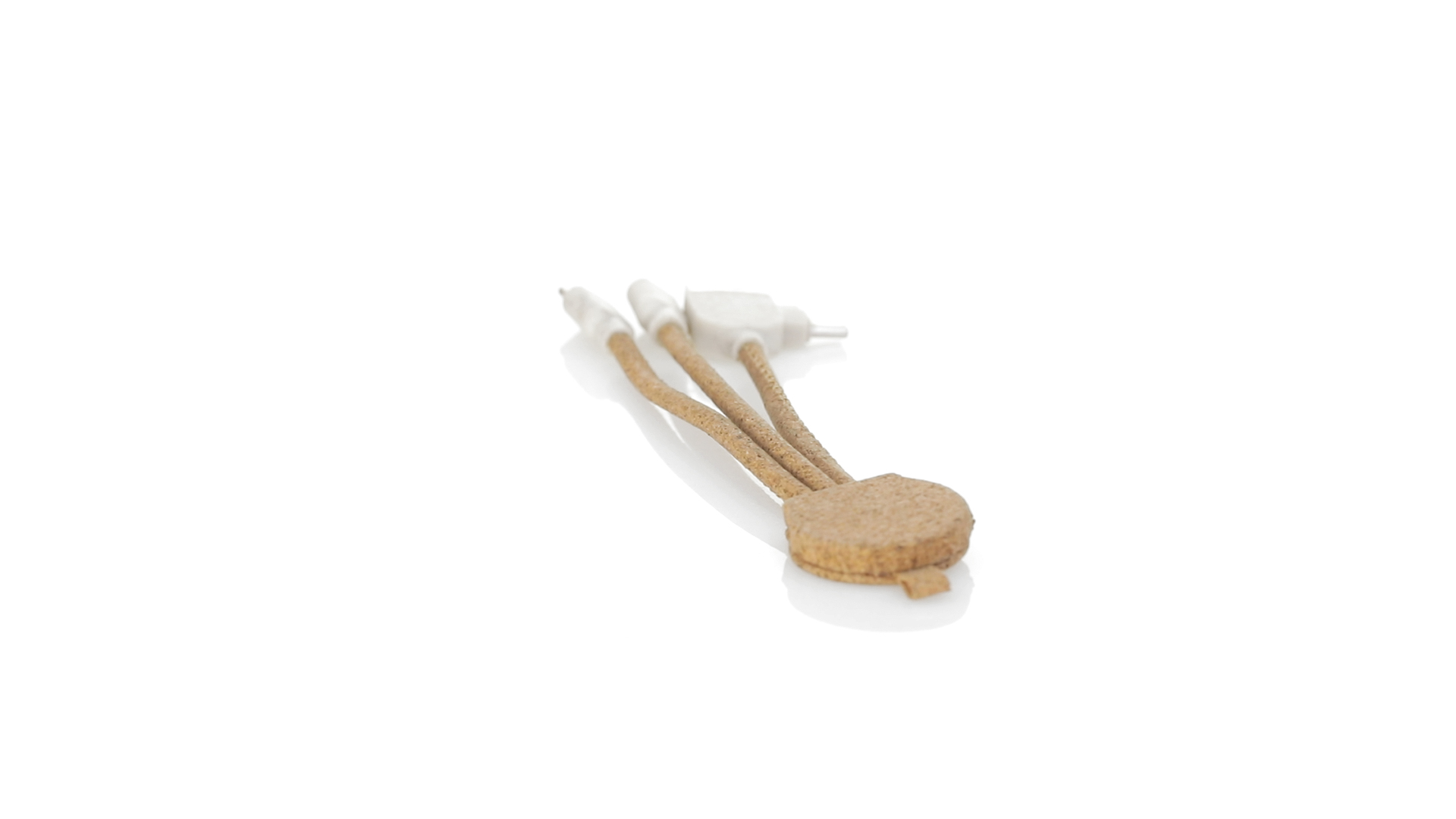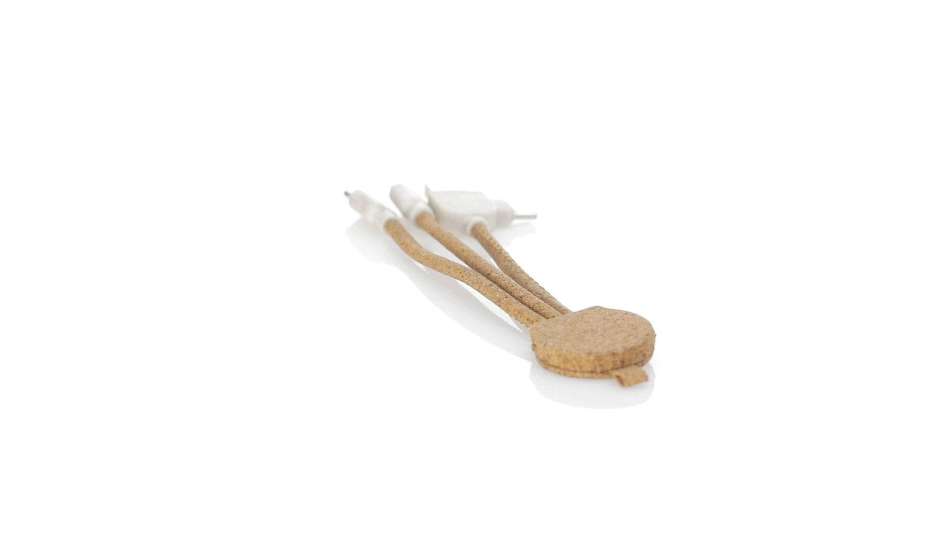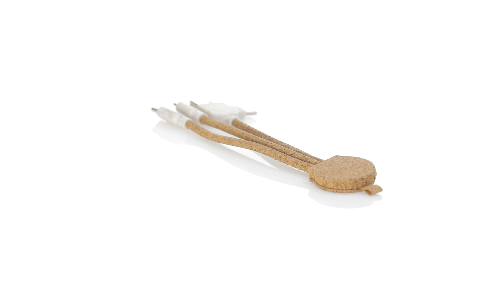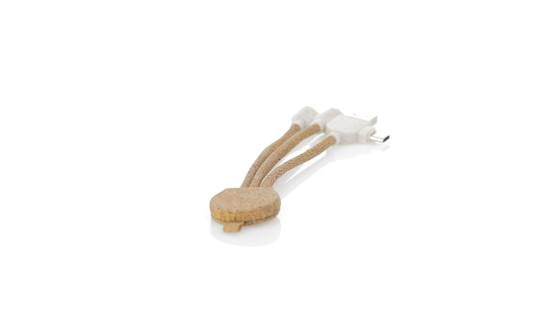 Nature Line USB-Ladekabel aus Naturkork und mit Zubehör aus Weizenrohr, um die Verwendung natürlicher Rohstoffe zu fördern und Schadstoffemissionen zu reduzieren. Mit USB, Typ C (Eingang und Ausgang) und zwei Micro-USB-Lightning-Anschlüssen. Mit Aufhängezubehör und glatter Fläche zum Beschriften. Präsentiert in einem individuellen, selbstverschliessenden Beutel mit Ökodesign.