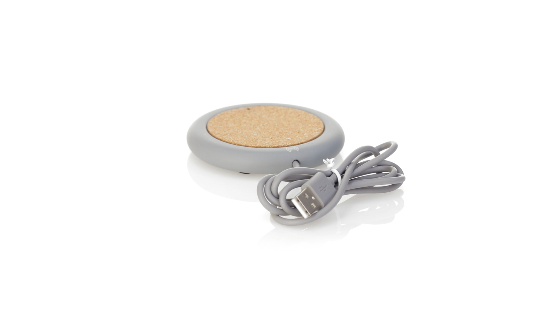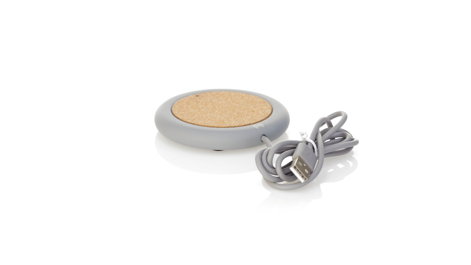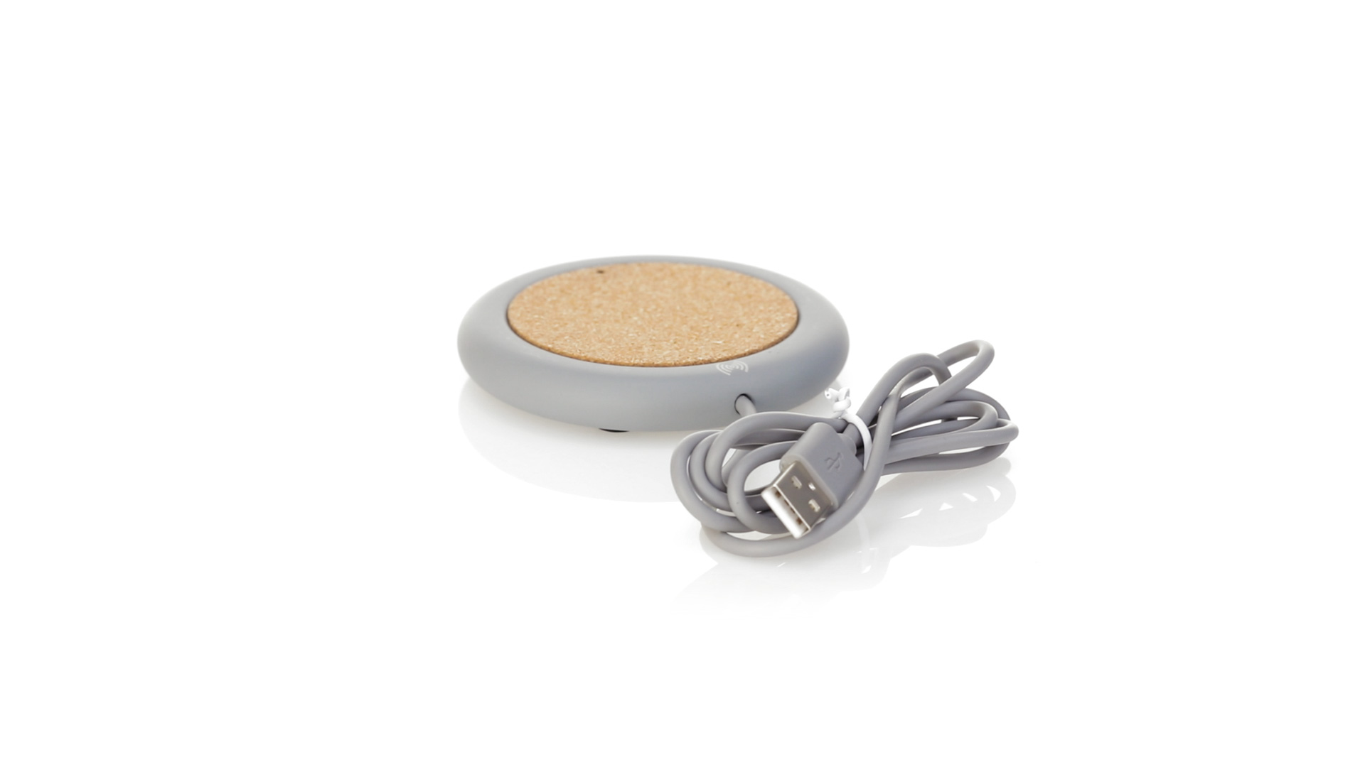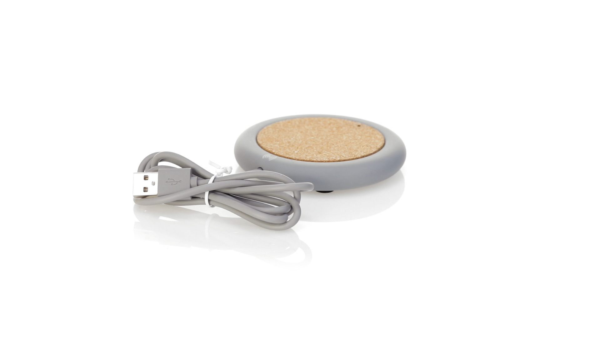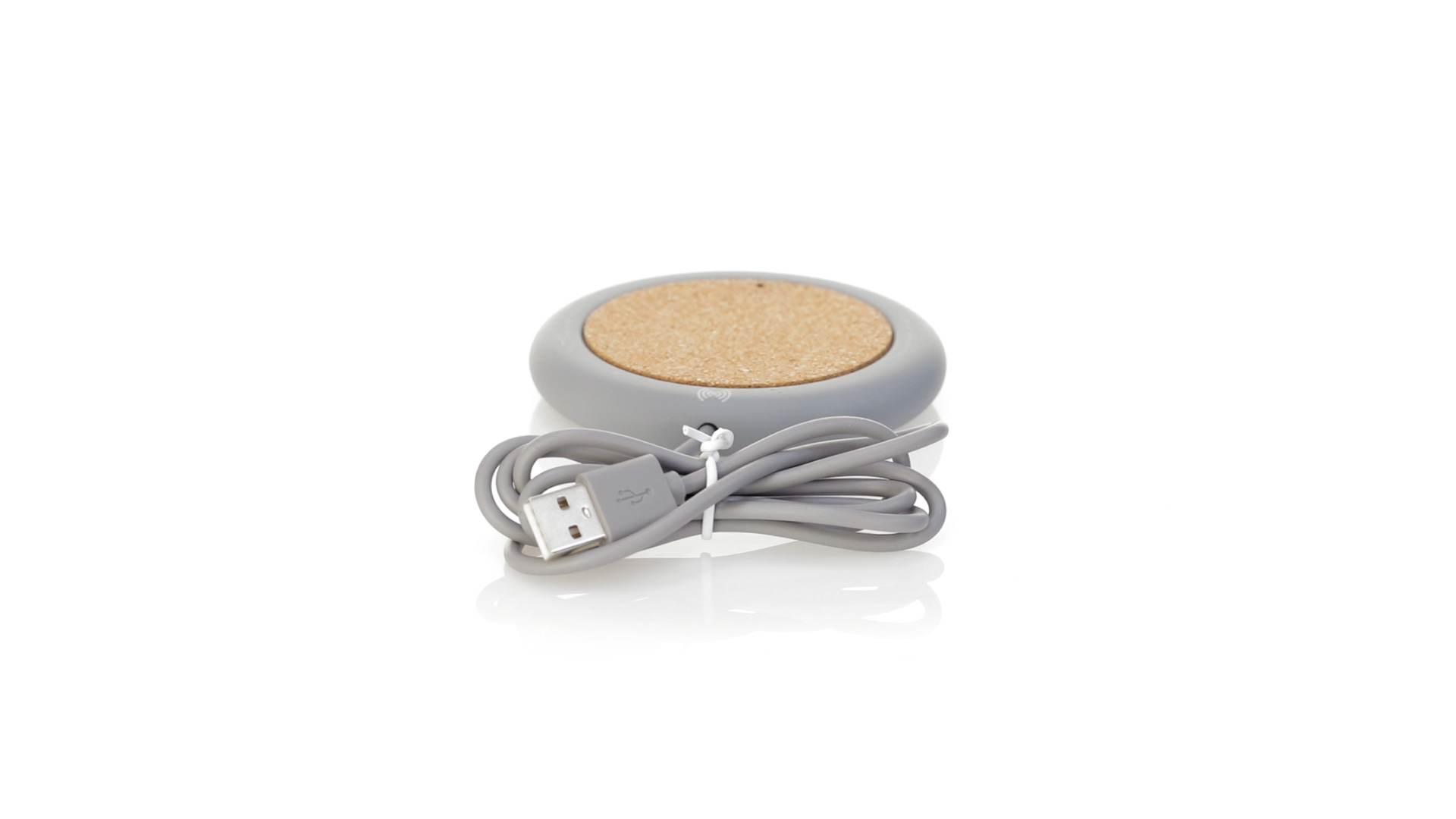 Drahtloses Ladegerät 5W Nature Line im kreisförmigen Design, in Kombination von Naturkork und Kalksteinzement, einem Konglomerat, das durch Mischen von natürlichen Materialien, hauptsächlich gemahlenem Kalkstein und Wasser, gebildet wird, wodurch ein Material von grosser Konsistenz und Haltbarkeit entsteht.LED-Anzeige und passendes 1 m langes USB-Ladekabel. Kompatibel mit Geräten, die mit kabelloser Ladetechnik ausgestattet sind. Sicherheitsschutz zum Schutz vor Überhitzung, Überladung und Kurzschluss. Präsentiert in attraktiver Öko-Design-Box.
