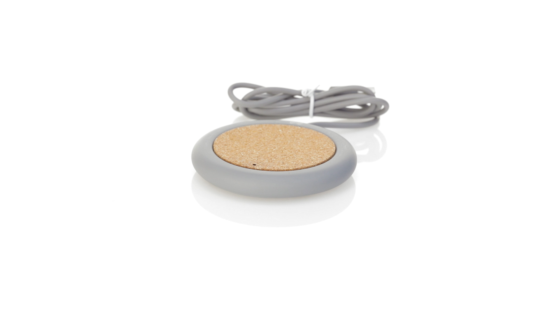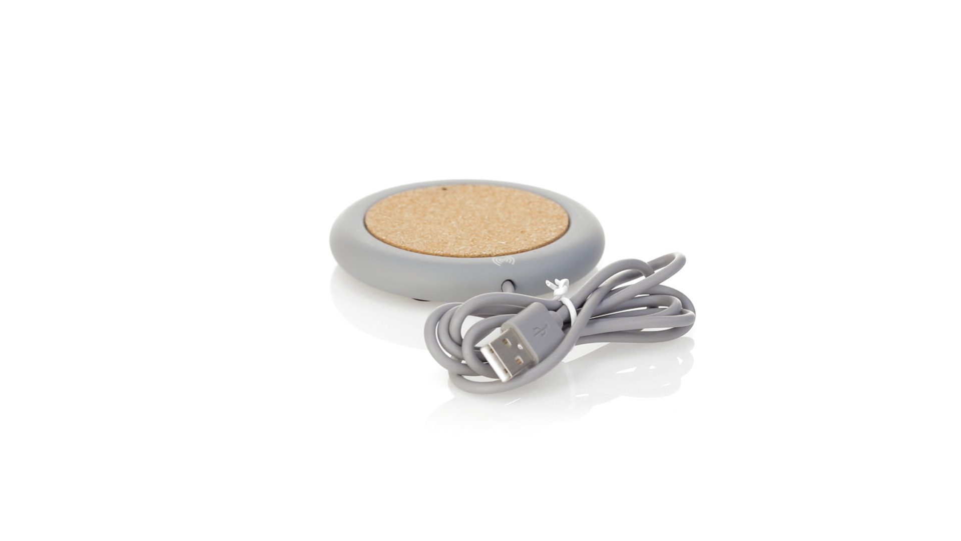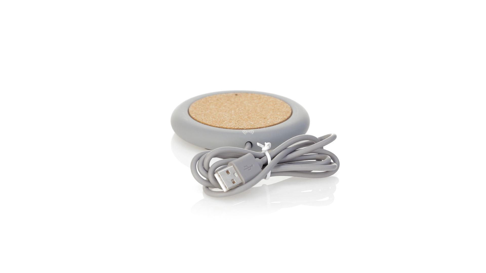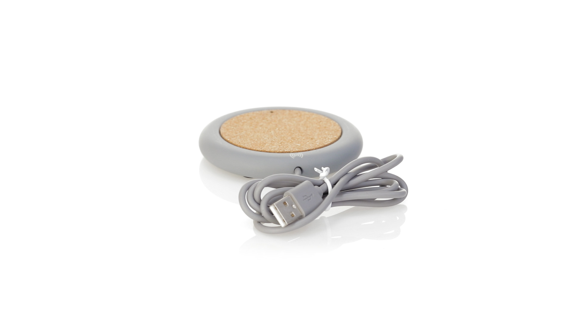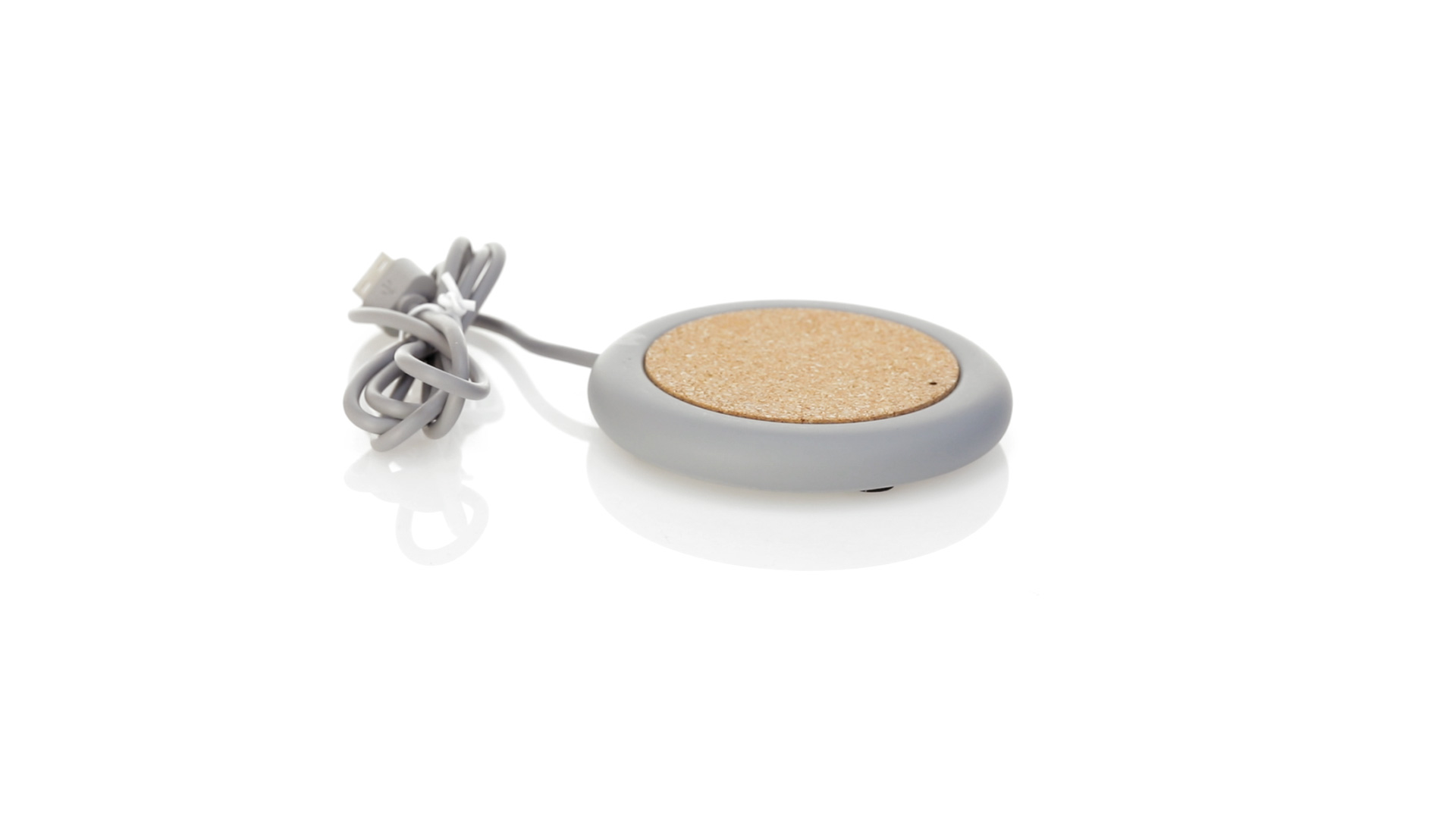 Drahtloses Ladegerät 5W Nature Line im kreisförmigen Design, in Kombination von Naturkork und Kalksteinzement, einem Konglomerat, das durch Mischen von natürlichen Materialien, hauptsächlich gemahlenem Kalkstein und Wasser, gebildet wird, wodurch ein Material von grosser Konsistenz und Haltbarkeit entsteht.LED-Anzeige und passendes 1 m langes USB-Ladekabel. Kompatibel mit Geräten, die mit kabelloser Ladetechnik ausgestattet sind. Sicherheitsschutz zum Schutz vor Überhitzung, Überladung und Kurzschluss. Präsentiert in attraktiver Öko-Design-Box.