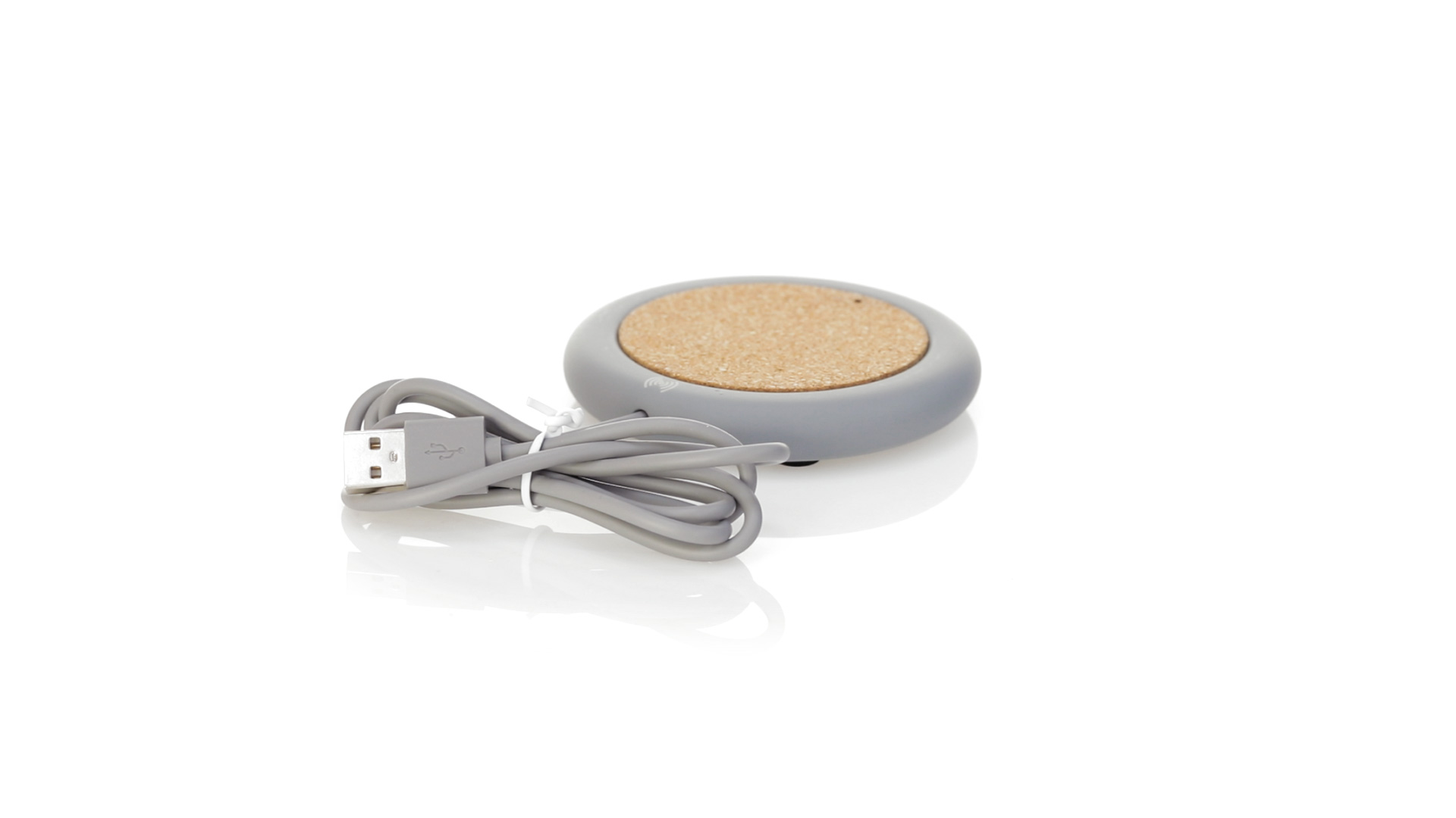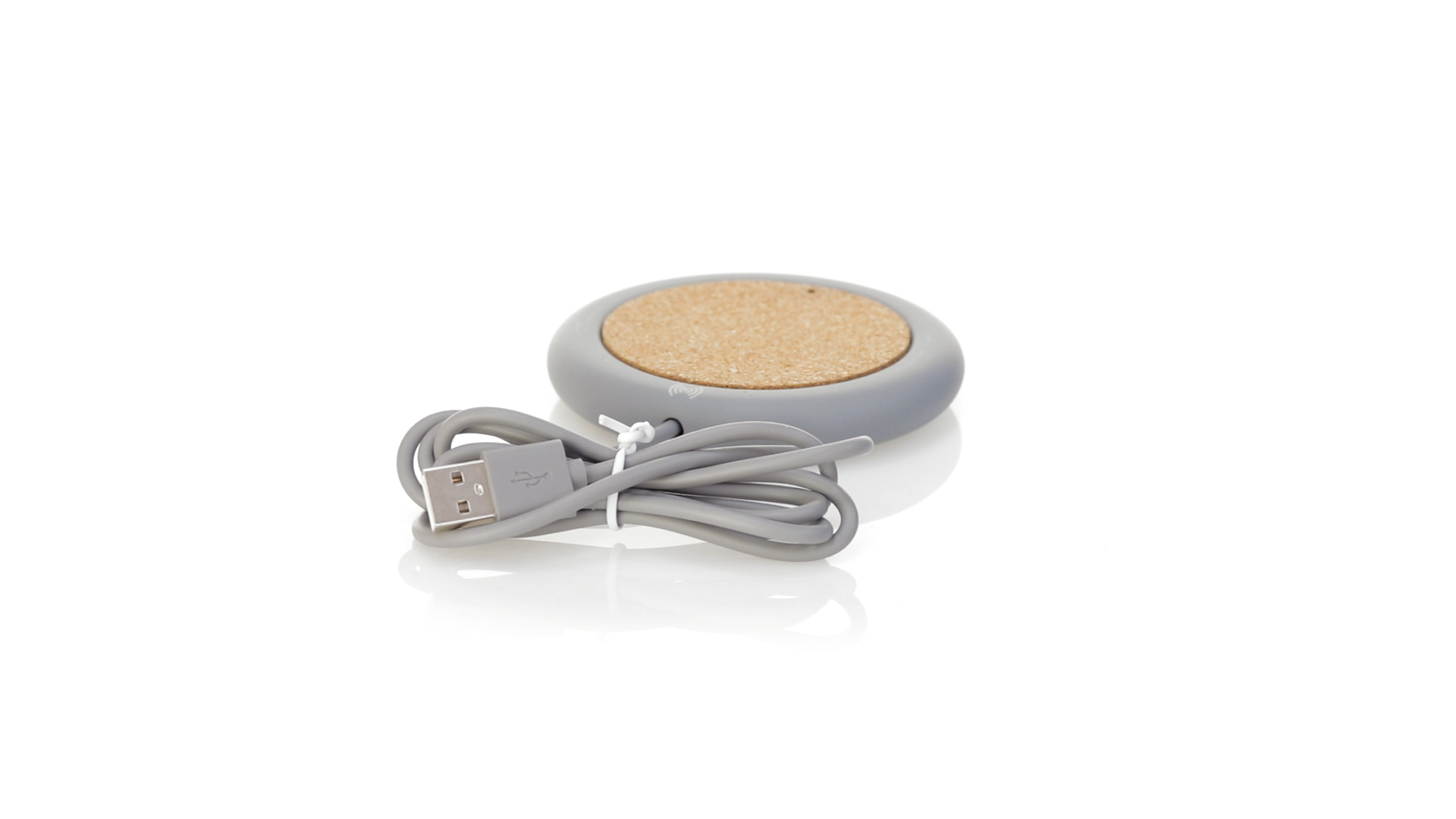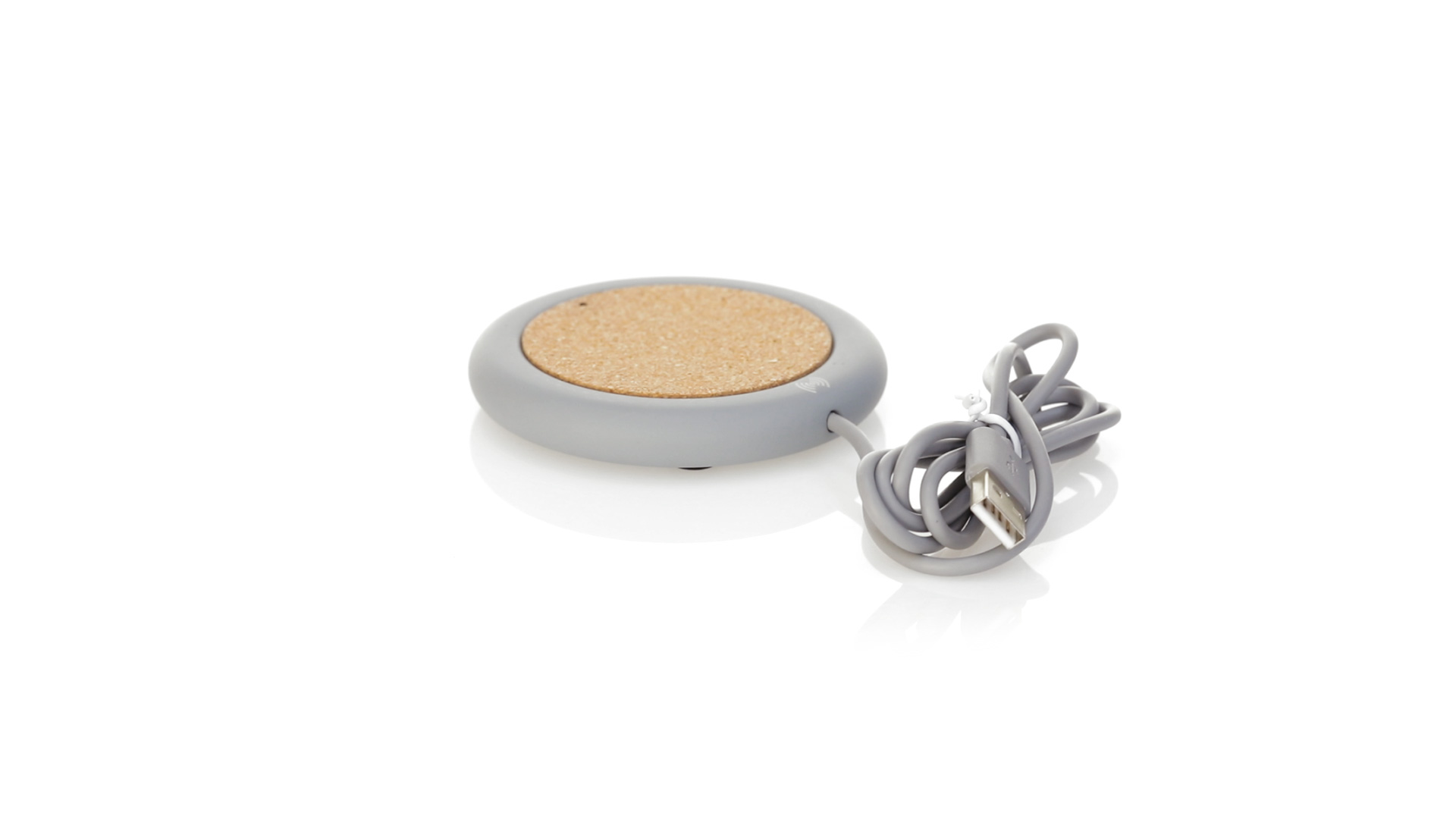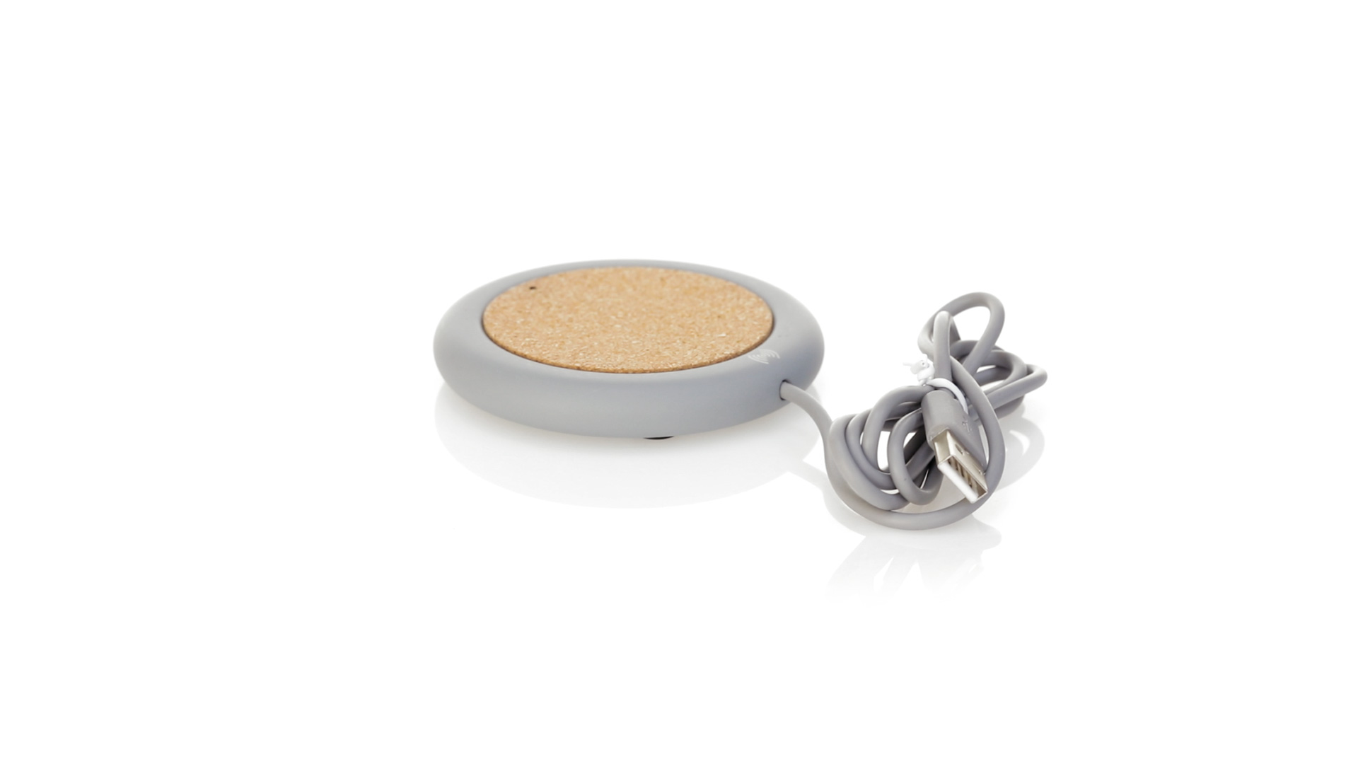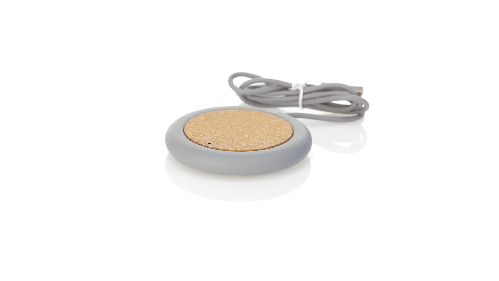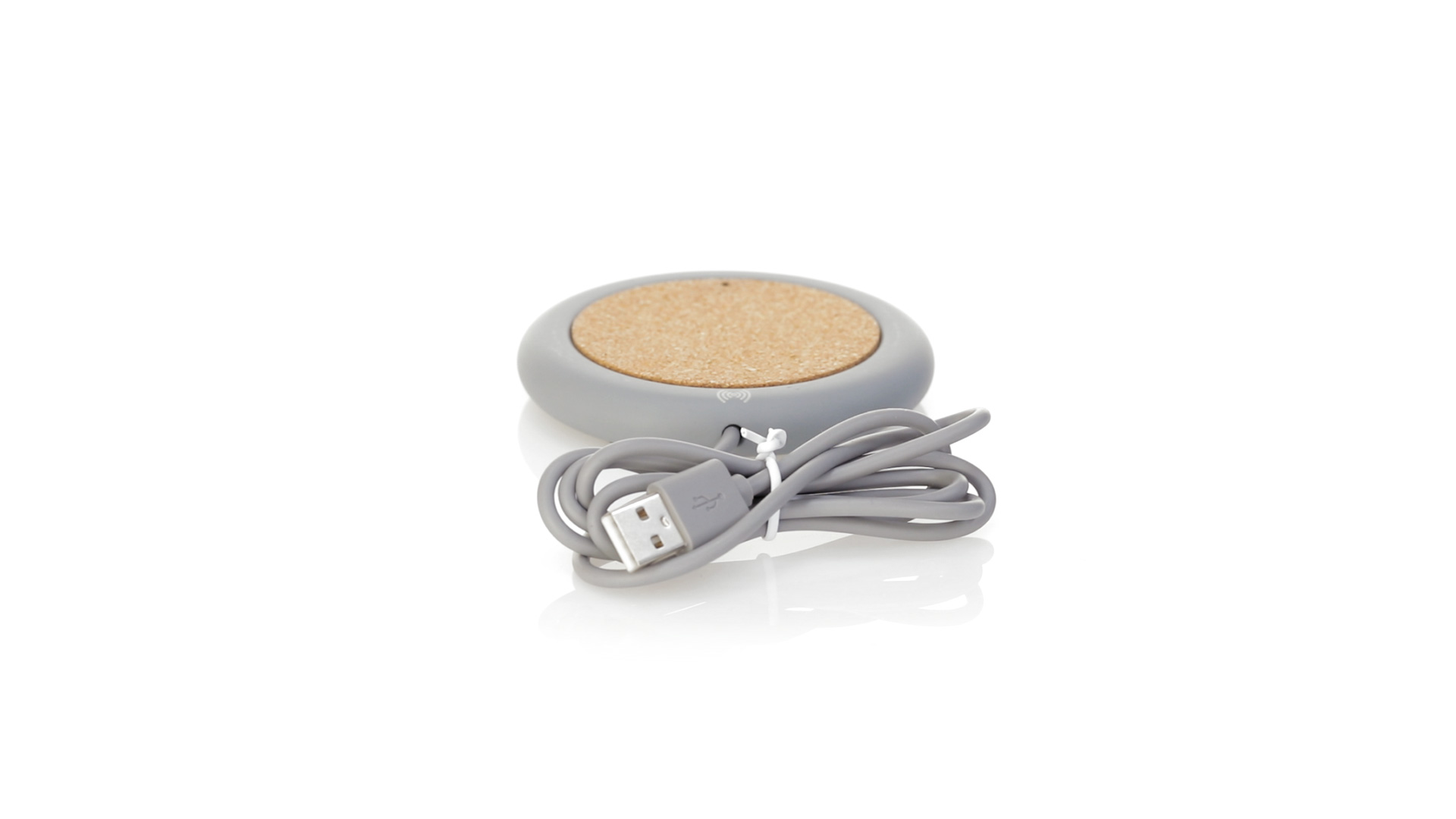 Drahtloses Ladegerät 5W Nature Line im kreisförmigen Design, in Kombination von Naturkork und Kalksteinzement, einem Konglomerat, das durch Mischen von natürlichen Materialien, hauptsächlich gemahlenem Kalkstein und Wasser, gebildet wird, wodurch ein Material von grosser Konsistenz und Haltbarkeit entsteht.LED-Anzeige und passendes 1 m langes USB-Ladekabel. Kompatibel mit Geräten, die mit kabelloser Ladetechnik ausgestattet sind. Sicherheitsschutz zum Schutz vor Überhitzung, Überladung und Kurzschluss. Präsentiert in attraktiver Öko-Design-Box.