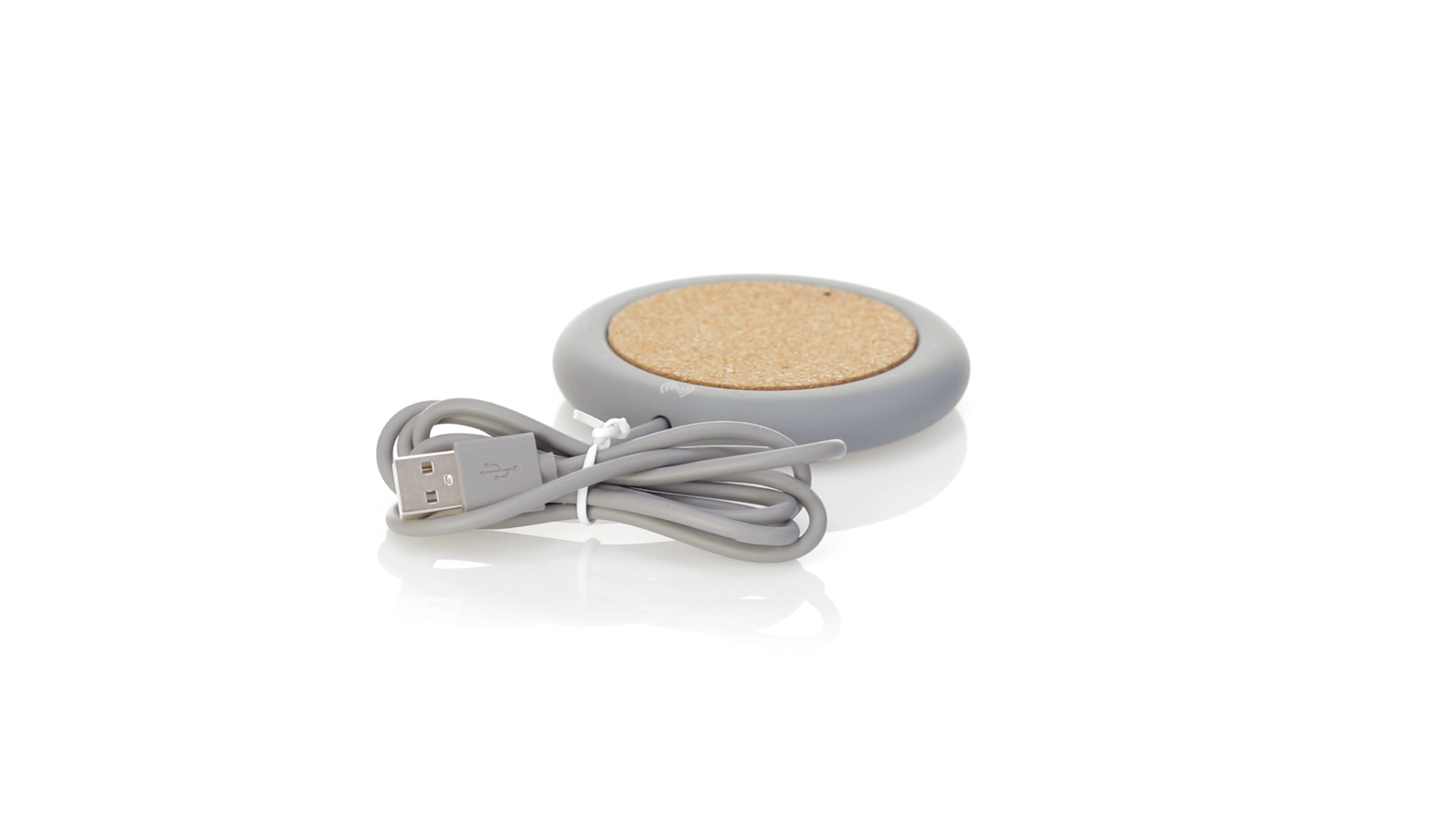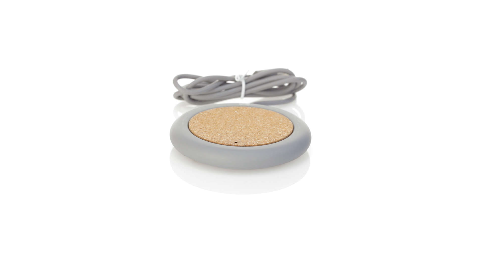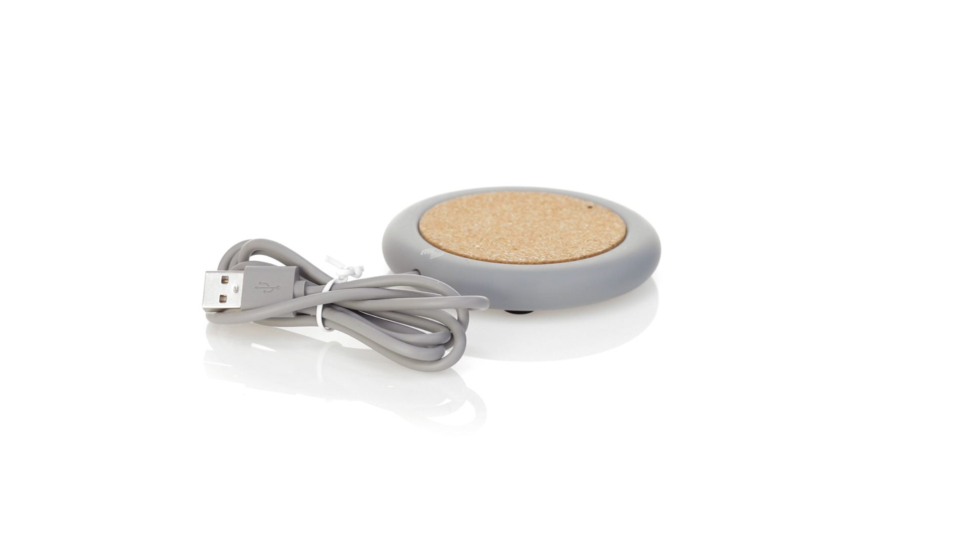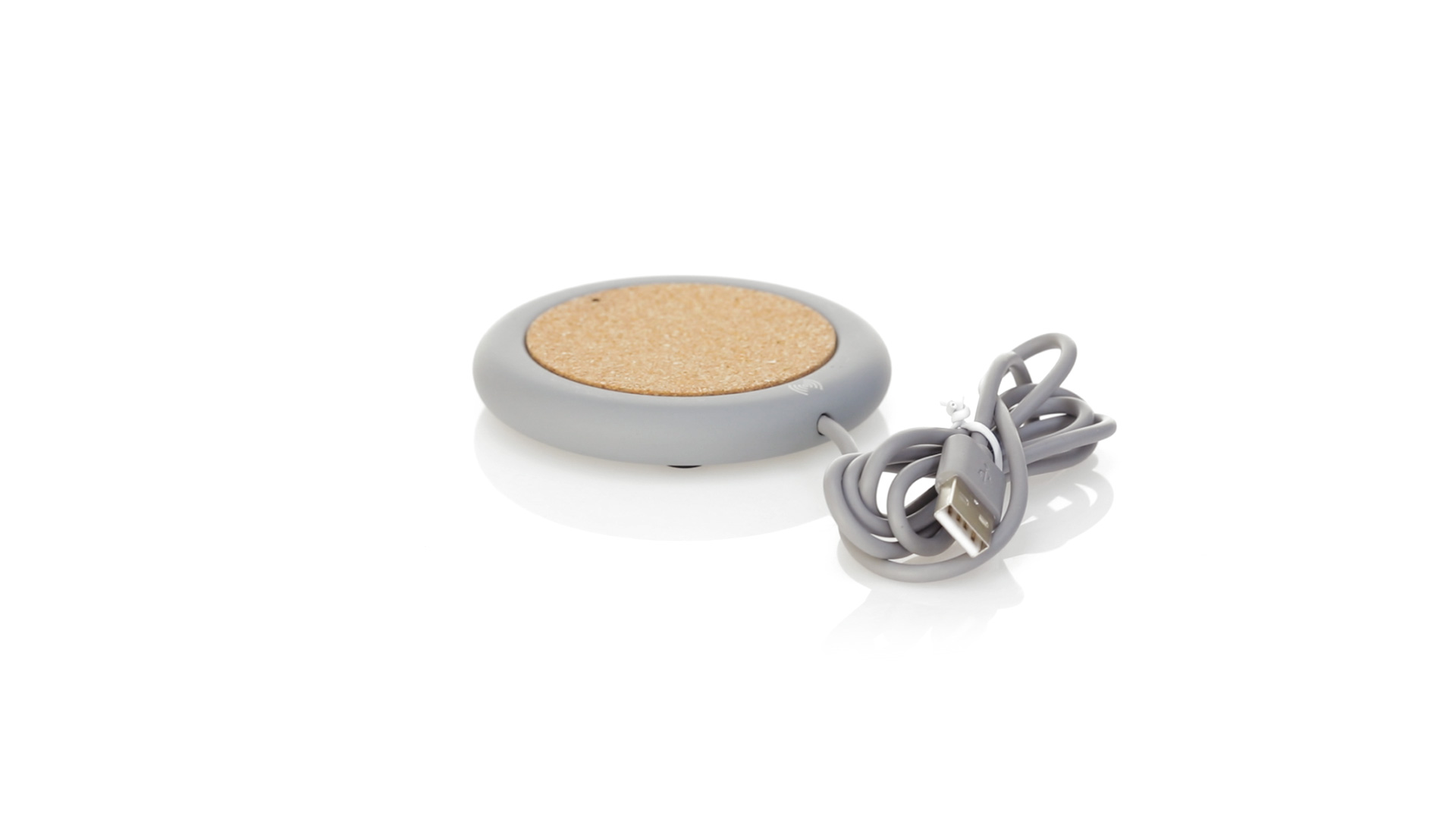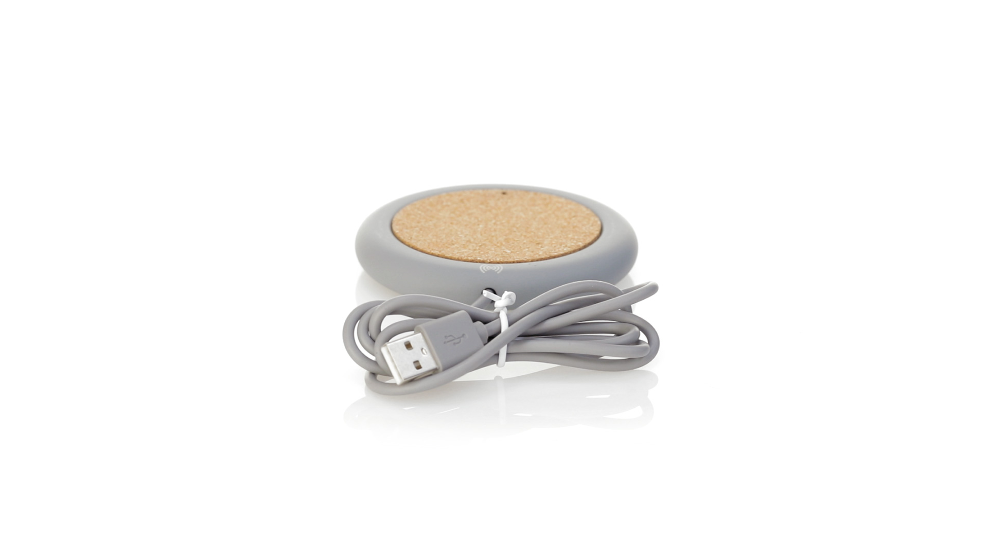 Drahtloses Ladegerät 5W Nature Line im kreisförmigen Design, in Kombination von Naturkork und Kalksteinzement, einem Konglomerat, das durch Mischen von natürlichen Materialien, hauptsächlich gemahlenem Kalkstein und Wasser, gebildet wird, wodurch ein Material von grosser Konsistenz und Haltbarkeit entsteht.LED-Anzeige und passendes 1 m langes USB-Ladekabel. Kompatibel mit Geräten, die mit kabelloser Ladetechnik ausgestattet sind. Sicherheitsschutz zum Schutz vor Überhitzung, Überladung und Kurzschluss. Präsentiert in attraktiver Öko-Design-Box.