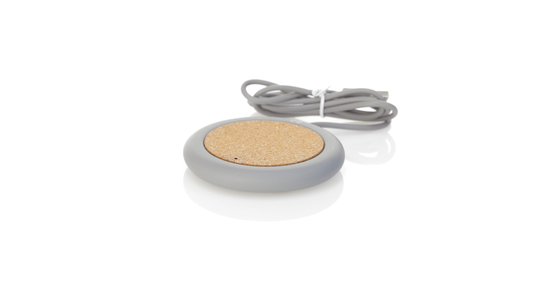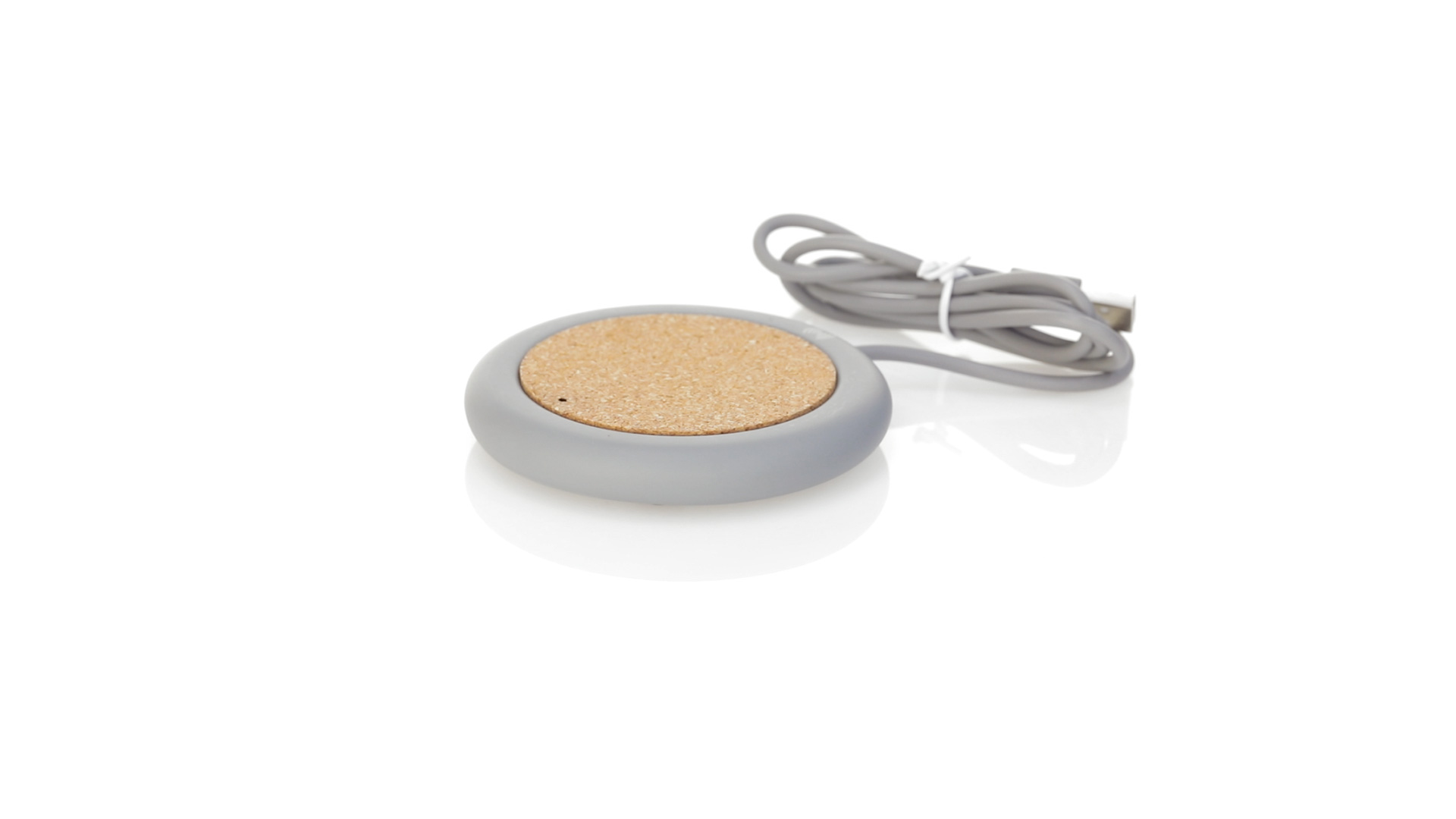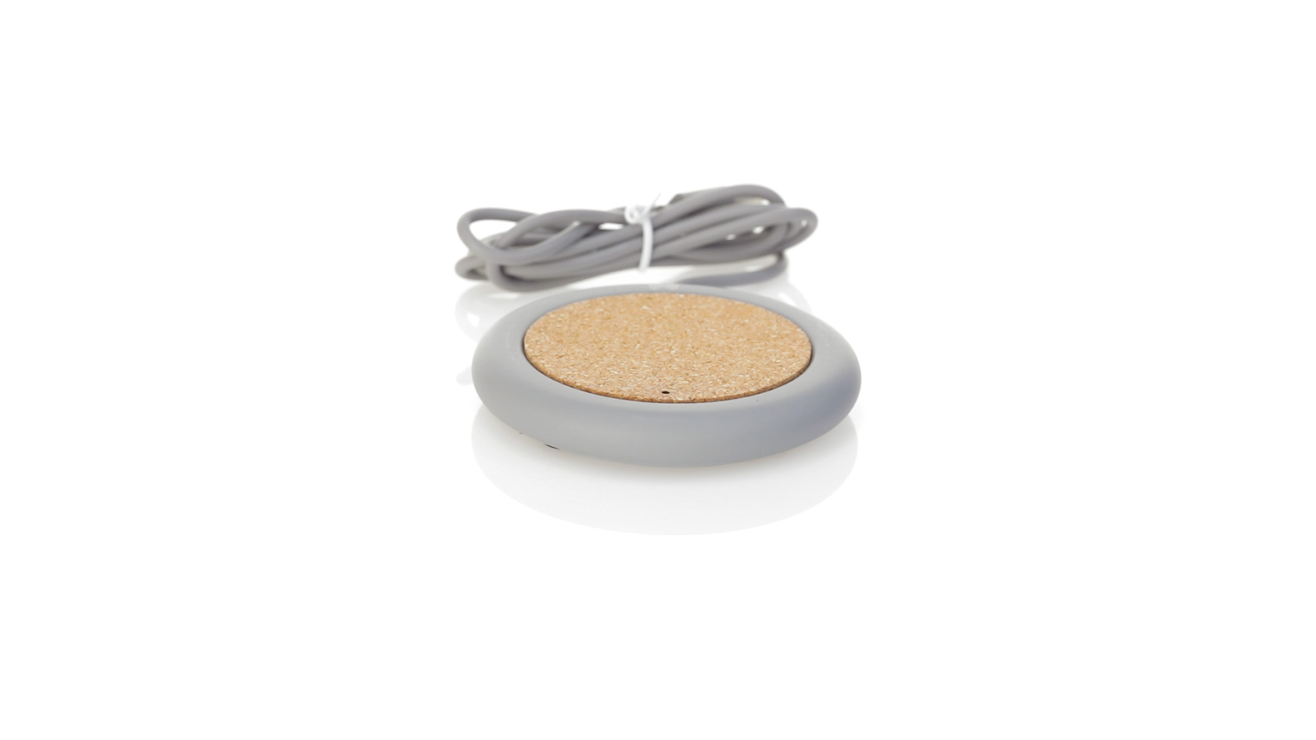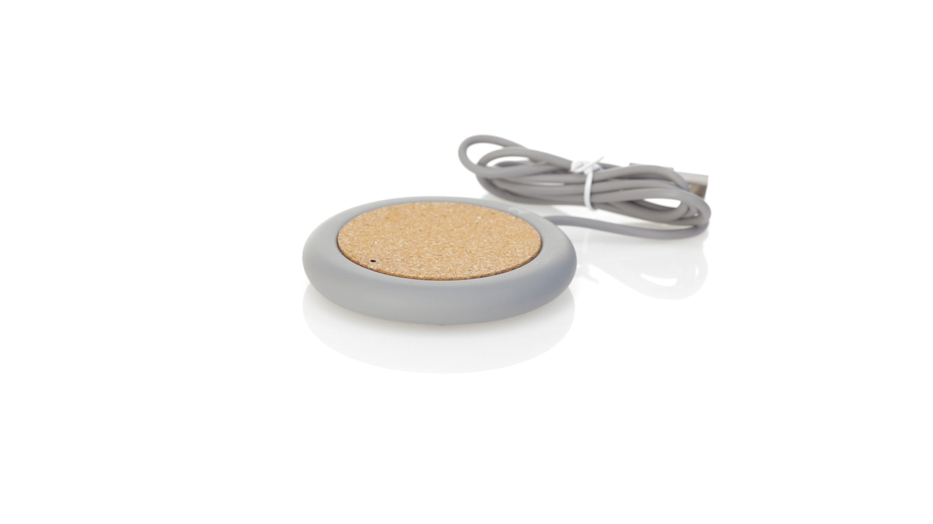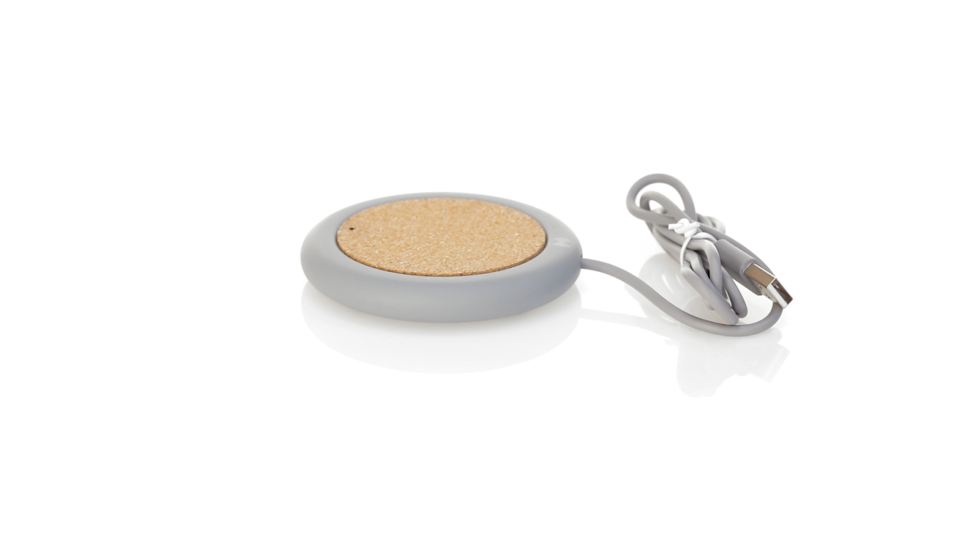Drahtloses Ladegerät 5W Nature Line im kreisförmigen Design, in Kombination von Naturkork und Kalksteinzement, einem Konglomerat, das durch Mischen von natürlichen Materialien, hauptsächlich gemahlenem Kalkstein und Wasser, gebildet wird, wodurch ein Material von grosser Konsistenz und Haltbarkeit entsteht.LED-Anzeige und passendes 1 m langes USB-Ladekabel. Kompatibel mit Geräten, die mit kabelloser Ladetechnik ausgestattet sind. Sicherheitsschutz zum Schutz vor Überhitzung, Überladung und Kurzschluss. Präsentiert in attraktiver Öko-Design-Box.