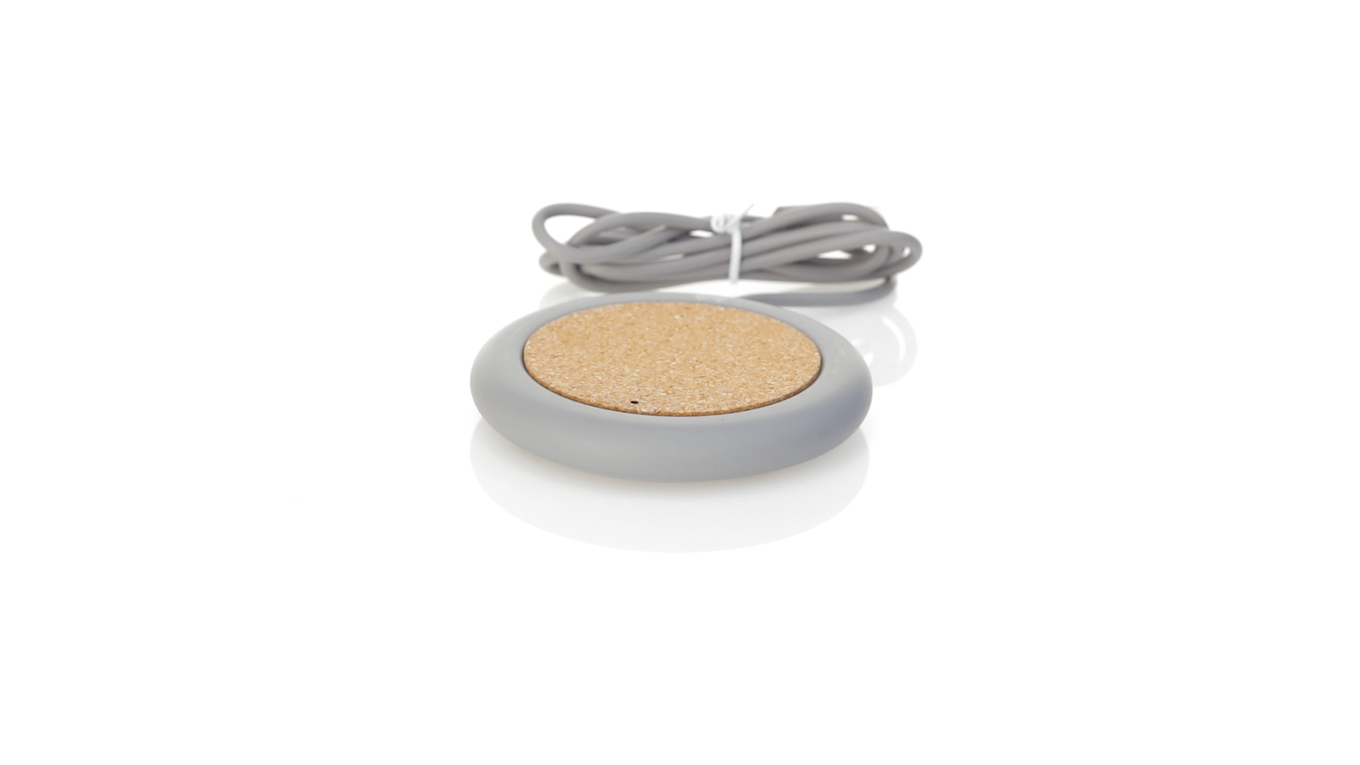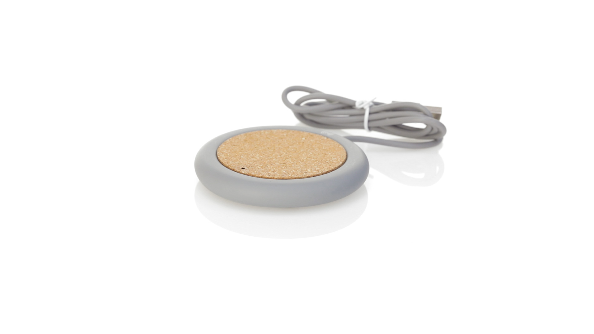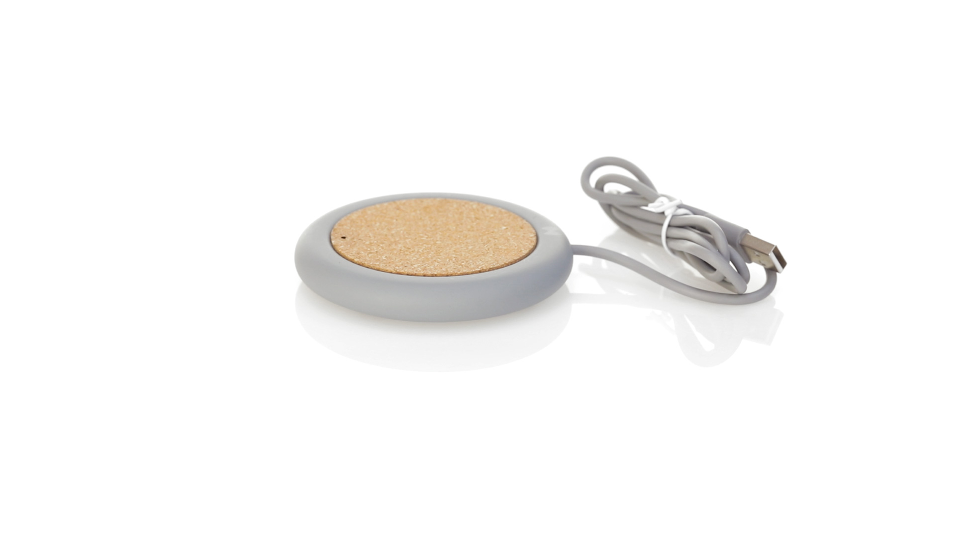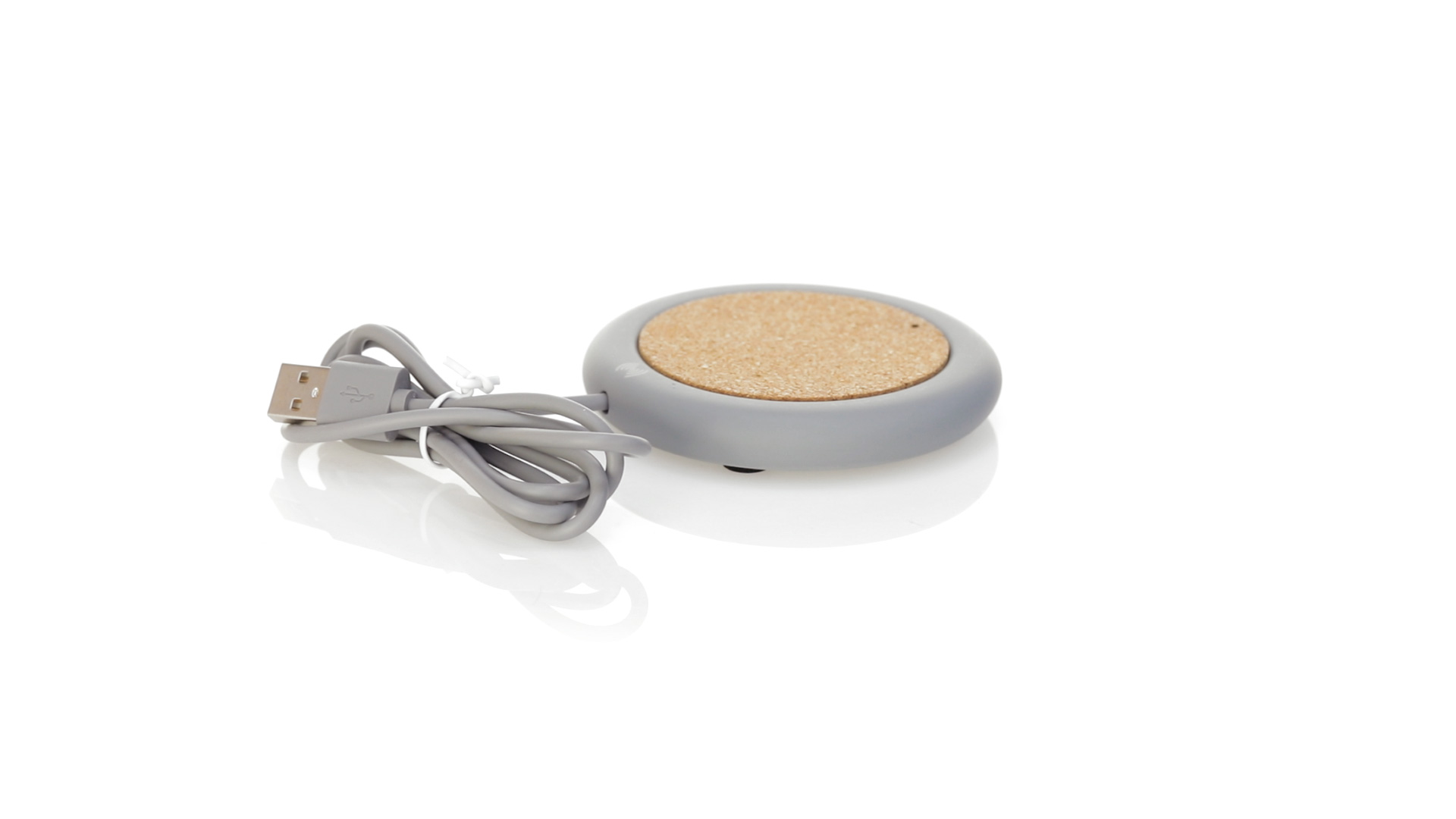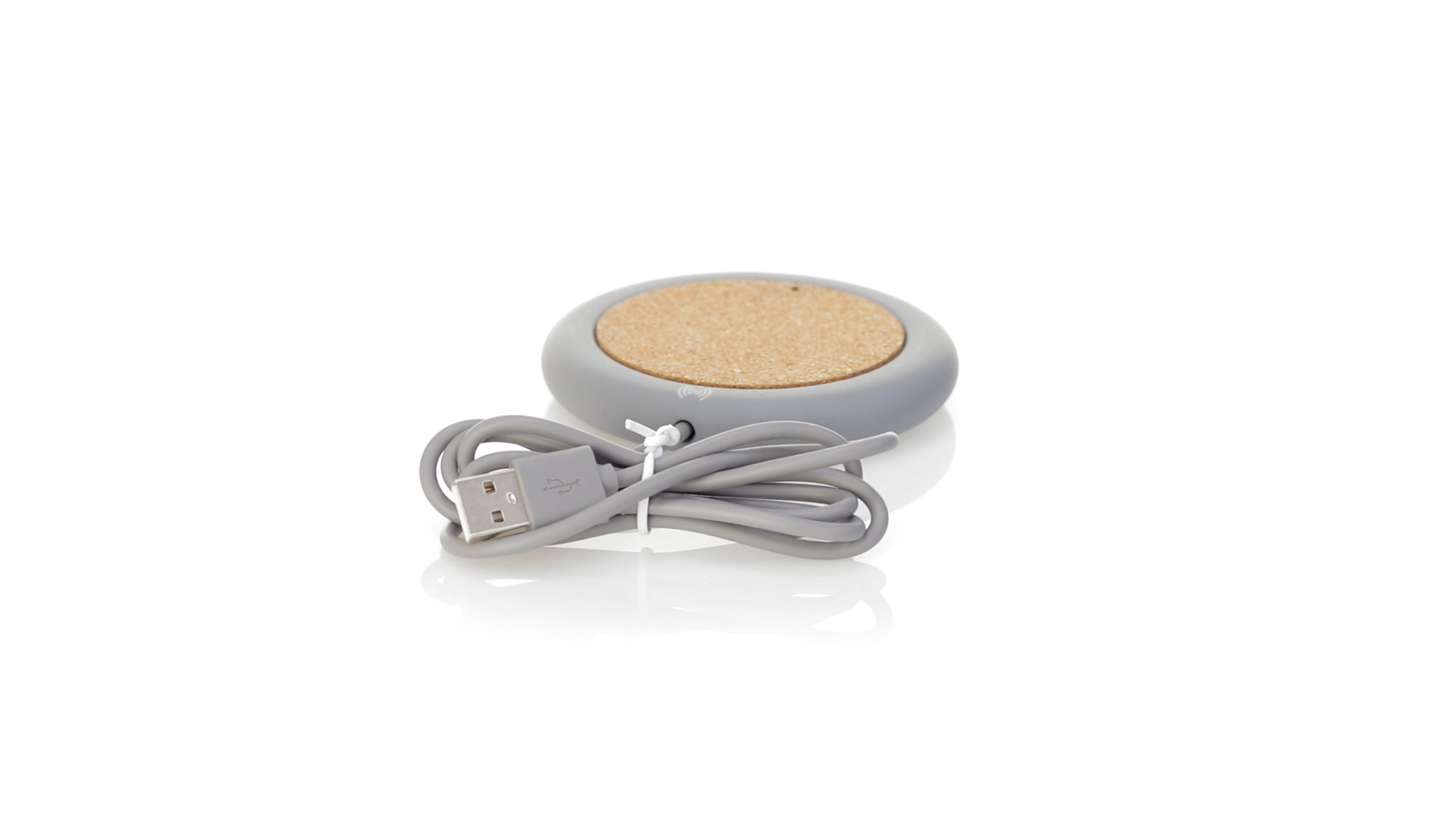 Drahtloses Ladegerät 5W Nature Line im kreisförmigen Design, in Kombination von Naturkork und Kalksteinzement, einem Konglomerat, das durch Mischen von natürlichen Materialien, hauptsächlich gemahlenem Kalkstein und Wasser, gebildet wird, wodurch ein Material von grosser Konsistenz und Haltbarkeit entsteht.LED-Anzeige und passendes 1 m langes USB-Ladekabel. Kompatibel mit Geräten, die mit kabelloser Ladetechnik ausgestattet sind. Sicherheitsschutz zum Schutz vor Überhitzung, Überladung und Kurzschluss. Präsentiert in attraktiver Öko-Design-Box.