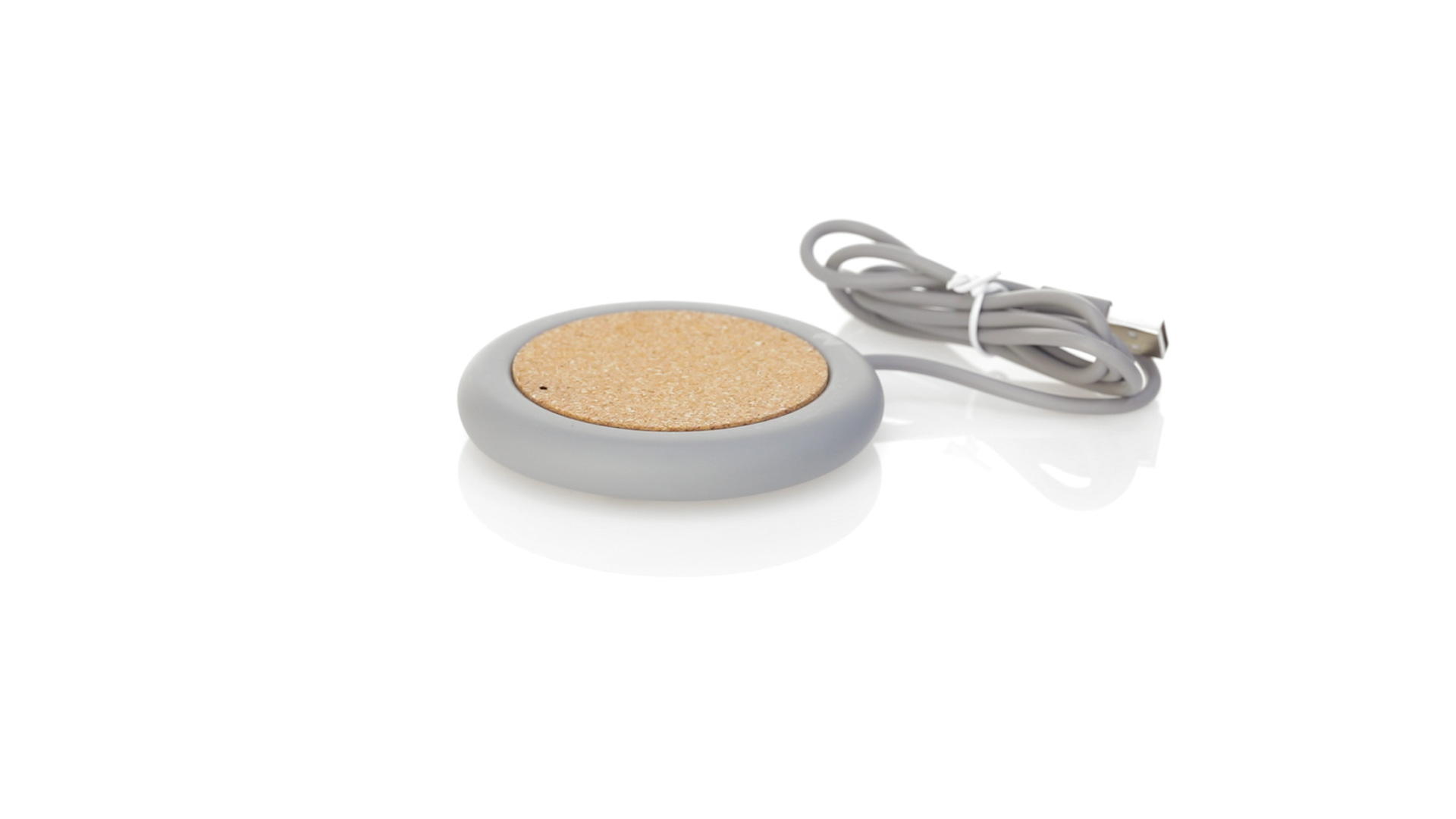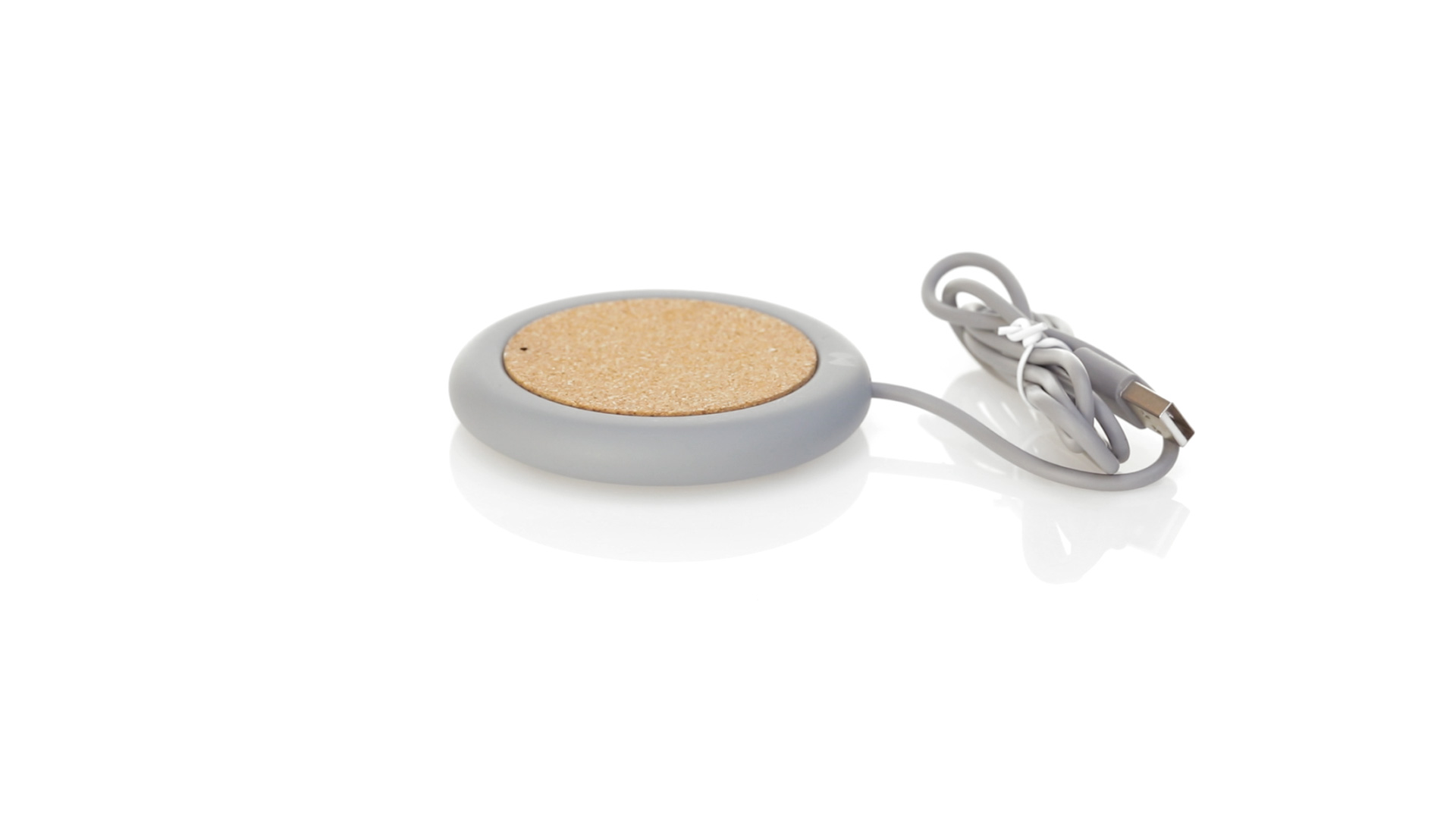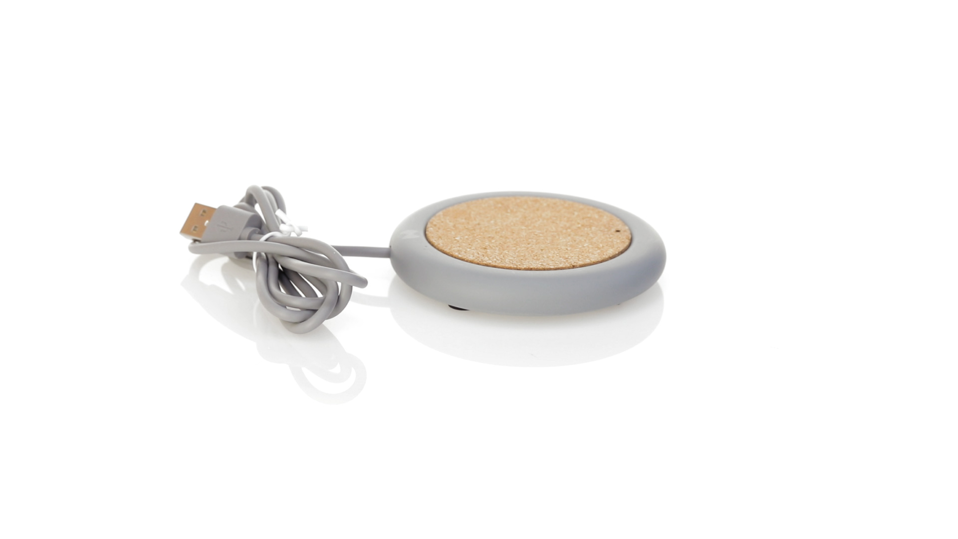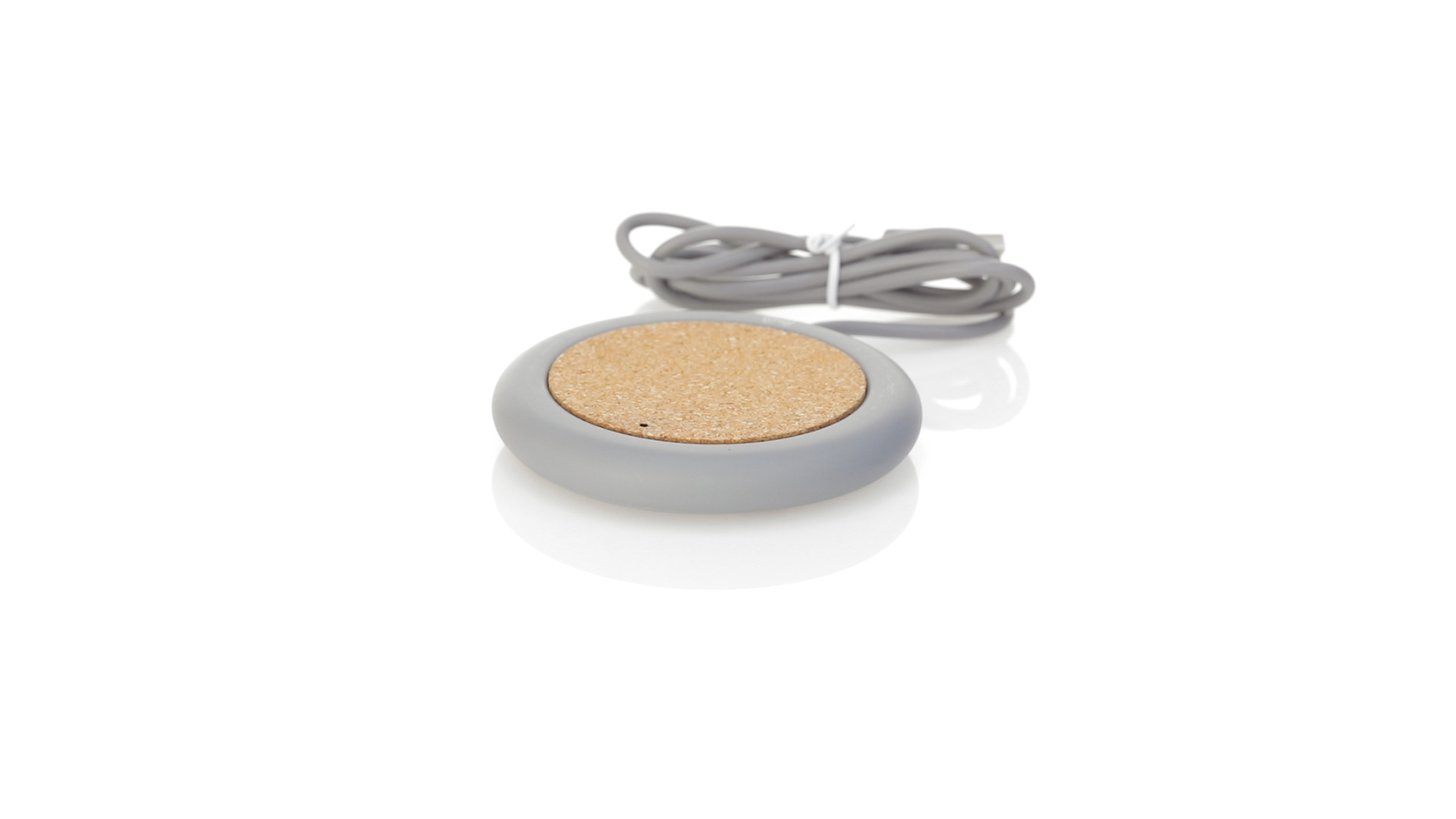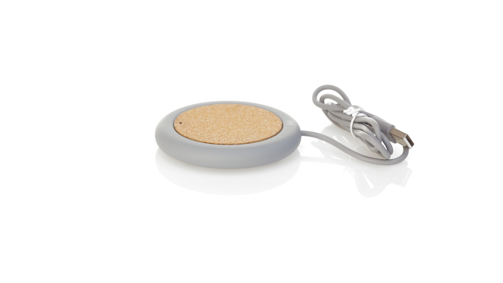Drahtloses Ladegerät 5W Nature Line im kreisförmigen Design, in Kombination von Naturkork und Kalksteinzement, einem Konglomerat, das durch Mischen von natürlichen Materialien, hauptsächlich gemahlenem Kalkstein und Wasser, gebildet wird, wodurch ein Material von grosser Konsistenz und Haltbarkeit entsteht.LED-Anzeige und passendes 1 m langes USB-Ladekabel. Kompatibel mit Geräten, die mit kabelloser Ladetechnik ausgestattet sind. Sicherheitsschutz zum Schutz vor Überhitzung, Überladung und Kurzschluss. Präsentiert in attraktiver Öko-Design-Box.