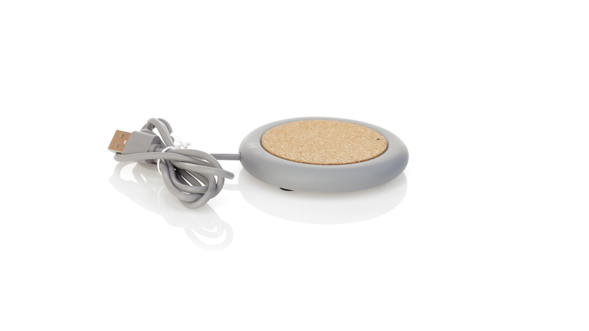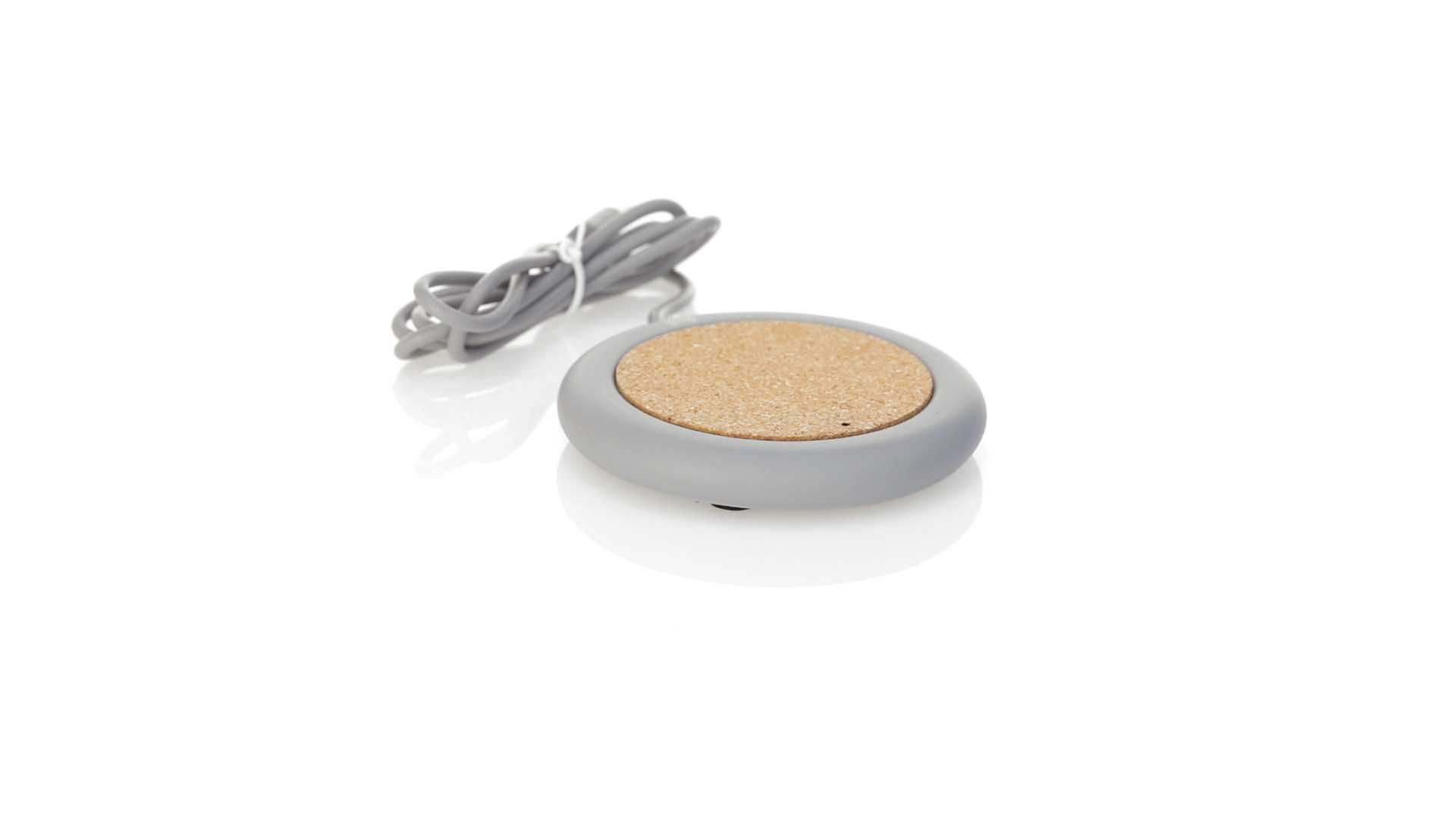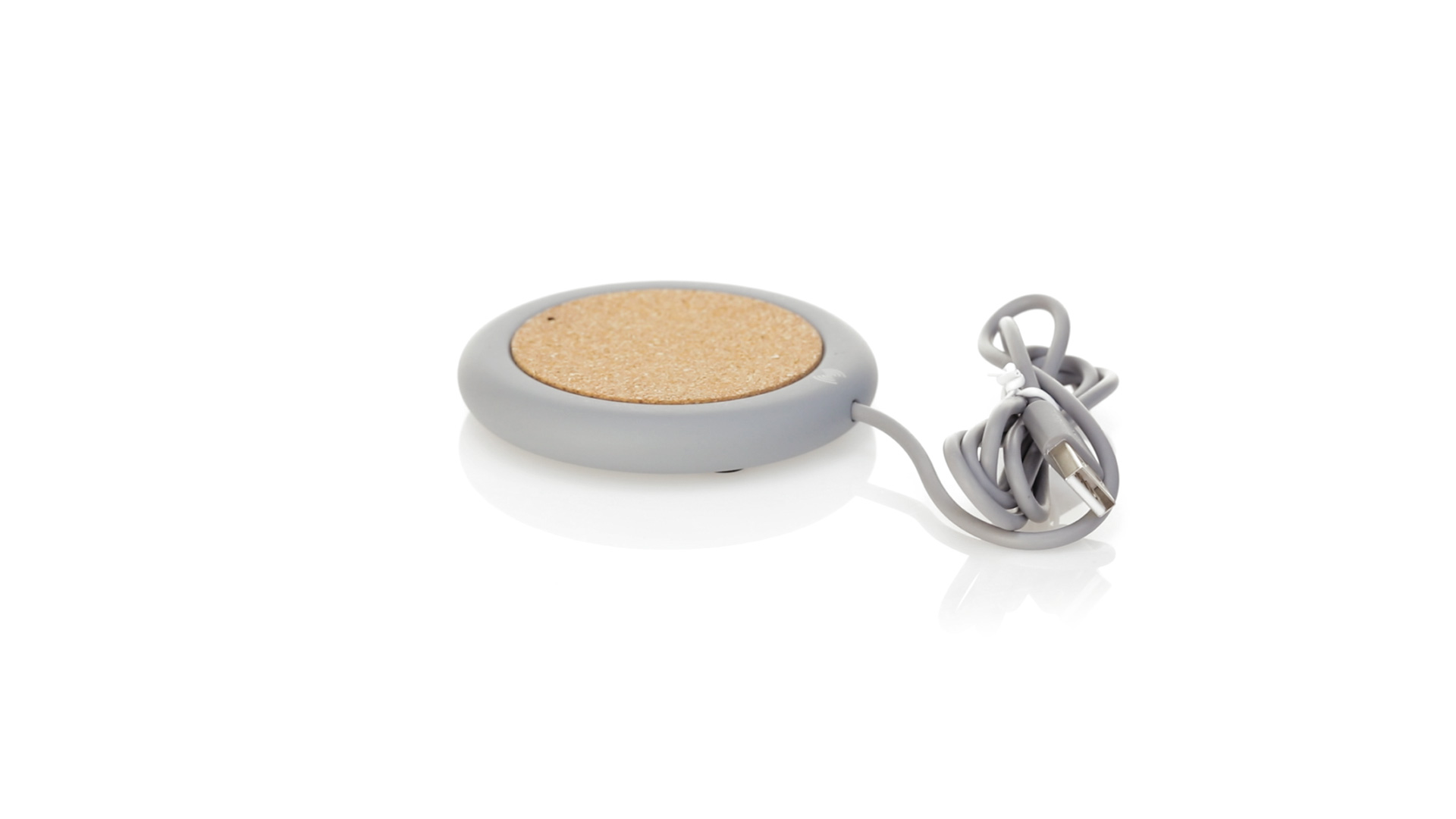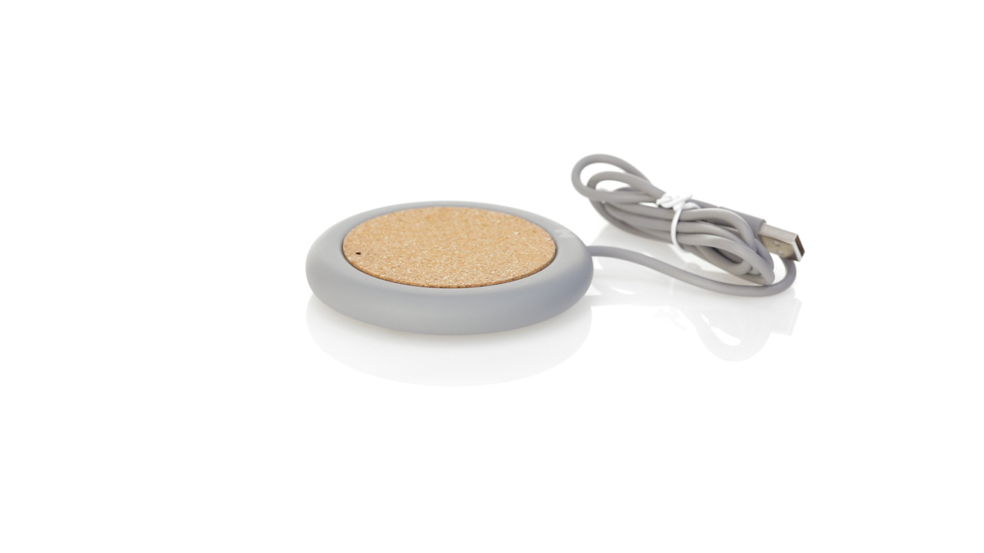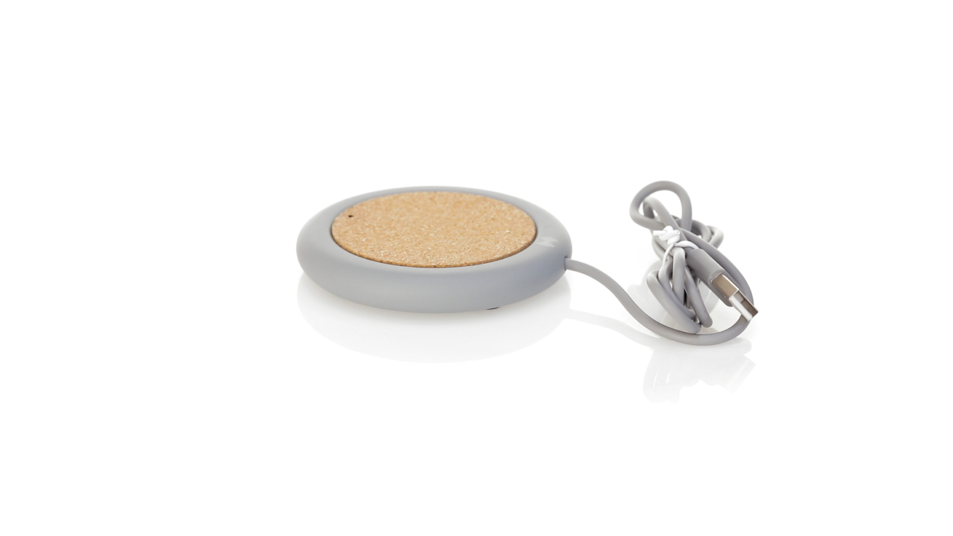 Drahtloses Ladegerät 5W Nature Line im kreisförmigen Design, in Kombination von Naturkork und Kalksteinzement, einem Konglomerat, das durch Mischen von natürlichen Materialien, hauptsächlich gemahlenem Kalkstein und Wasser, gebildet wird, wodurch ein Material von grosser Konsistenz und Haltbarkeit entsteht.LED-Anzeige und passendes 1 m langes USB-Ladekabel. Kompatibel mit Geräten, die mit kabelloser Ladetechnik ausgestattet sind. Sicherheitsschutz zum Schutz vor Überhitzung, Überladung und Kurzschluss. Präsentiert in attraktiver Öko-Design-Box.