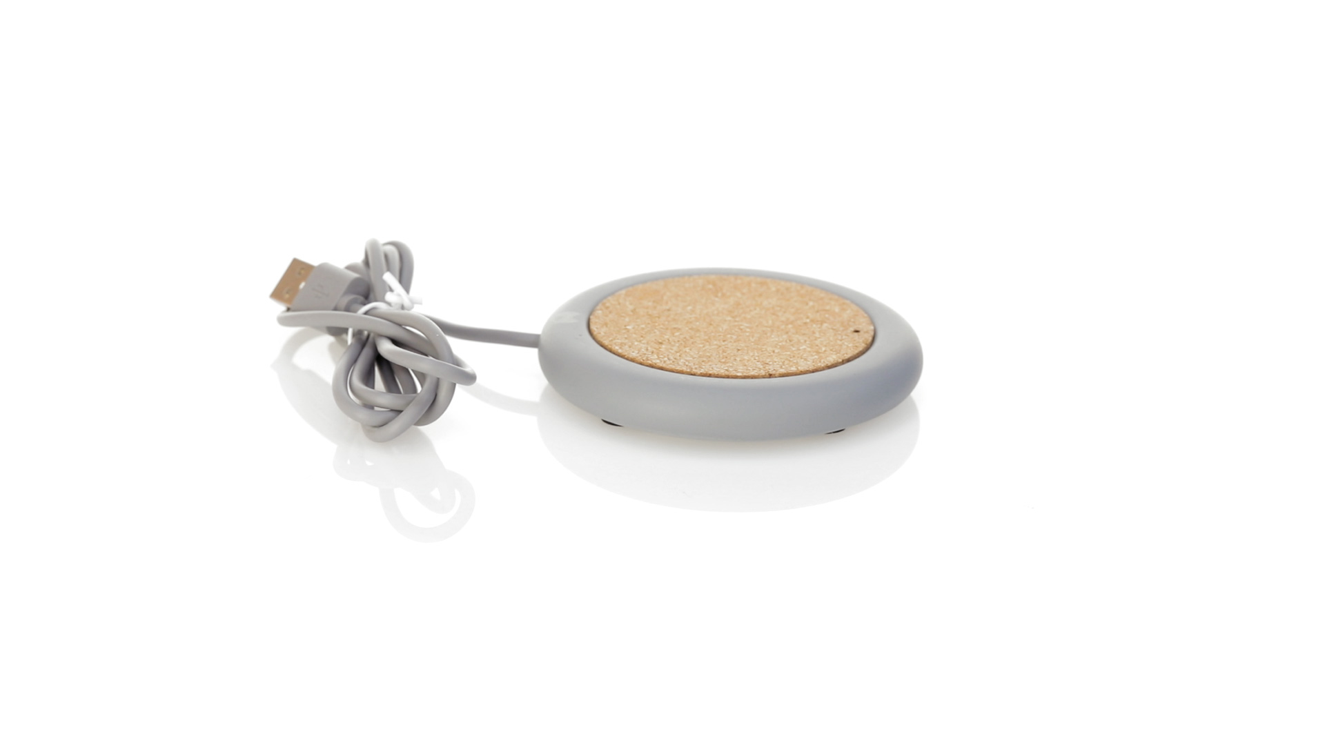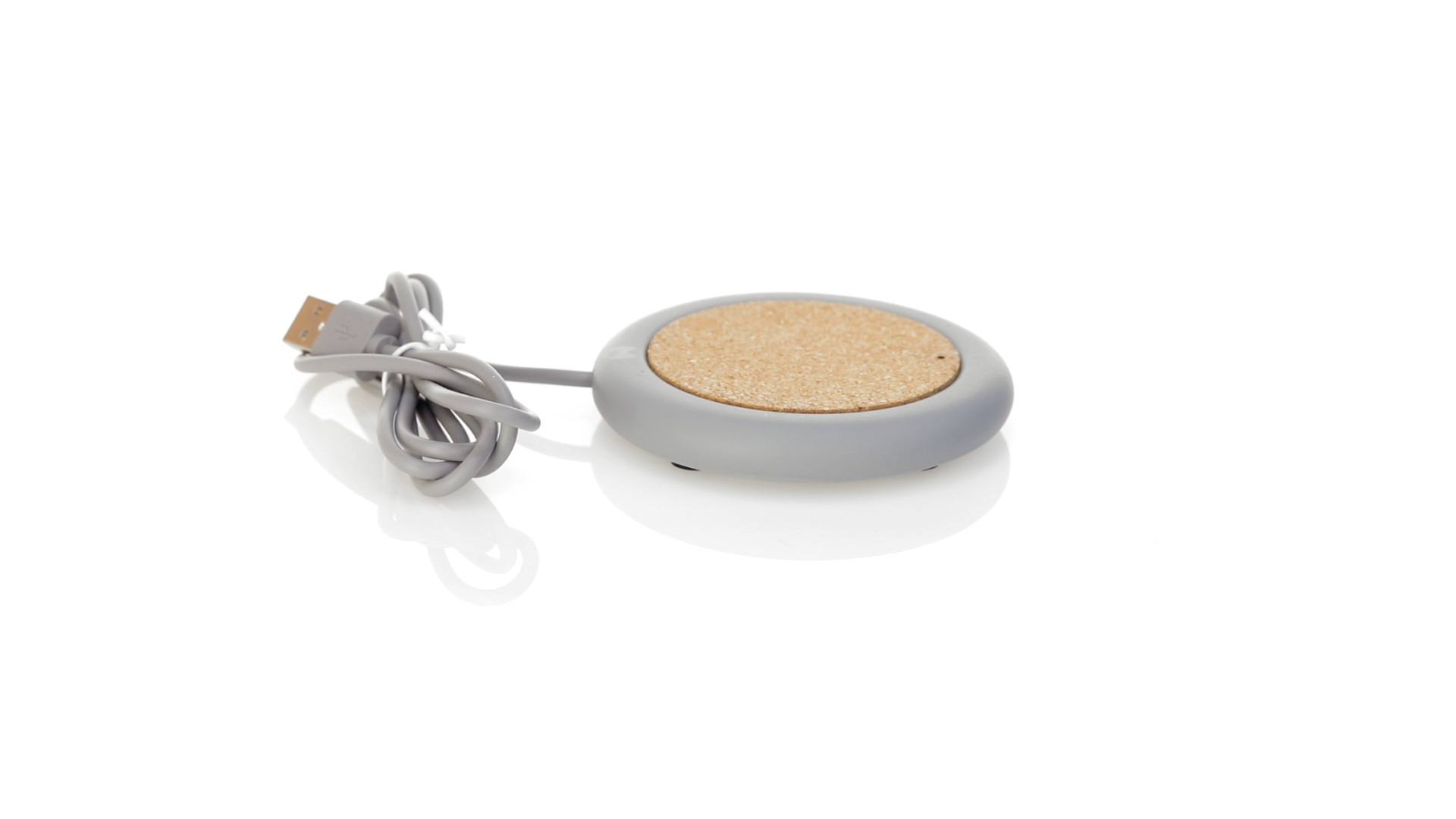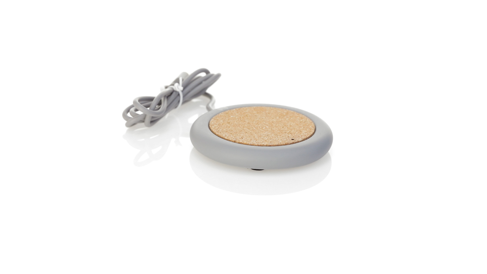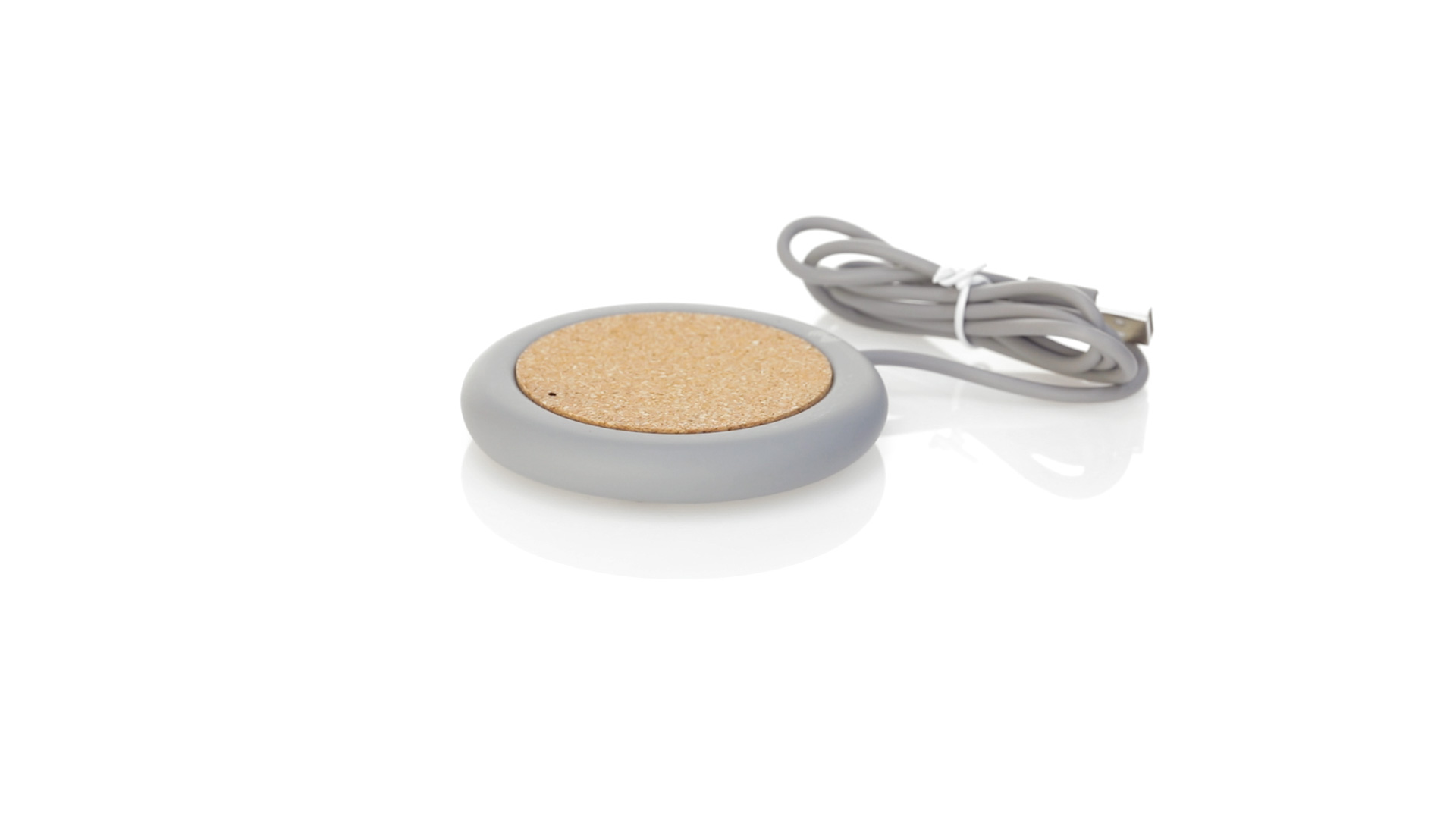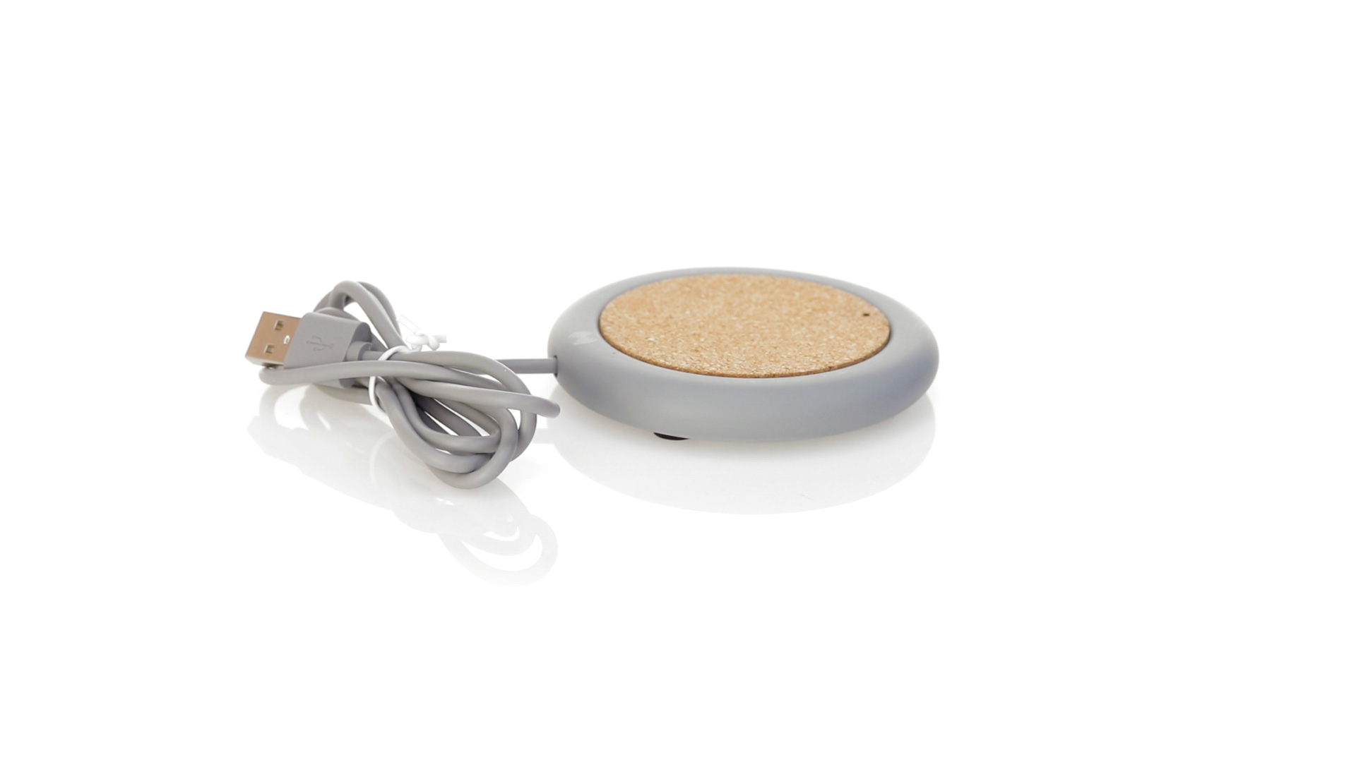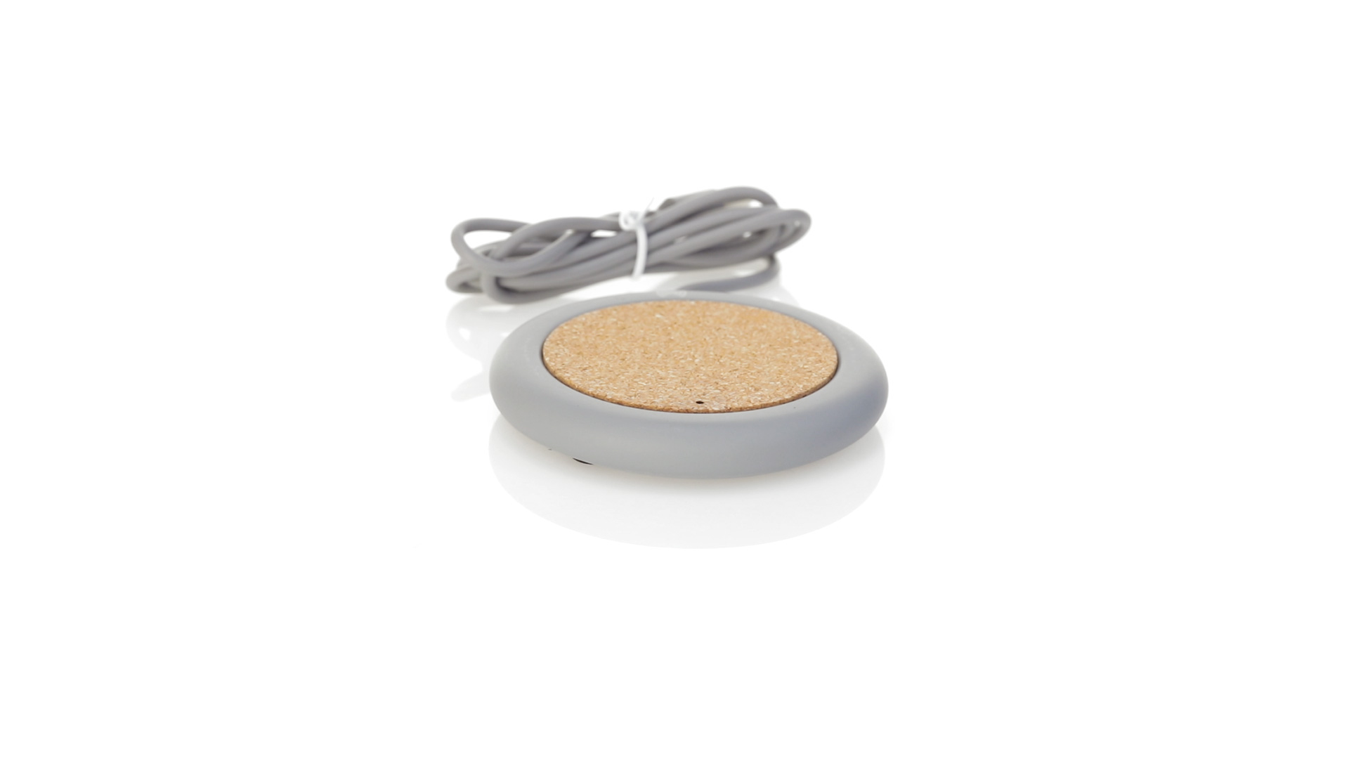 Drahtloses Ladegerät 5W Nature Line im kreisförmigen Design, in Kombination von Naturkork und Kalksteinzement, einem Konglomerat, das durch Mischen von natürlichen Materialien, hauptsächlich gemahlenem Kalkstein und Wasser, gebildet wird, wodurch ein Material von grosser Konsistenz und Haltbarkeit entsteht.LED-Anzeige und passendes 1 m langes USB-Ladekabel. Kompatibel mit Geräten, die mit kabelloser Ladetechnik ausgestattet sind. Sicherheitsschutz zum Schutz vor Überhitzung, Überladung und Kurzschluss. Präsentiert in attraktiver Öko-Design-Box.